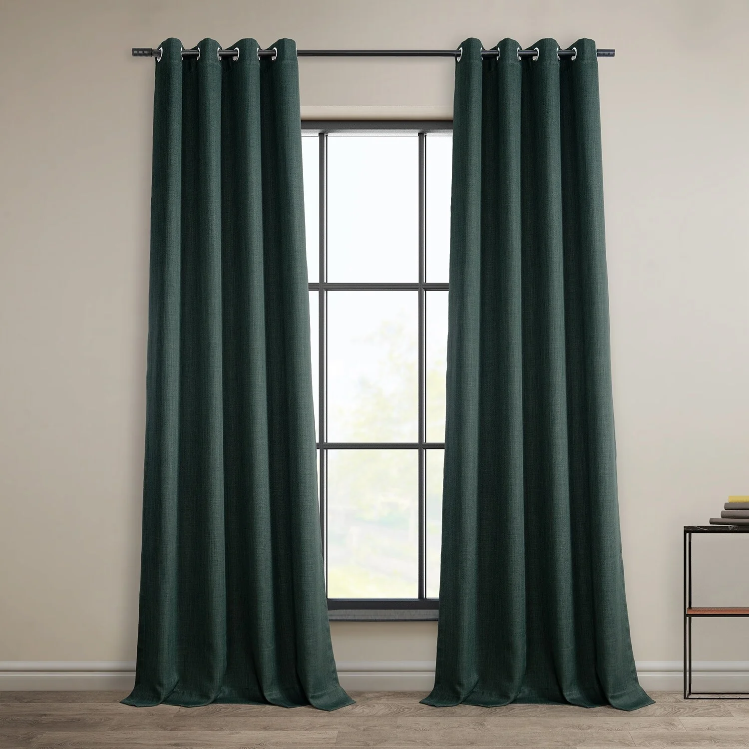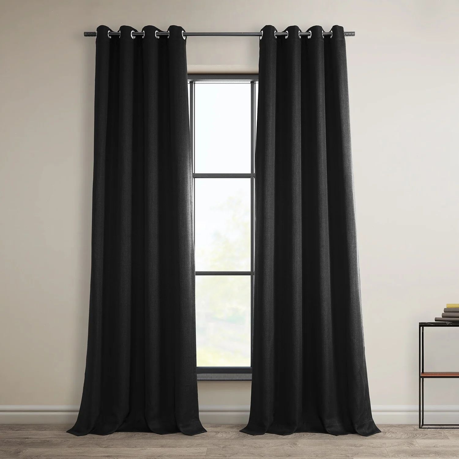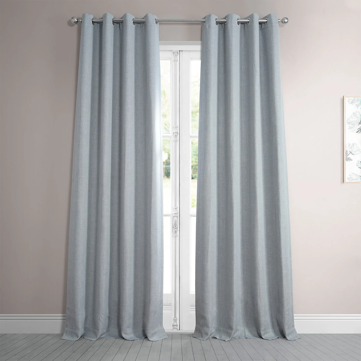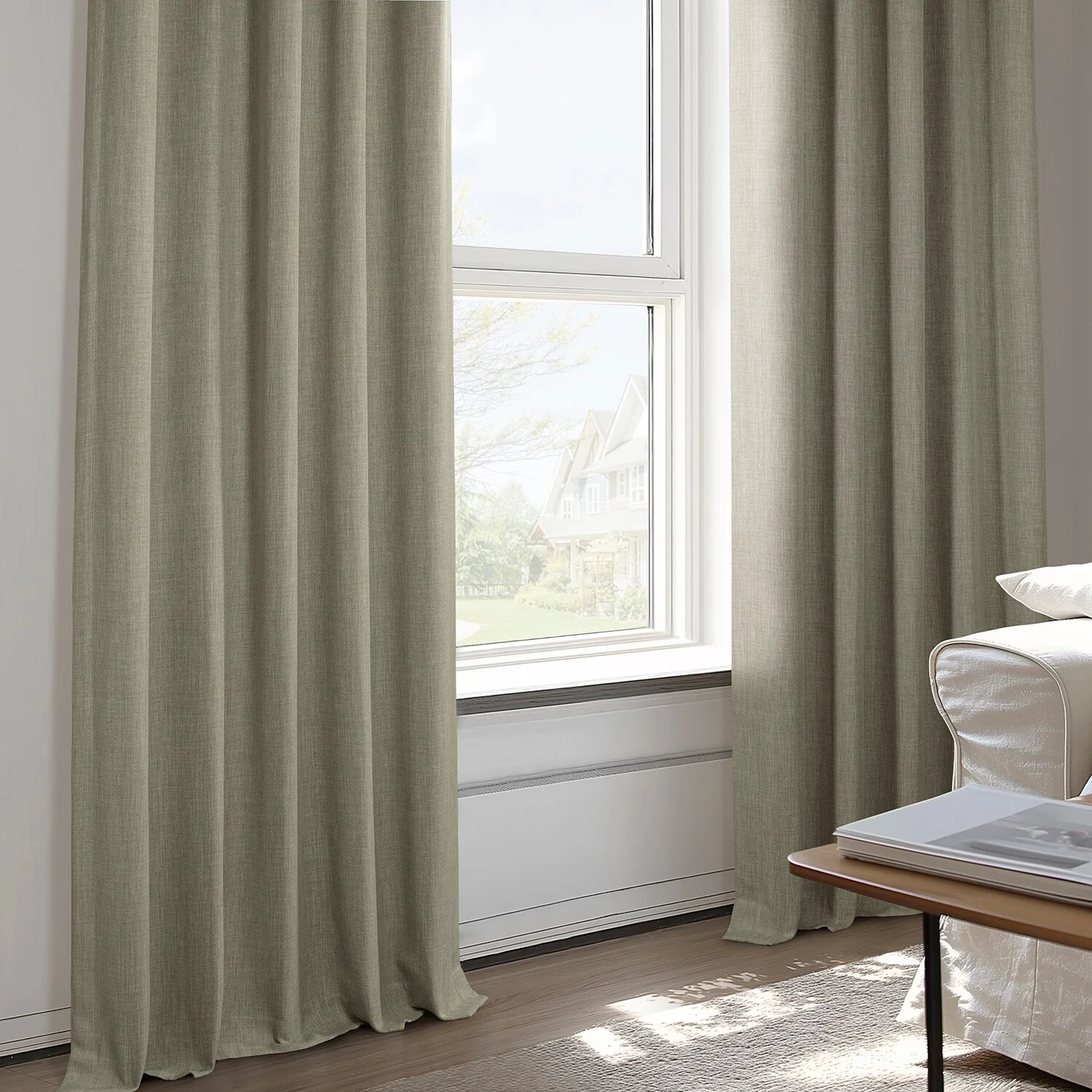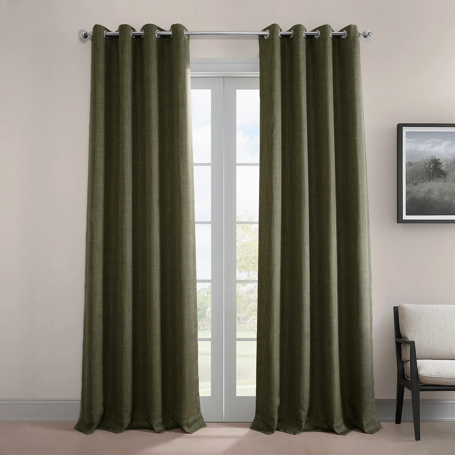 Our Faux Linen Grommet Room Darkening Curtain features rich woven textures in modern designer colors for every style. These heavy faux linen panels have significant room-darkening properties and a weighted hem to hang nicely and keep them in place. This style panel features large metal eyelets that slide onto a curtain rod. They are ideal if you want a clean modern look for a treatment you do not intend to pull back and forth every day. The inside diameter of the eyelets is 1 5/8'. We do not recommend that you use a rod with a diameter larger than 1 1/2' for ease of use. We try to provide the most accurate digital images possible. Color may appear slightly different from one screen to another based on differences in computer monitors, brightness, and other selected settings so there may be variations in color between the actual product and the way it appears online. This curtain offers Room Darkening capabilities with an impressive 85% opacity for Blackout effect.