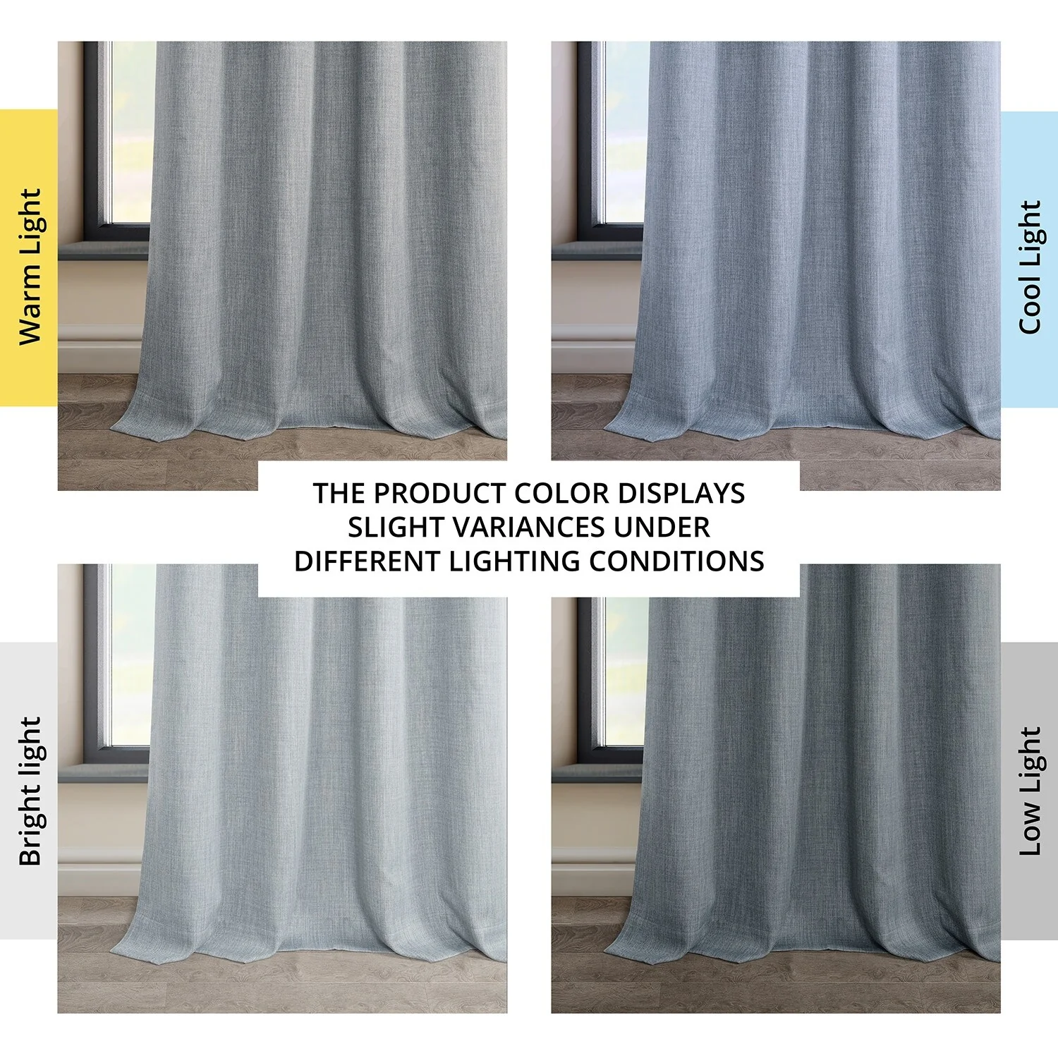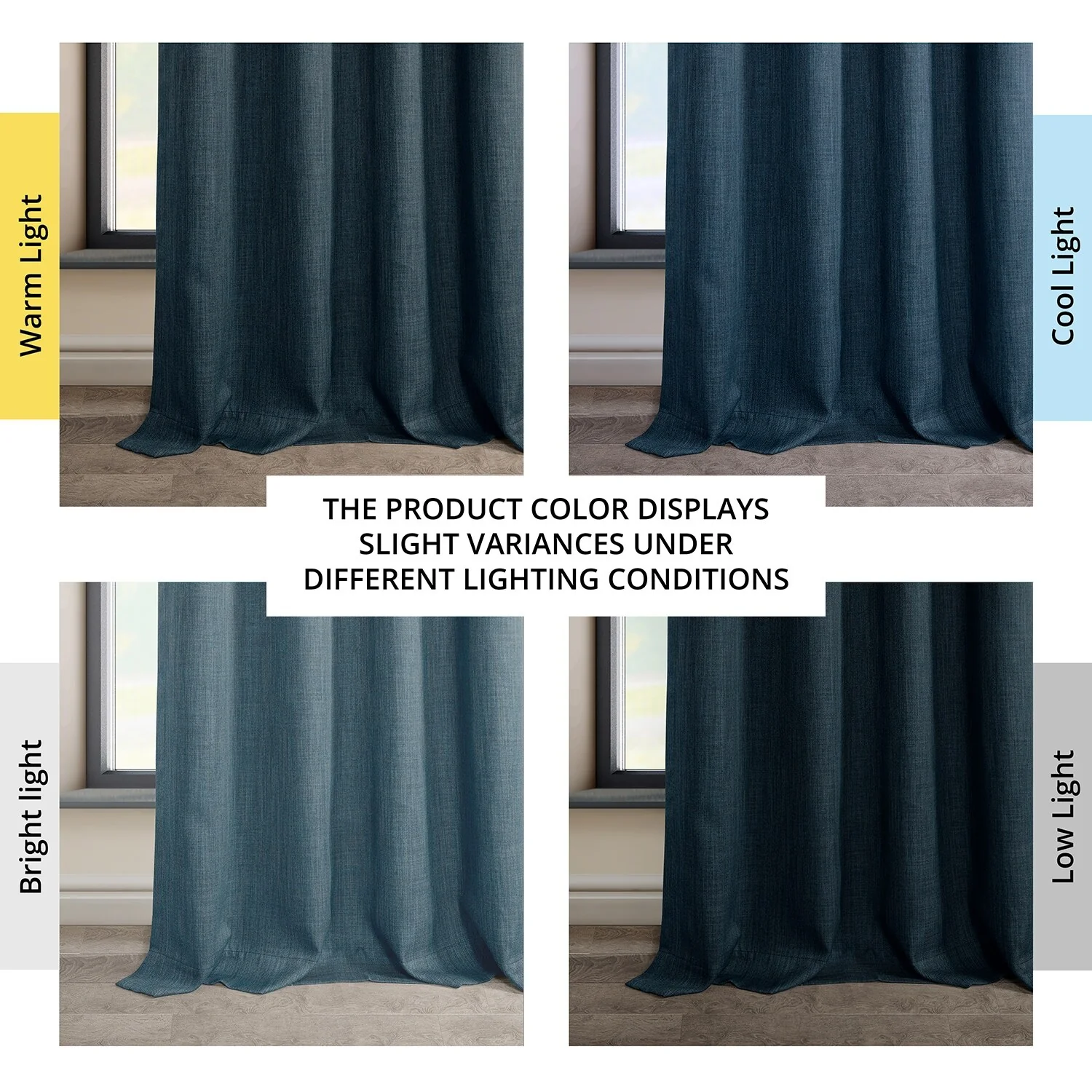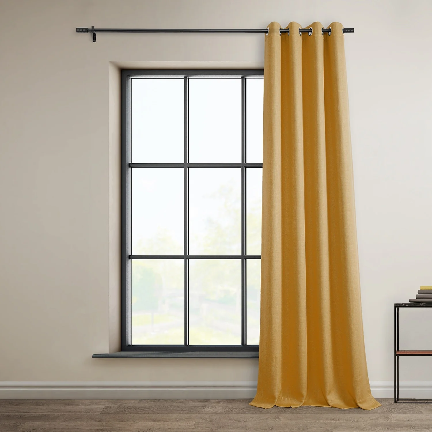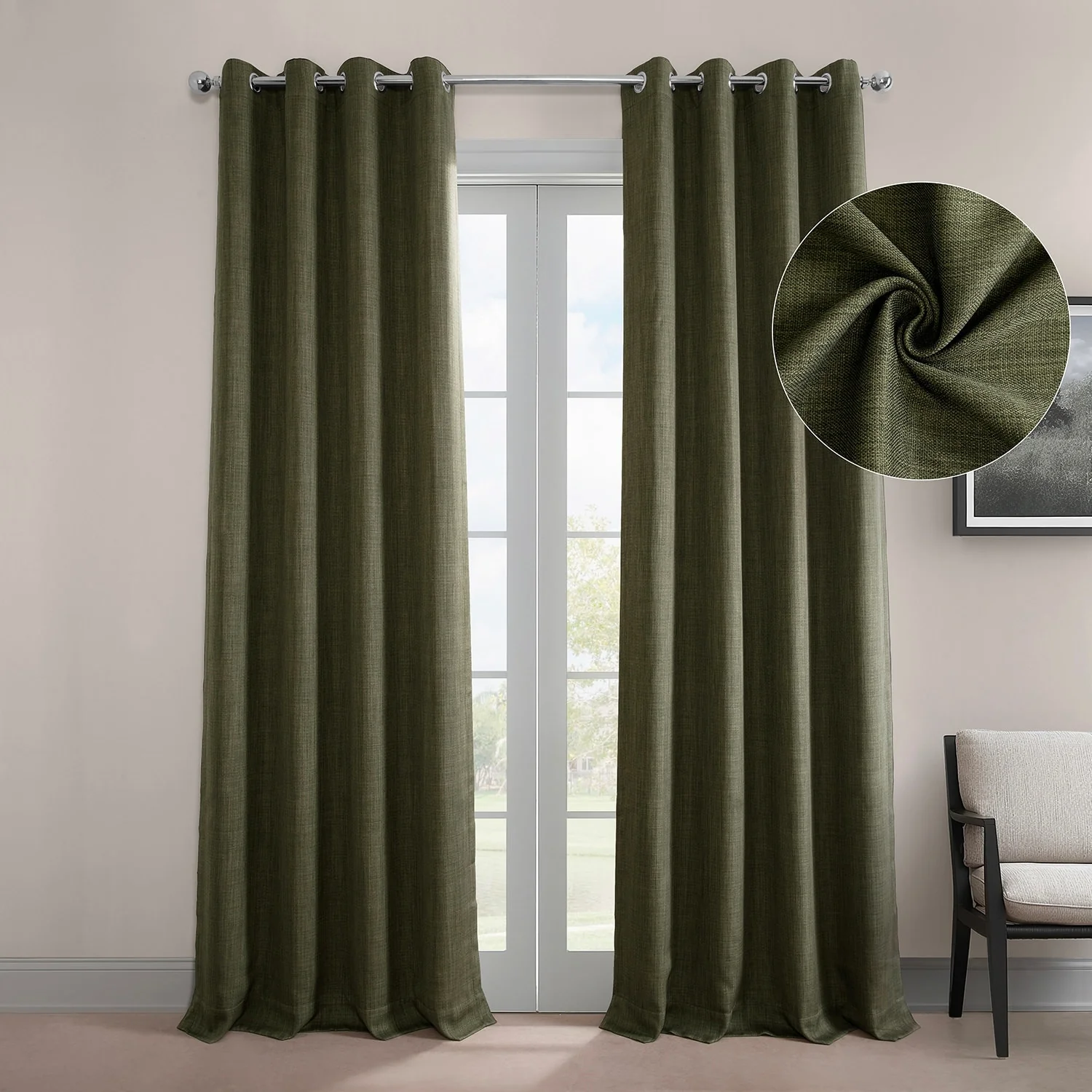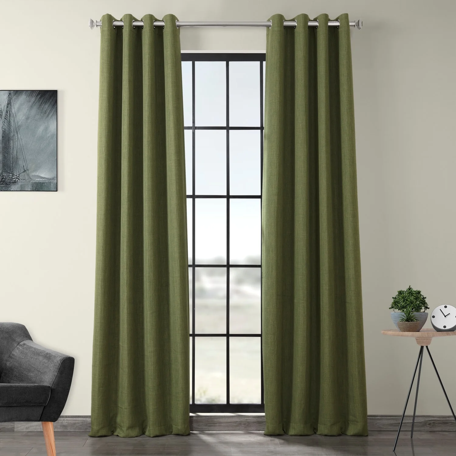 Our Faux Linen Grommet Room Darkening Curtain features rich woven textures in modern designer colors for every style. These heavy faux linen panels have significant room-darkening properties and a weighted hem to hang nicely and keep them in place. This style panel features large metal eyelets that slide onto a curtain rod. They are ideal if you want a clean modern look for a treatment you do not intend to pull back and forth every day. The inside diameter of the eyelets is 1 5/8'. We do not recommend that you use a rod with a diameter larger than 1 1/2' for ease of use. We try to provide the most accurate digital images possible. Color may appear slightly different from one screen to another based on differences in computer monitors, brightness, and other selected settings so there may be variations in color between the actual product and the way it appears online. This curtain offers Room Darkening capabilities with an impressive 85% opacity for Blackout effect.