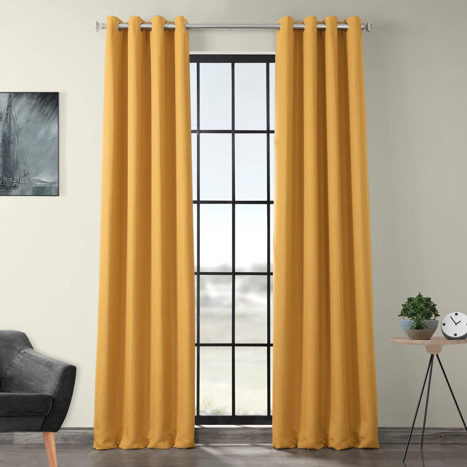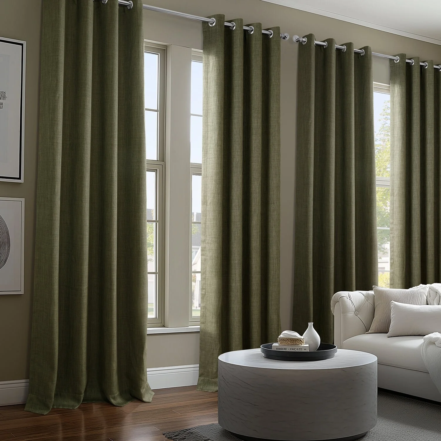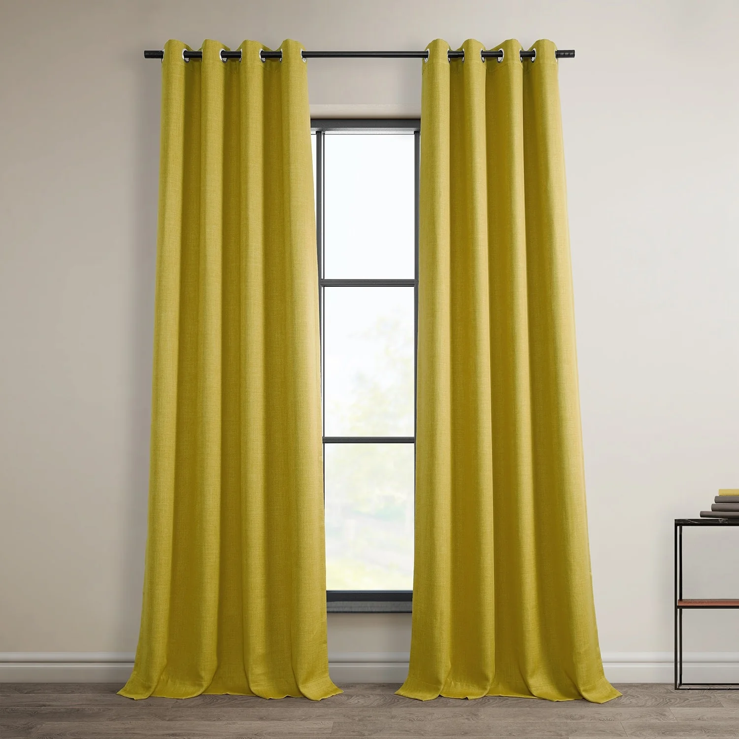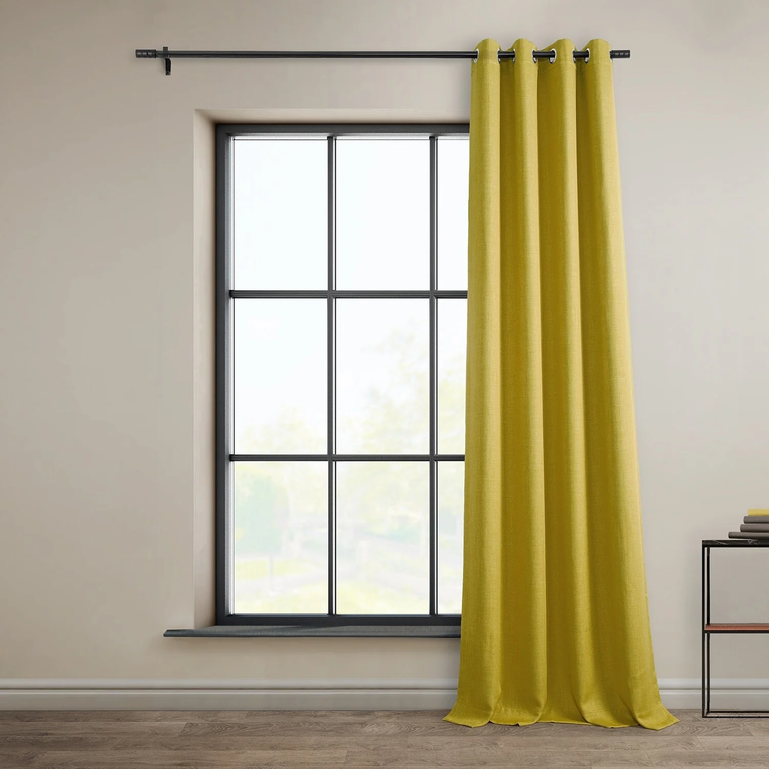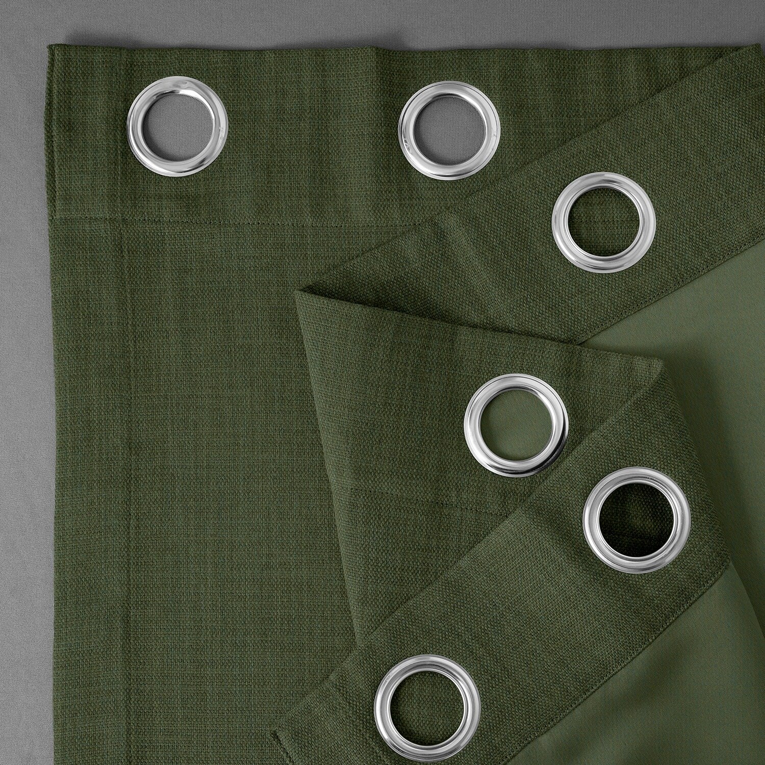 Our Faux Linen Grommet Room Darkening Curtain features rich woven textures in modern designer colors for every style. These heavy faux linen panels have significant room-darkening properties and a weighted hem to hang nicely and keep them in place. This style panel features large metal eyelets that slide onto a curtain rod. They are ideal if you want a clean modern look for a treatment you do not intend to pull back and forth every day. The inside diameter of the eyelets is 1 5/8'. We do not recommend that you use a rod with a diameter larger than 1 1/2' for ease of use. We try to provide the most accurate digital images possible. Color may appear slightly different from one screen to another based on differences in computer monitors, brightness, and other selected settings so there may be variations in color between the actual product and the way it appears online. This curtain offers Room Darkening capabilities with an impressive 85% opacity for Blackout effect.