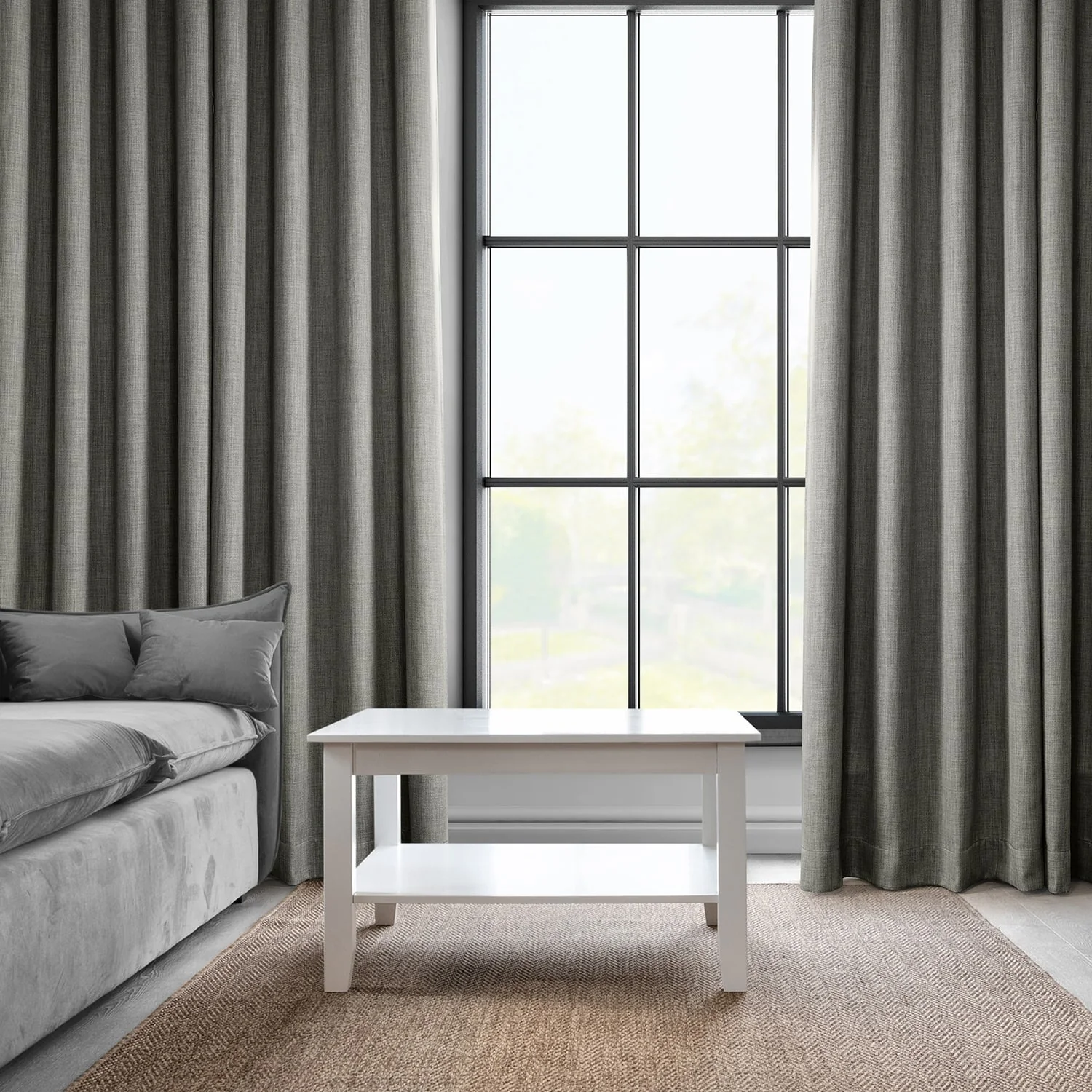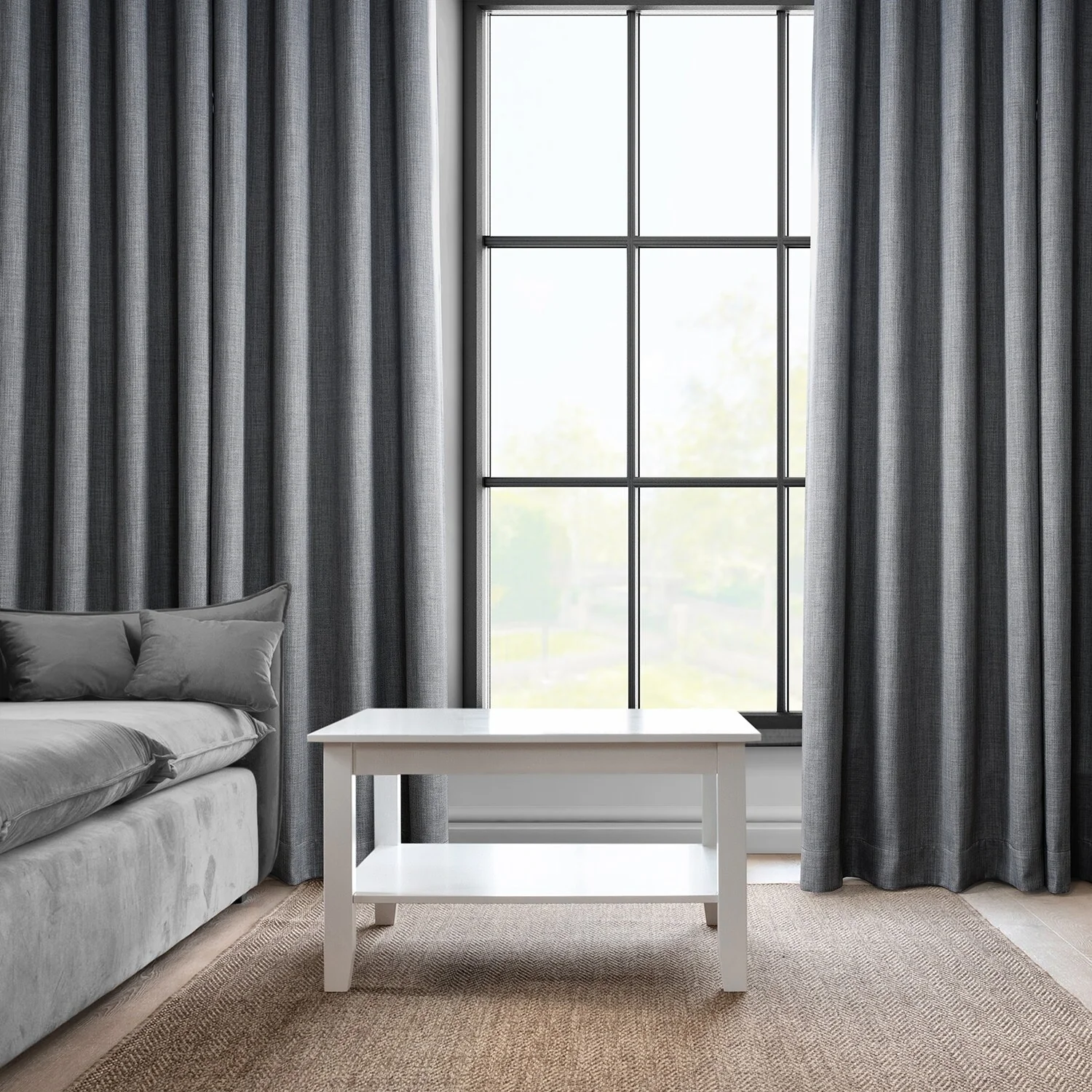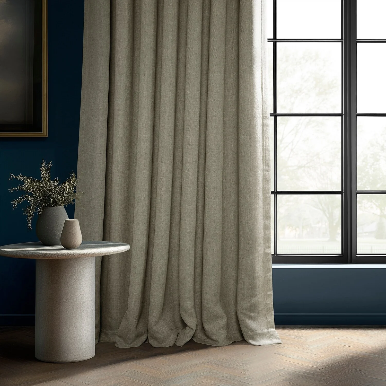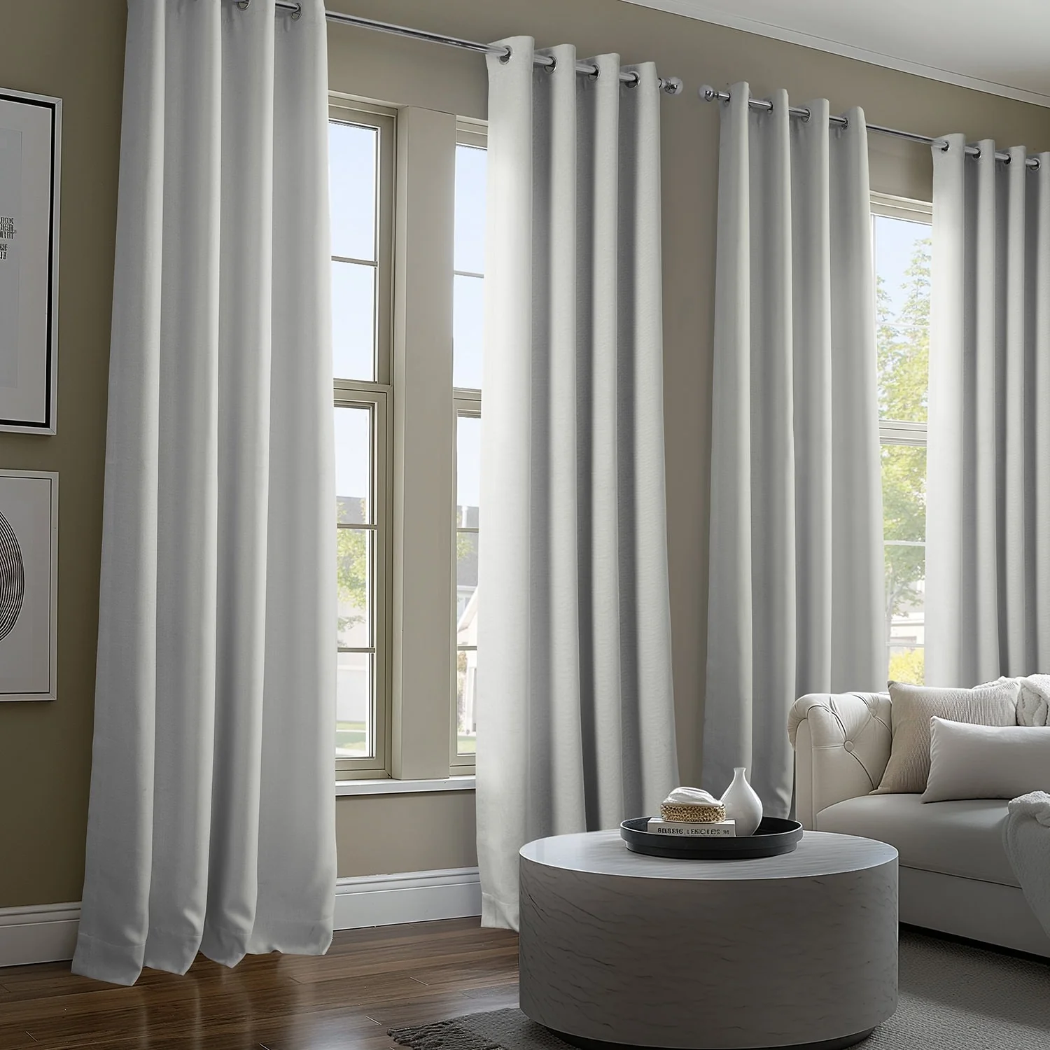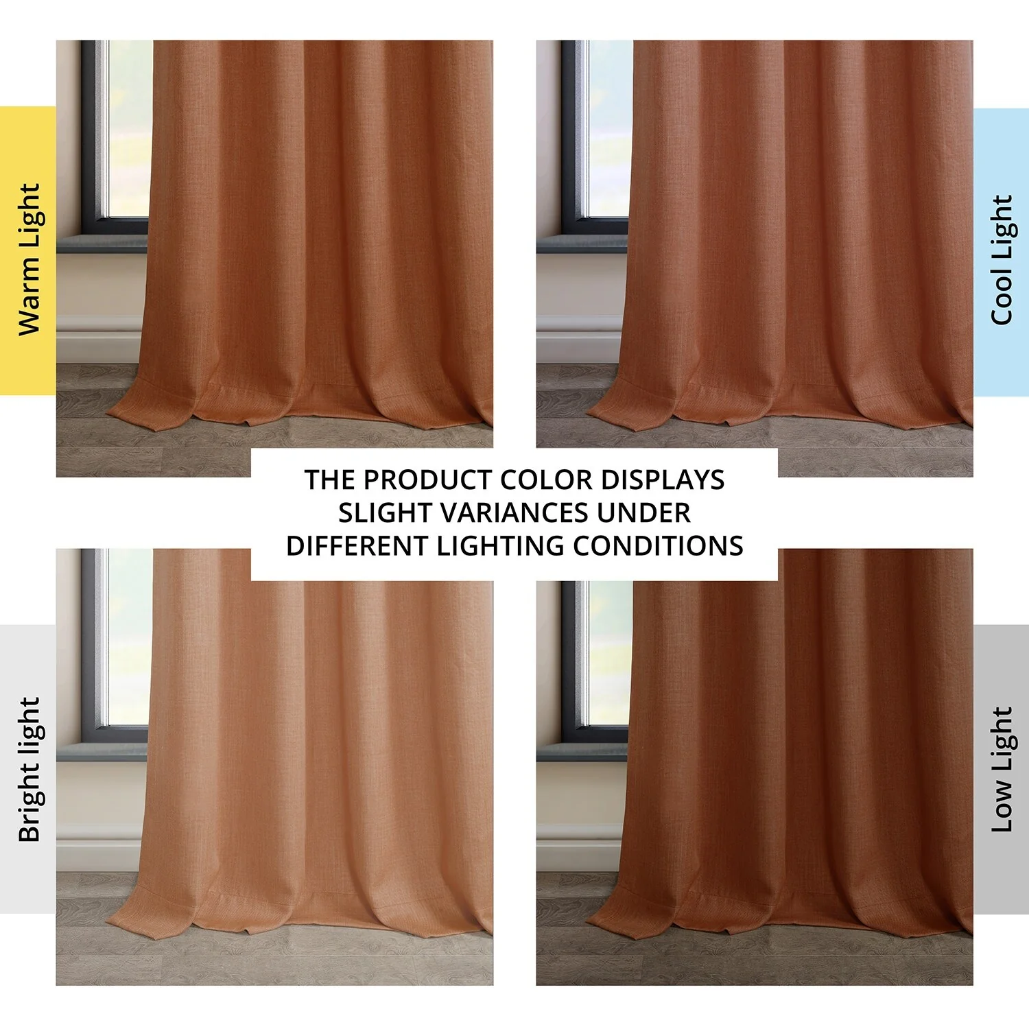 Our Faux Linen Grommet Room Darkening Curtain features rich woven textures in modern designer colors for every style. These heavy faux linen panels have significant room-darkening properties and a weighted hem to hang nicely and keep them in place. This style panel features large metal eyelets that slide onto a curtain rod. They are ideal if you want a clean modern look for a treatment you do not intend to pull back and forth every day. The inside diameter of the eyelets is 1 5/8'. We do not recommend that you use a rod with a diameter larger than 1 1/2' for ease of use. We try to provide the most accurate digital images possible. Color may appear slightly different from one screen to another based on differences in computer monitors, brightness, and other selected settings so there may be variations in color between the actual product and the way it appears online. This curtain offers Room Darkening capabilities with an impressive 85% opacity for Blackout effect.