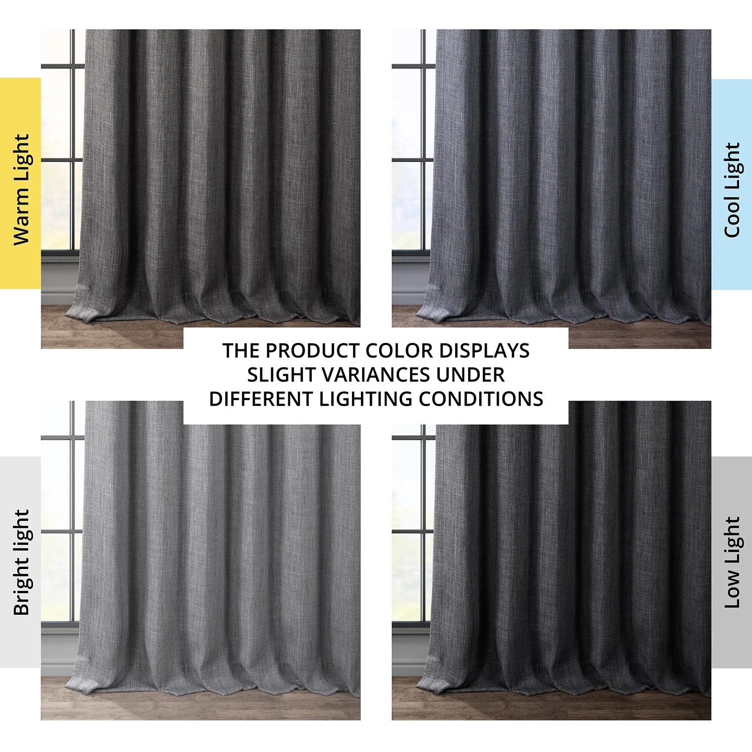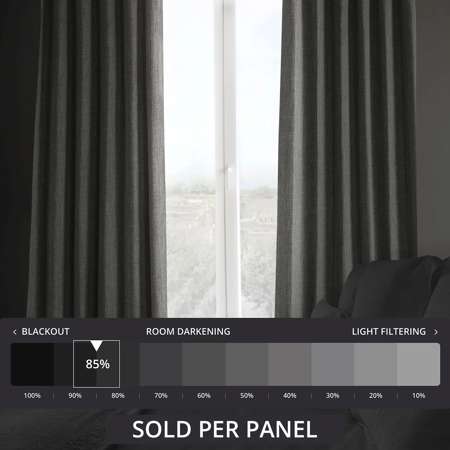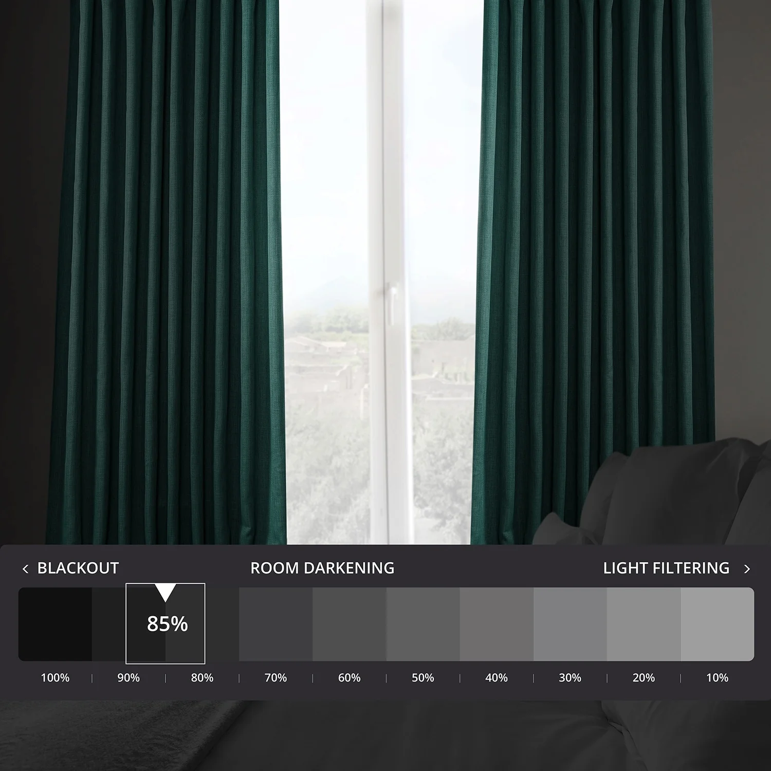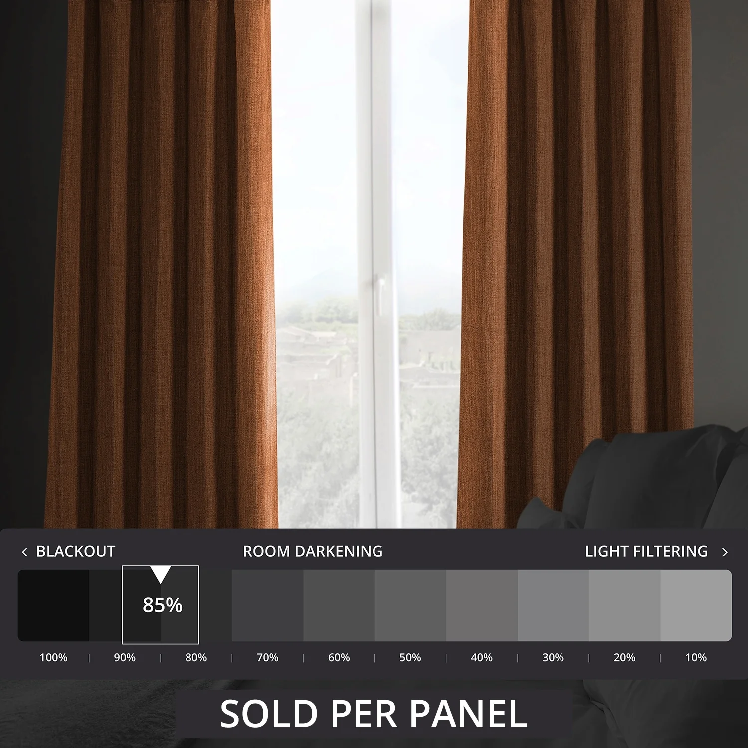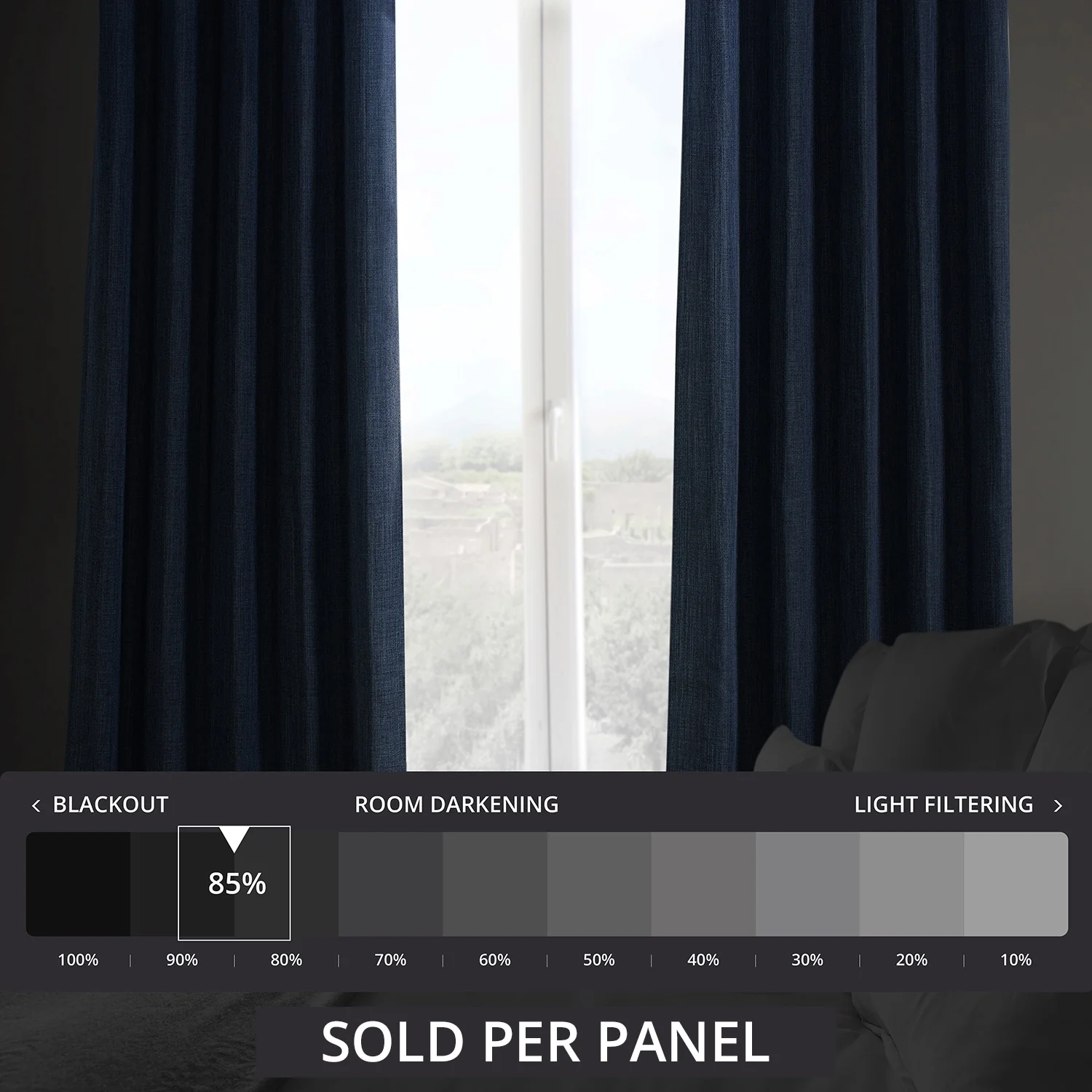 Our Faux Linen Room Darkening Curtain features rich woven textures in modern designer colors for every style. These heavy faux linen panels have significant room-darkening properties and a weighted hem to hang nicely and keep them in place. These curtains have our most versatile header, a rod pocket with back tabs, and hook belt. There is a 3' pole pocket in the header and back tab loops that will accommodate up to a 1.5' diameter curtain rod with no additional hardware. Additionally, these panels can be attached to curtain rings from clips or by running an S-shaped drapery pin through the back of the header and hanging the drapery pin through an eyelet on the rings. These curtains are sold with no hardware like rings or hooks. We try to provide the most accurate digital images possible. Color may appear slightly different from one screen to another based on differences in computer monitors, brightness, and other selected settings so there may be variations in color between the actual product and the way it appears online. This curtain offers Room Darkening capabilities with an impressive 85% opacity for Blackout effect.