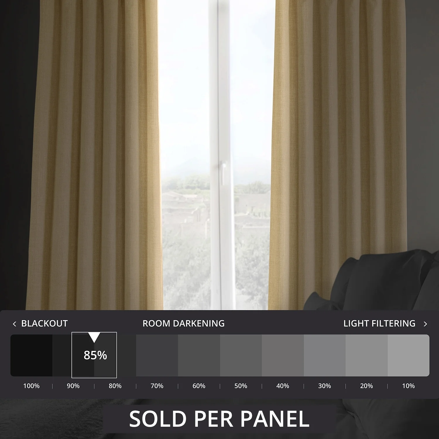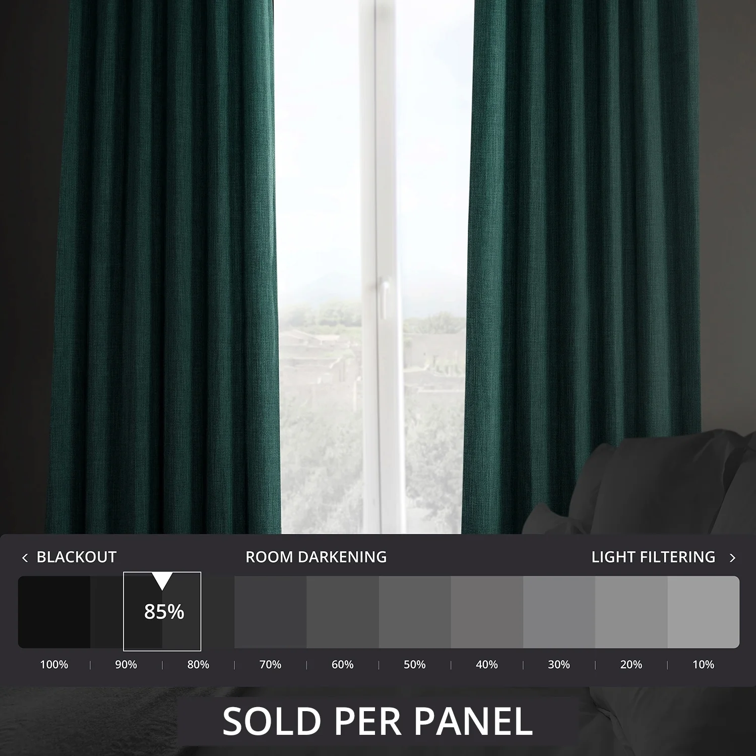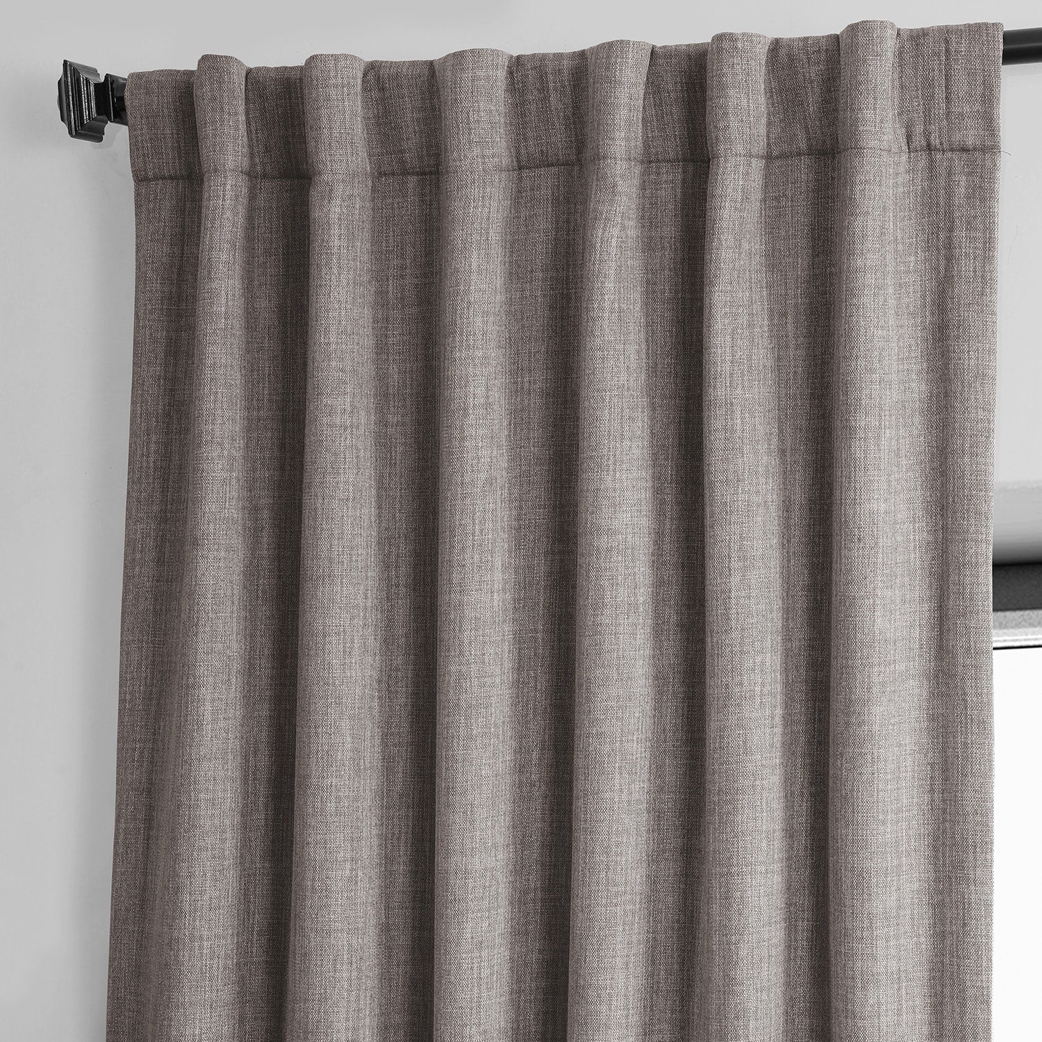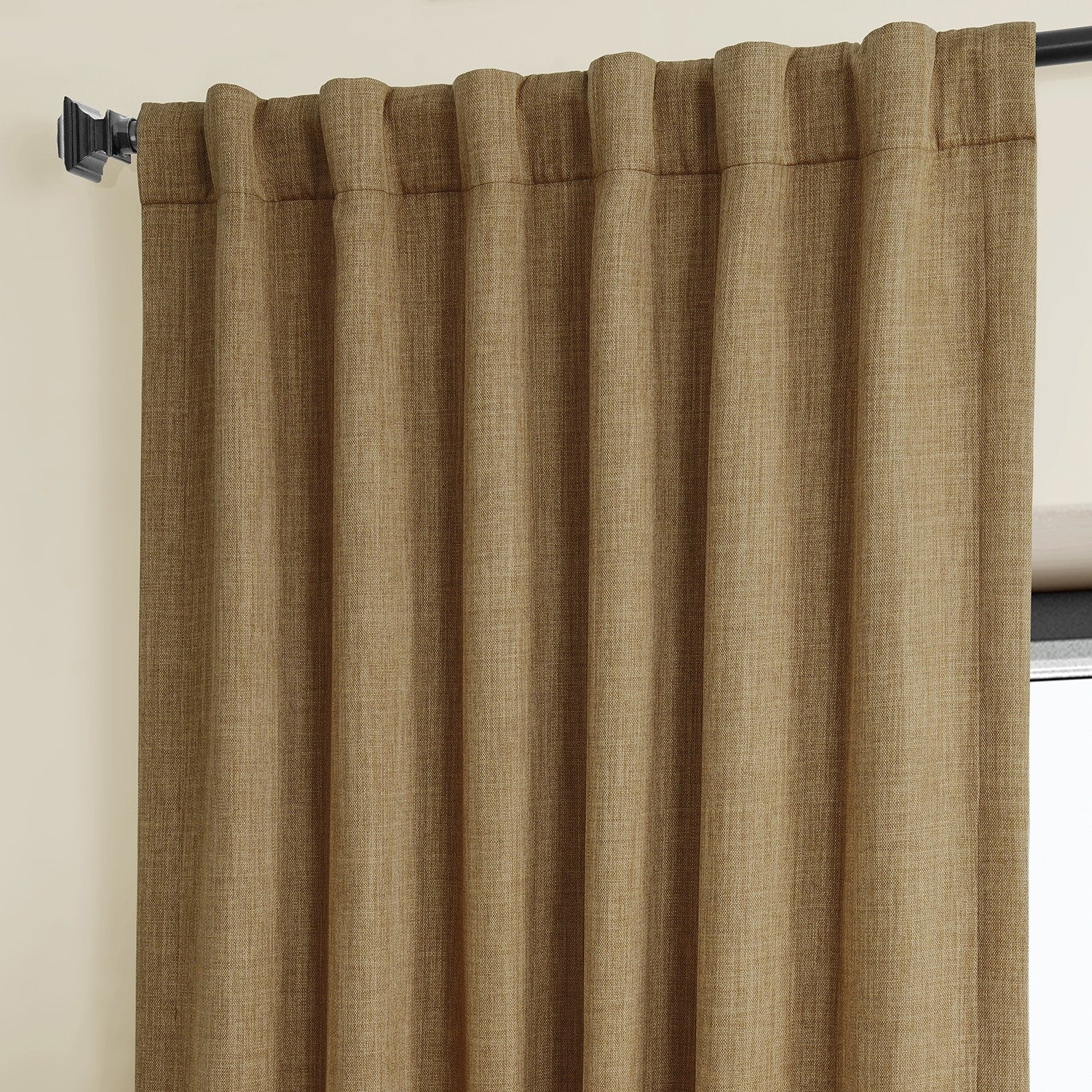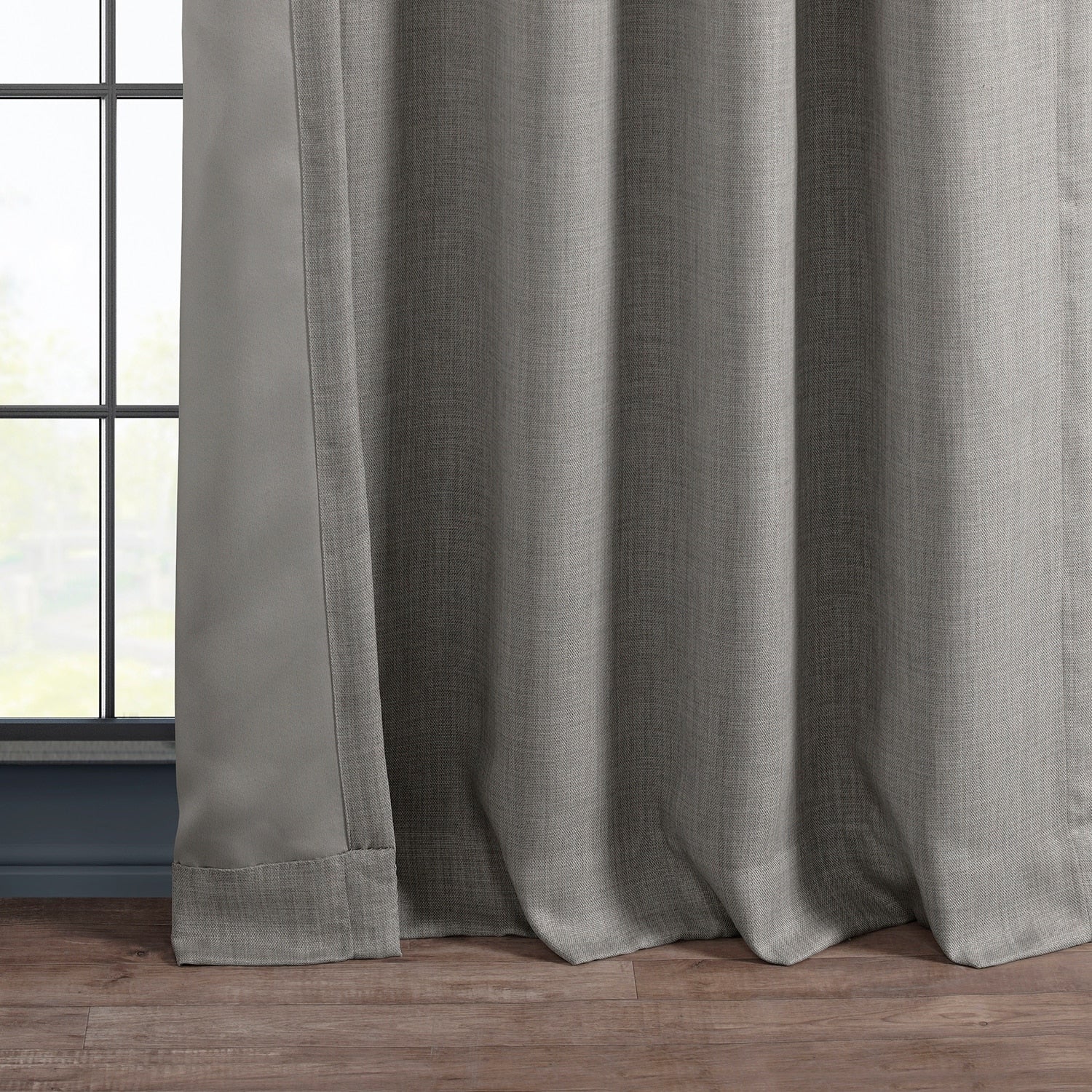 Our Faux Linen Room Darkening Curtain features rich woven textures in modern designer colors for every style. These heavy faux linen panels have significant room-darkening properties and a weighted hem to hang nicely and keep them in place. These curtains have our most versatile header, a rod pocket with back tabs, and hook belt. There is a 3' pole pocket in the header and back tab loops that will accommodate up to a 1.5' diameter curtain rod with no additional hardware. Additionally, these panels can be attached to curtain rings from clips or by running an S-shaped drapery pin through the back of the header and hanging the drapery pin through an eyelet on the rings. These curtains are sold with no hardware like rings or hooks. We try to provide the most accurate digital images possible. Color may appear slightly different from one screen to another based on differences in computer monitors, brightness, and other selected settings so there may be variations in color between the actual product and the way it appears online. This curtain offers Room Darkening capabilities with an impressive 85% opacity for Blackout effect.