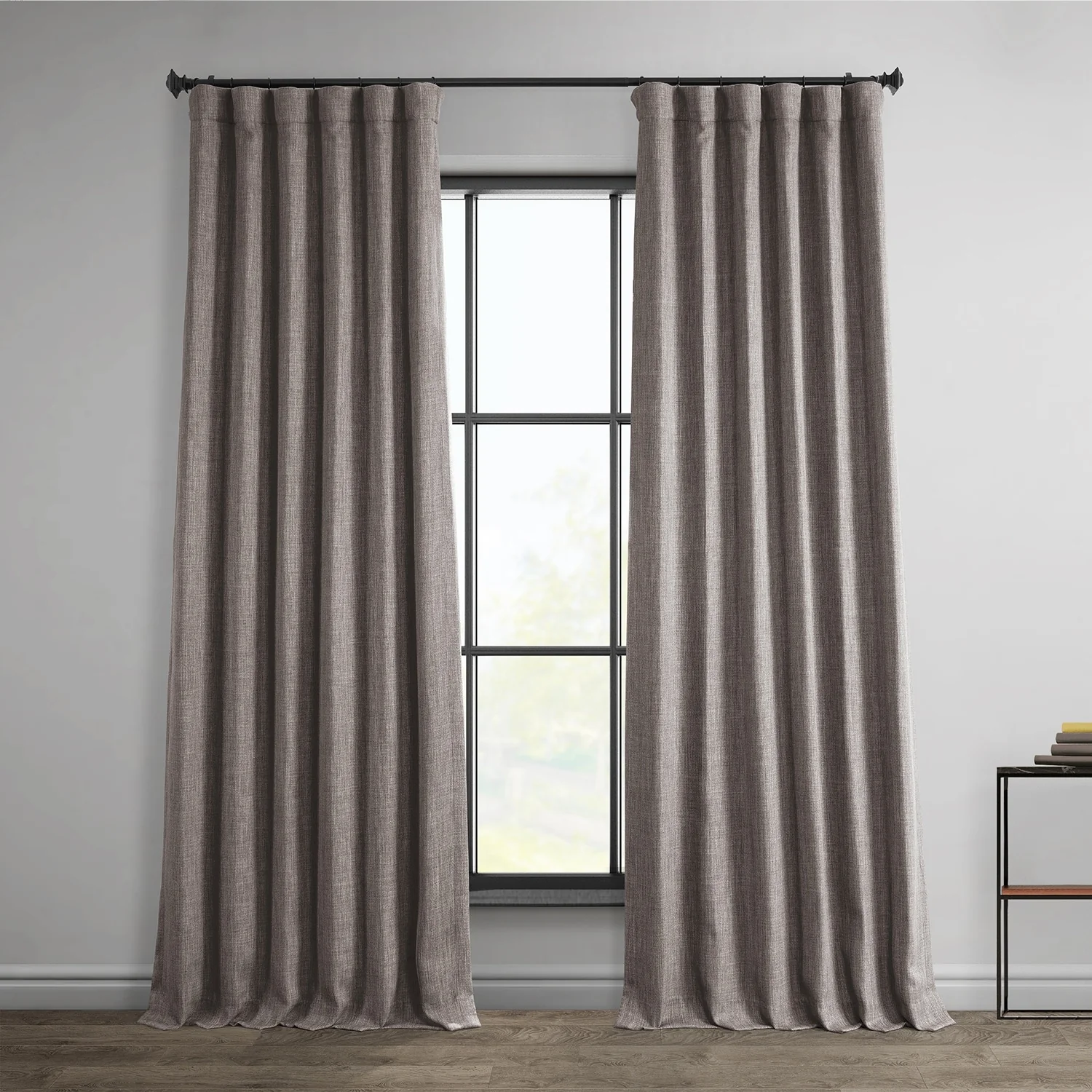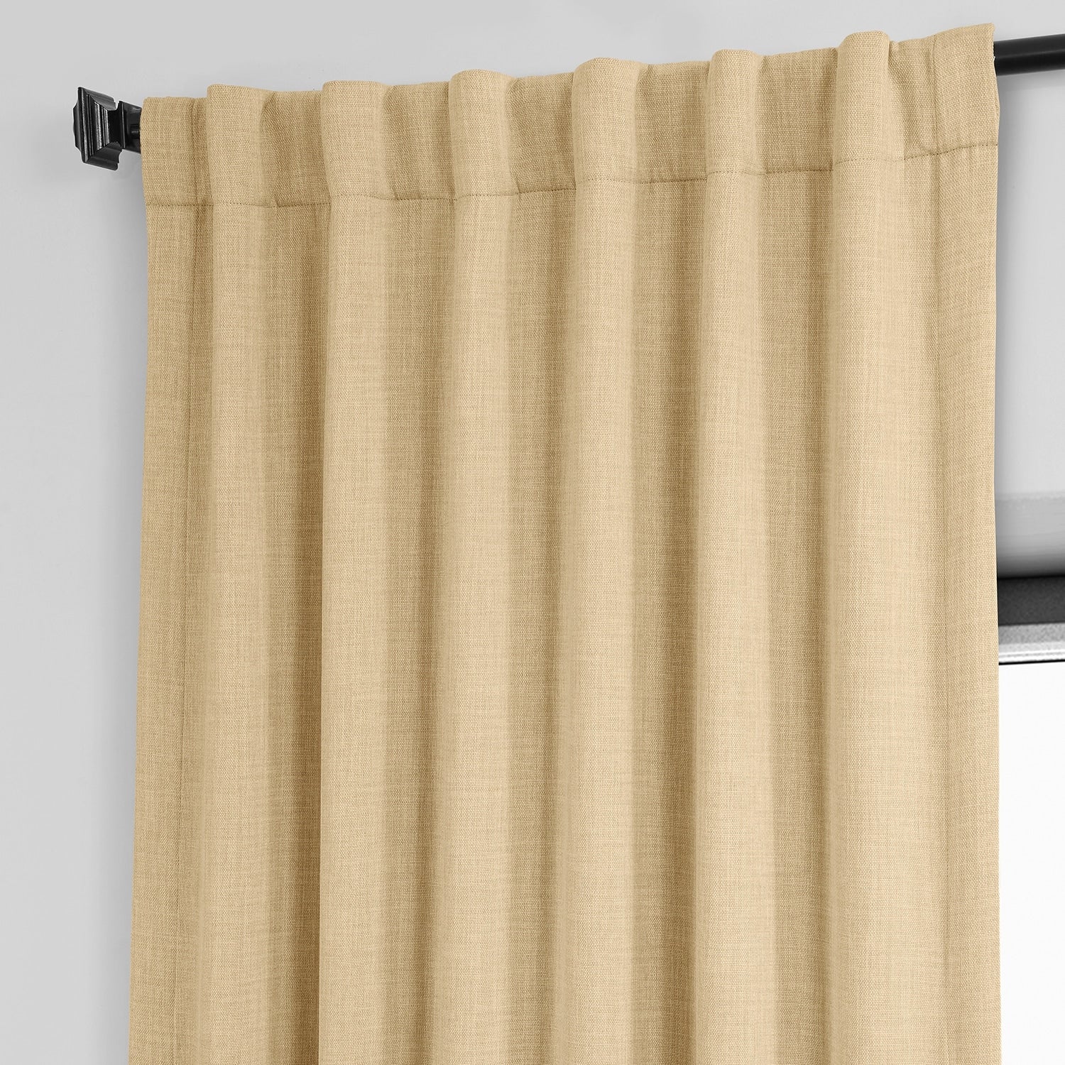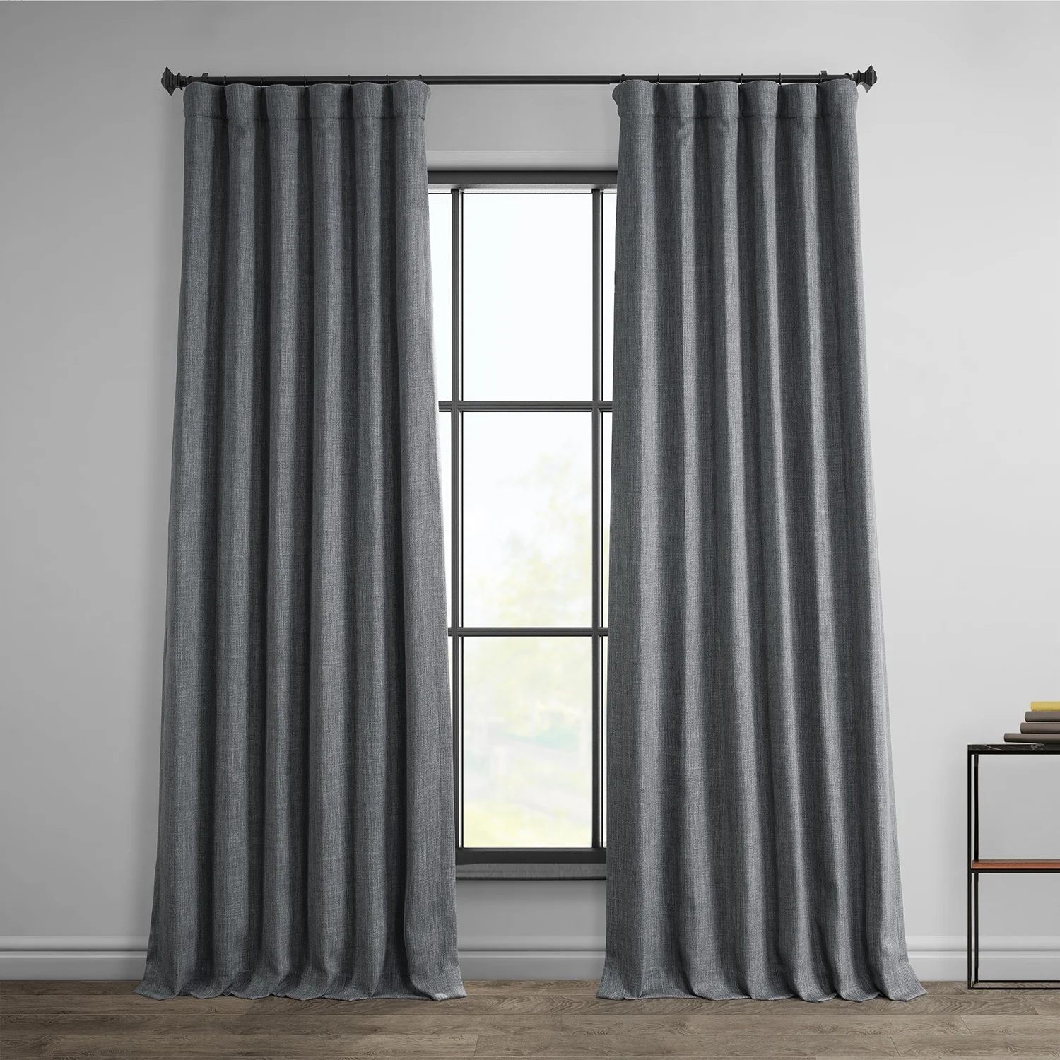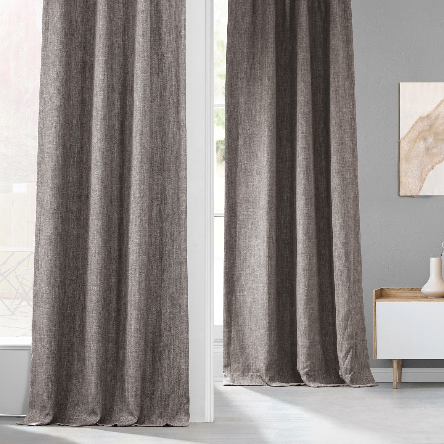 Our Faux Linen Room Darkening Curtain features rich woven textures in modern designer colors for every style. These heavy faux linen panels have significant room-darkening properties and a weighted hem to hang nicely and keep them in place. These curtains have our most versatile header, a rod pocket with back tabs, and hook belt. There is a 3' pole pocket in the header and back tab loops that will accommodate up to a 1.5' diameter curtain rod with no additional hardware. Additionally, these panels can be attached to curtain rings from clips or by running an S-shaped drapery pin through the back of the header and hanging the drapery pin through an eyelet on the rings. These curtains are sold with no hardware like rings or hooks. We try to provide the most accurate digital images possible. Color may appear slightly different from one screen to another based on differences in computer monitors, brightness, and other selected settings so there may be variations in color between the actual product and the way it appears online. This curtain offers Room Darkening capabilities with an impressive 85% opacity for Blackout effect.