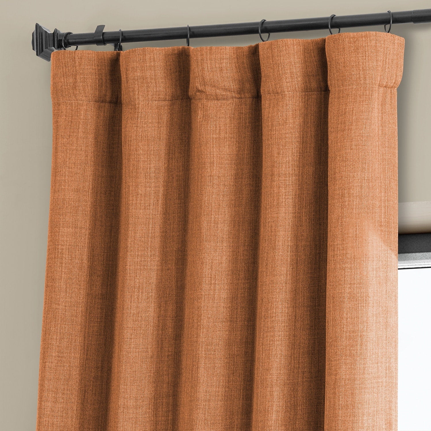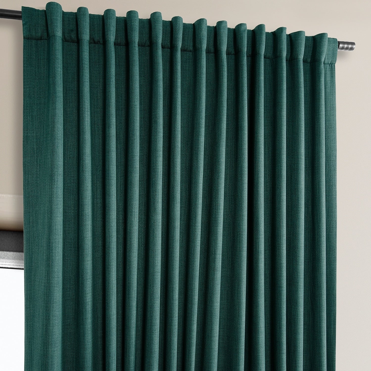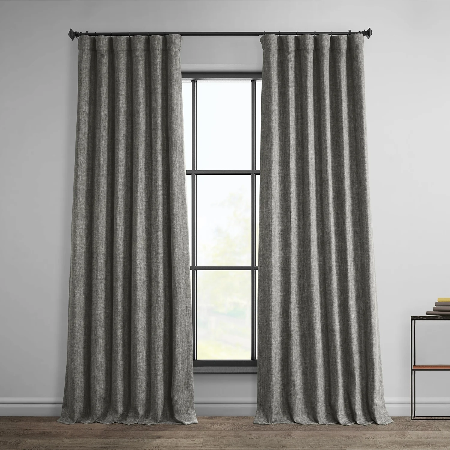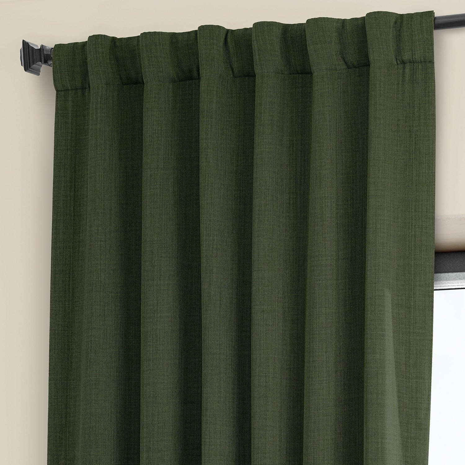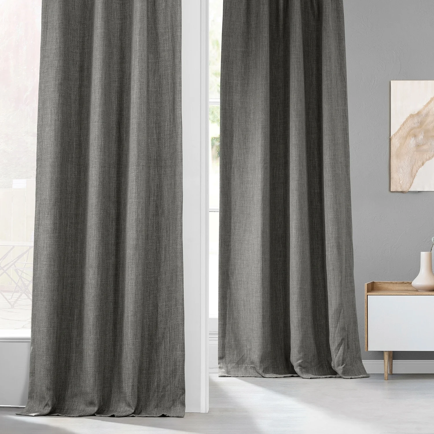 Our Faux Linen Room Darkening Curtain features rich woven textures in modern designer colors for every style. These heavy faux linen panels have significant room-darkening properties and a weighted hem to hang nicely and keep them in place. These curtains have our most versatile header, a rod pocket with back tabs, and hook belt. There is a 3' pole pocket in the header and back tab loops that will accommodate up to a 1.5' diameter curtain rod with no additional hardware. Additionally, these panels can be attached to curtain rings from clips or by running an S-shaped drapery pin through the back of the header and hanging the drapery pin through an eyelet on the rings. These curtains are sold with no hardware like rings or hooks. We try to provide the most accurate digital images possible. Color may appear slightly different from one screen to another based on differences in computer monitors, brightness, and other selected settings so there may be variations in color between the actual product and the way it appears online. This curtain offers Room Darkening capabilities with an impressive 85% opacity for Blackout effect.