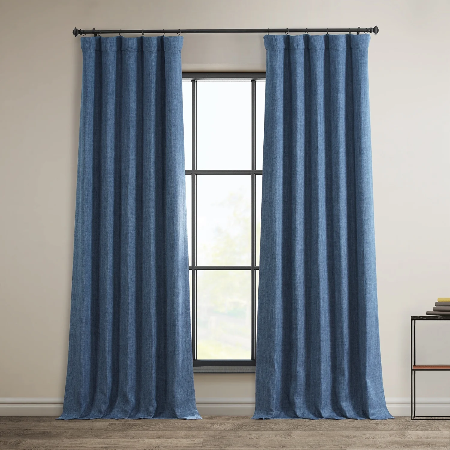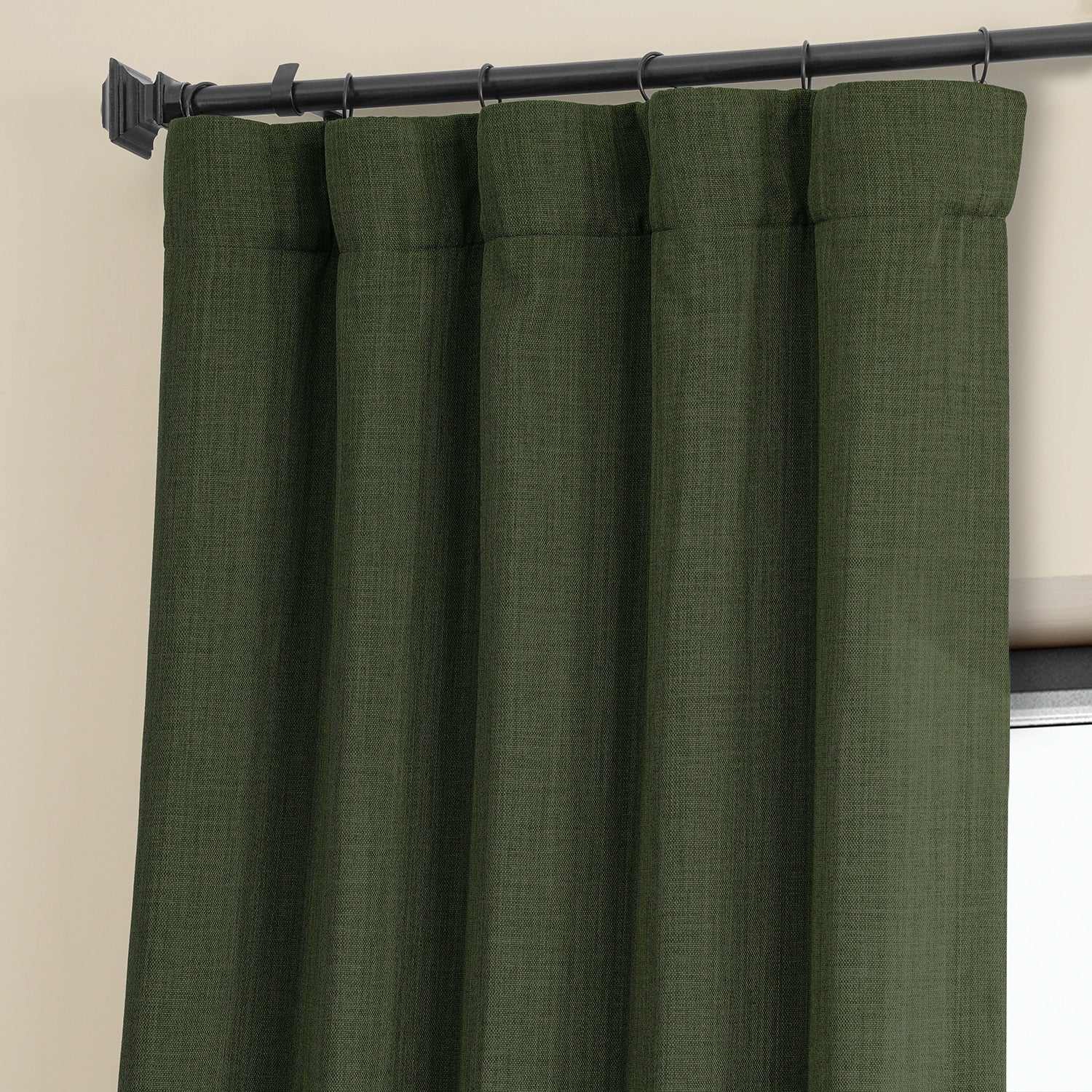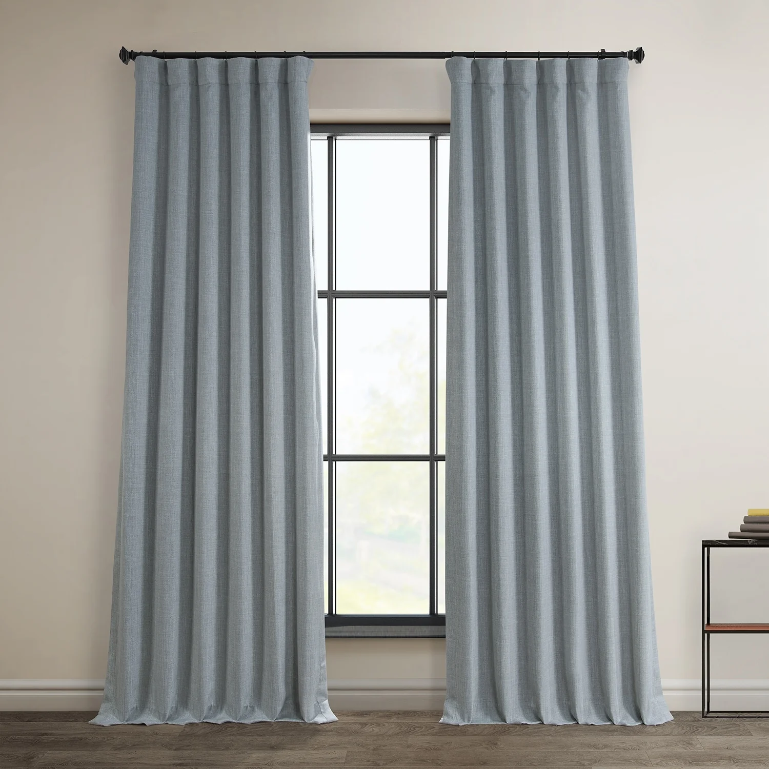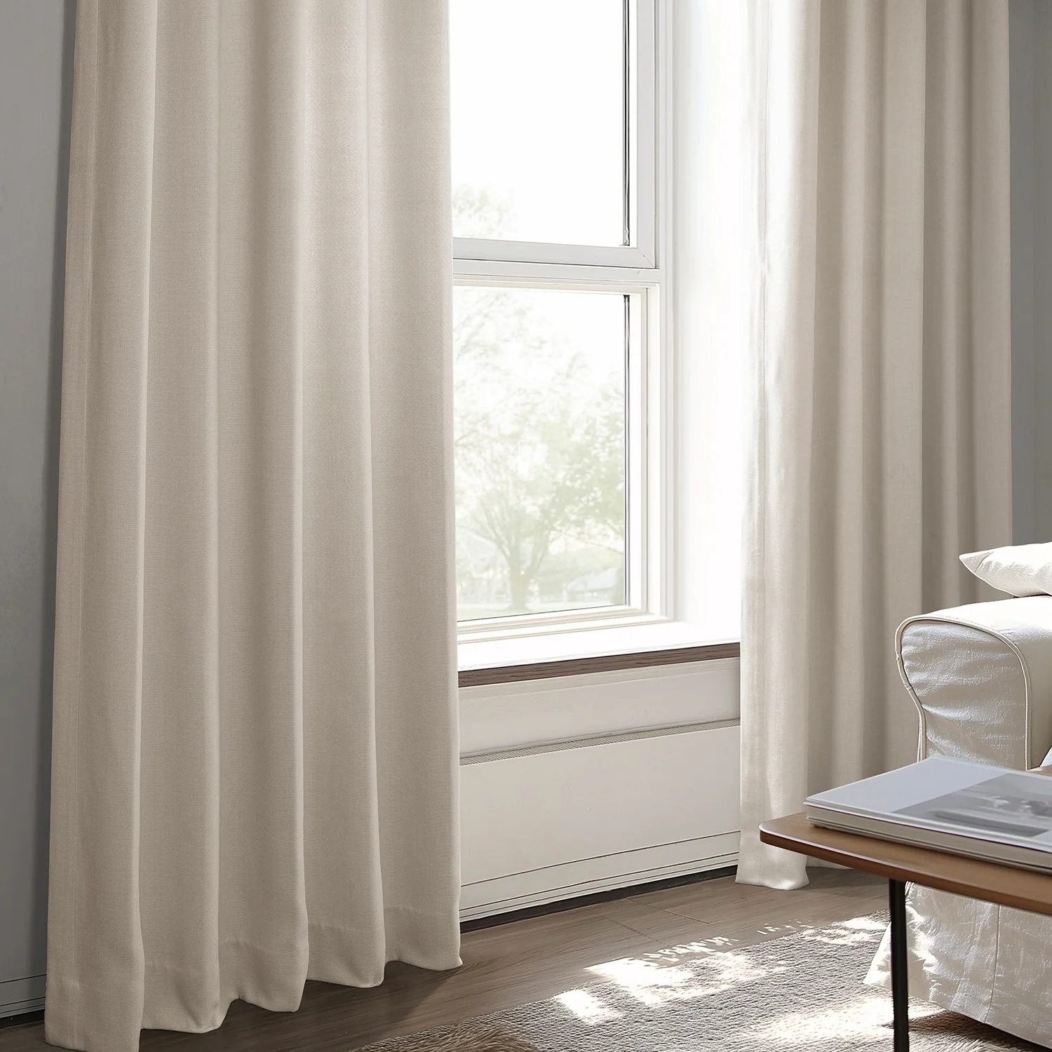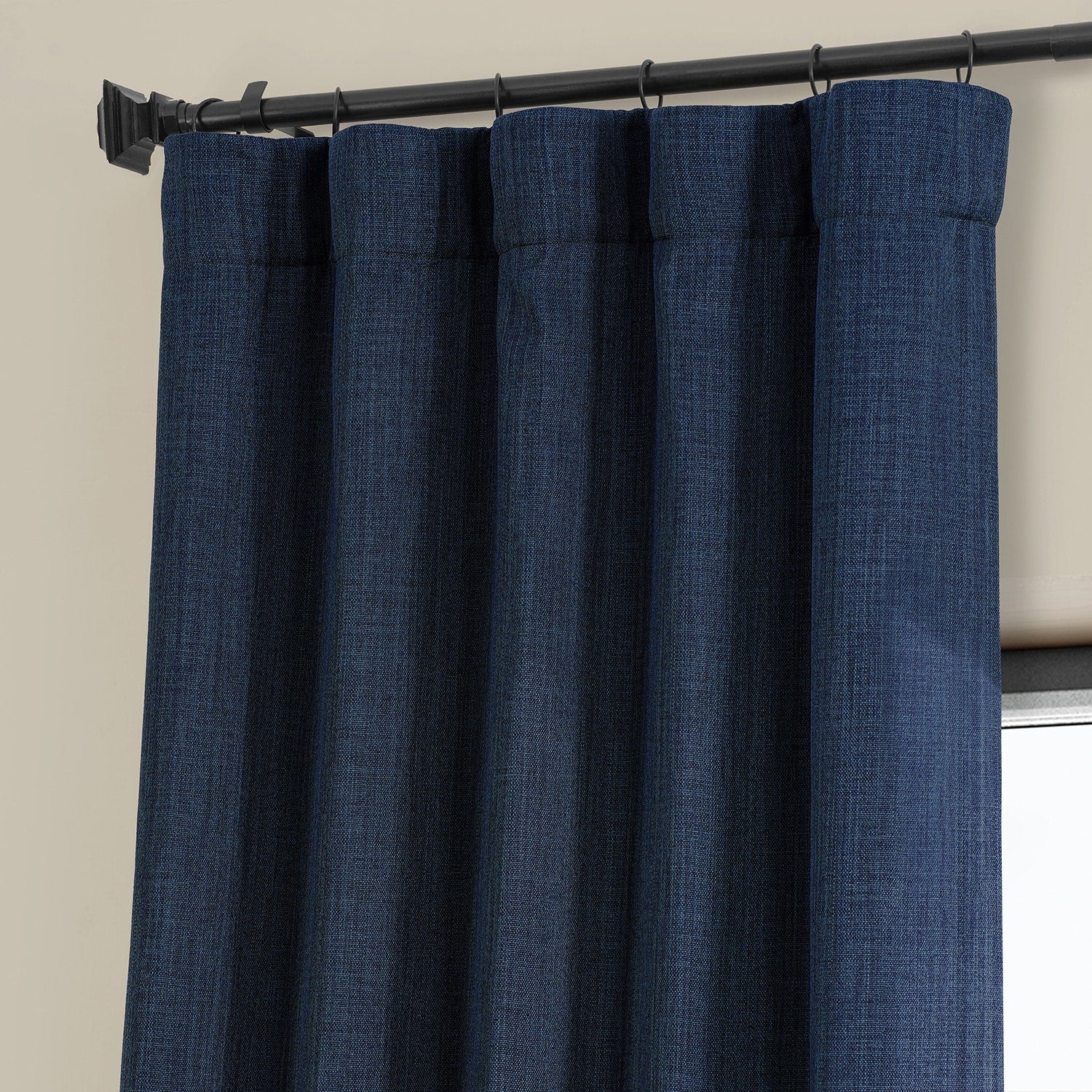 Our Faux Linen Room Darkening Curtain features rich woven textures in modern designer colors for every style. These heavy faux linen panels have significant room-darkening properties and a weighted hem to hang nicely and keep them in place. These curtains have our most versatile header, a rod pocket with back tabs, and hook belt. There is a 3' pole pocket in the header and back tab loops that will accommodate up to a 1.5' diameter curtain rod with no additional hardware. Additionally, these panels can be attached to curtain rings from clips or by running an S-shaped drapery pin through the back of the header and hanging the drapery pin through an eyelet on the rings. These curtains are sold with no hardware like rings or hooks. We try to provide the most accurate digital images possible. Color may appear slightly different from one screen to another based on differences in computer monitors, brightness, and other selected settings so there may be variations in color between the actual product and the way it appears online. This curtain offers Room Darkening capabilities with an impressive 85% opacity for Blackout effect.