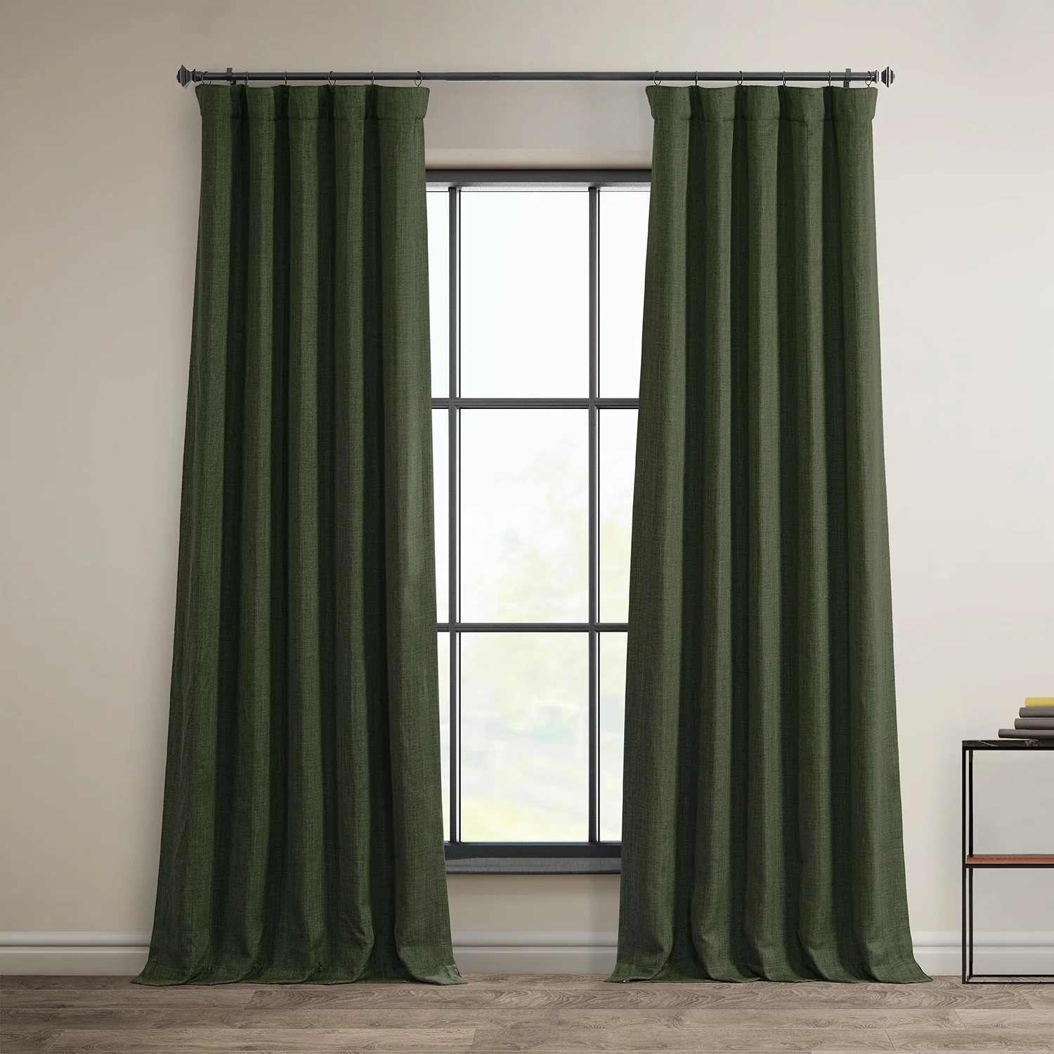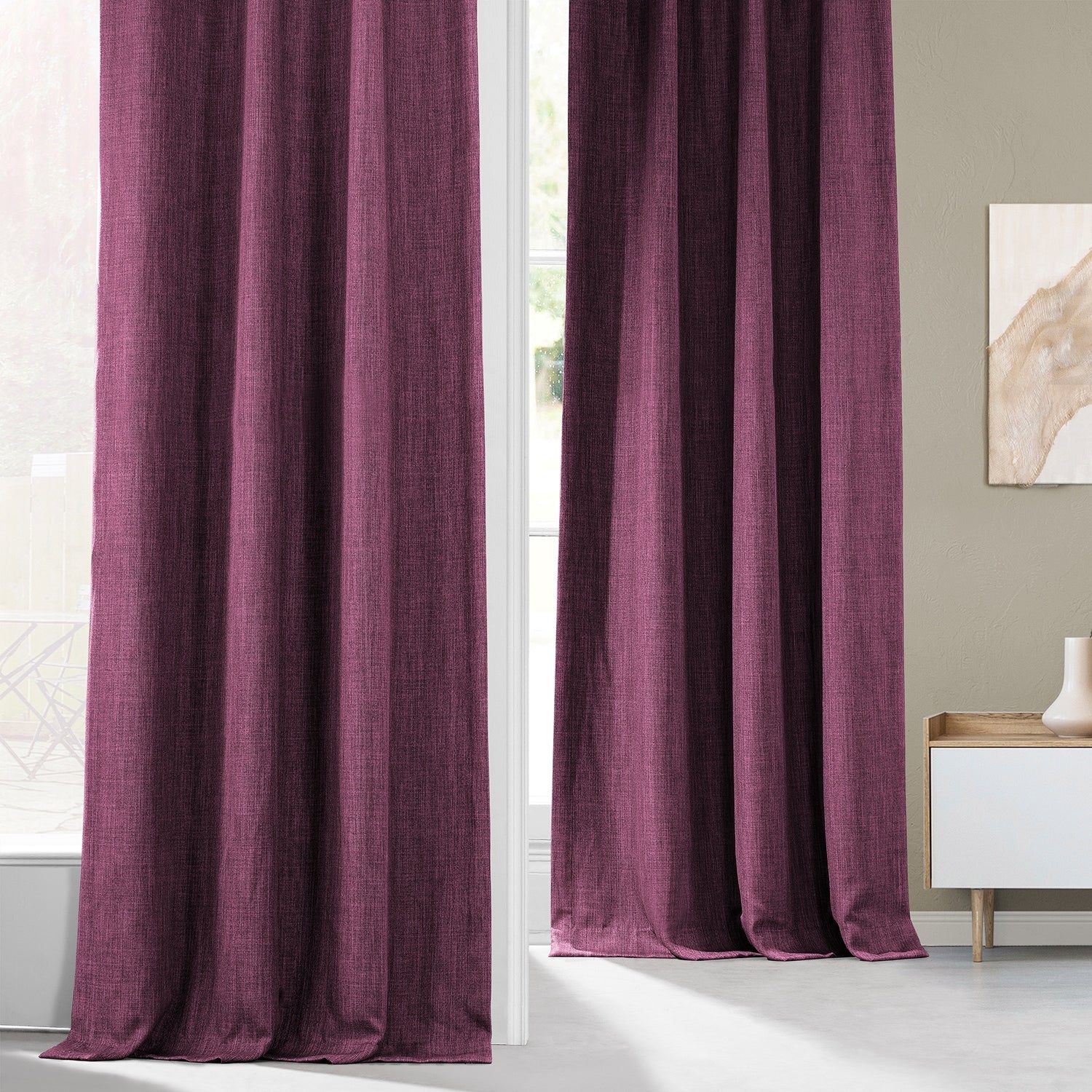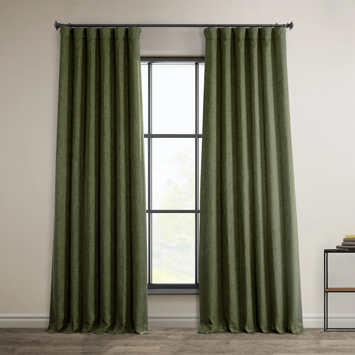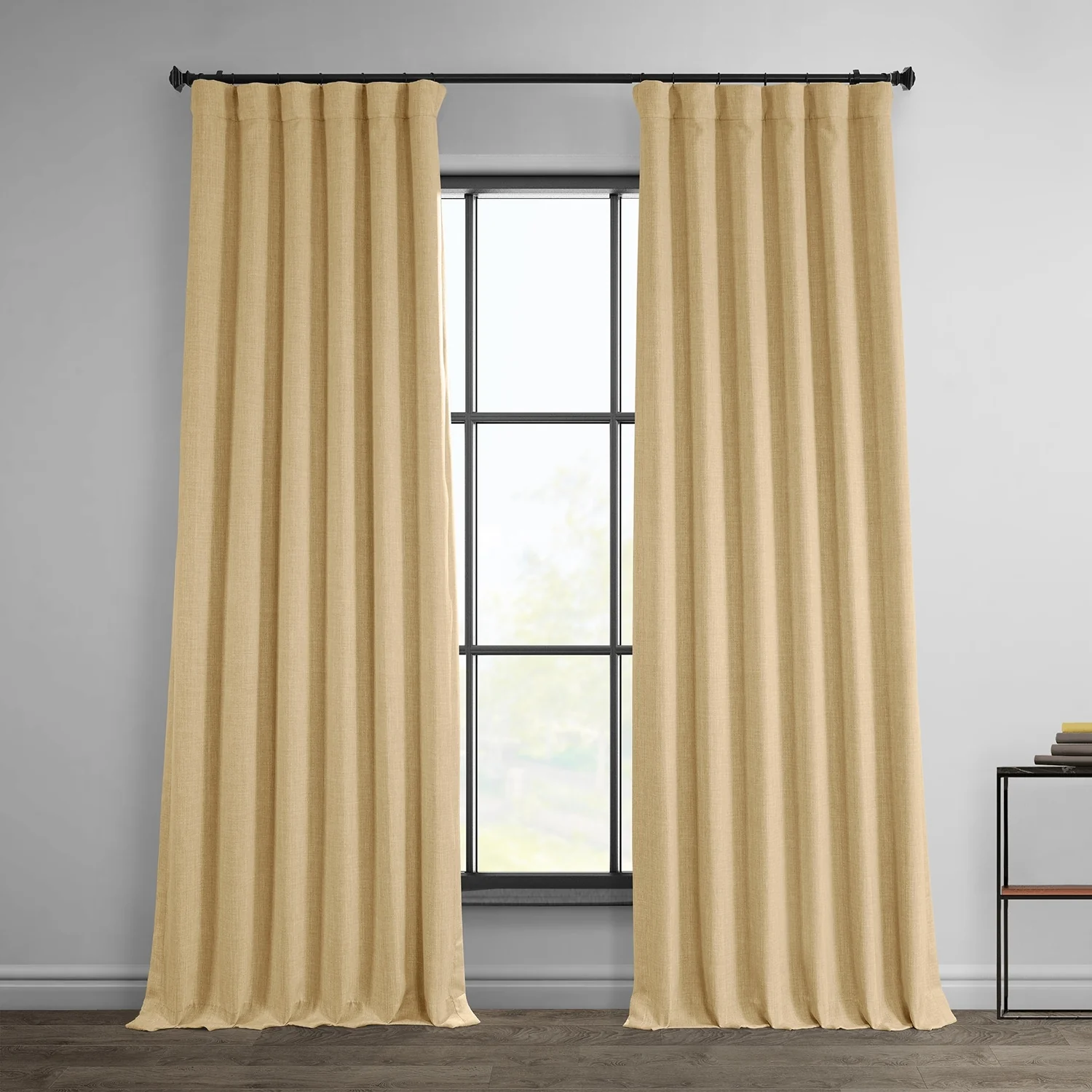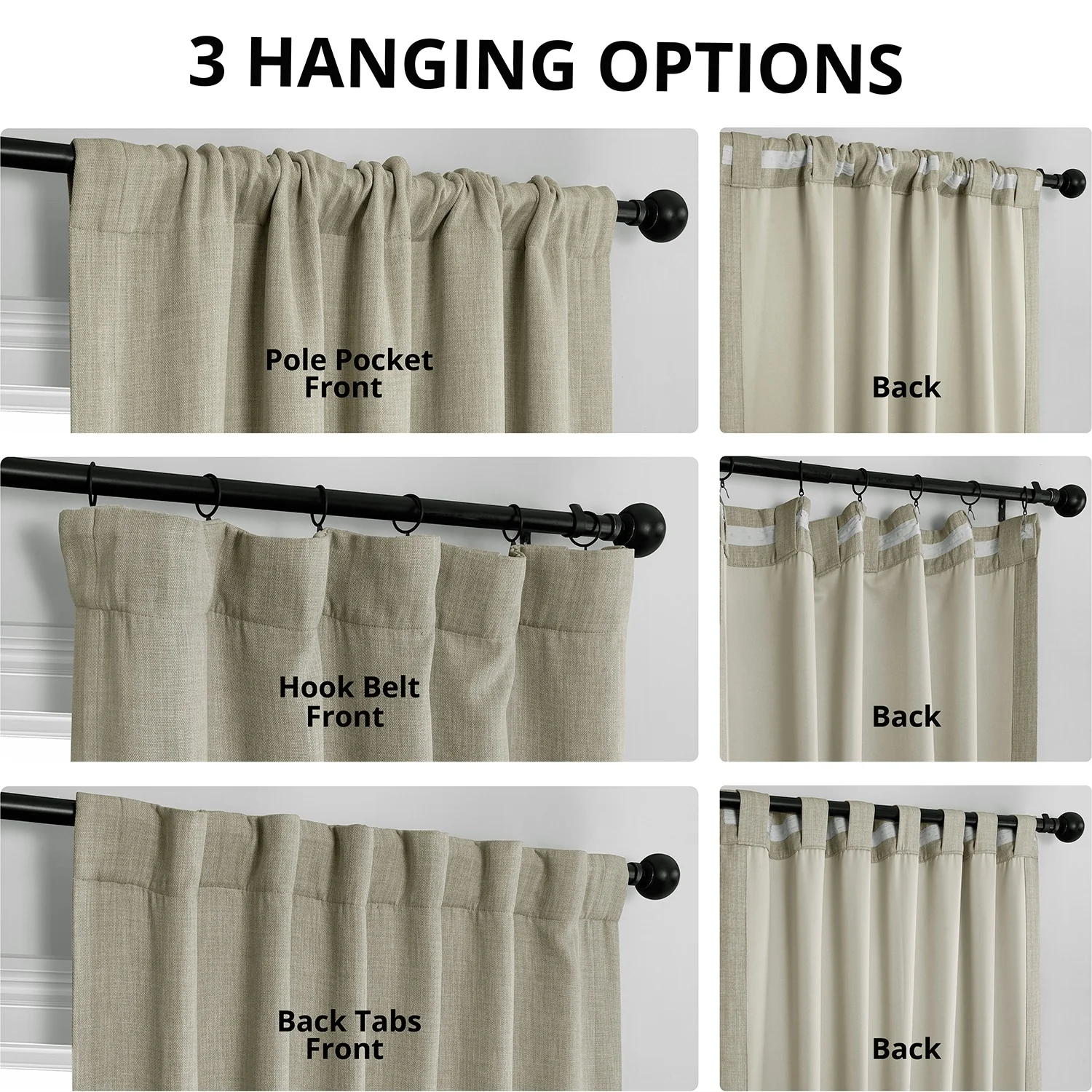 Our Faux Linen Room Darkening Curtain features rich woven textures in modern designer colors for every style. These heavy faux linen panels have significant room-darkening properties and a weighted hem to hang nicely and keep them in place. These curtains have our most versatile header, a rod pocket with back tabs, and hook belt. There is a 3' pole pocket in the header and back tab loops that will accommodate up to a 1.5' diameter curtain rod with no additional hardware. Additionally, these panels can be attached to curtain rings from clips or by running an S-shaped drapery pin through the back of the header and hanging the drapery pin through an eyelet on the rings. These curtains are sold with no hardware like rings or hooks. We try to provide the most accurate digital images possible. Color may appear slightly different from one screen to another based on differences in computer monitors, brightness, and other selected settings so there may be variations in color between the actual product and the way it appears online. This curtain offers Room Darkening capabilities with an impressive 85% opacity for Blackout effect.