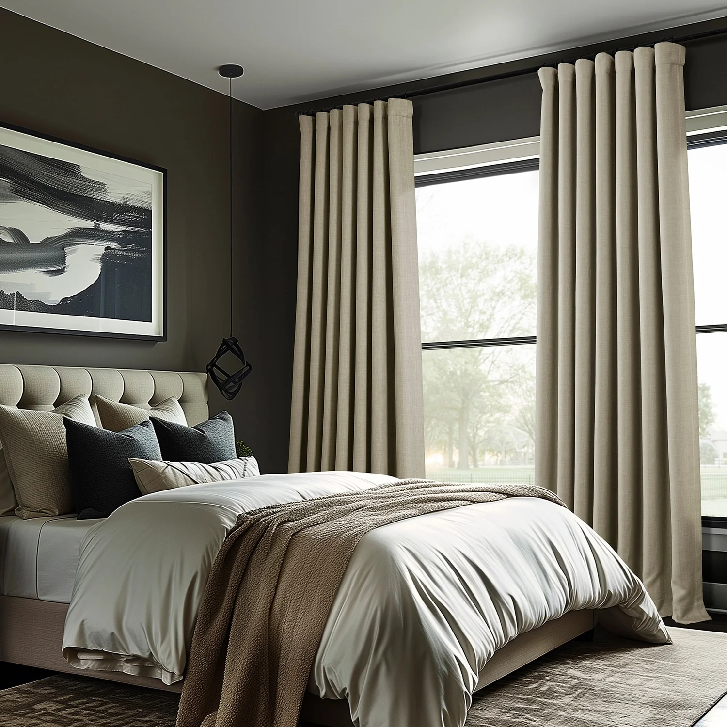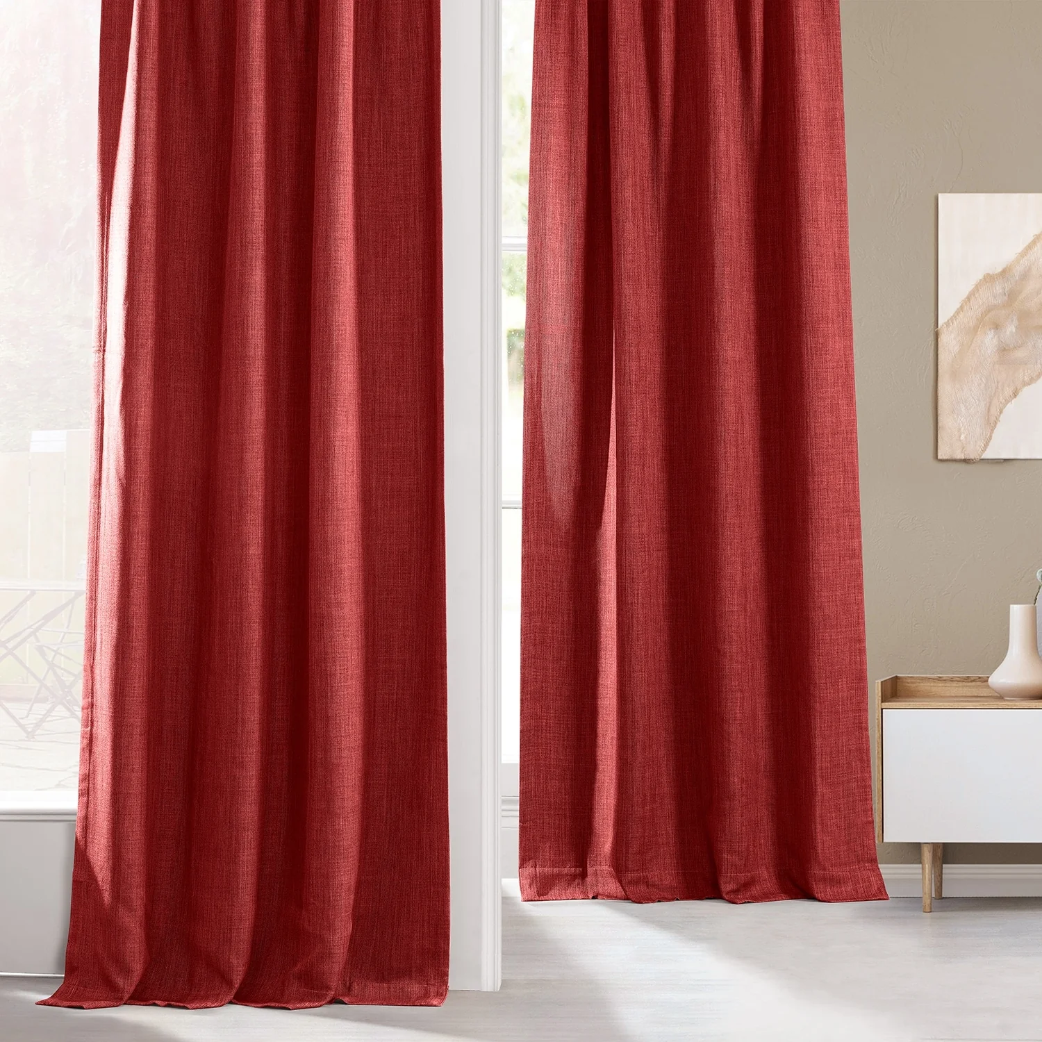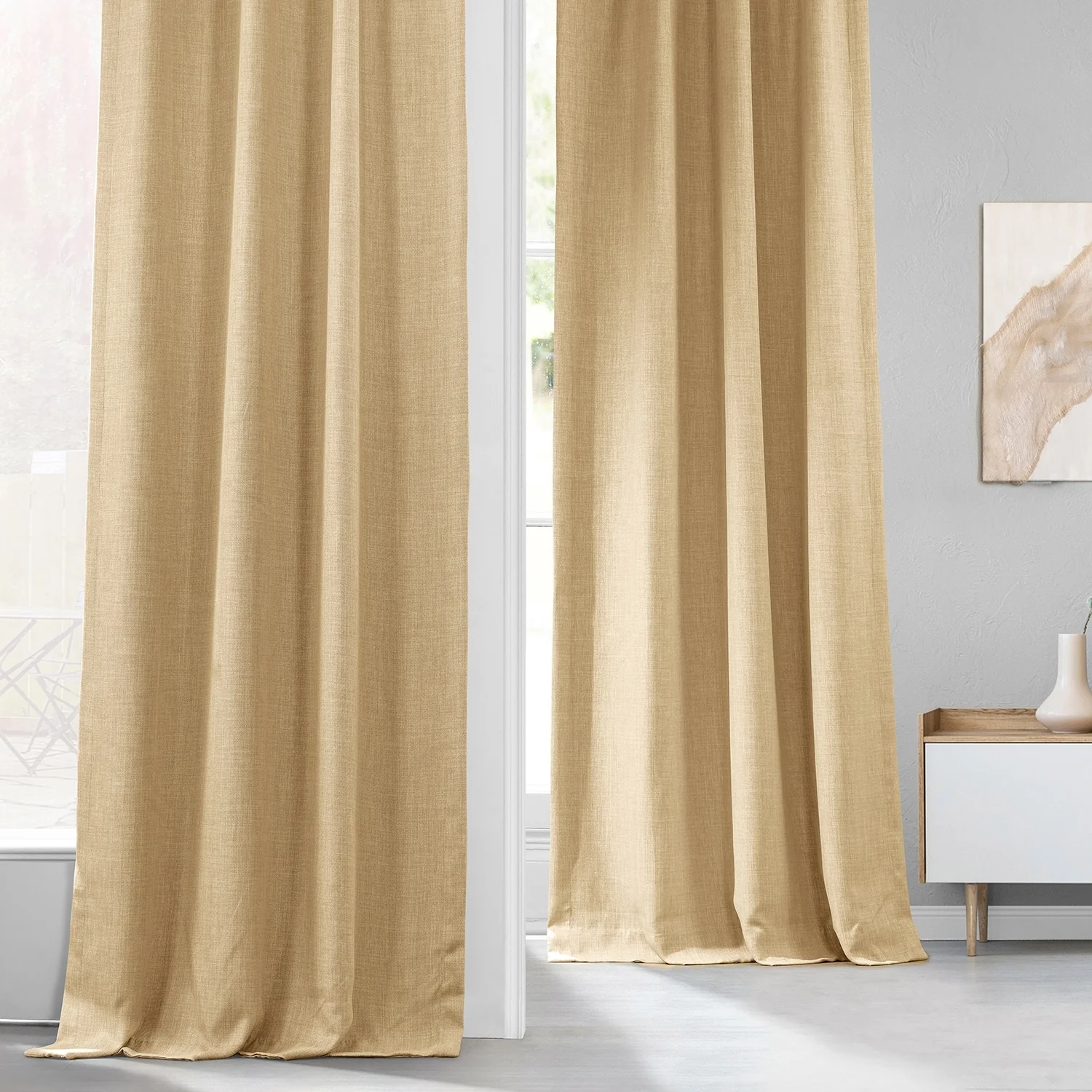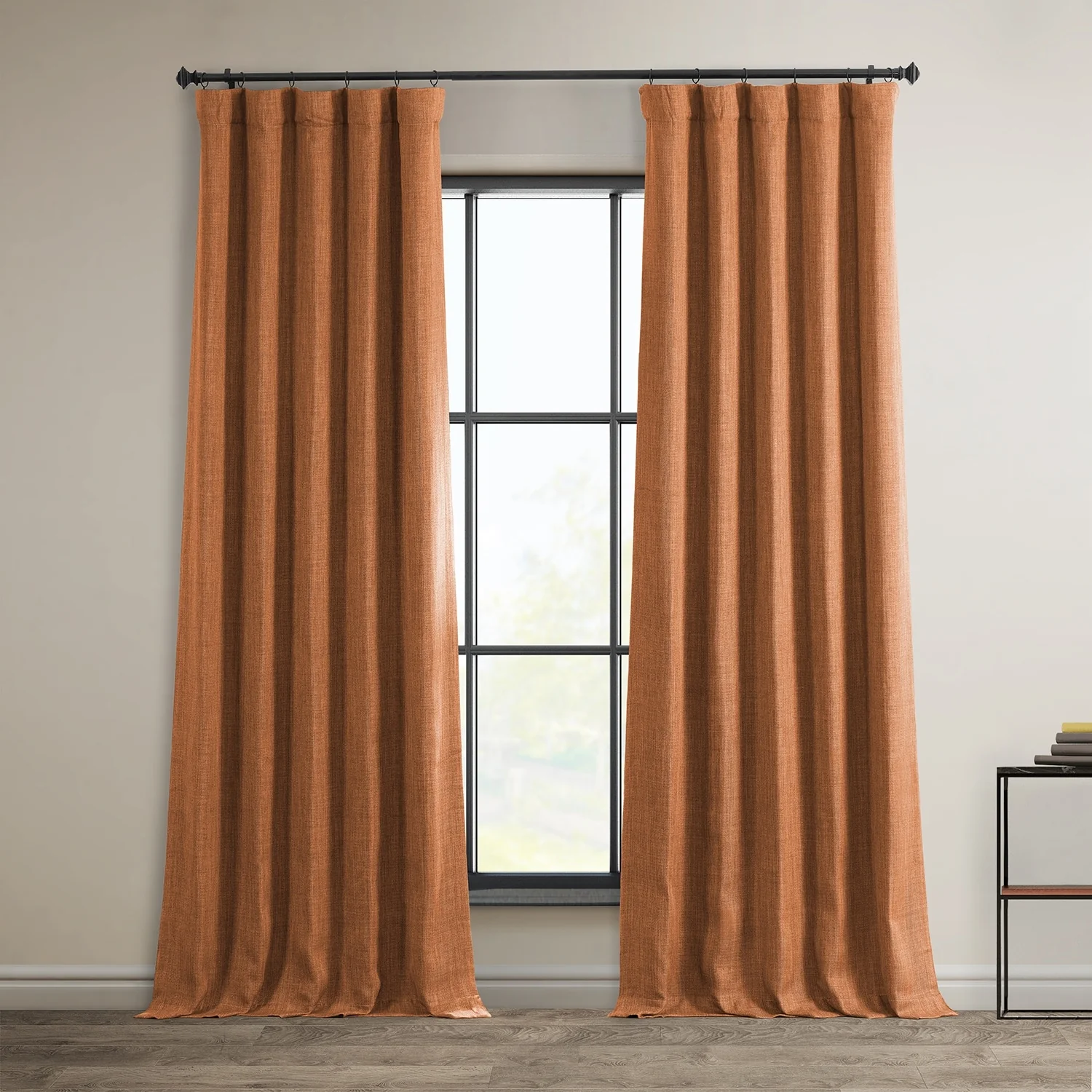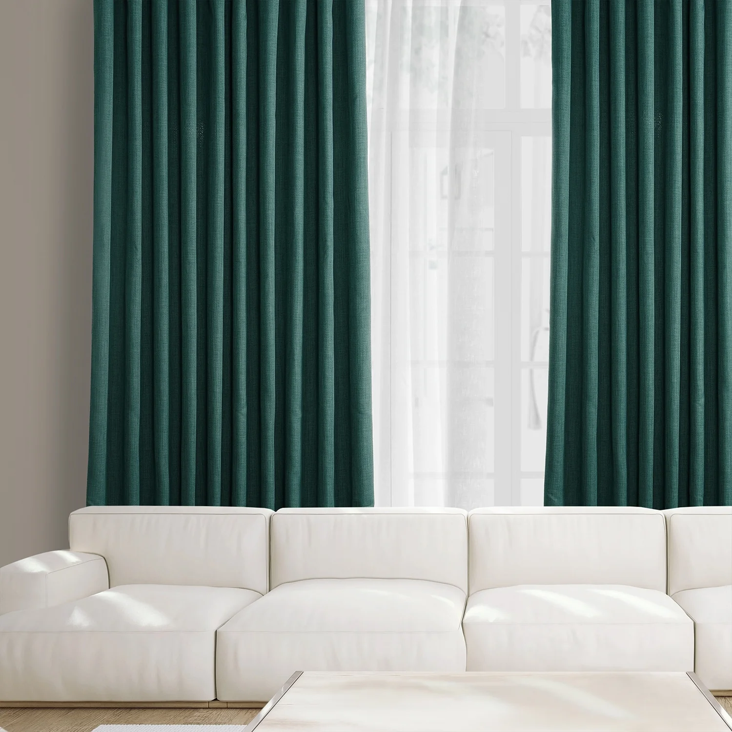 Our Faux Linen Room Darkening Curtain features rich woven textures in modern designer colors for every style. These heavy faux linen panels have significant room-darkening properties and a weighted hem to hang nicely and keep them in place. These curtains have our most versatile header, a rod pocket with back tabs, and hook belt. There is a 3' pole pocket in the header and back tab loops that will accommodate up to a 1.5' diameter curtain rod with no additional hardware. Additionally, these panels can be attached to curtain rings from clips or by running an S-shaped drapery pin through the back of the header and hanging the drapery pin through an eyelet on the rings. These curtains are sold with no hardware like rings or hooks. We try to provide the most accurate digital images possible. Color may appear slightly different from one screen to another based on differences in computer monitors, brightness, and other selected settings so there may be variations in color between the actual product and the way it appears online. This curtain offers Room Darkening capabilities with an impressive 85% opacity for Blackout effect.