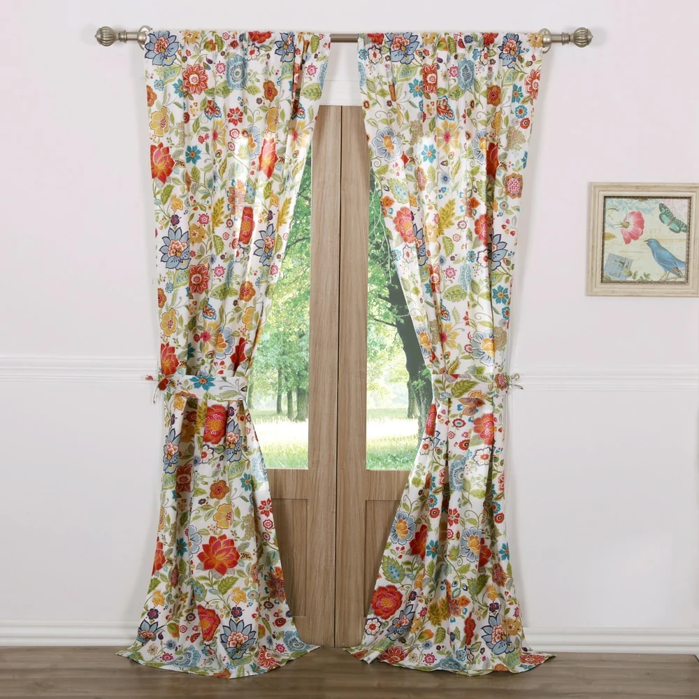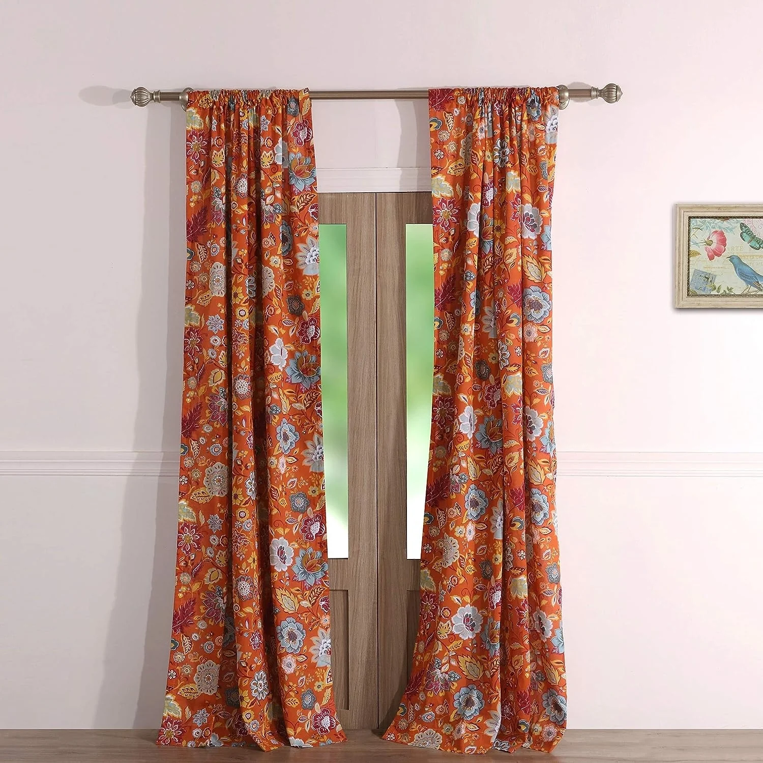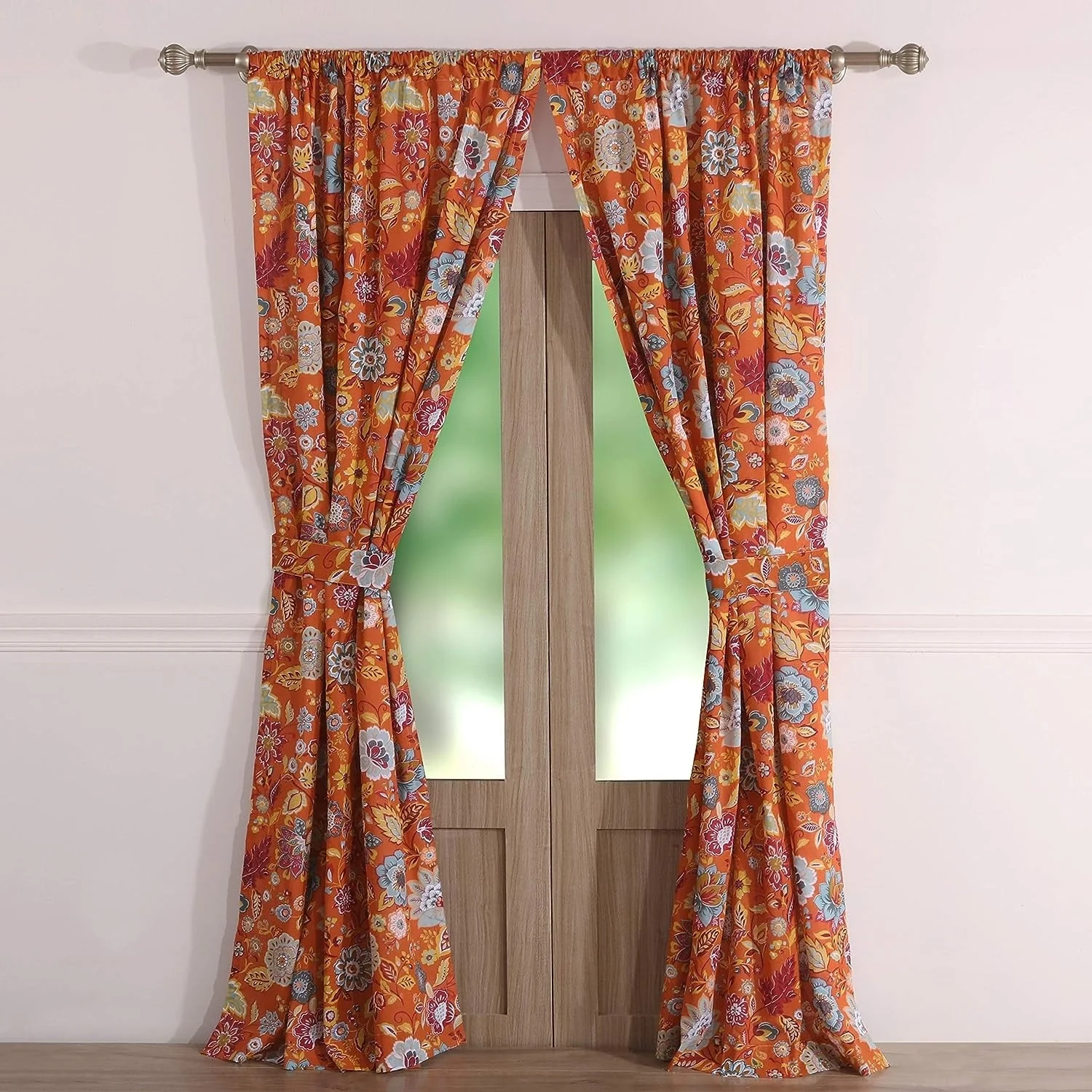 Bring a touch of nature to your space with the Astoria curtain panel pair from Greenland Home Fashions. The beautiful floral print and a choice of white or spice colors provide an instant pop of interest. These polyester panels are lined to filter light and keep your room cool, while the included tie-backs let you control how much sunlight you want. The 3-inch rod pockets make them easy to hang and maintain.