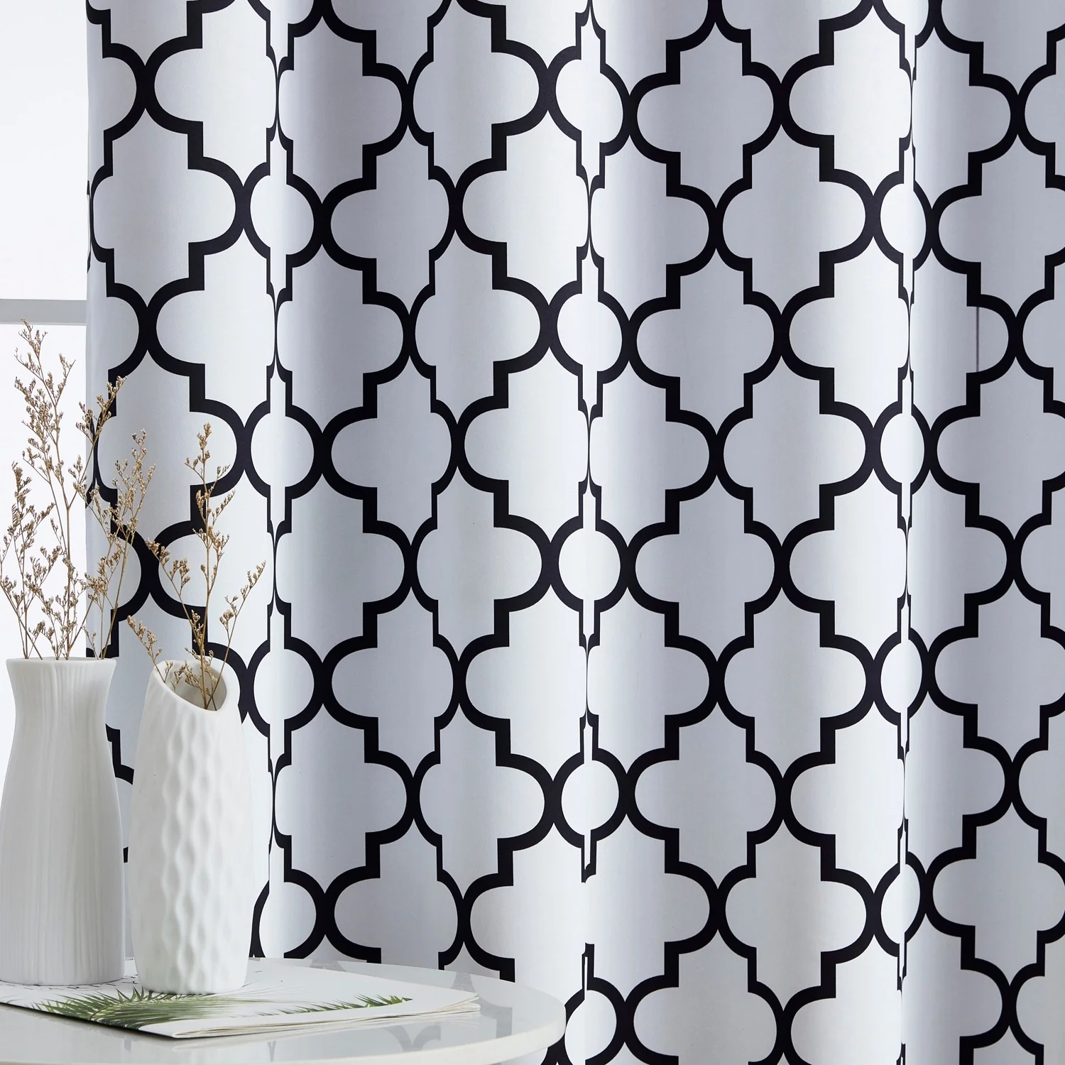 - DESIGN & CONSTRUCTION: These lattice print window panels have a rich, quality feel, are made of a thick and sturdy construction, and boast a gorgeous tone-on-tone design. These blackout curtains would be a great add for your bedroom, living room, or your kids room. Each package contains two (2) blackout curtains panels.