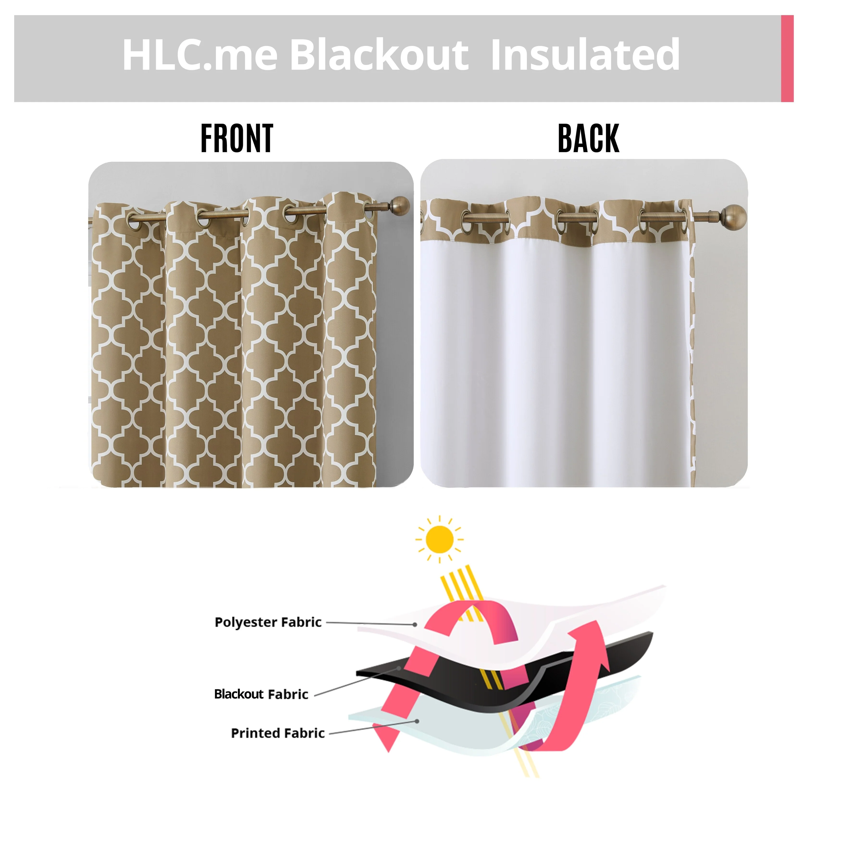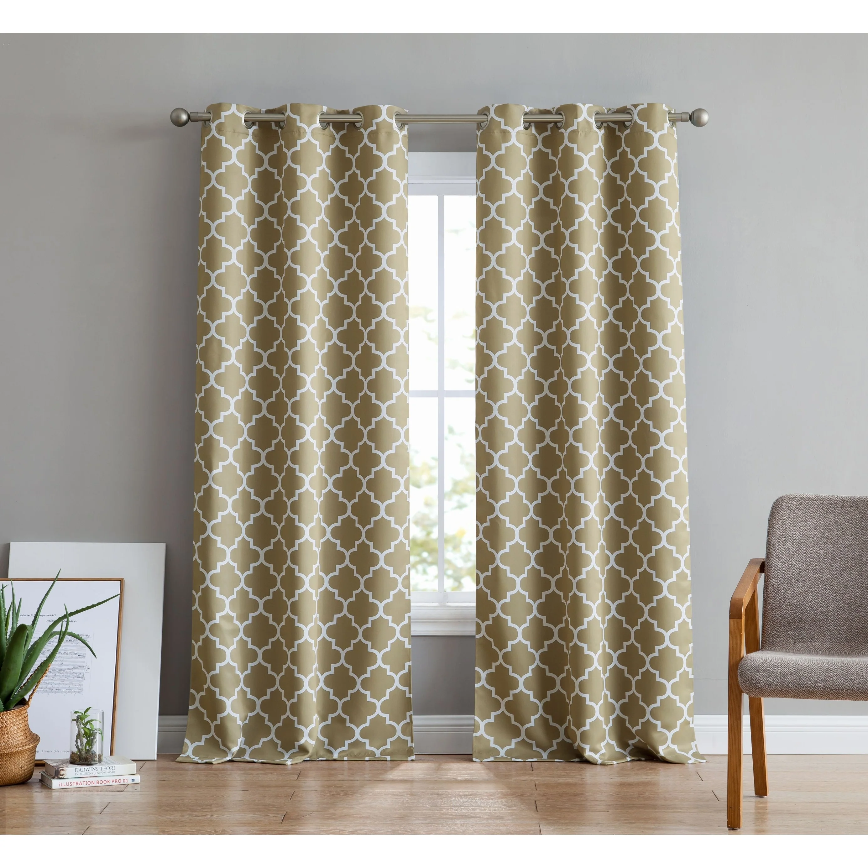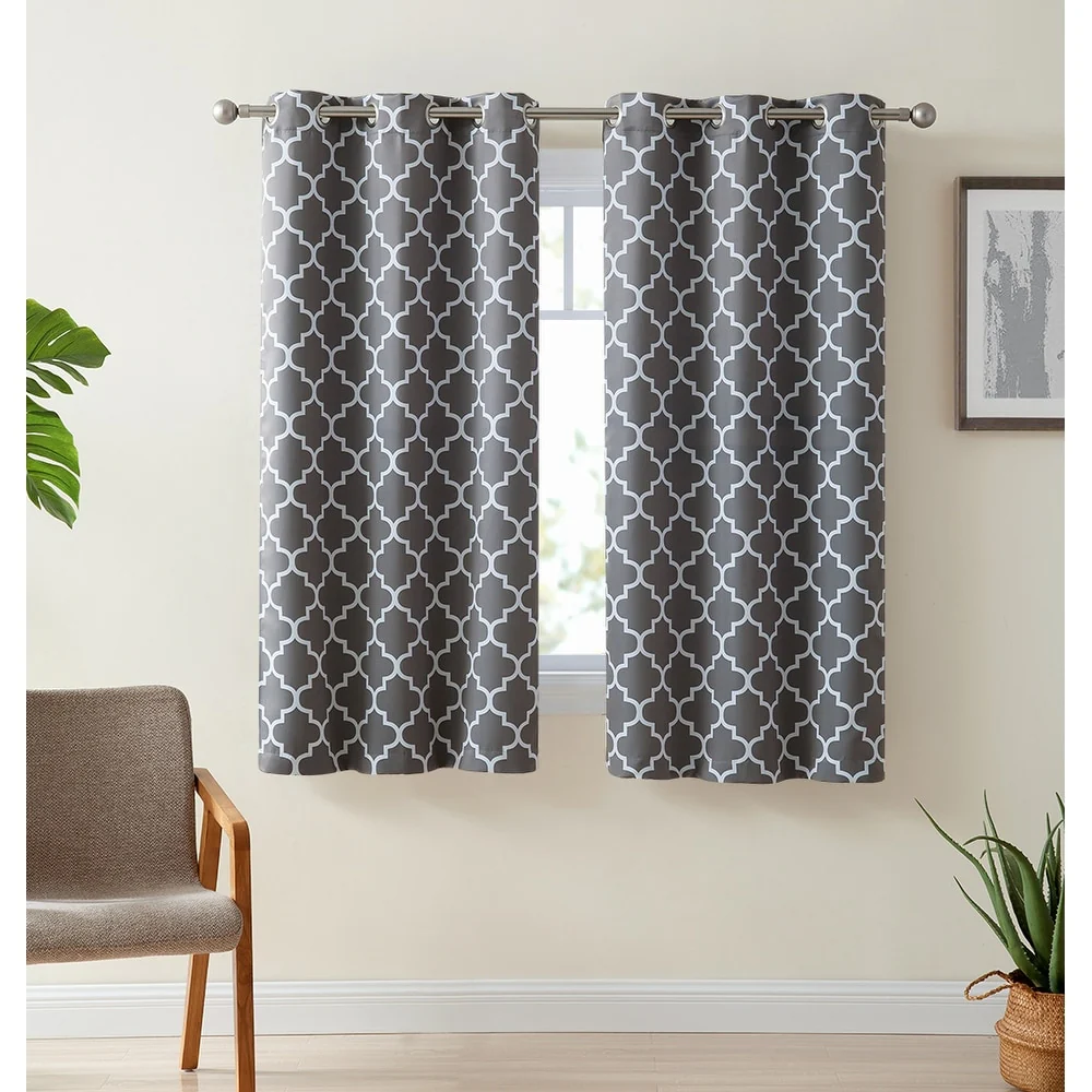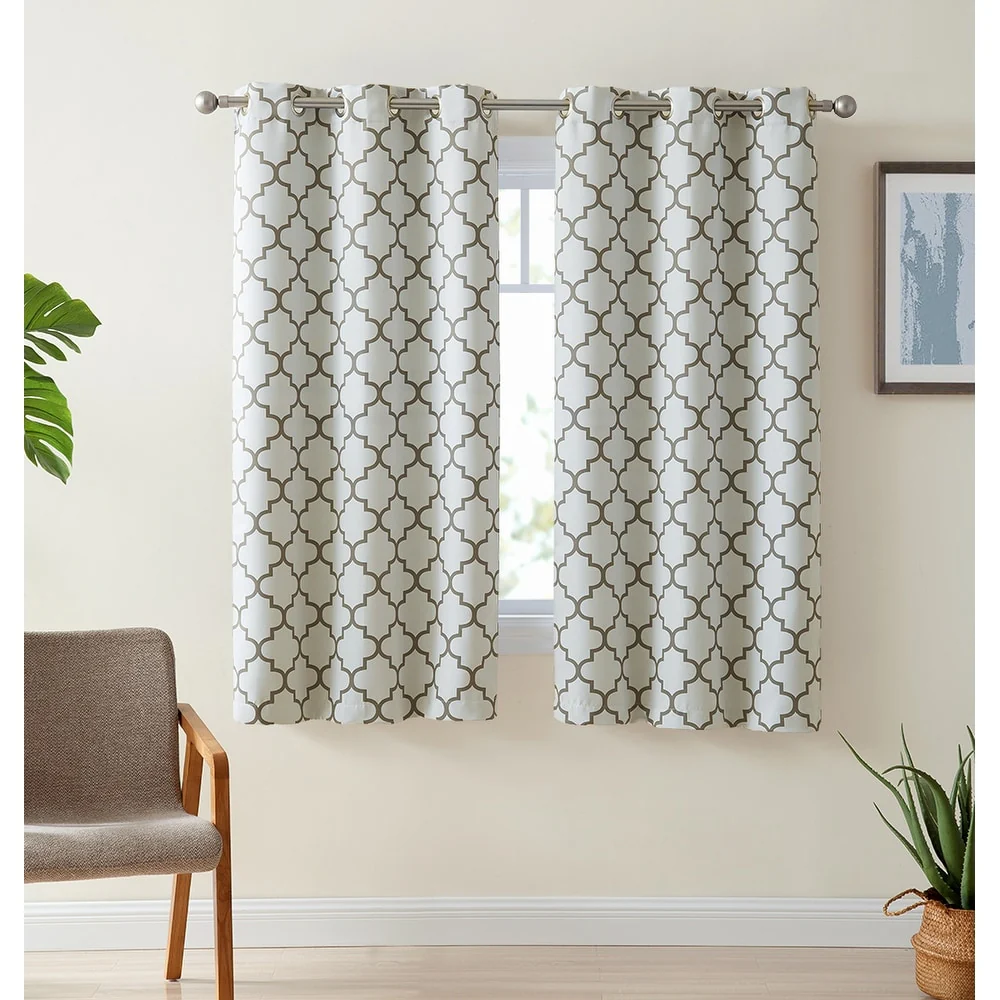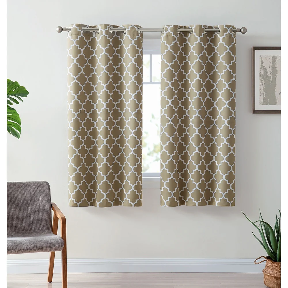 Sleep? You can't really function well in life without it. Blackout curtain panels are a necessity for privacy. Being awoken by the sun is actually good for you, but there are times when darkening a room aids in sleep especially for napping children, shift workers or others with non traditional sleep schedules and for blocking artificial night time light such as from a streetlamp. Blackout curtains also are energy efficient (keeping heat from escaping in the winter and the hot sun from heating up your room in the summer) and help block or muffle outdoor noise. Benefits of blackout curtains: Energy efficiency:They can decrease the amount of money spent on heating and air conditioning because of the curtain's ability to reduce the amount of heat lost in cooler months and reflect heat in the summer. Sunlight:These blackout curtains are made of tightly woven, dense fabric inter sewn into a triple weave technology to reduce unwanted sunlight. These curtains will stop light from passing through thanks to special treatments and extra tight woven fabrics to help you control the light levels in your room. Creative Design:An allover geometric lattice pattern offers a pleasing accent for any window. Lattice pattern interwoven to complete a chic and versatile look to compliment any room. Privacy: If you've ever been kept awake by irritating little noises from the street below that pull you back from the edge of blissful sleep, you'll appreciate the noise reduction abilities of our blackout drapes. The thick blackout fabric of our readymade blackout curtains helps to dampen noises, contributing further to the peaceful sanctuary you need when you are drifting off to sleep.