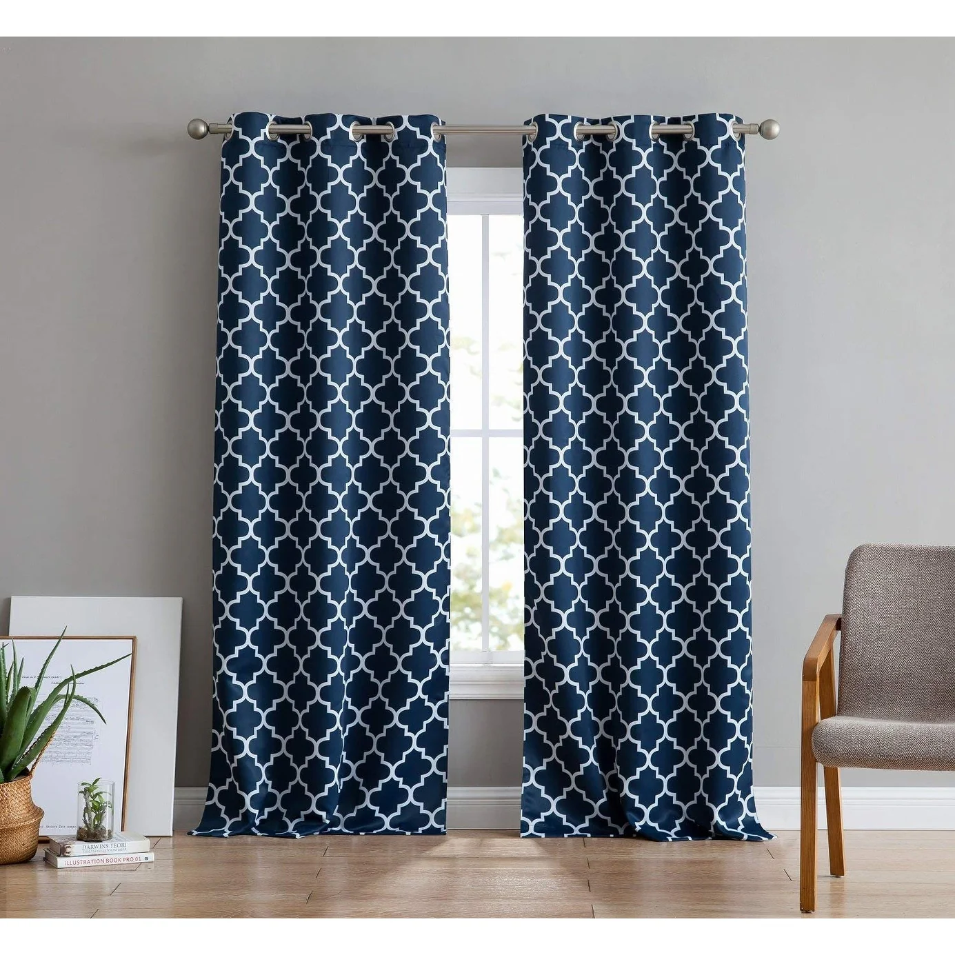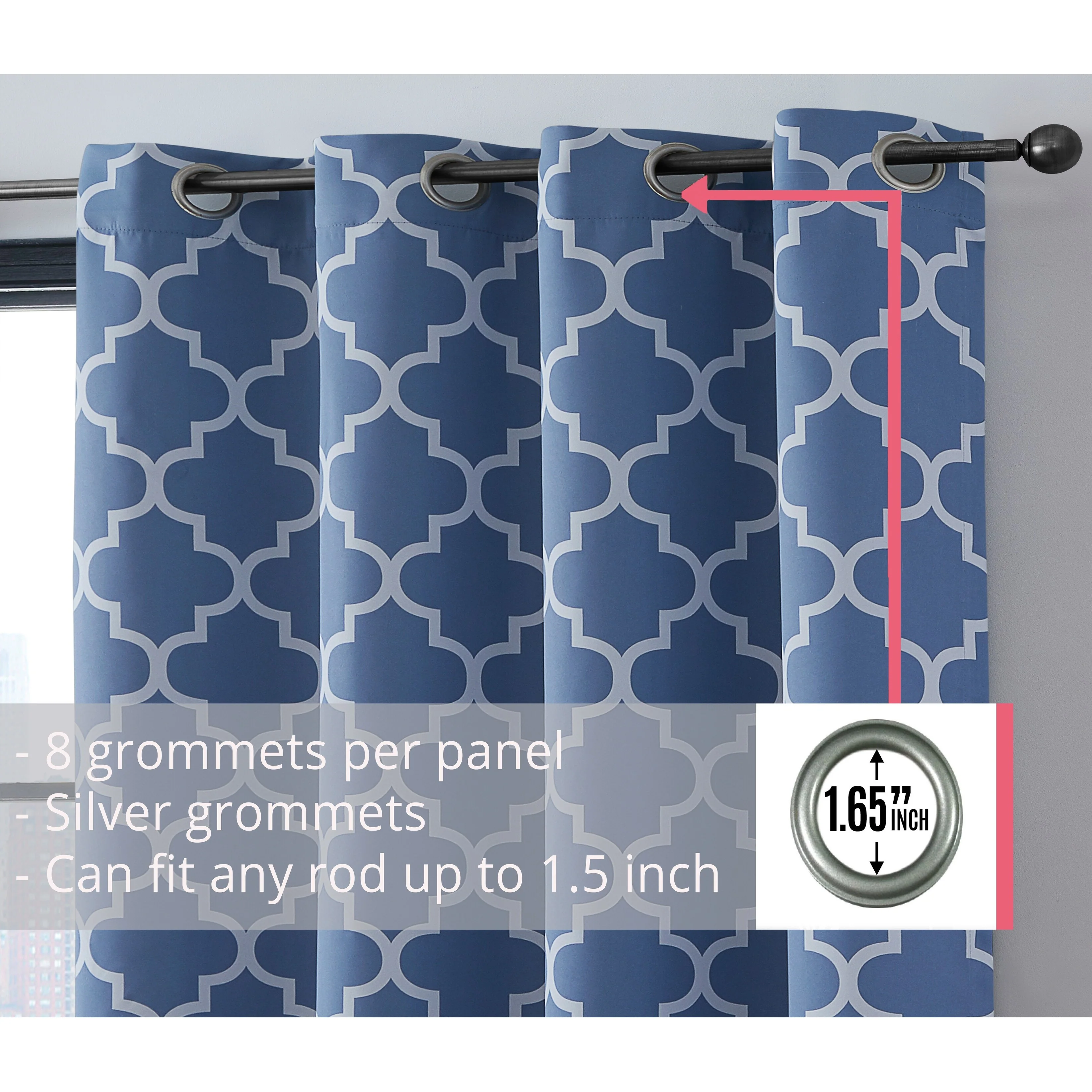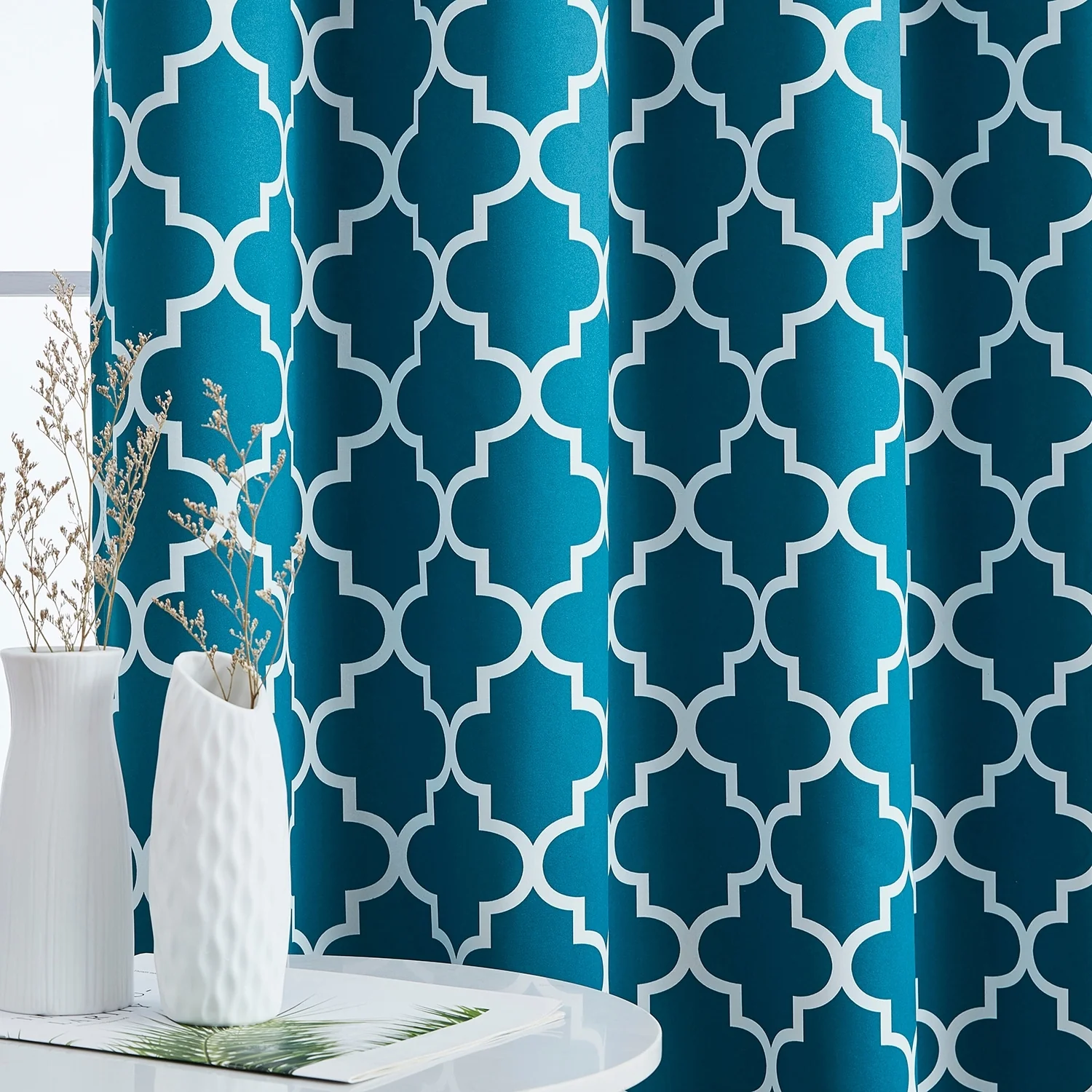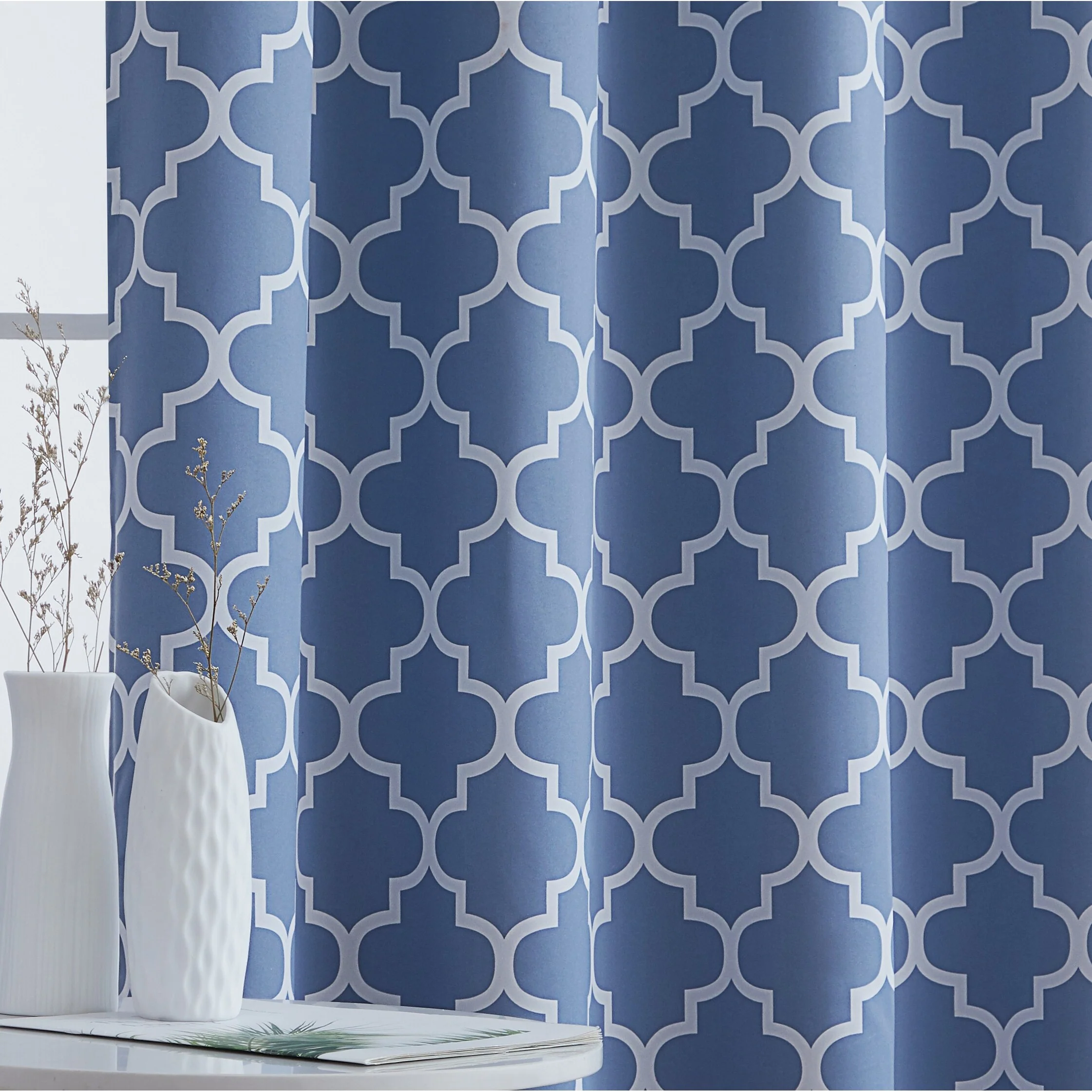 Sleep? You can't really function well in life without it. Blackout curtain panels are a necessity for privacy. Being awoken by the sun is actually good for you, but there are times when darkening a room aids in sleep especially for napping children, shift workers or others with non traditional sleep schedules and for blocking artificial night time light such as from a streetlamp. Blackout curtains also are energy efficient (keeping heat from escaping in the winter and the hot sun from heating up your room in the summer) and help block or muffle outdoor noise. Benefits of blackout curtains: Energy efficiency:They can decrease the amount of money spent on heating and air conditioning because of the curtain's ability to reduce the amount of heat lost in cooler months and reflect heat in the summer. Sunlight:These blackout curtains are made of tightly woven, dense fabric inter sewn into a triple weave technology to reduce unwanted sunlight. These curtains will stop light from passing through thanks to special treatments and extra tight woven fabrics to help you control the light levels in your room. Creative Design:An allover geometric lattice pattern offers a pleasing accent for any window. Lattice pattern interwoven to complete a chic and versatile look to compliment any room. Privacy: If you've ever been kept awake by irritating little noises from the street below that pull you back from the edge of blissful sleep, you'll appreciate the noise reduction abilities of our blackout drapes. The thick blackout fabric of our readymade blackout curtains helps to dampen noises, contributing further to the peaceful sanctuary you need when you are drifting off to sleep.