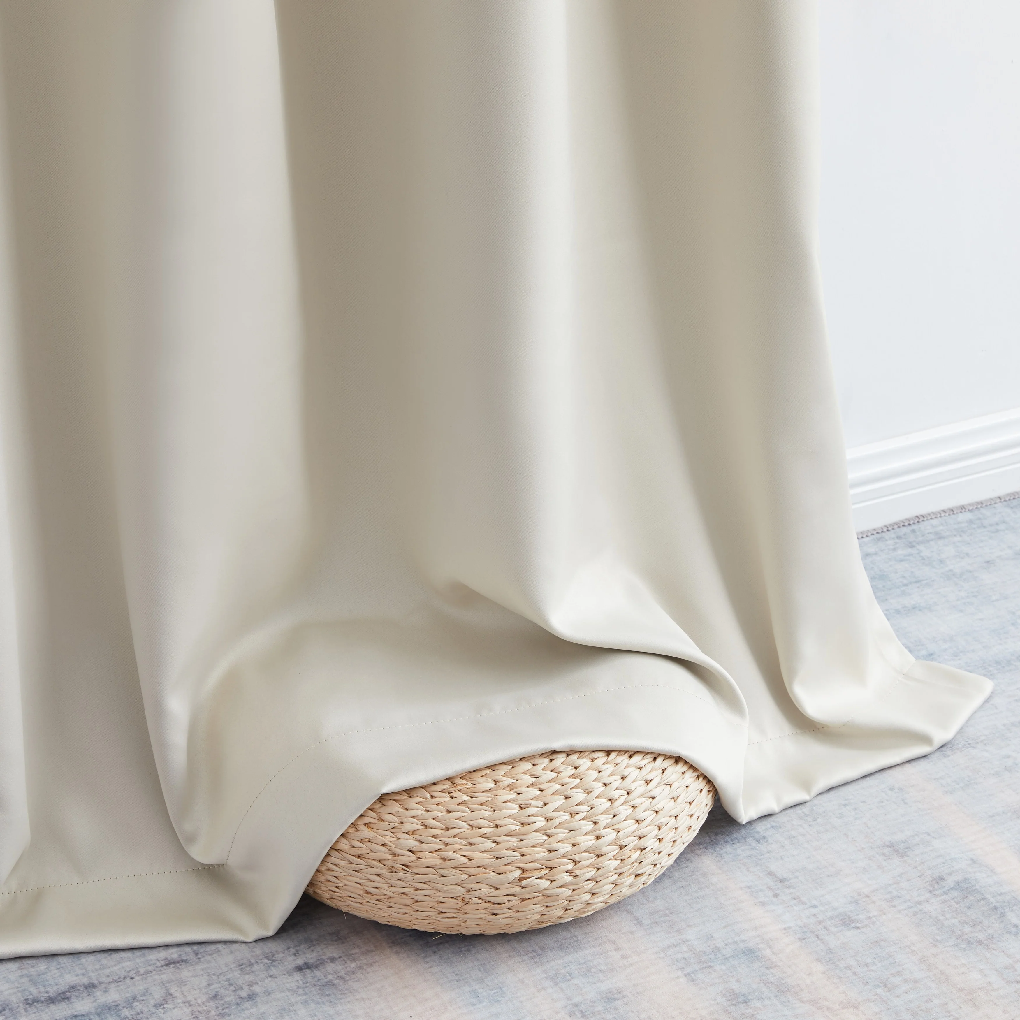 The secret of our curtain panels is our innovative thermal bond material, which effectively blocks light from shining through (100% of light, in fact). Our blackout curtains are sturdy without being too heavy and bulky and provide a high-end decorative touch.