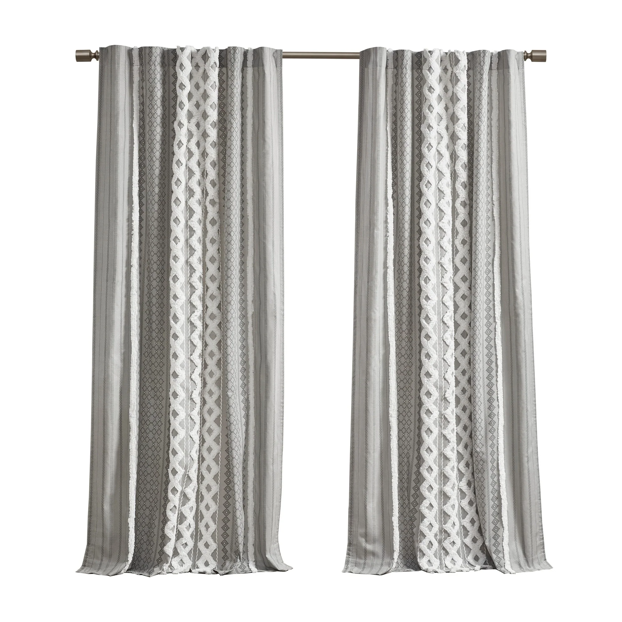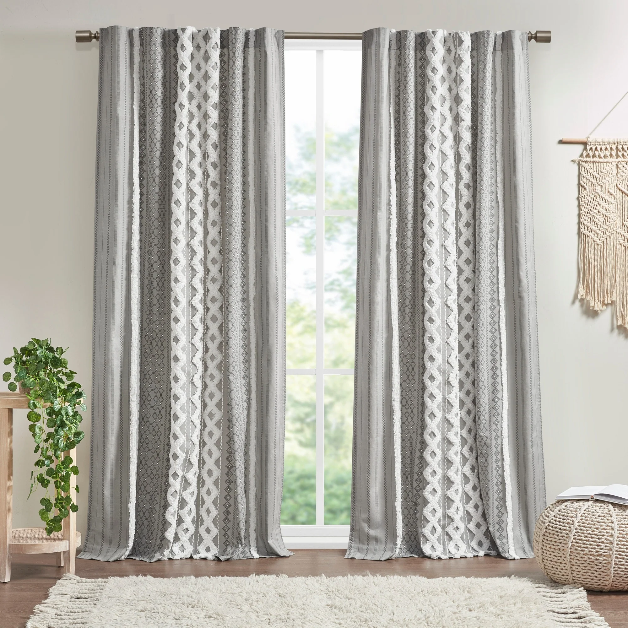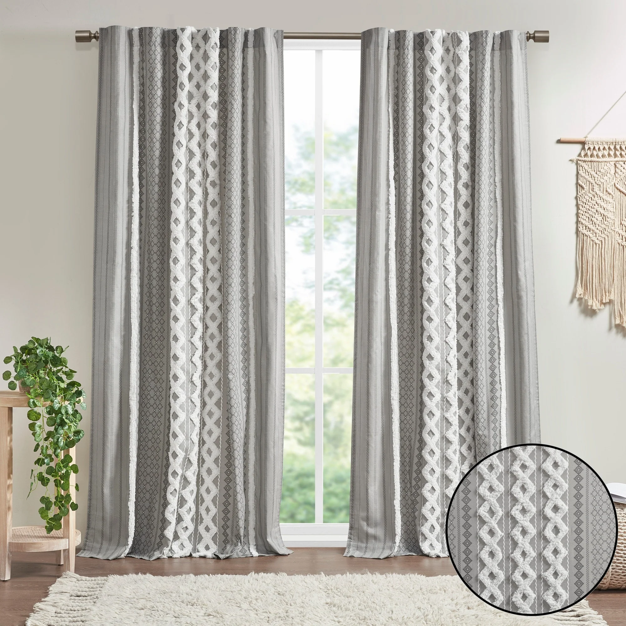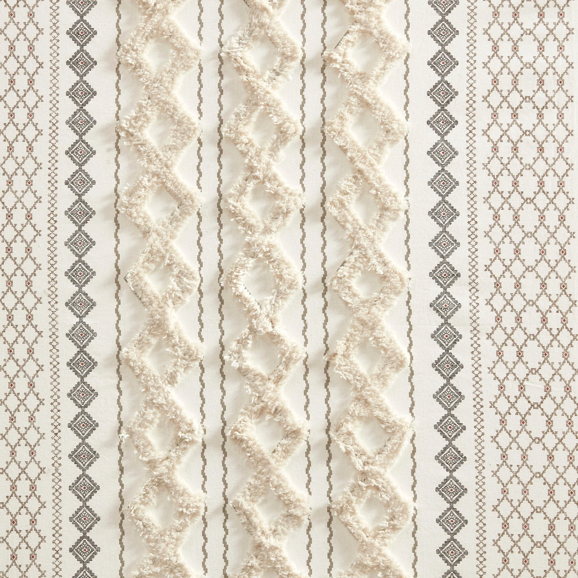 The Ink and Ivy Imani Cotton Printed Window Panel with Chenille Stripe and Lining offers a chic and casual update to your home. This window panel features a geometric print with a tufted chenille stripe trim, for a textured artisanal look and feel. A lightweight white cotton lining on the reverse softly filters light, while providing better drapability and added privacy. In addtition, this 100% cotton curtain panel is also OEKO-TEX certified, meaning it does not contain any harmful substances or chemicals for the best in quality comfort and wellness. Each panel is finished with a rod pocket top for easy hanging, and back tabs for a more clean and tailored finish. This window panel is sold as a single and 2 window panels must be purchased to cover any standard size window. Complete the look with coordinating bedding sets and bath decor, available and sold separately.