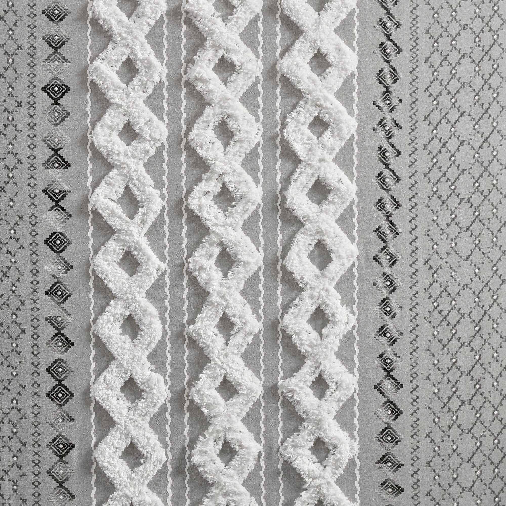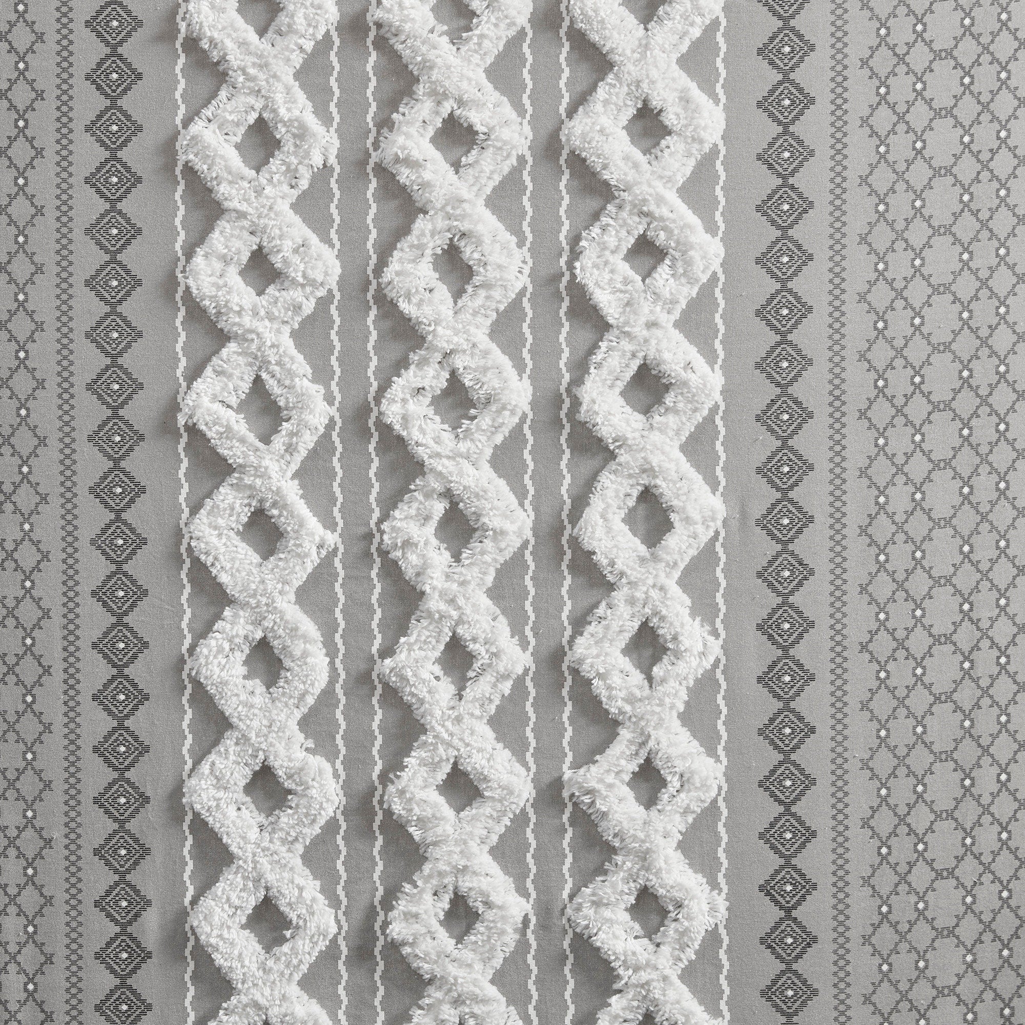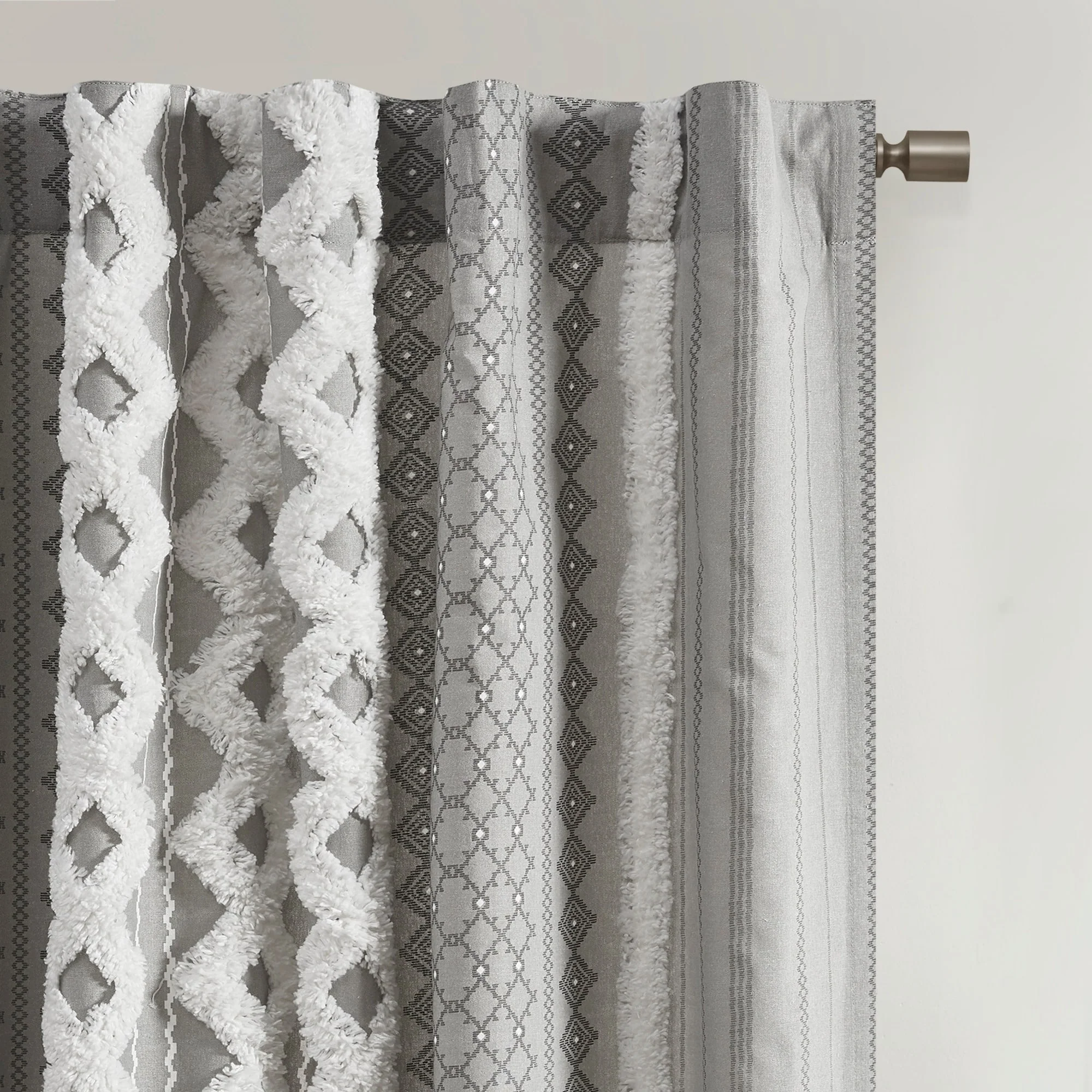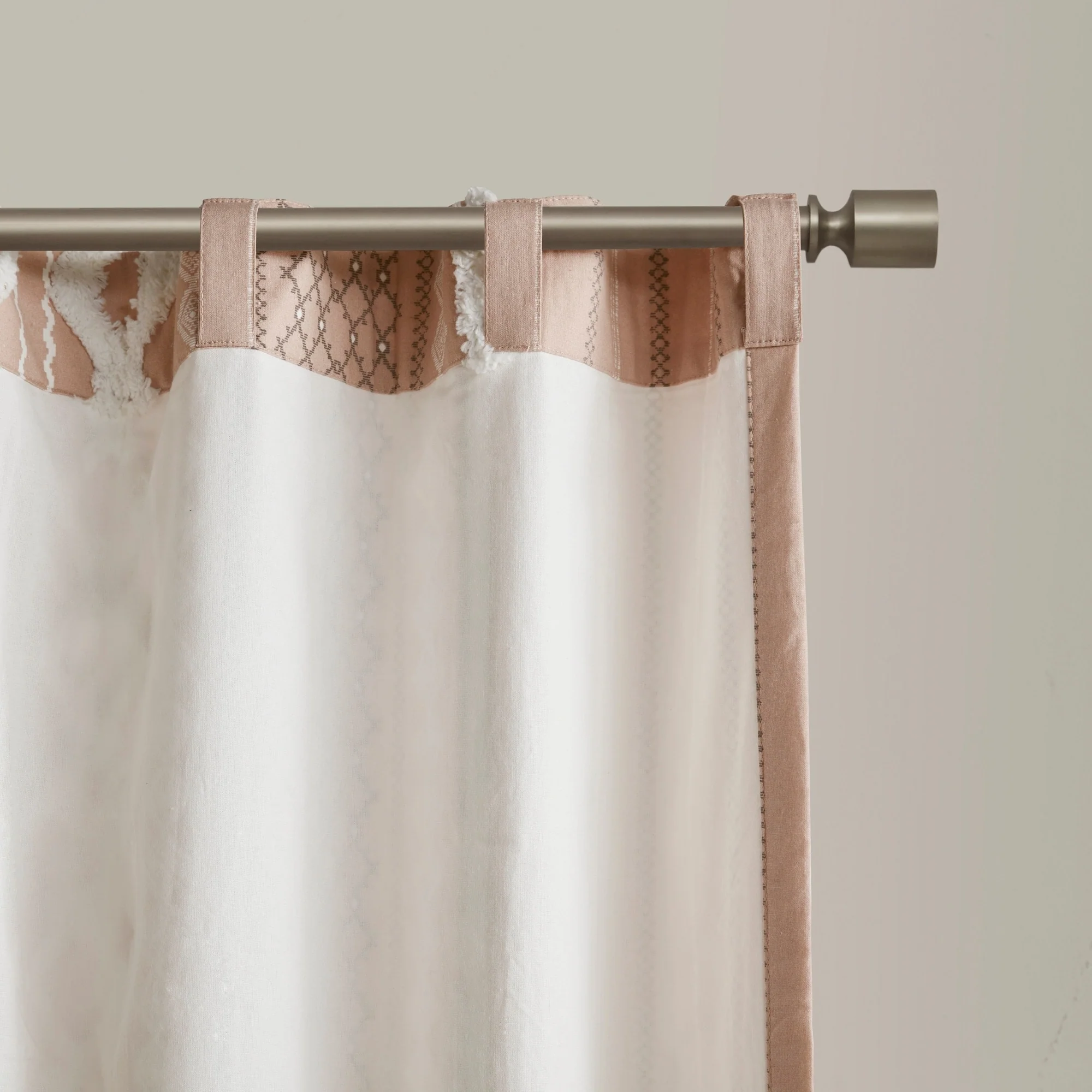 The Ink and Ivy Imani Cotton Printed Window Panel with Chenille Stripe and Lining offers a chic and casual update to your home. This window panel features a geometric print with a tufted chenille stripe trim, for a textured artisanal look and feel. A lightweight white cotton lining on the reverse softly filters light, while providing better drapability and added privacy. In addtition, this 100% cotton curtain panel is also OEKO-TEX certified, meaning it does not contain any harmful substances or chemicals for the best in quality comfort and wellness. Each panel is finished with a rod pocket top for easy hanging, and back tabs for a more clean and tailored finish. This window panel is sold as a single and 2 window panels must be purchased to cover any standard size window. Complete the look with coordinating bedding sets and bath decor, available and sold separately.