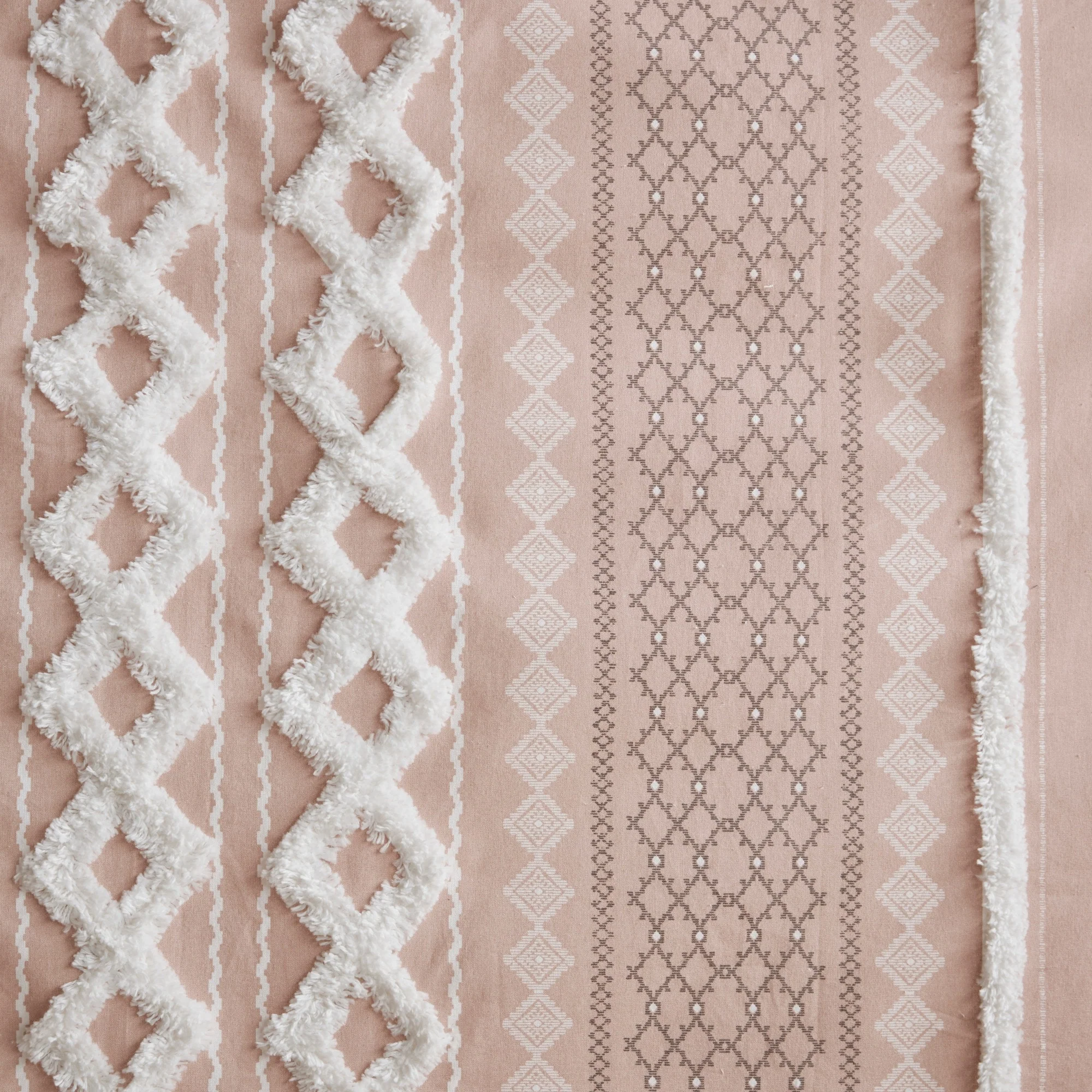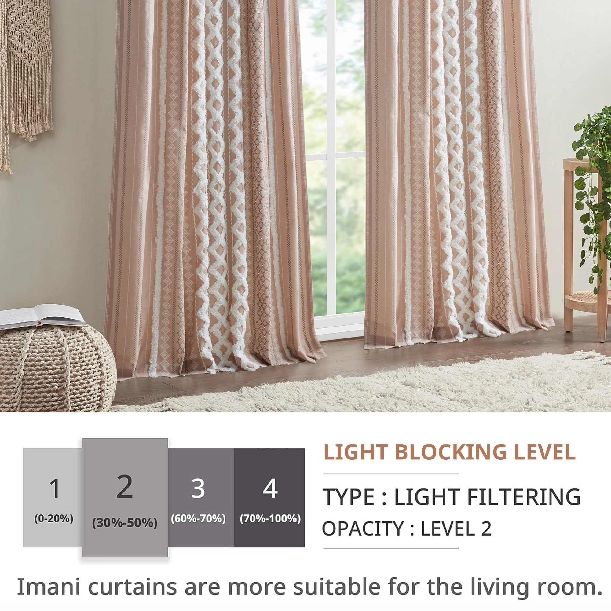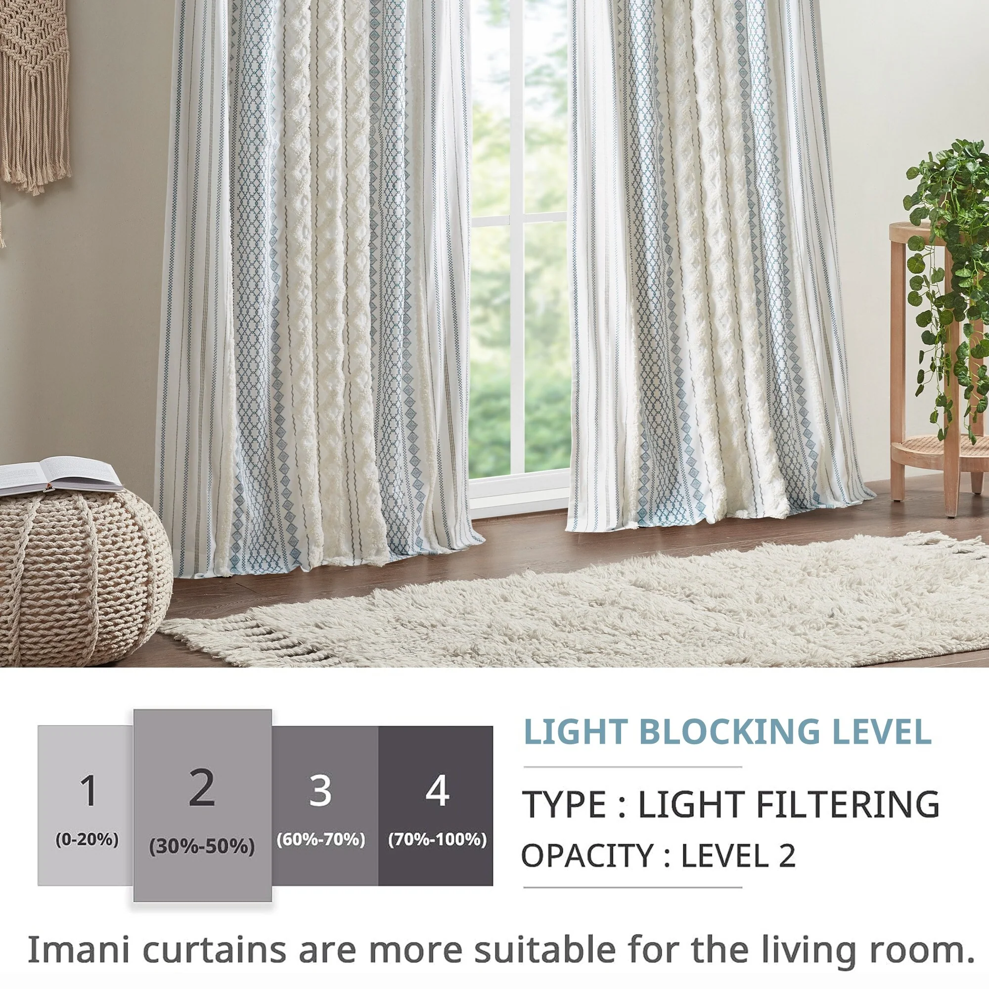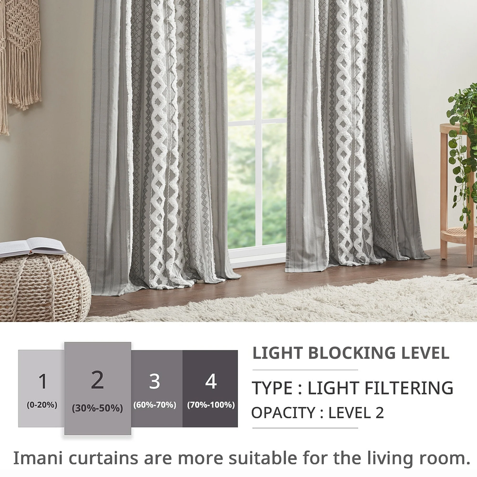 The Ink and Ivy Imani Cotton Printed Window Panel with Chenille Stripe and Lining offers a chic and casual update to your home. This window panel features a geometric print with a tufted chenille stripe trim, for a textured artisanal look and feel. A lightweight white cotton lining on the reverse softly filters light, while providing better drapability and added privacy. In addtition, this 100% cotton curtain panel is also OEKO-TEX certified, meaning it does not contain any harmful substances or chemicals for the best in quality comfort and wellness. Each panel is finished with a rod pocket top for easy hanging, and back tabs for a more clean and tailored finish. This window panel is sold as a single and 2 window panels must be purchased to cover any standard size window. Complete the look with coordinating bedding sets and bath decor, available and sold separately.