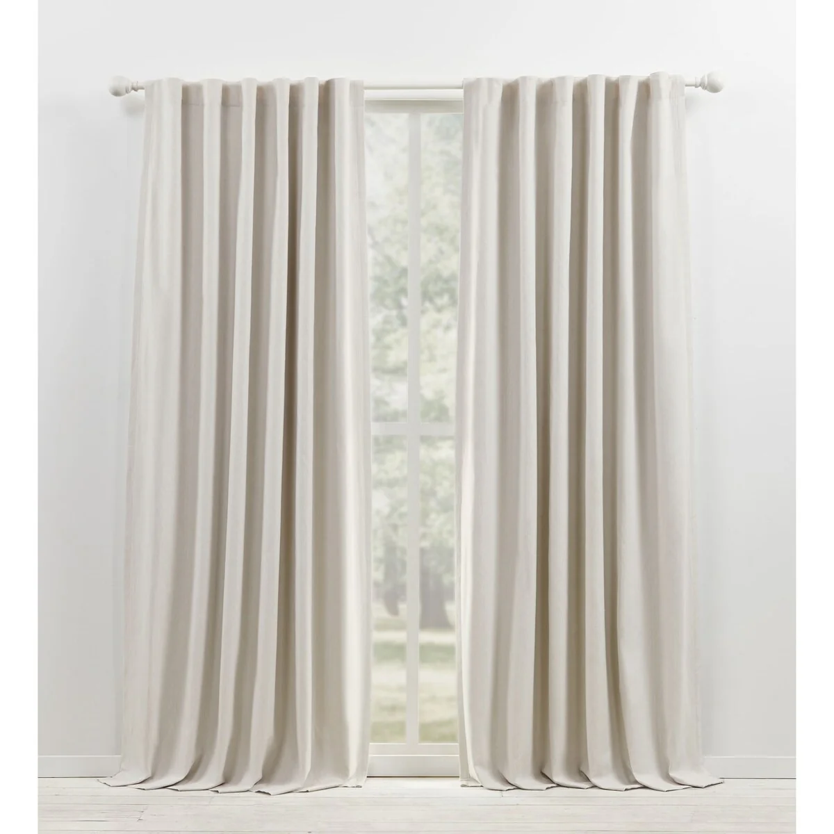 - Includes 1 heavyweight cotton and linen blend curtain panel