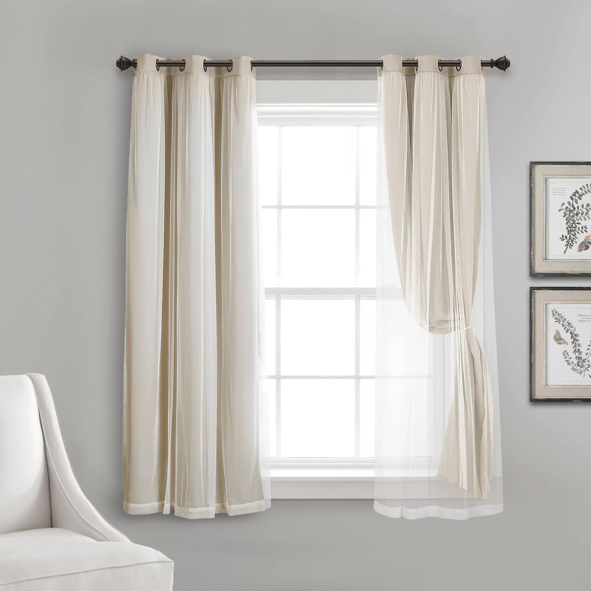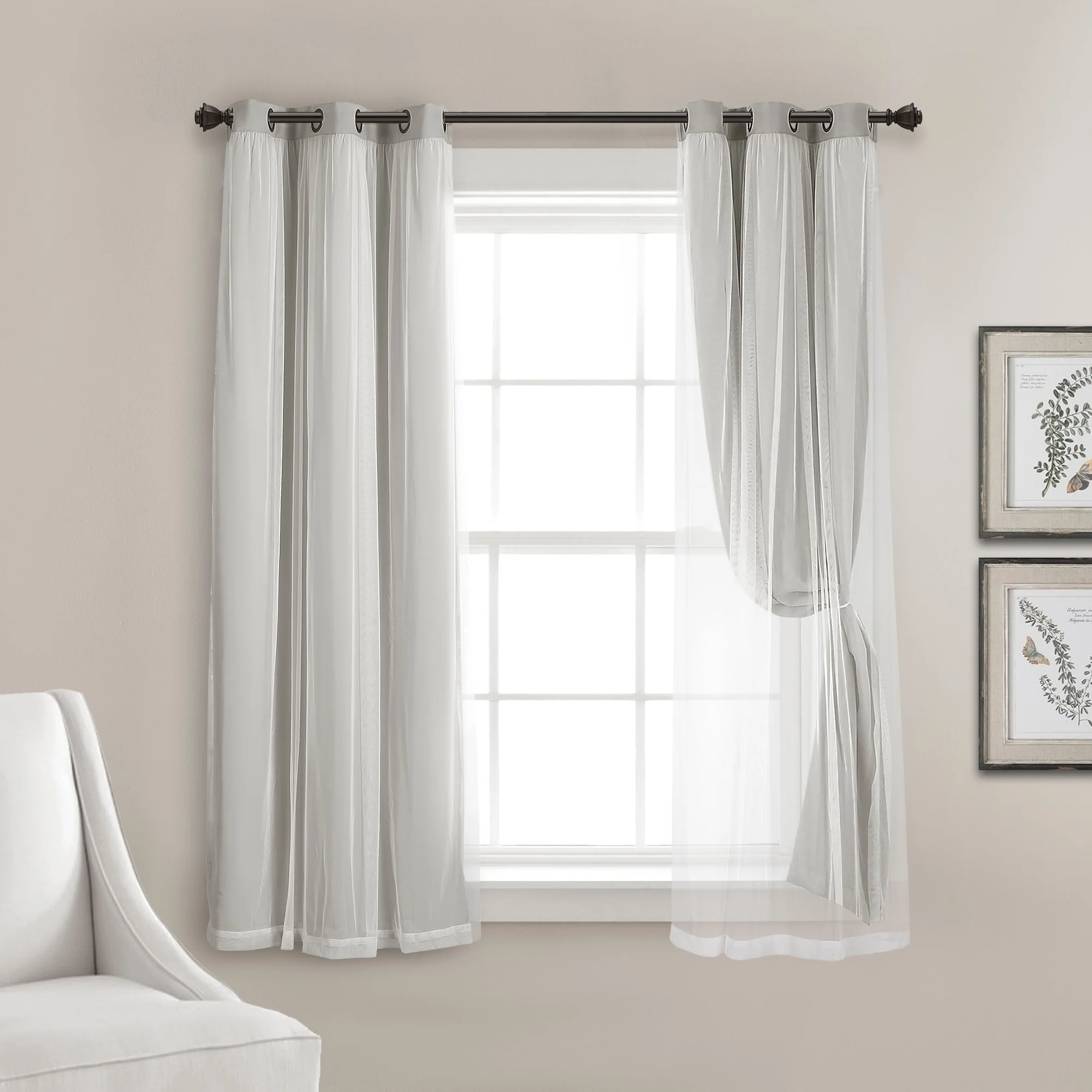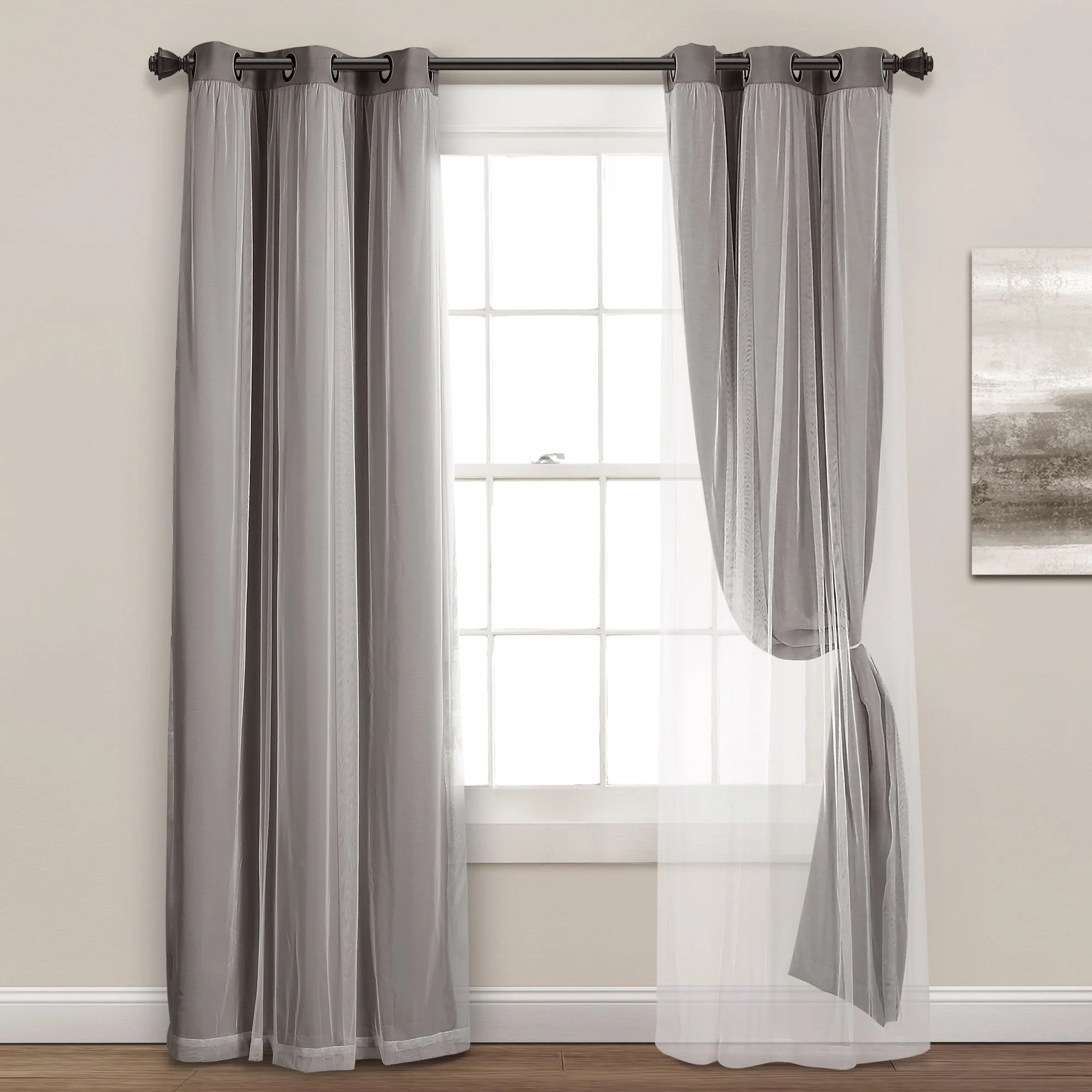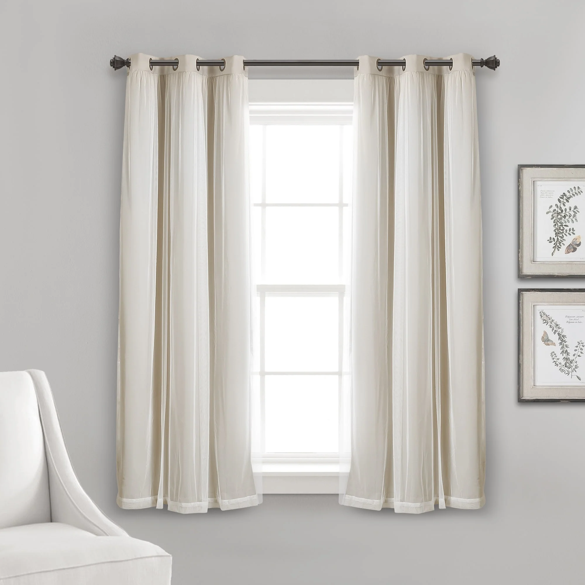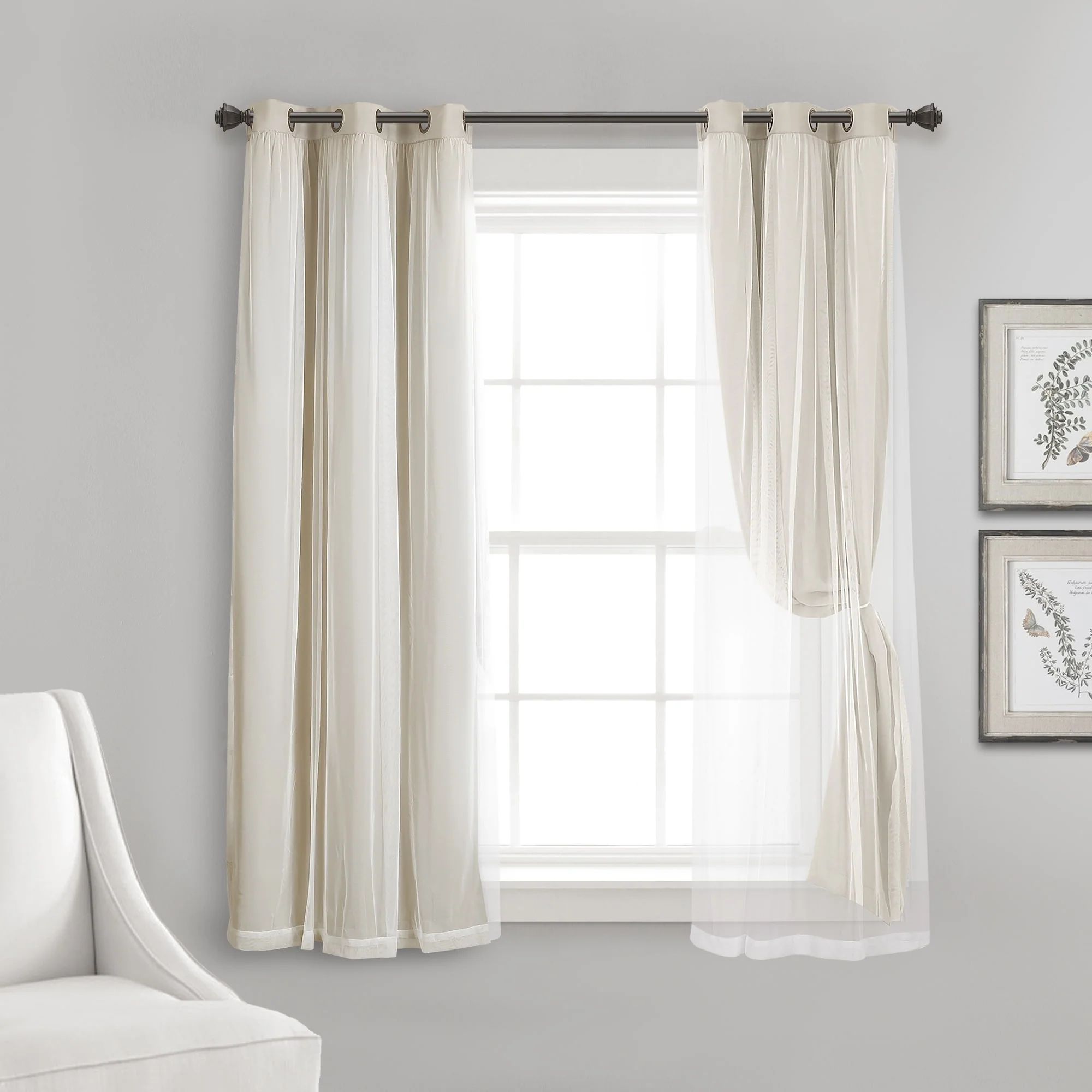 - 2-panel set includes blackout panel and sheer panel