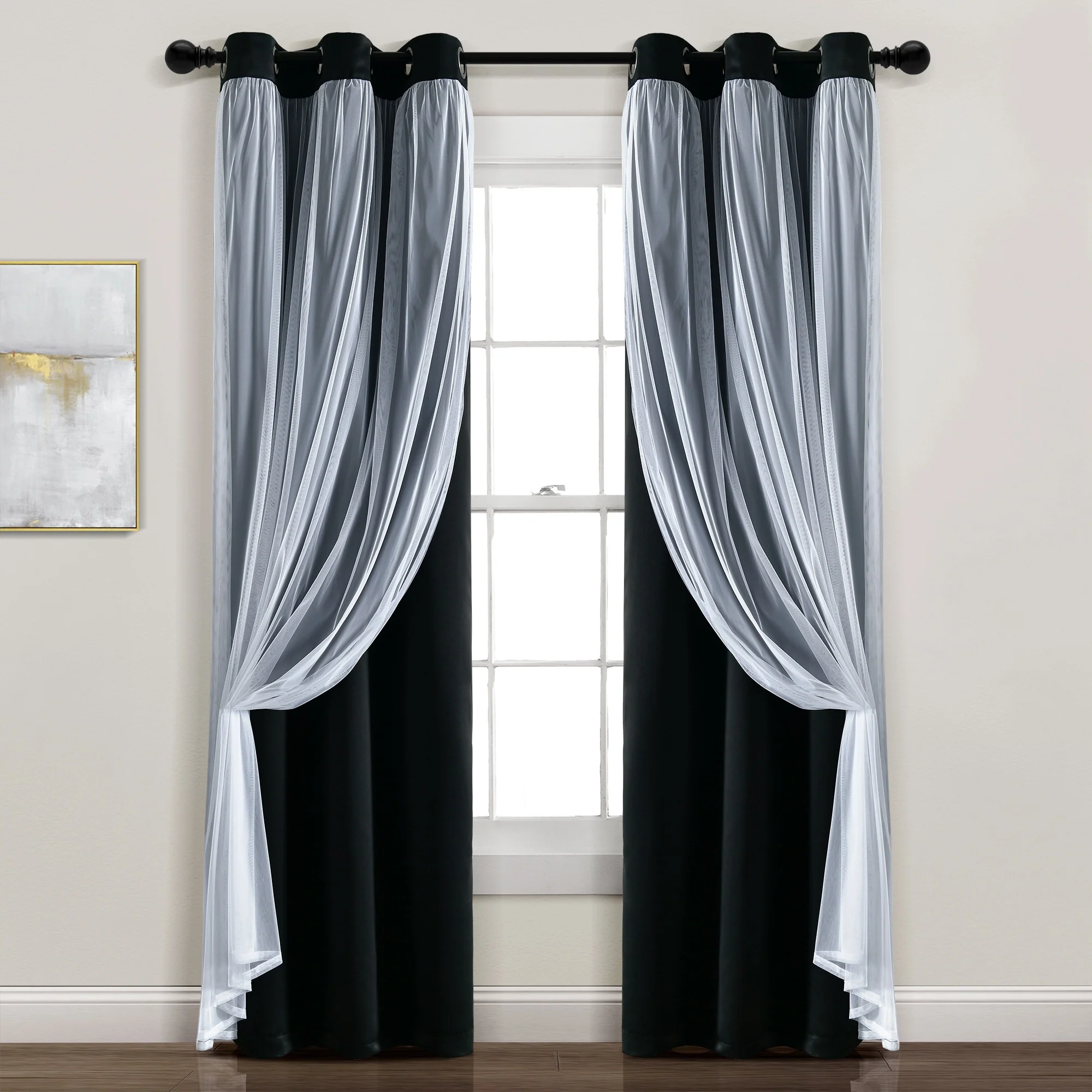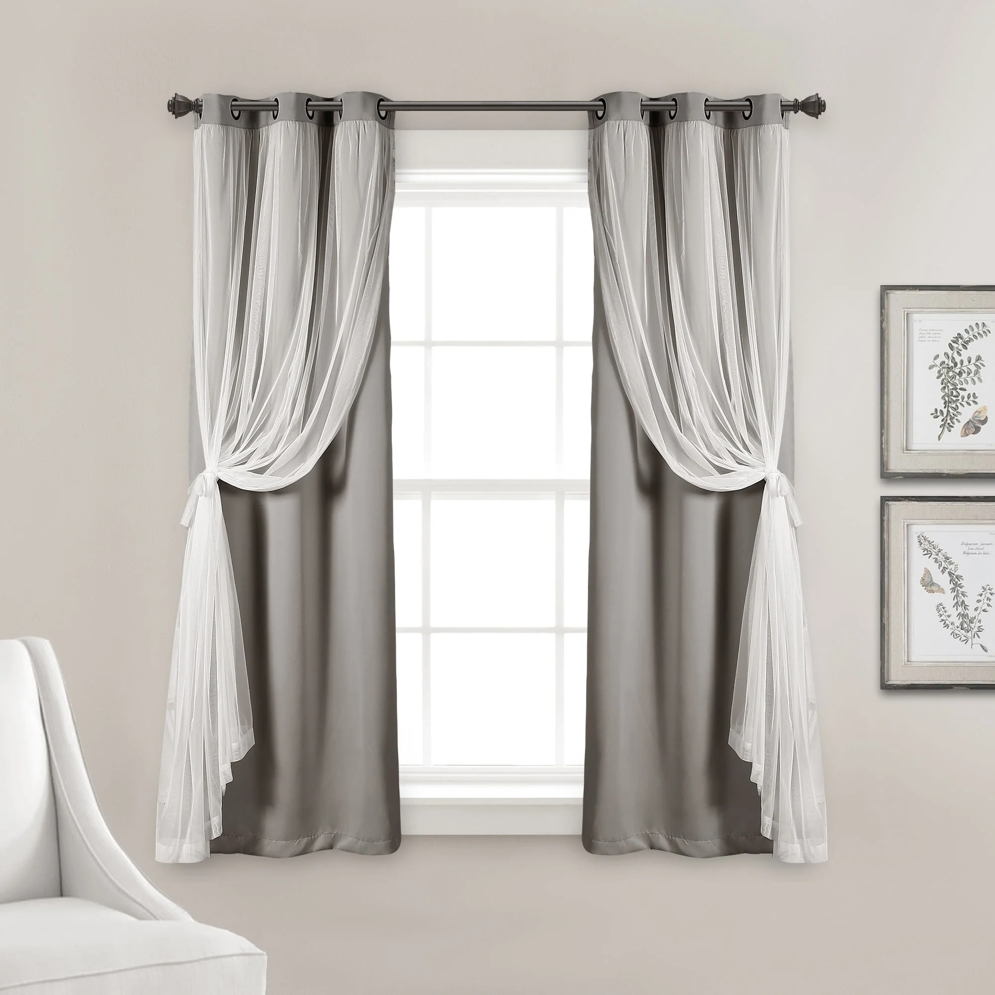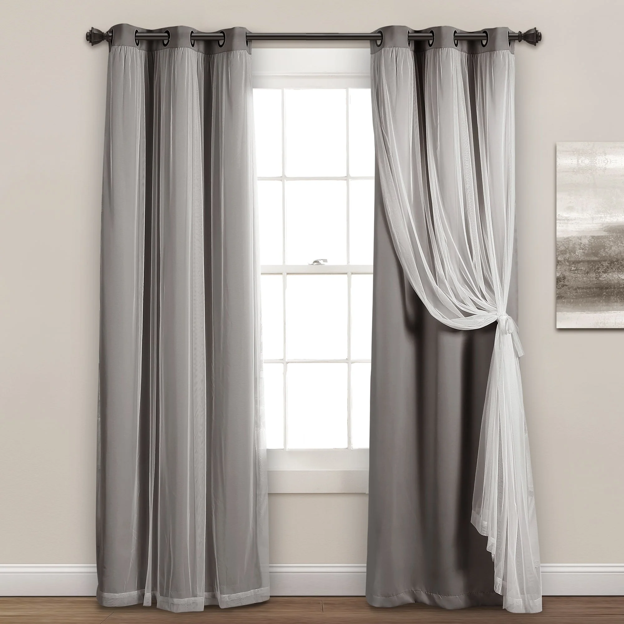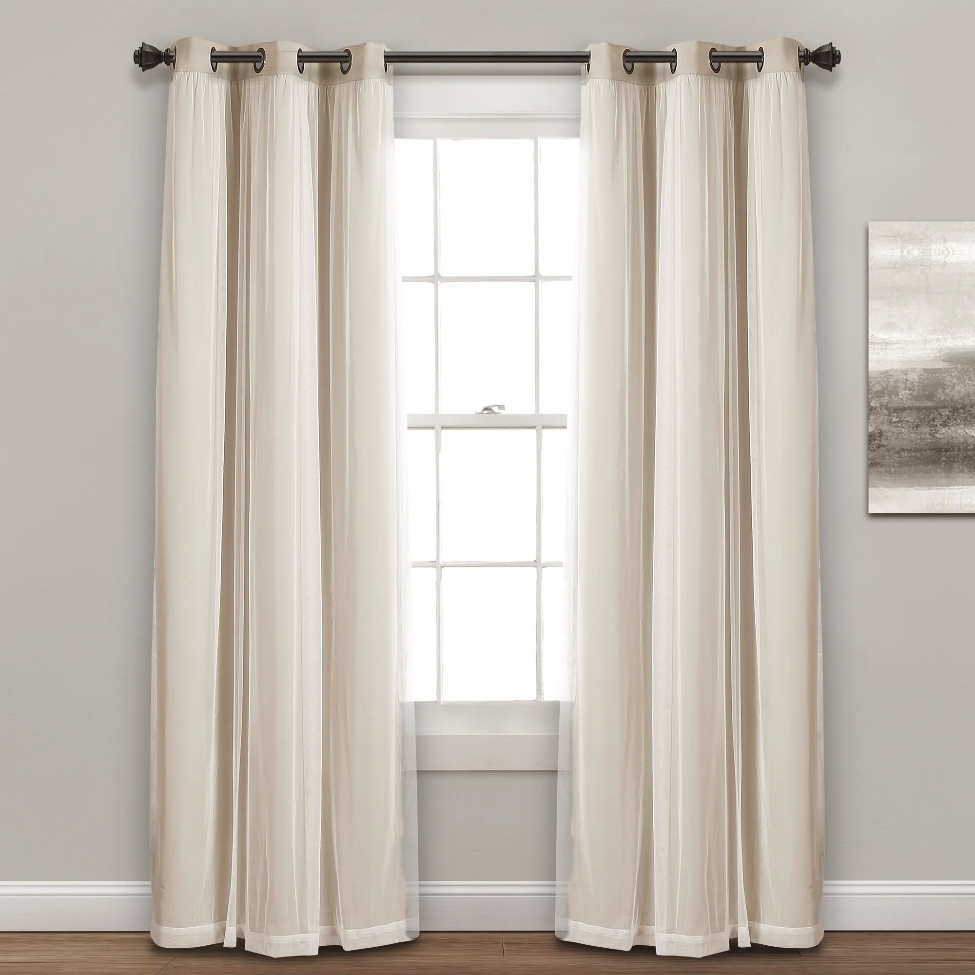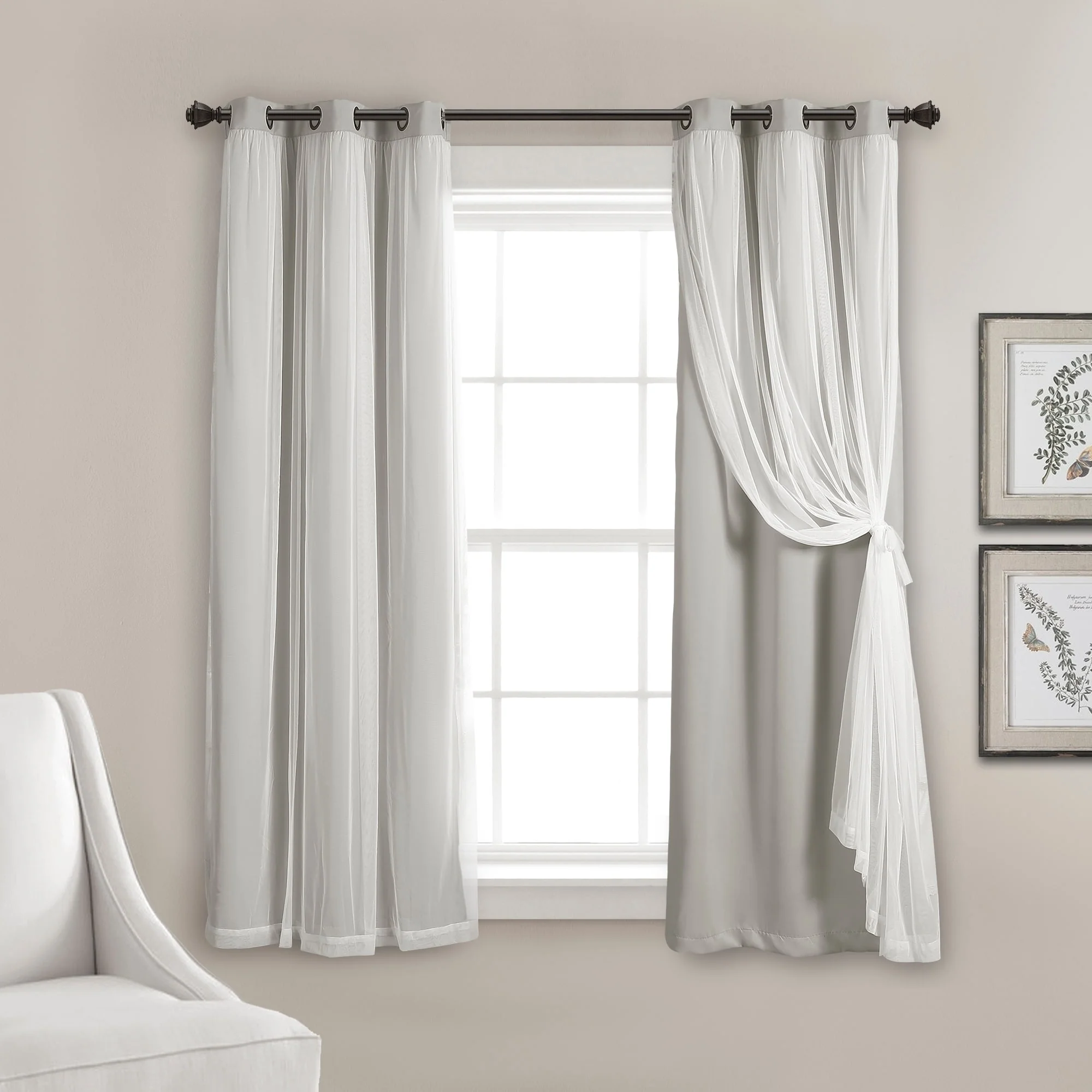 - 2-panel set includes blackout panel and sheer panel