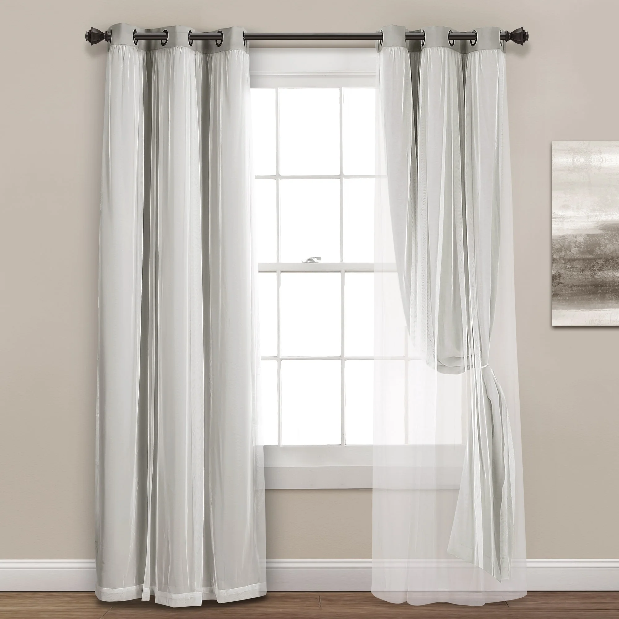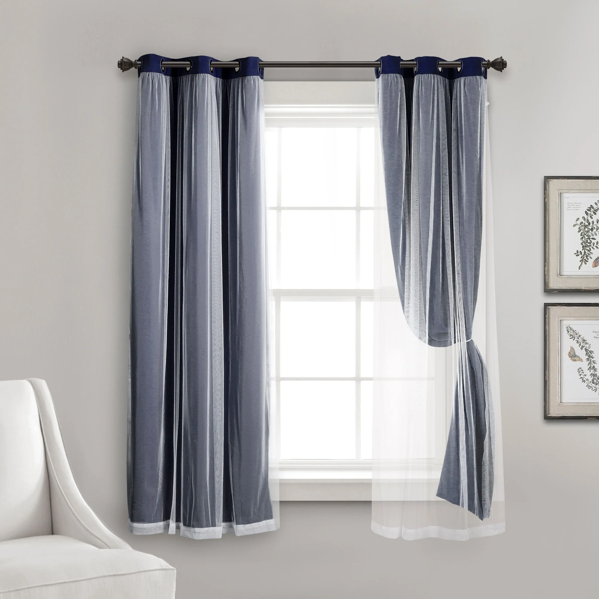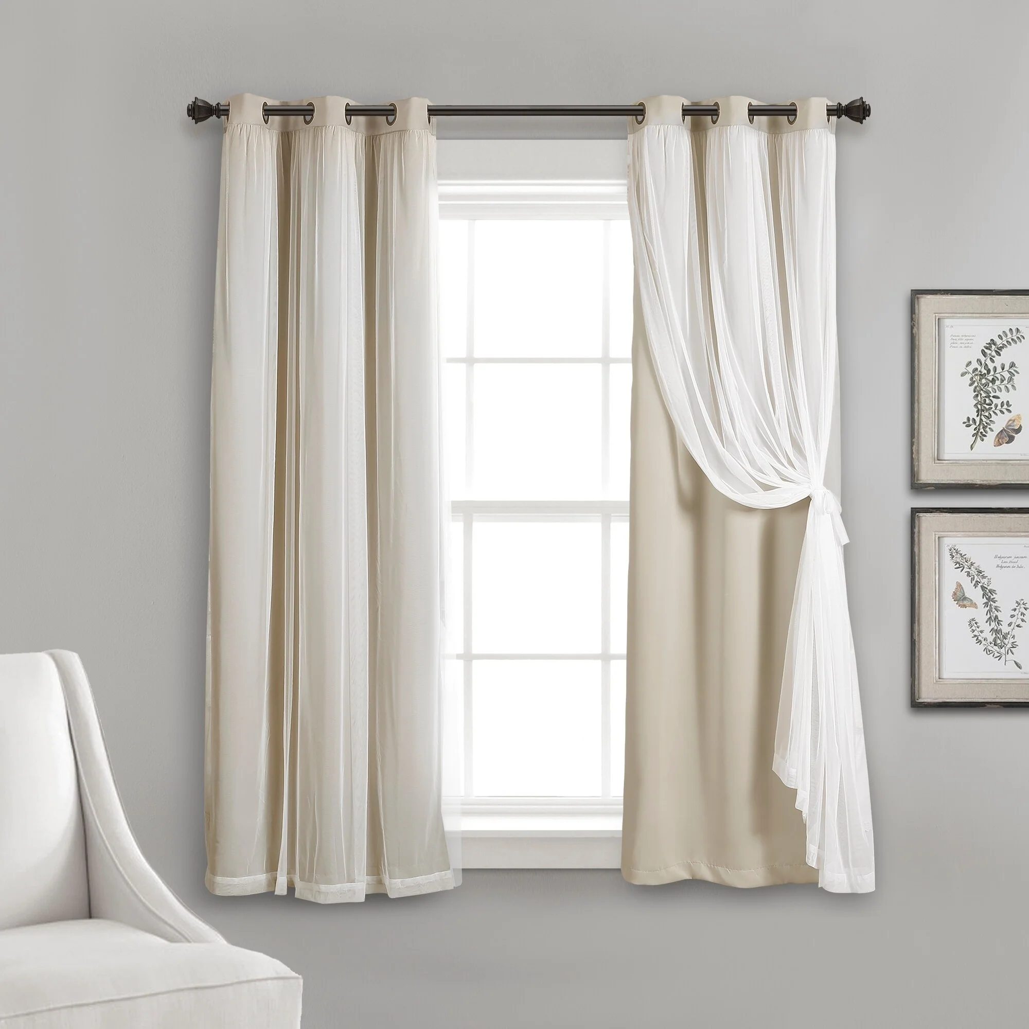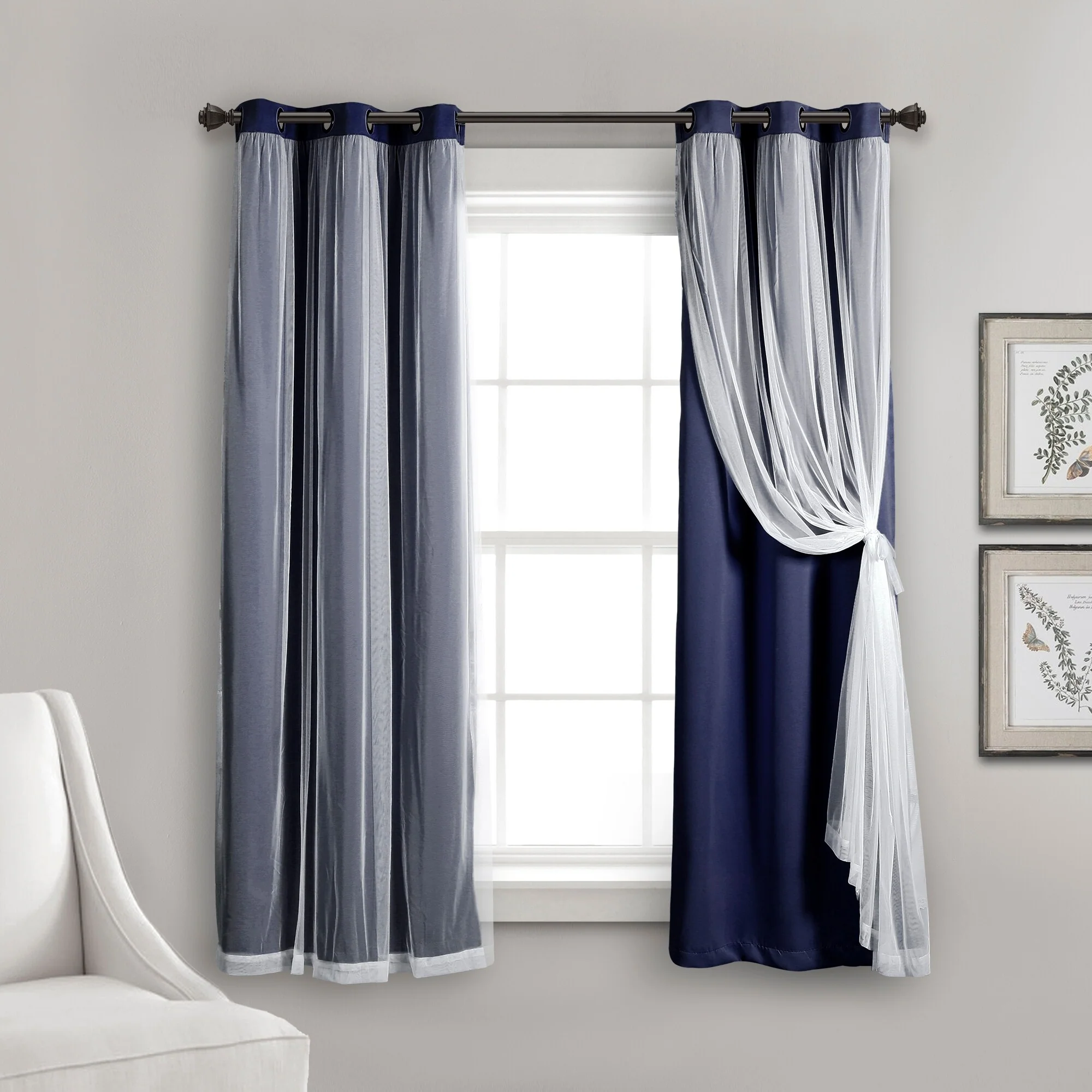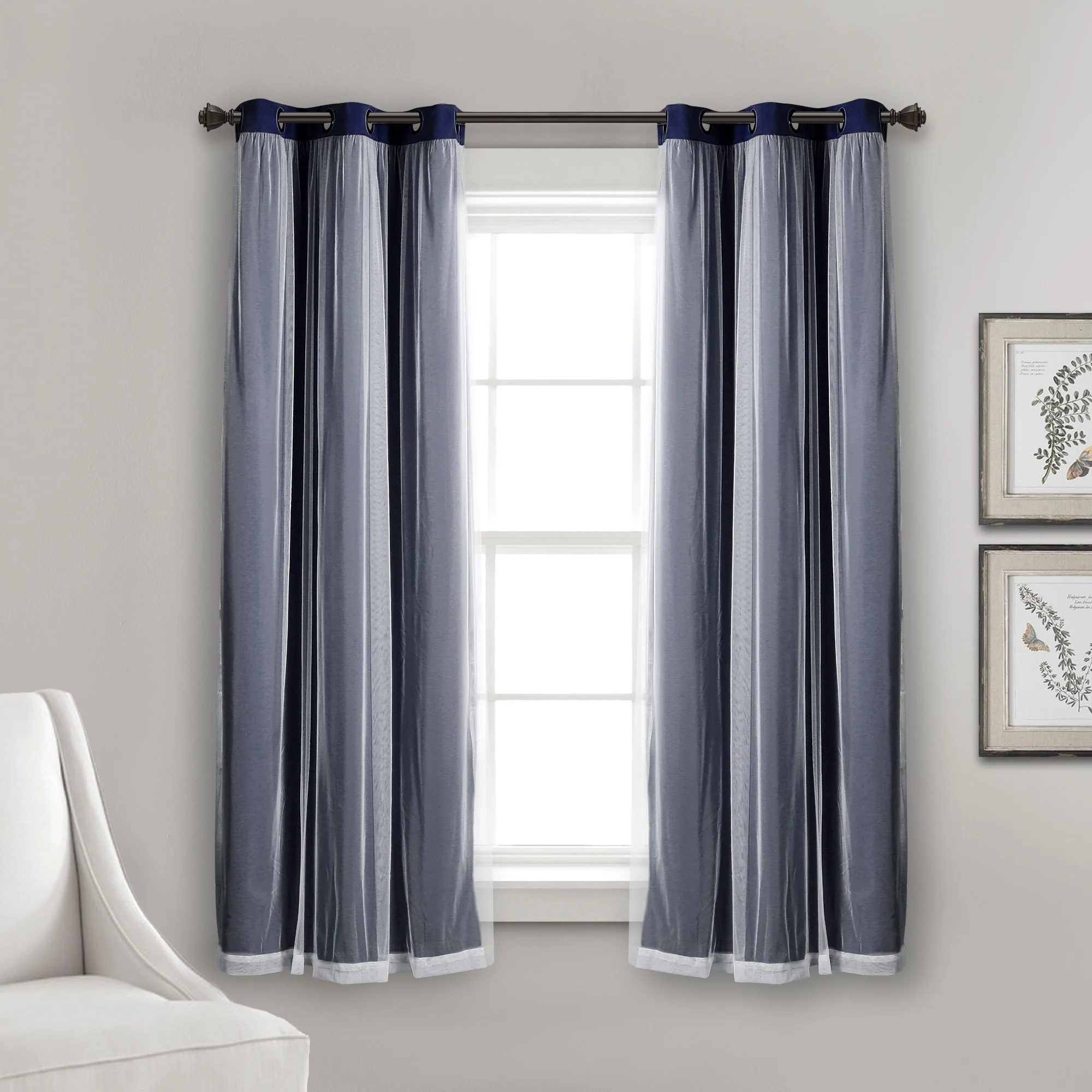 - 2-panel set includes blackout panel and sheer panel