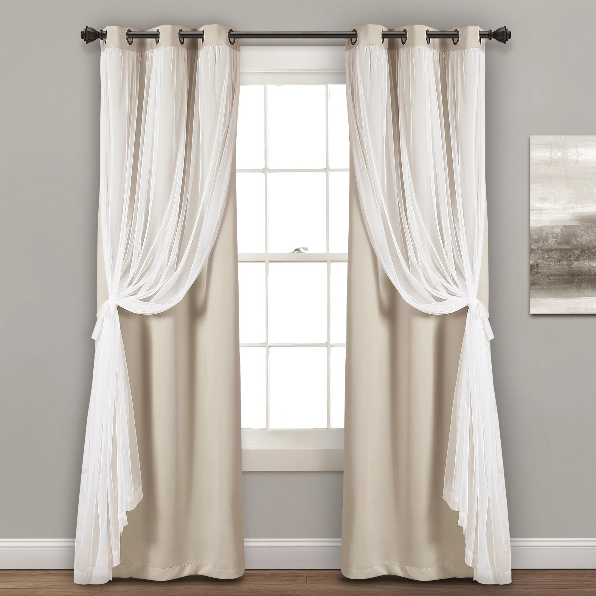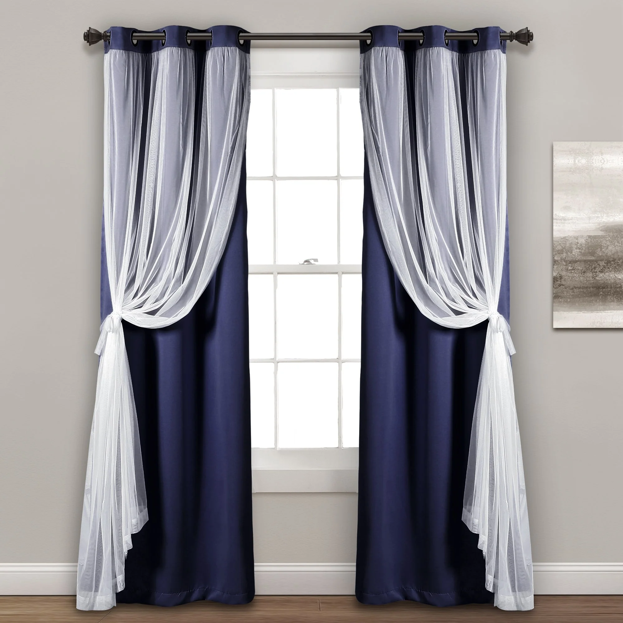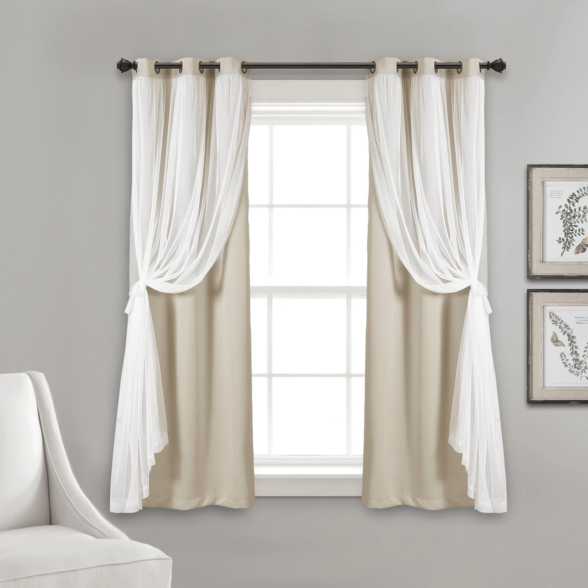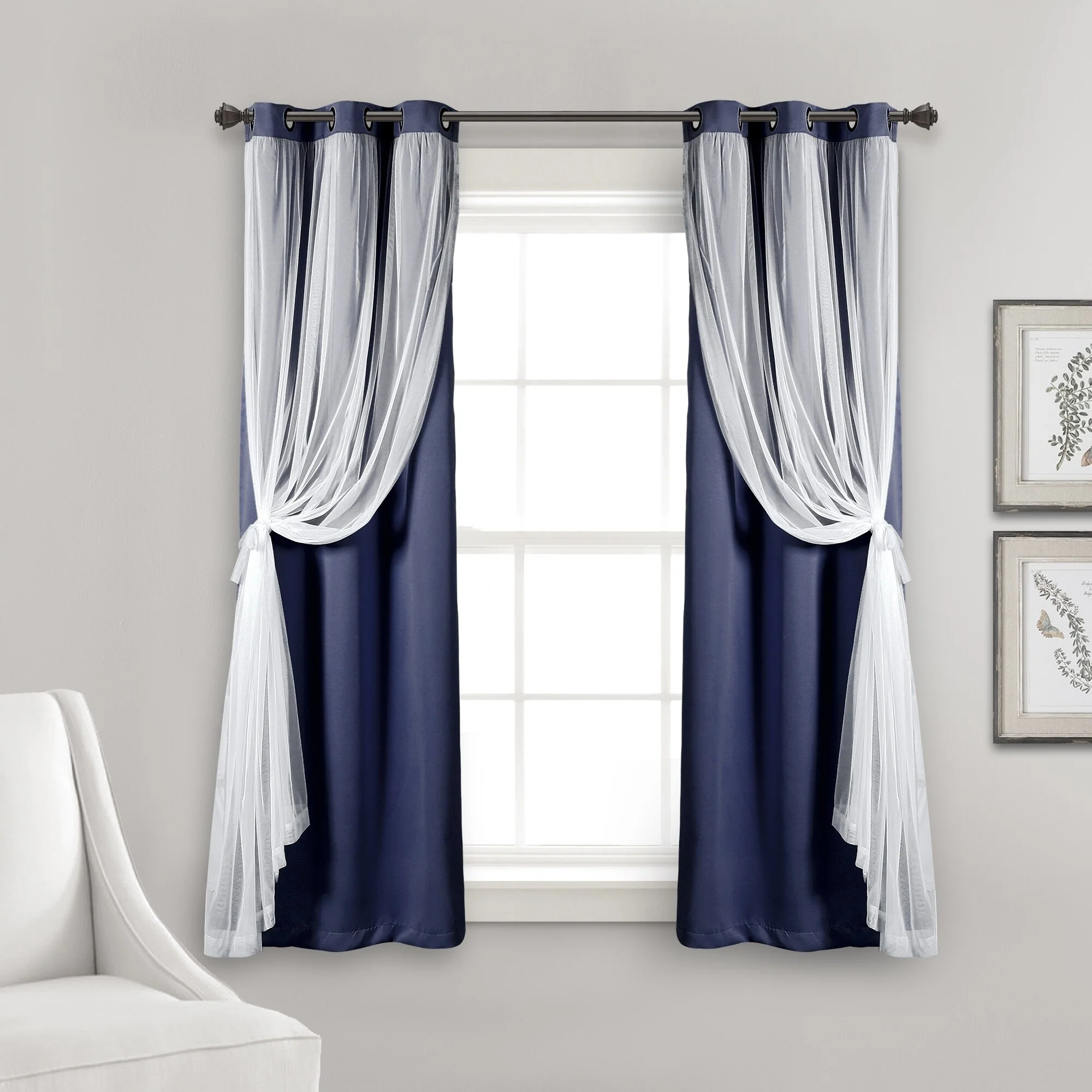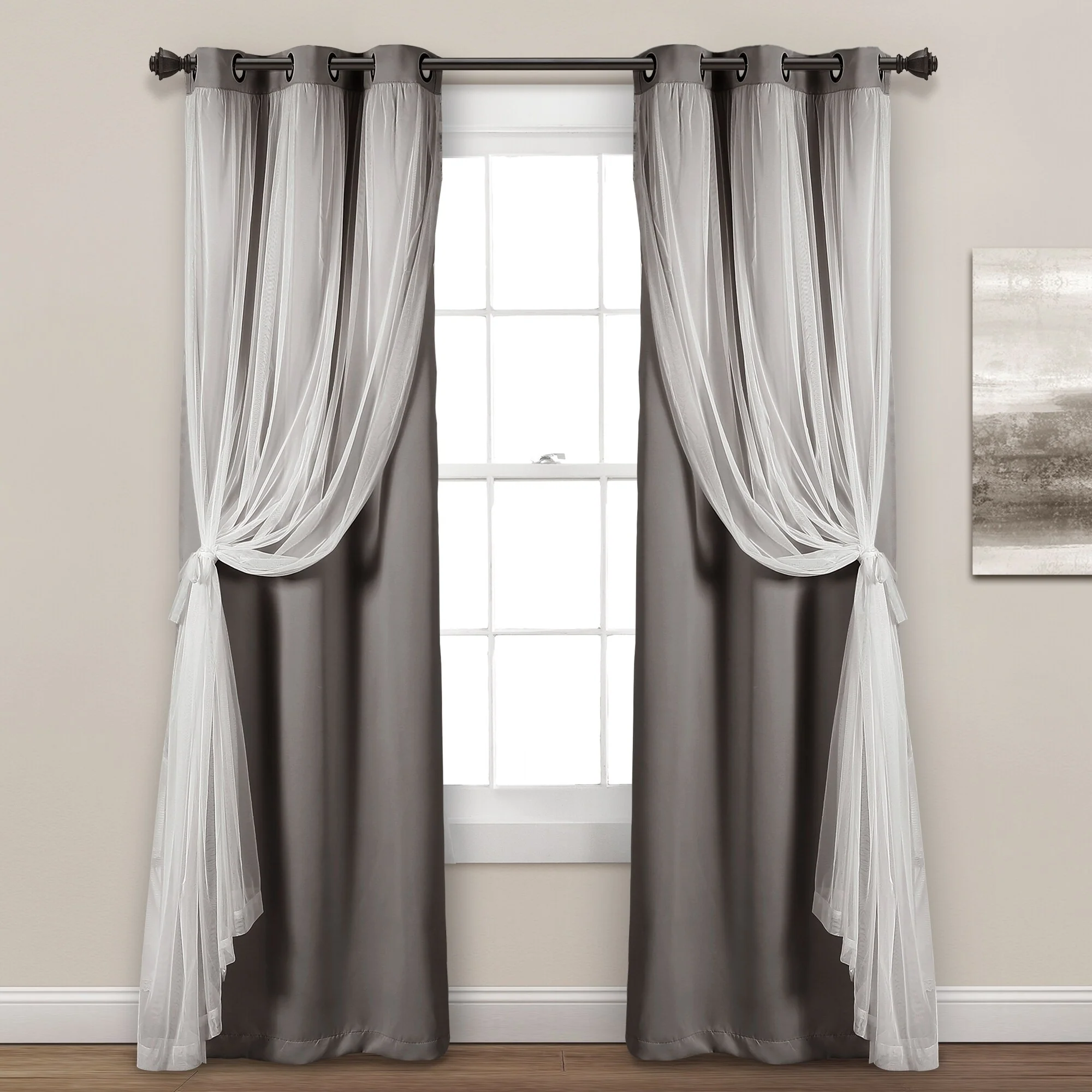 - 2-panel set includes blackout panel and sheer panel