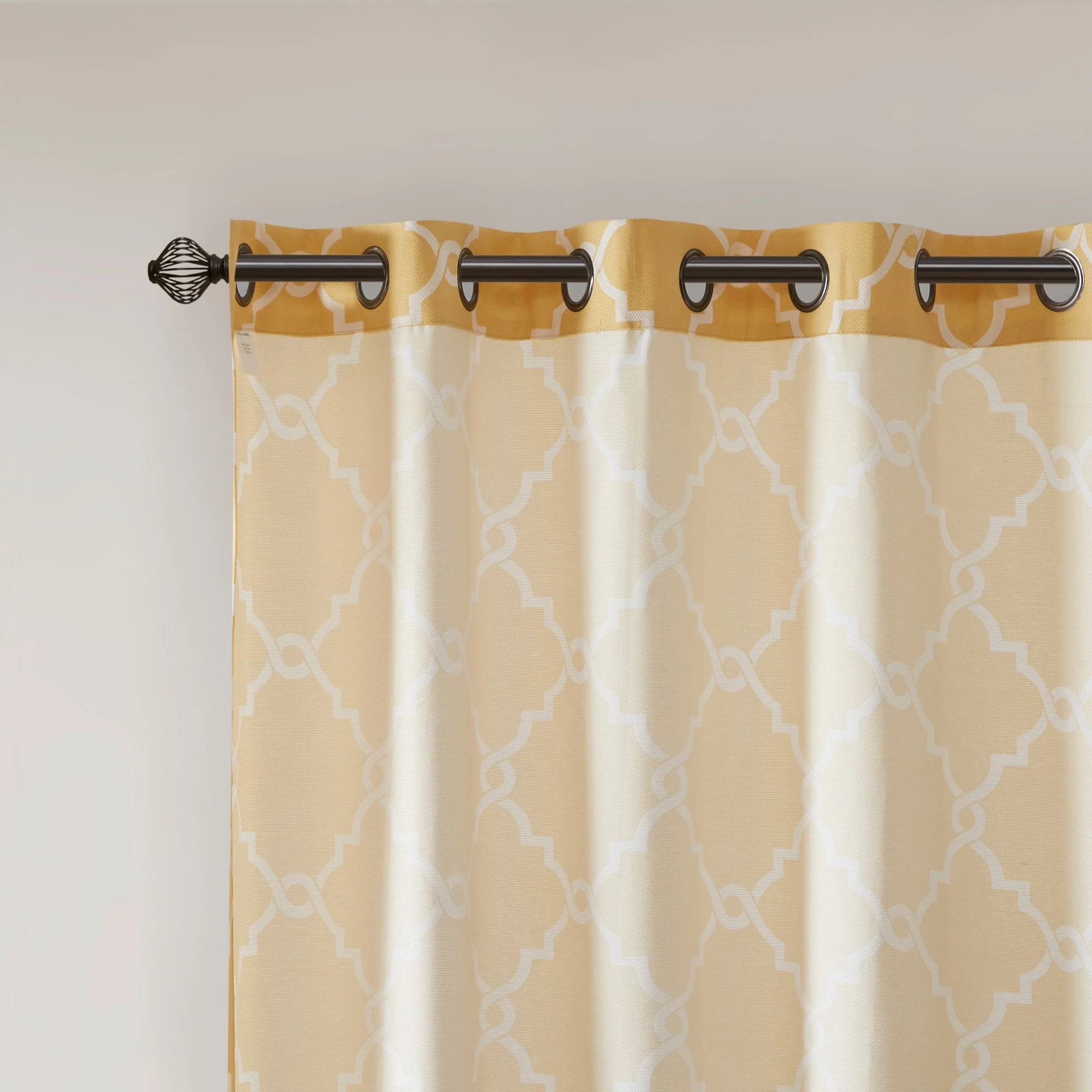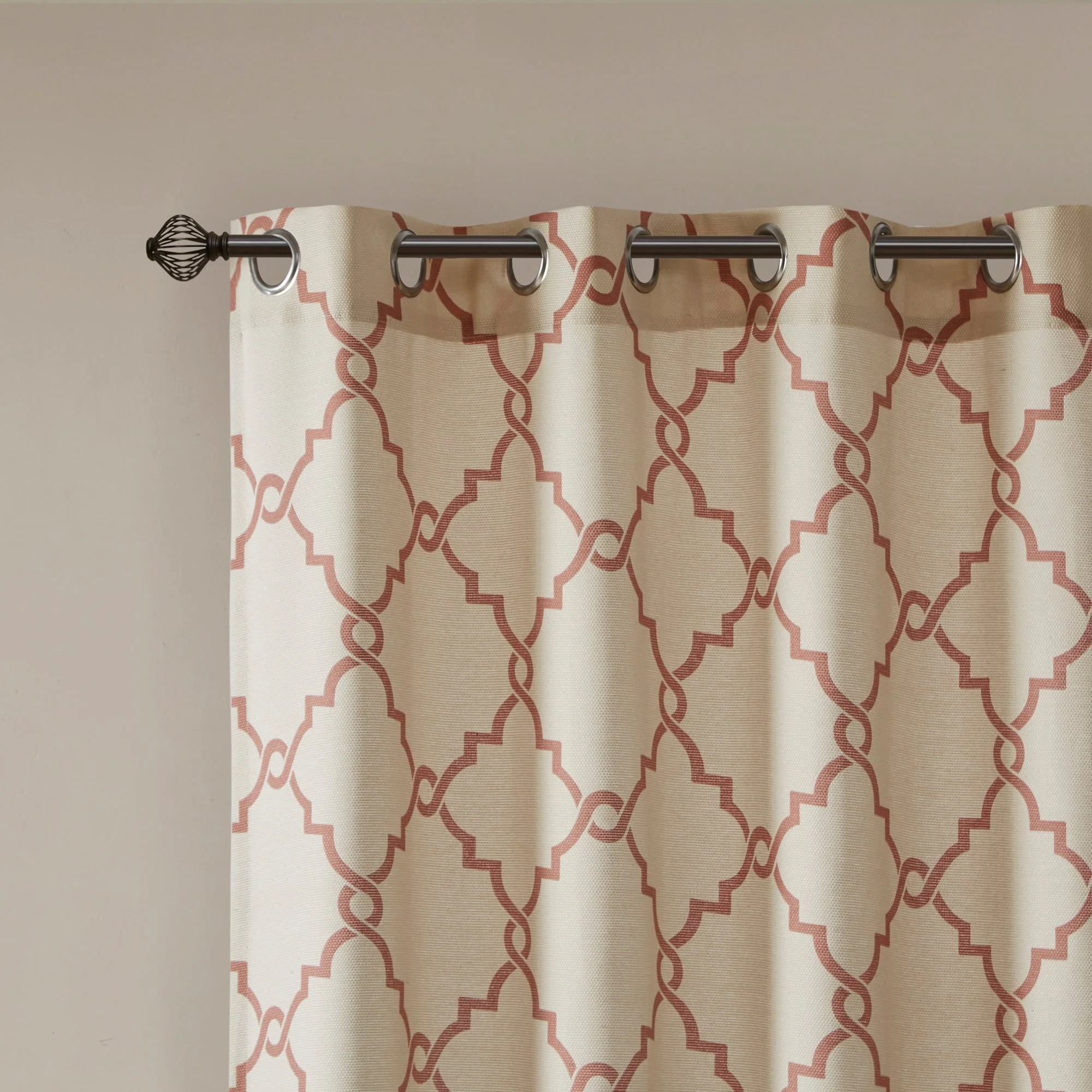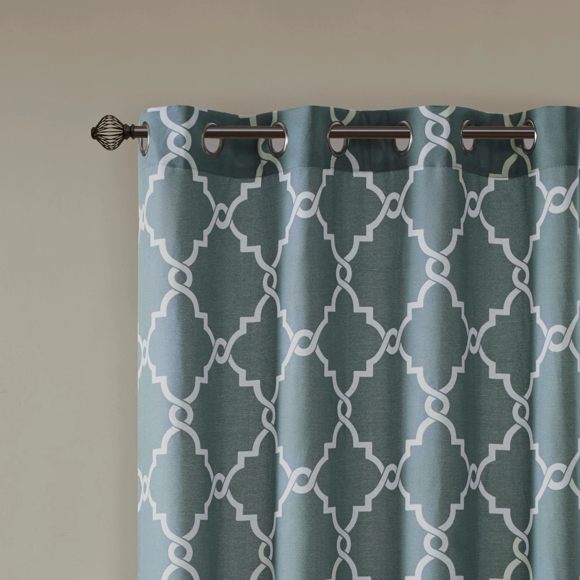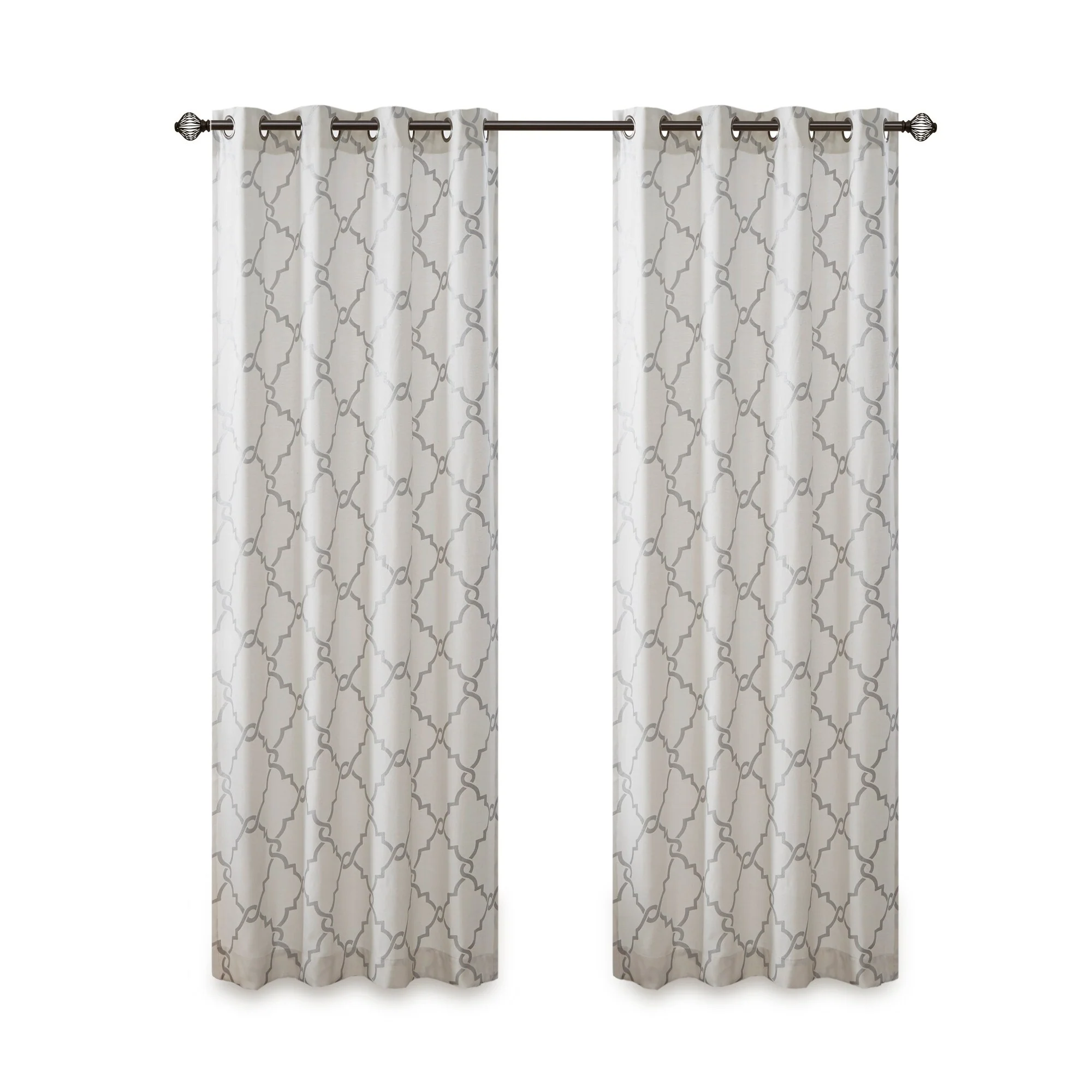 The Madison Park Saratoga Fret Print Panel is the perfect addition for a casual and stylish update to your home decor. This window panel features a trendy fretwork design, creating a simple yet modern look. The basket weave fabric softly filters the perfect amount of sunlight into your home, while providing texture for natural appeal. Gunmetal grommet top detail makes this panel easy to hang, open, and close throughout the day. Fits up to a 1.25' diameter rod. Pattern position may vary per panel due to random cutting of fabric.