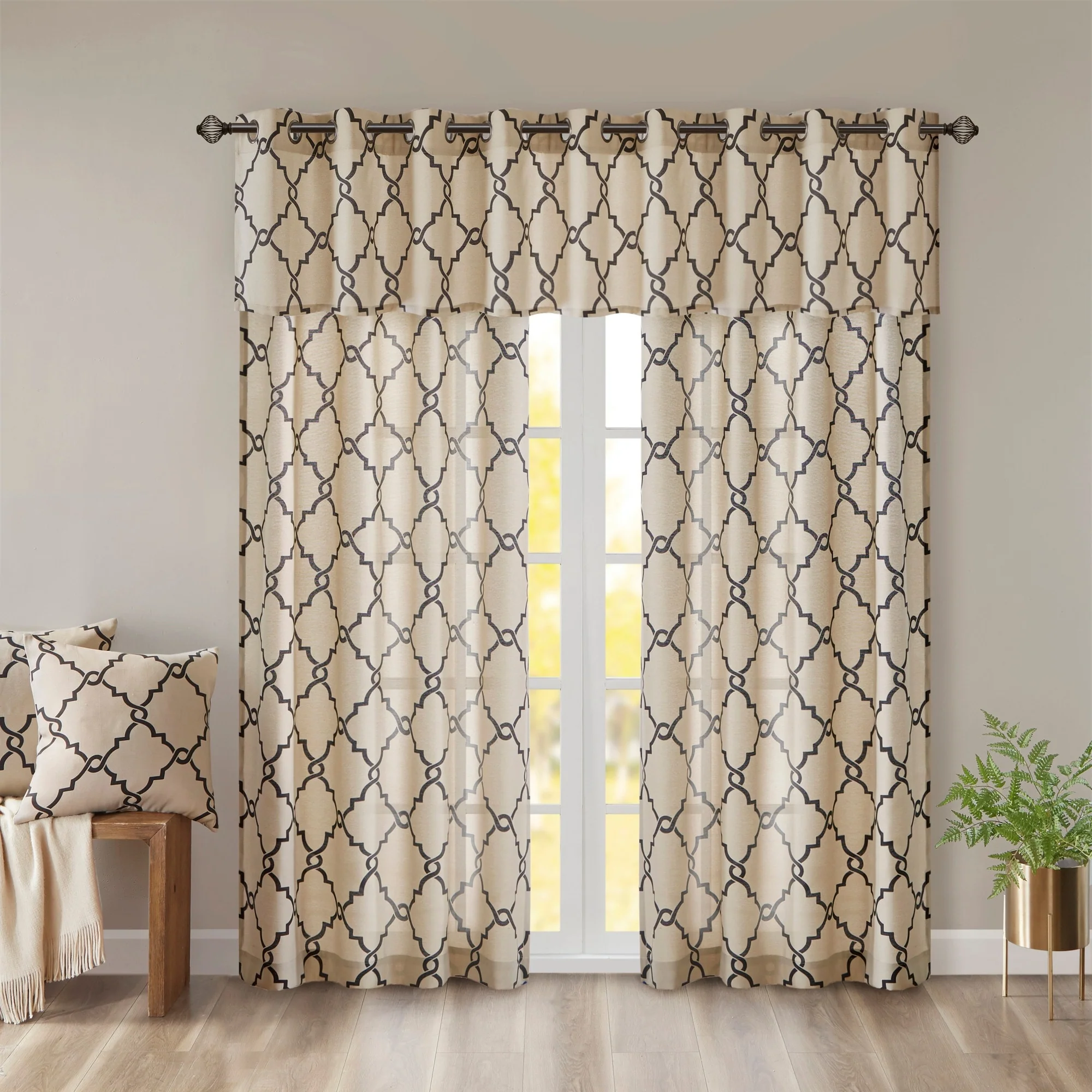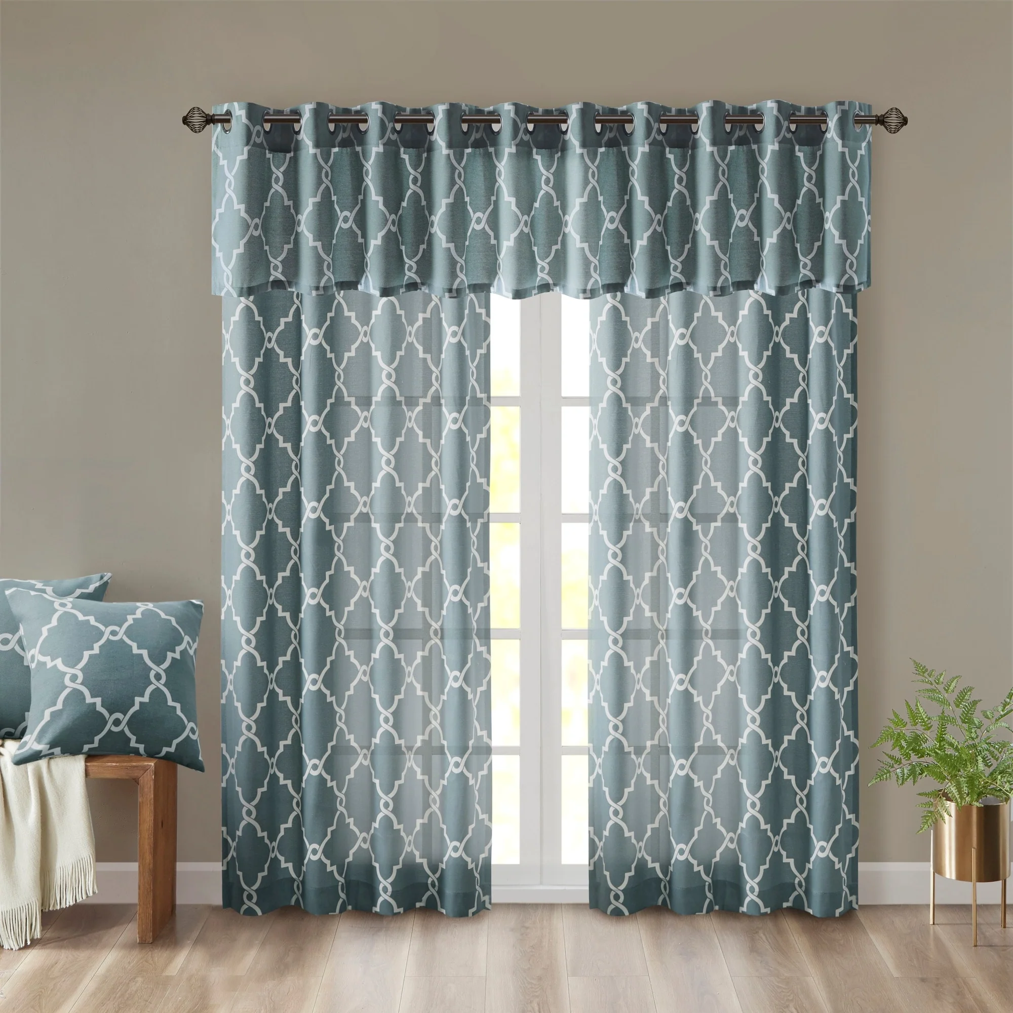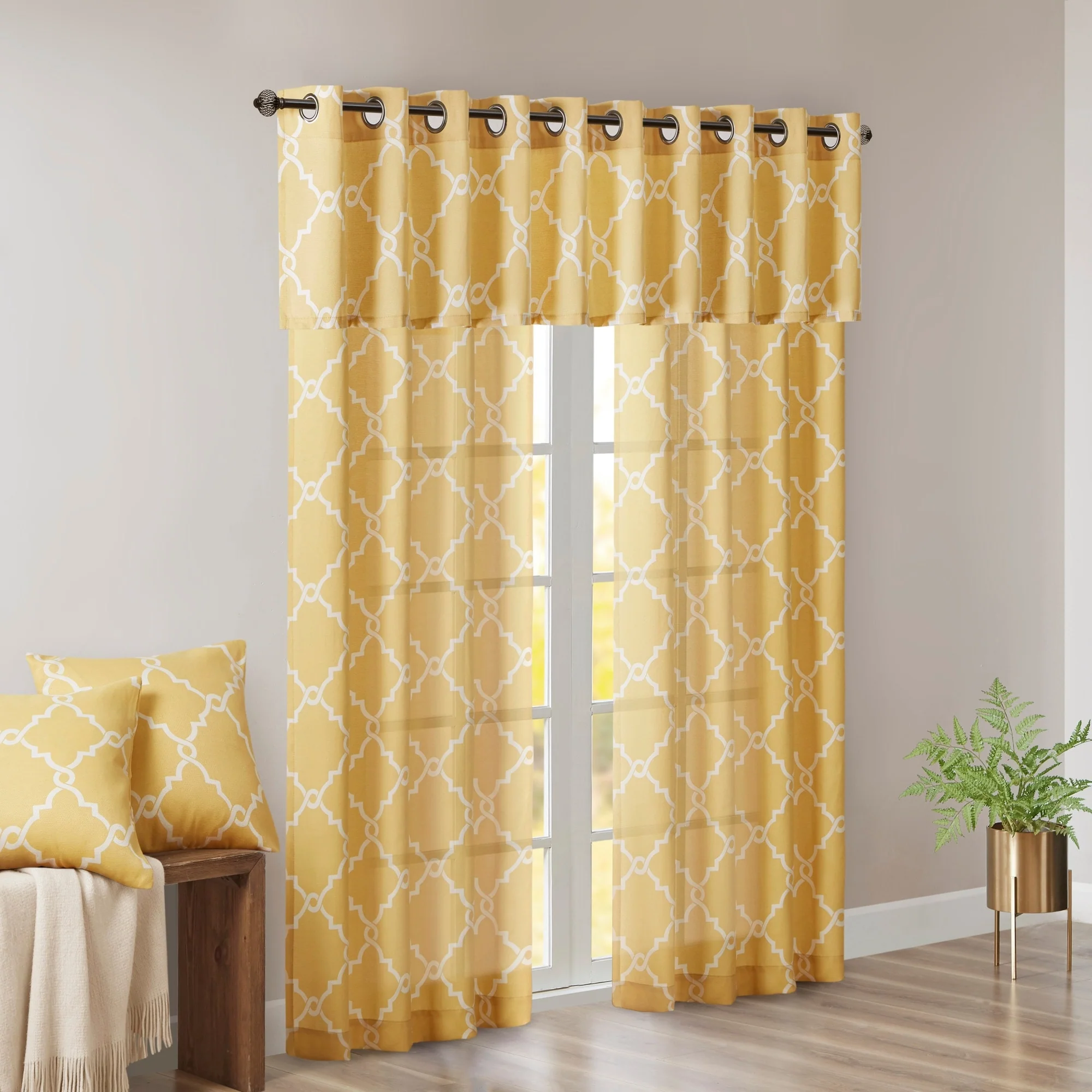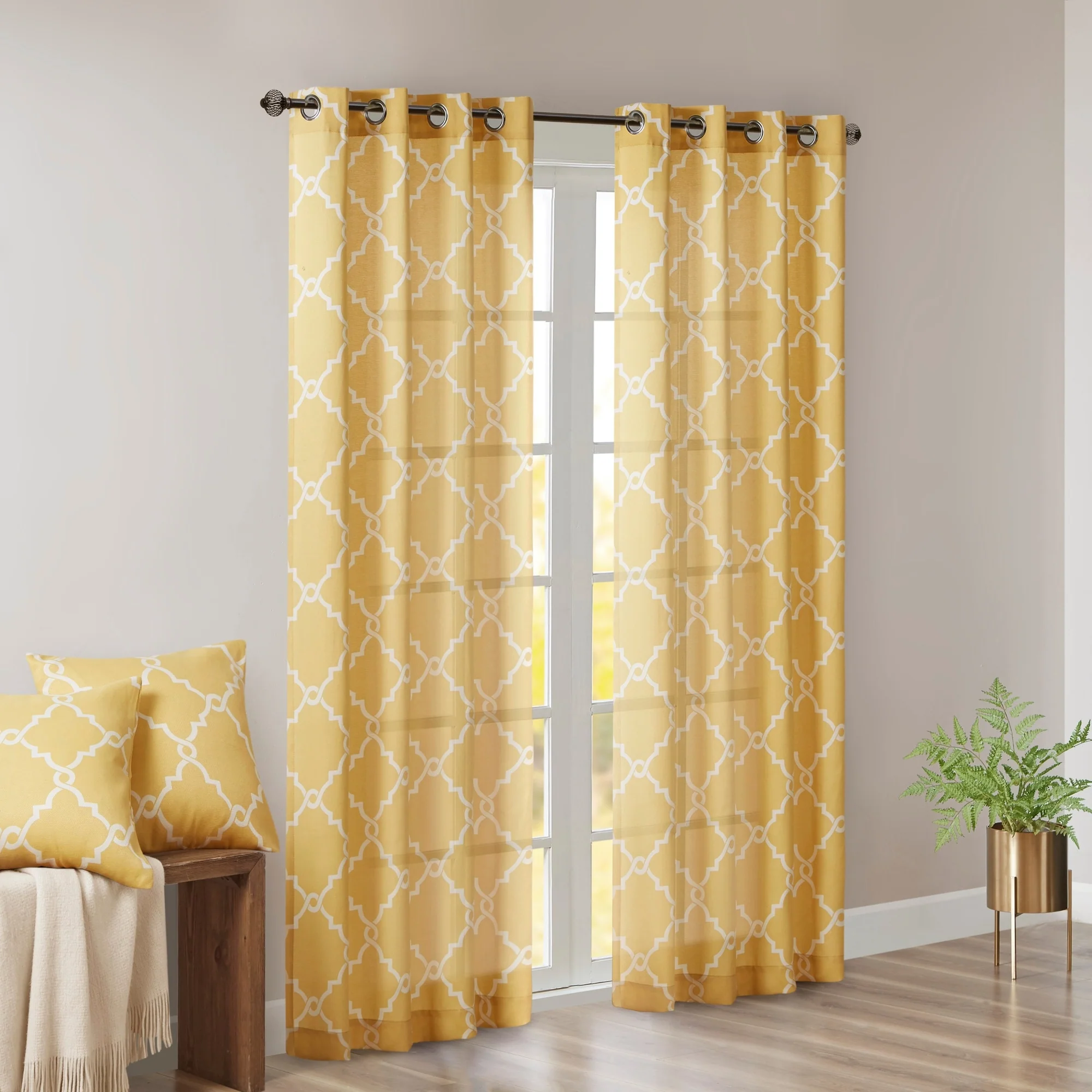 - Scroll geometric fretwork print design window curtain panel in grommet top