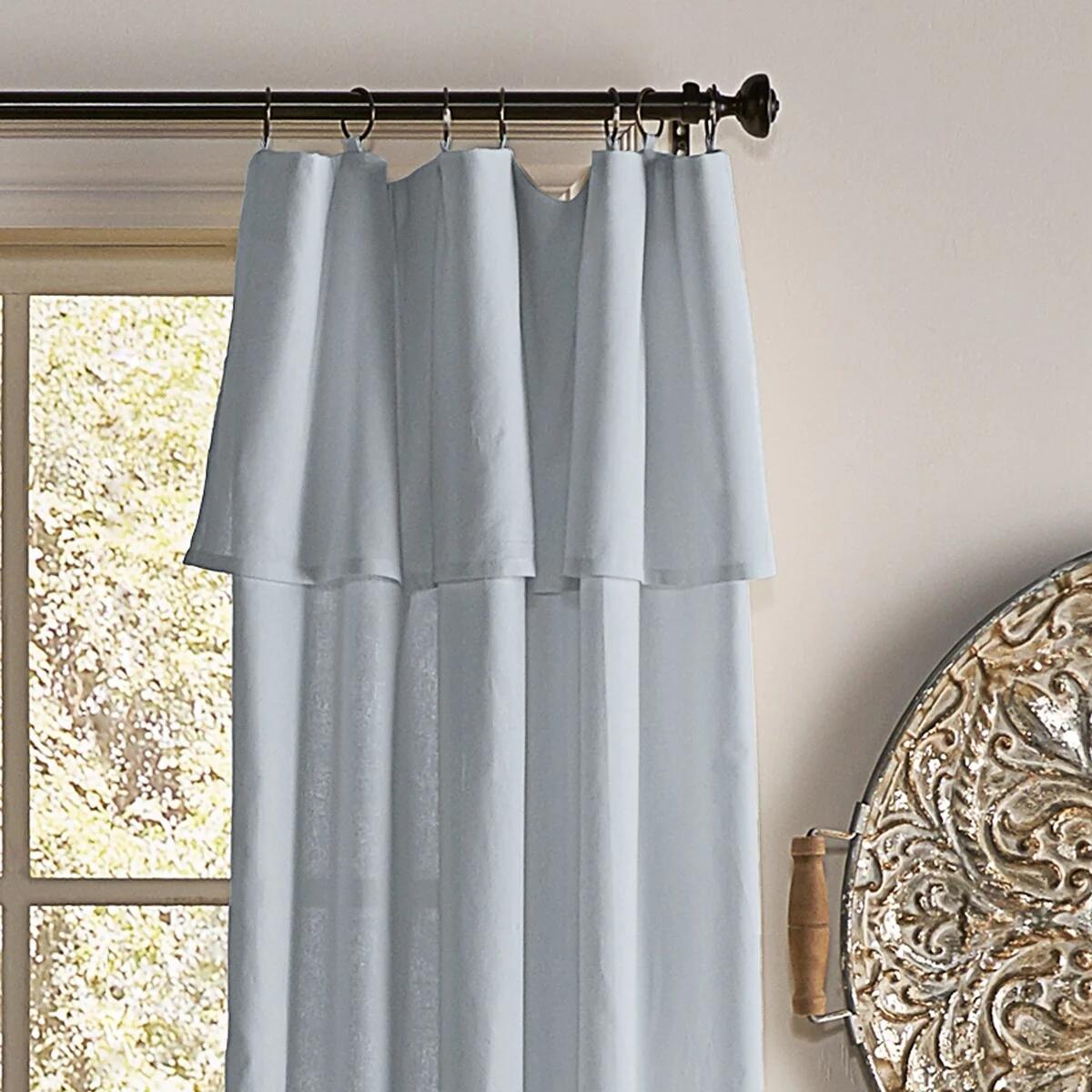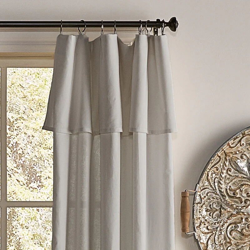 Mercantile Drop Cloth Ring and Tab Top Light Filtering Curtains are the perfect addition to add farmhouse flair to your home decor. Crafted from 100% cotton, these panel curtains offer a blend of style and softness. Experience the charm of cotton curtains that provide ample coverage for your windows while softening light and adding a warm, inviting touch to any room in your home. Whether it's your bedroom, living room, or any other space, these window curtain panels effortlessly infuse farmhouse-inspired design to any home. These farmhouse curtains for living room are machine washable. Simply remove the rings and machine wash them in cold water on a gentle cycle. Tumble dry on low and use a warm iron as needed to keep them fresh and wrinkle-free. With these beautiful long curtains, you have the flexibility to hang them 3 different ways. Use the included removable oil-rubbed bronze rings or a rod pocket, with or without a valance. Elevate your windows with Mercantile Drop Cloth Ring and Tab Top Curtain Panels and experience the perfect combination of functionality, durability, and farmhouse-inspired charm.