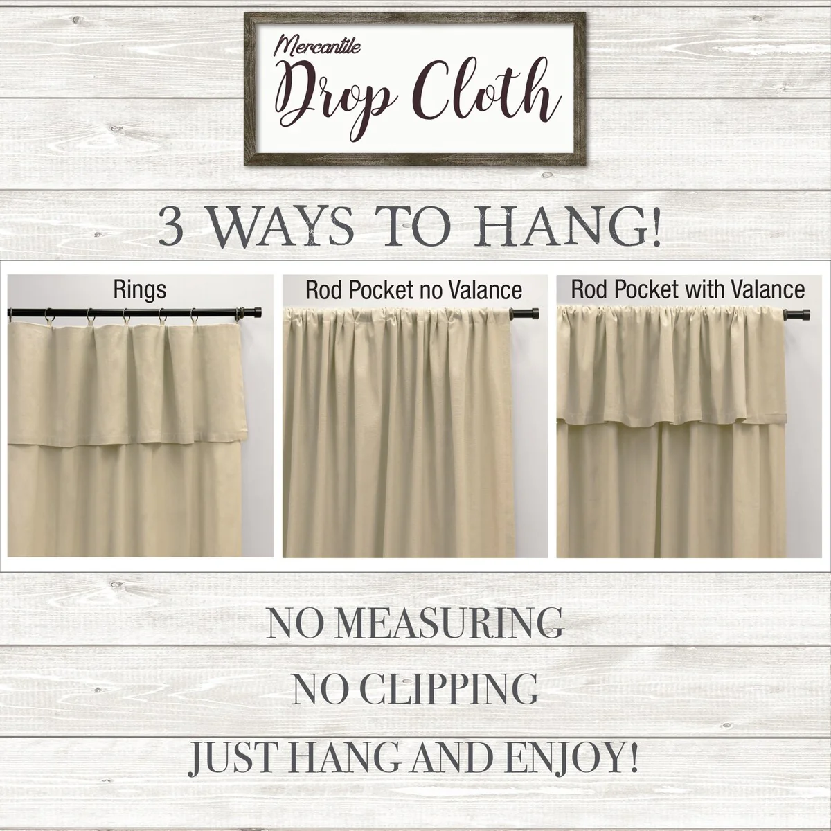 - Add a farmhouse flair to your space with the Mercantile Drop Cloth light filtering curtains. Our curtains protect your space from harsh sunlight and help in maintaining some privacy