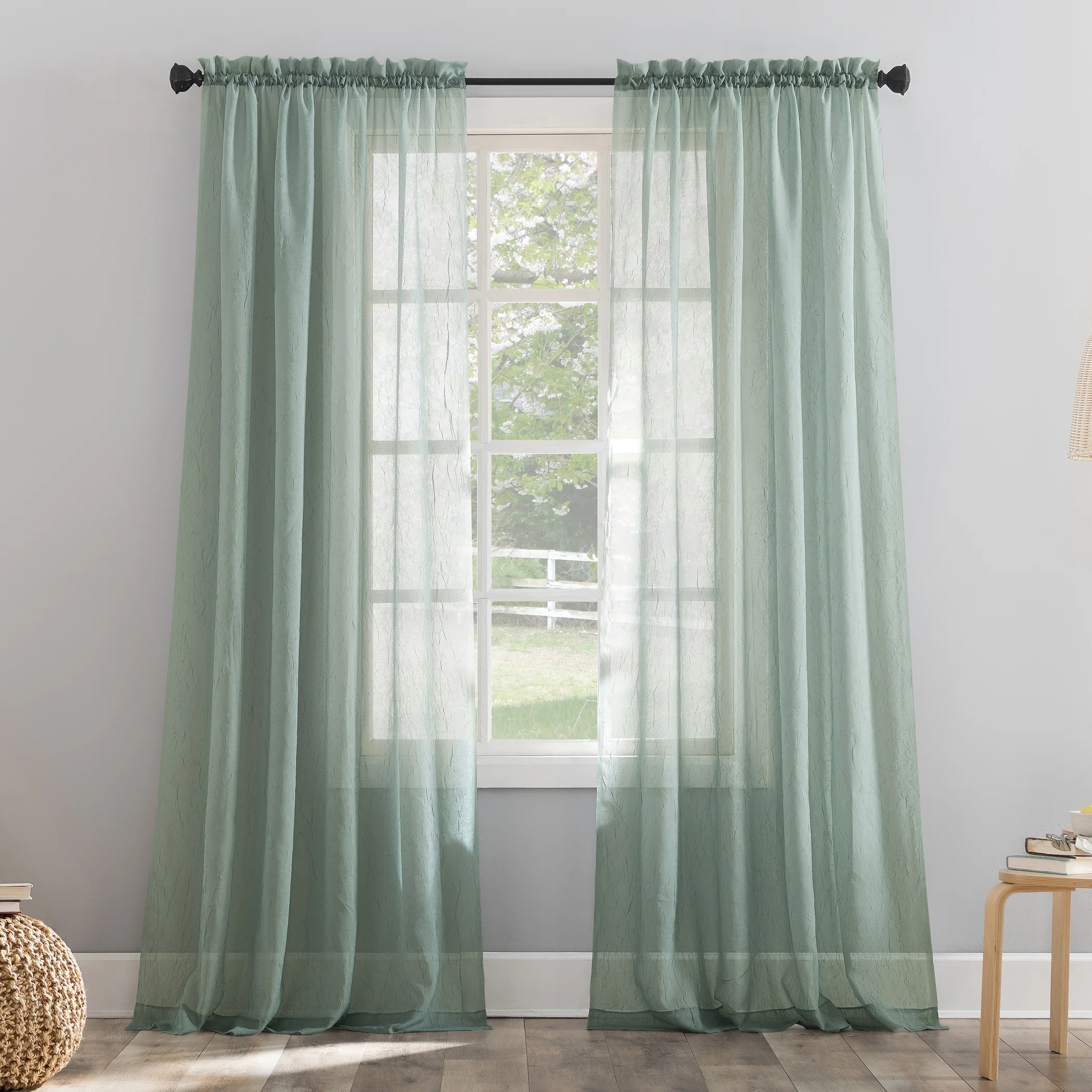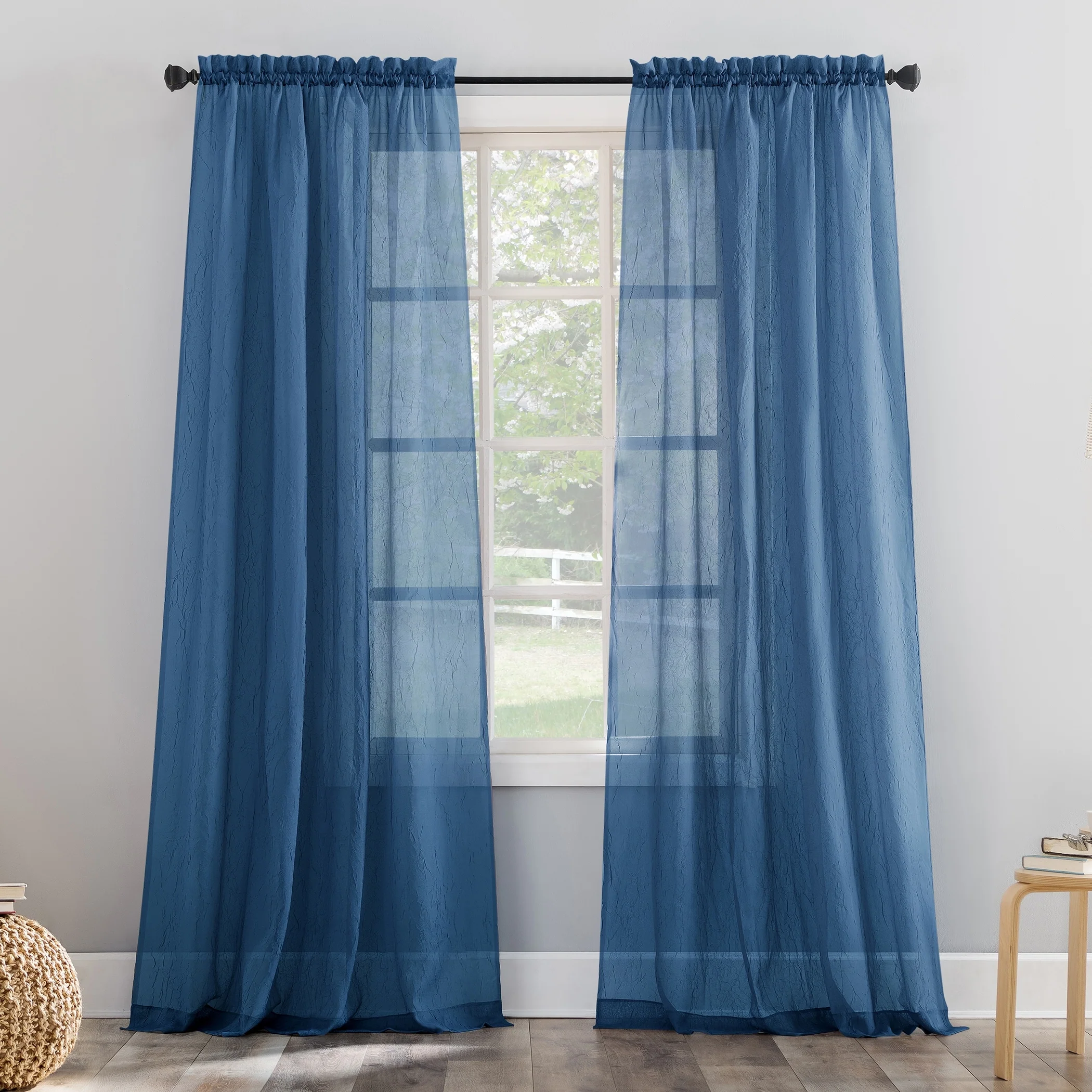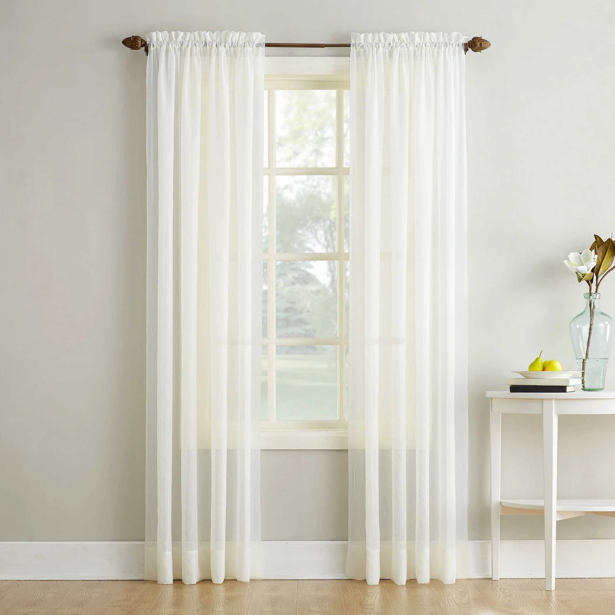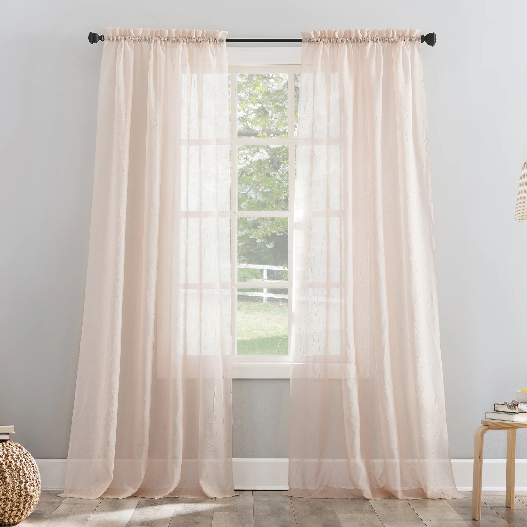 The delicately crushed crinkled texture of No. 918 Erica Curtain Panel adds a subtle touch of elegance to your windows. This lightweight textured sheer gently filters sunlight while providing privacy. Pair these curtains with other No. 918 curtains or valances on a double rod to complete a stylish layered look. Equipped with a built-in rod pocket for easy hanging on standard curtain rods up to ¾' in diameter.