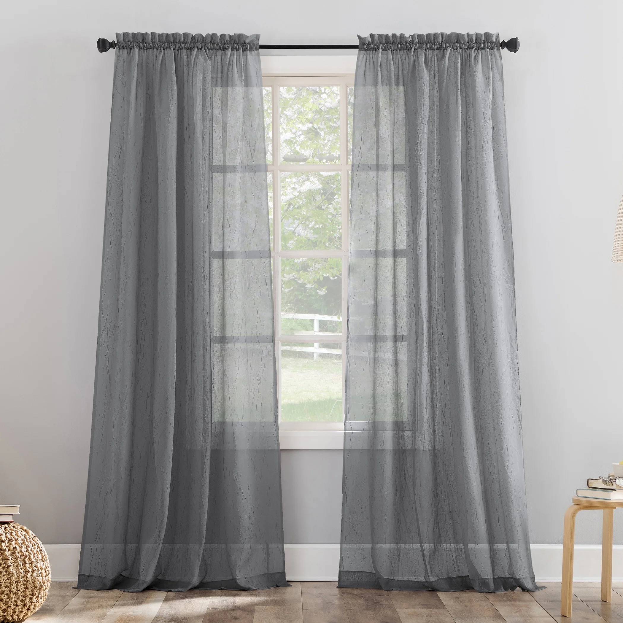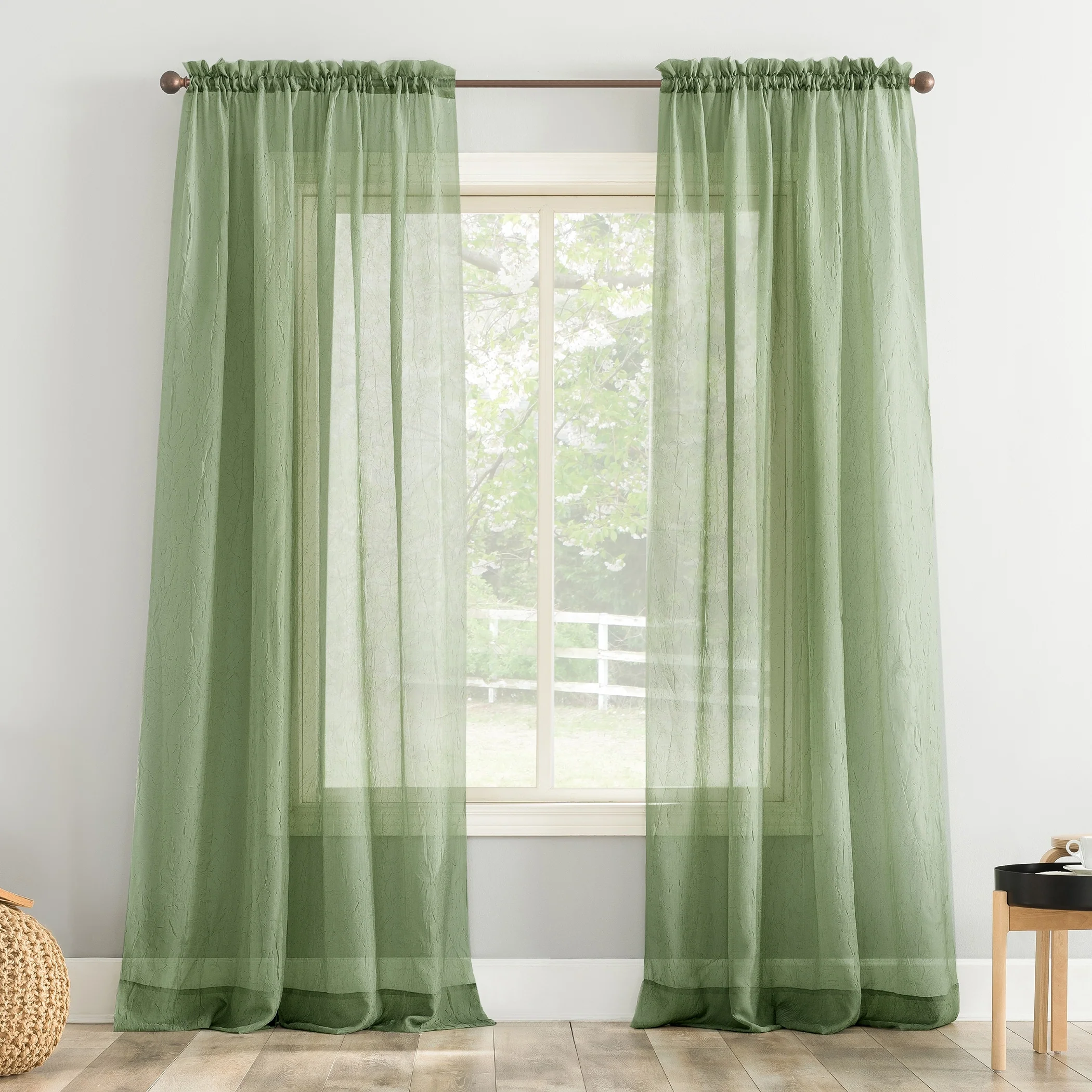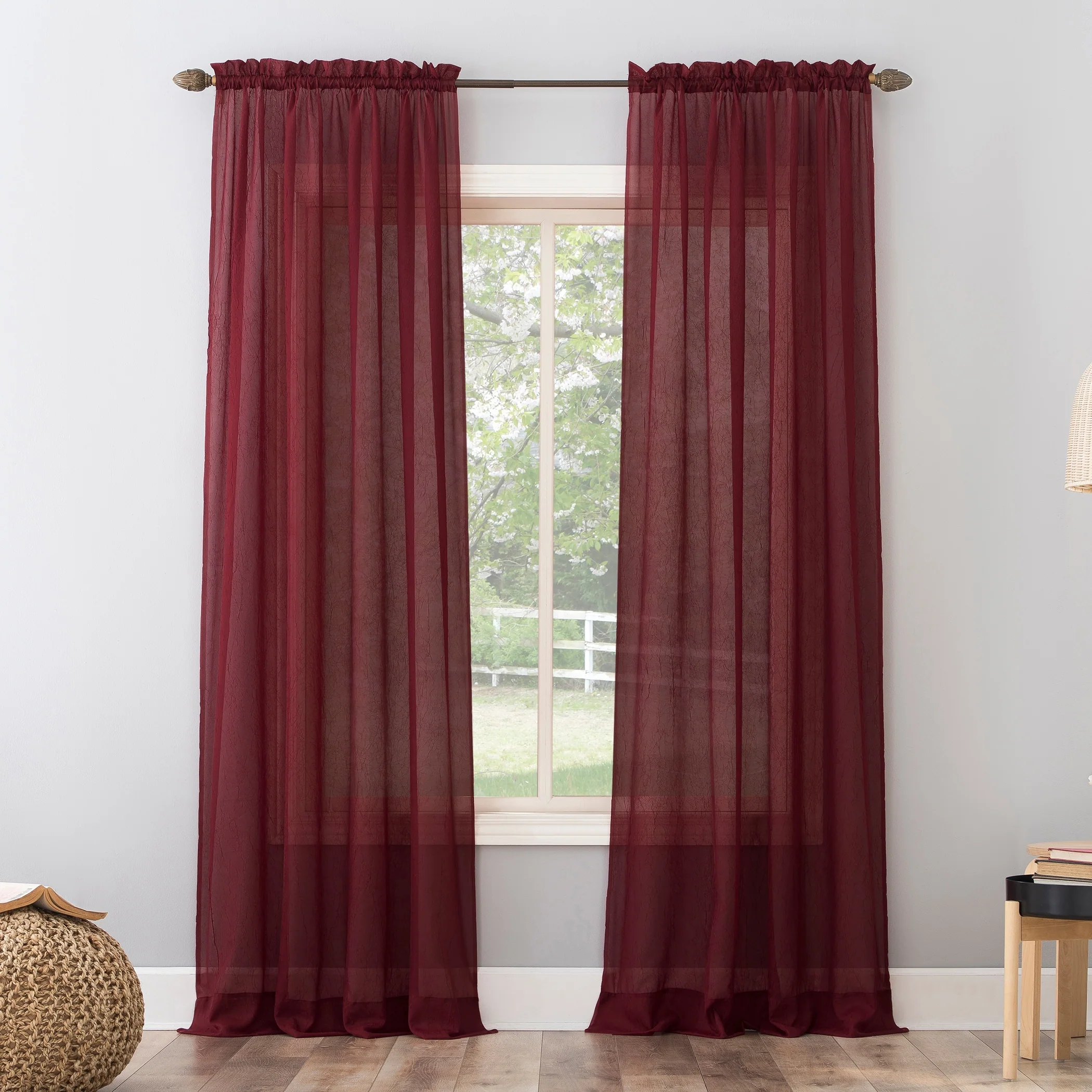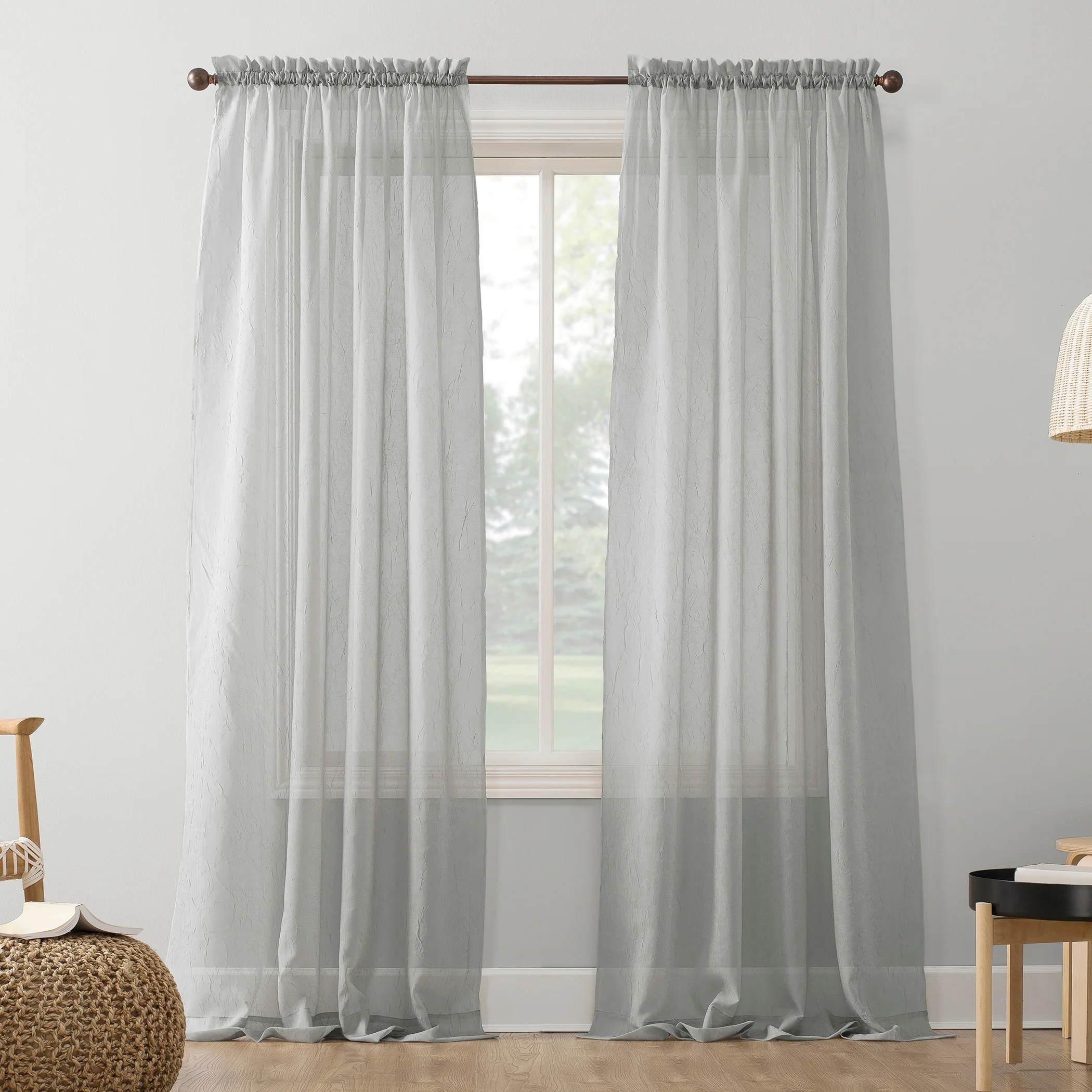 The delicately crushed crinkled texture of No. 918 Erica Curtain Panel adds a subtle touch of elegance to your windows. This lightweight textured sheer gently filters sunlight while providing privacy. Pair these curtains with other No. 918 curtains or valances on a double rod to complete a stylish layered look. Equipped with a built-in rod pocket for easy hanging on standard curtain rods up to ¾' in diameter.