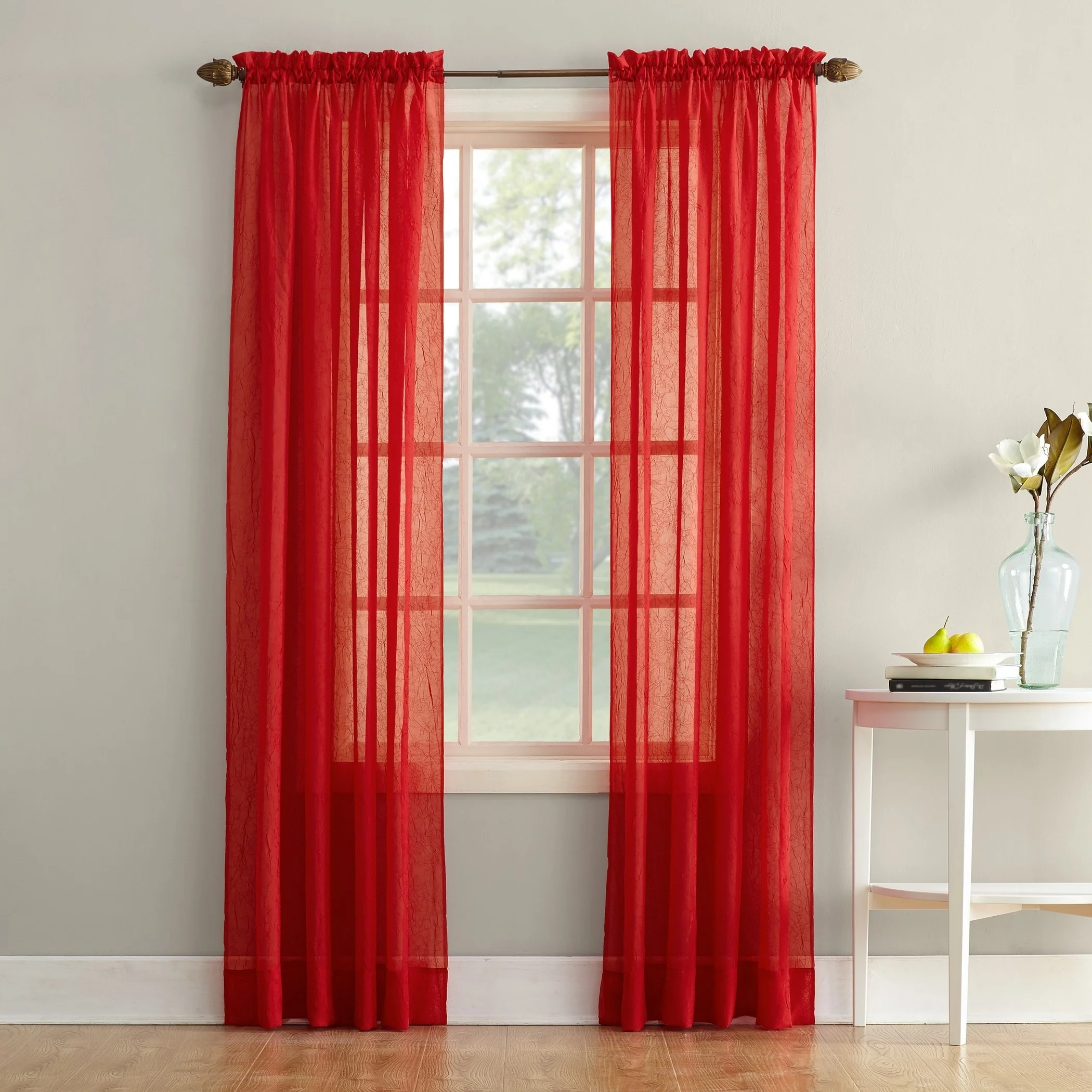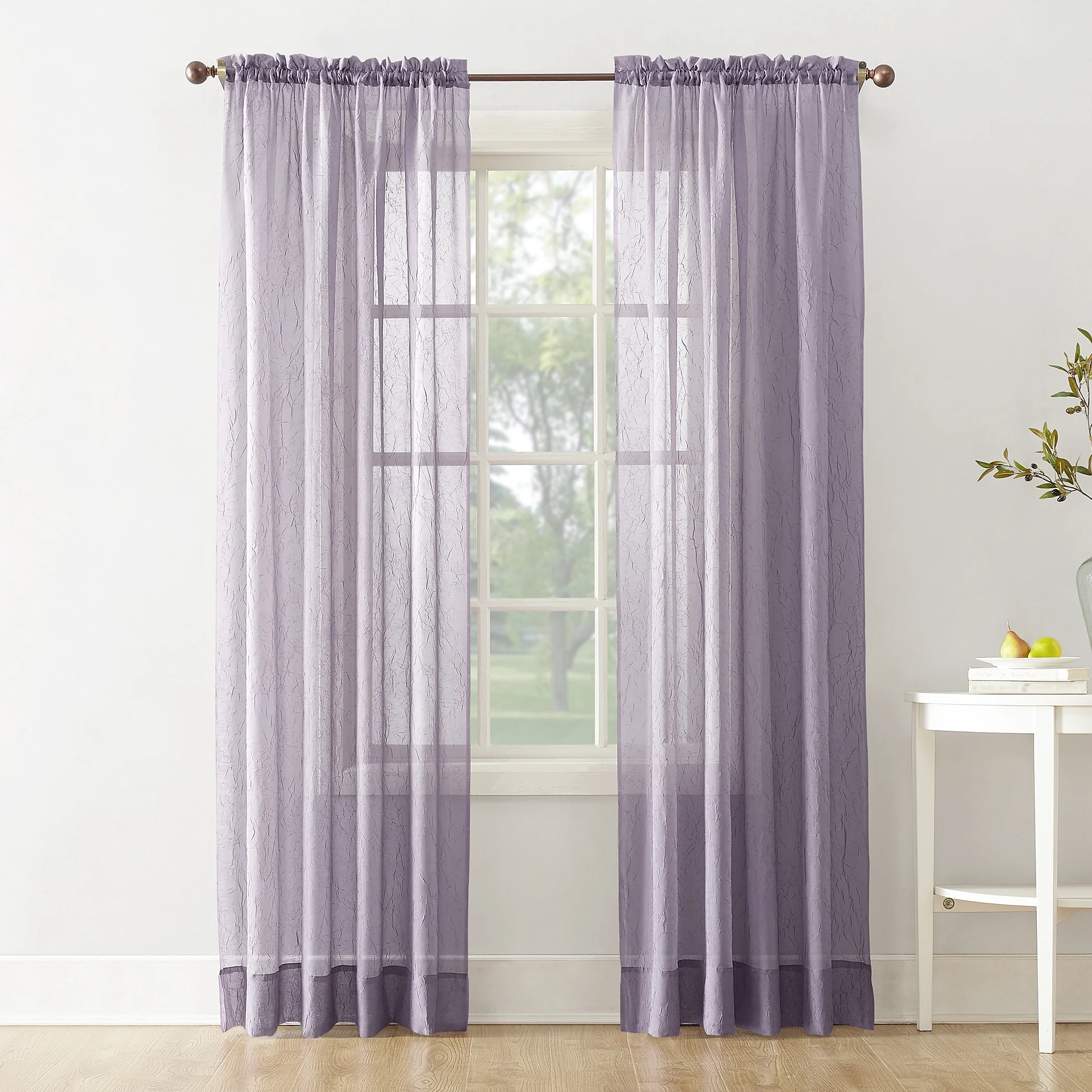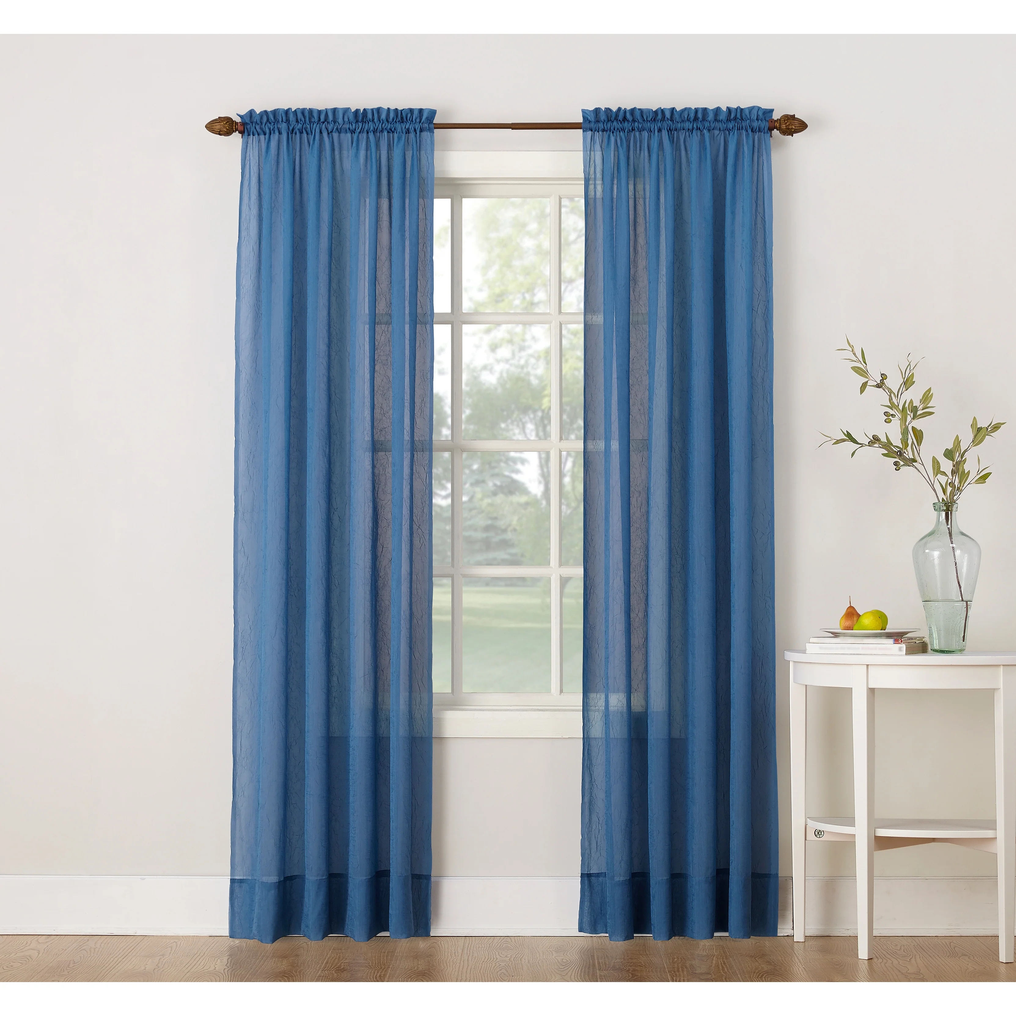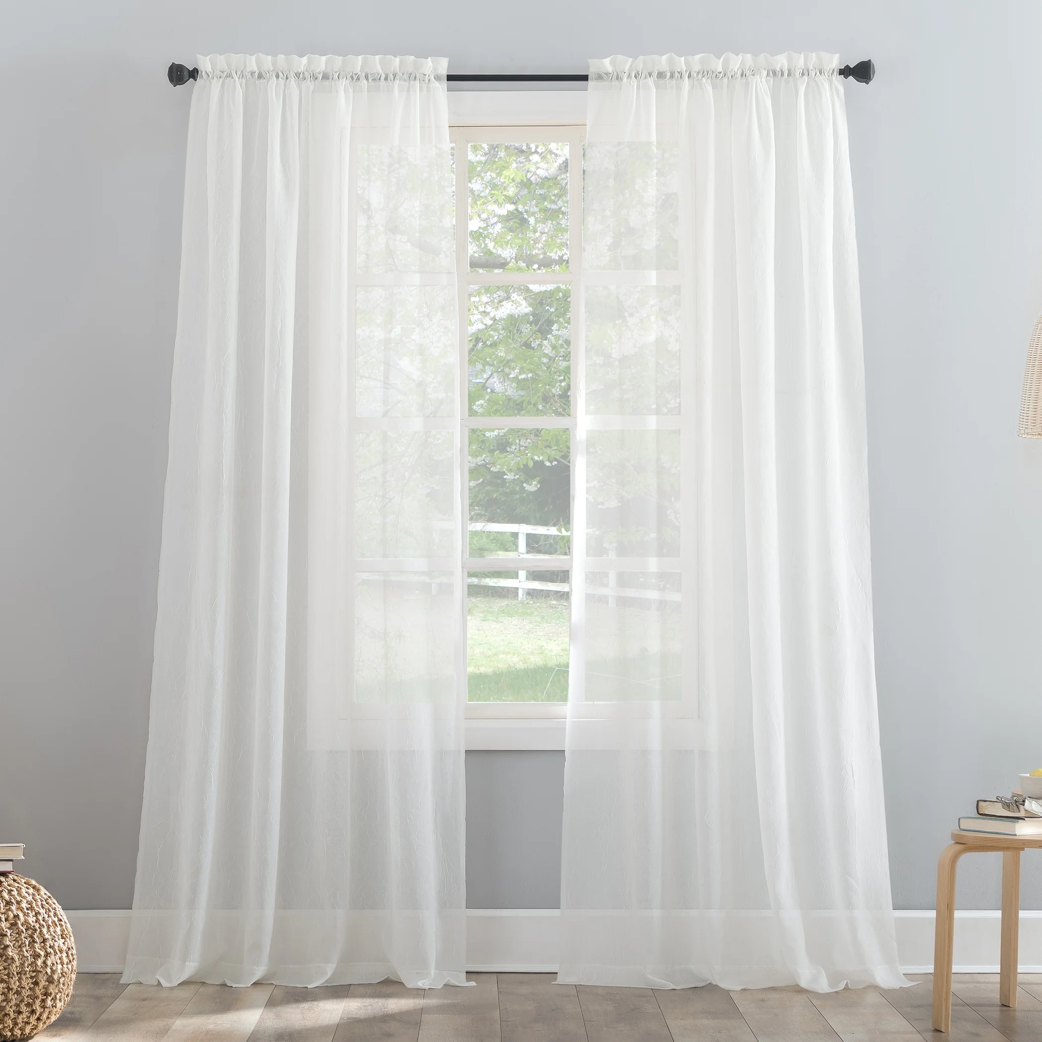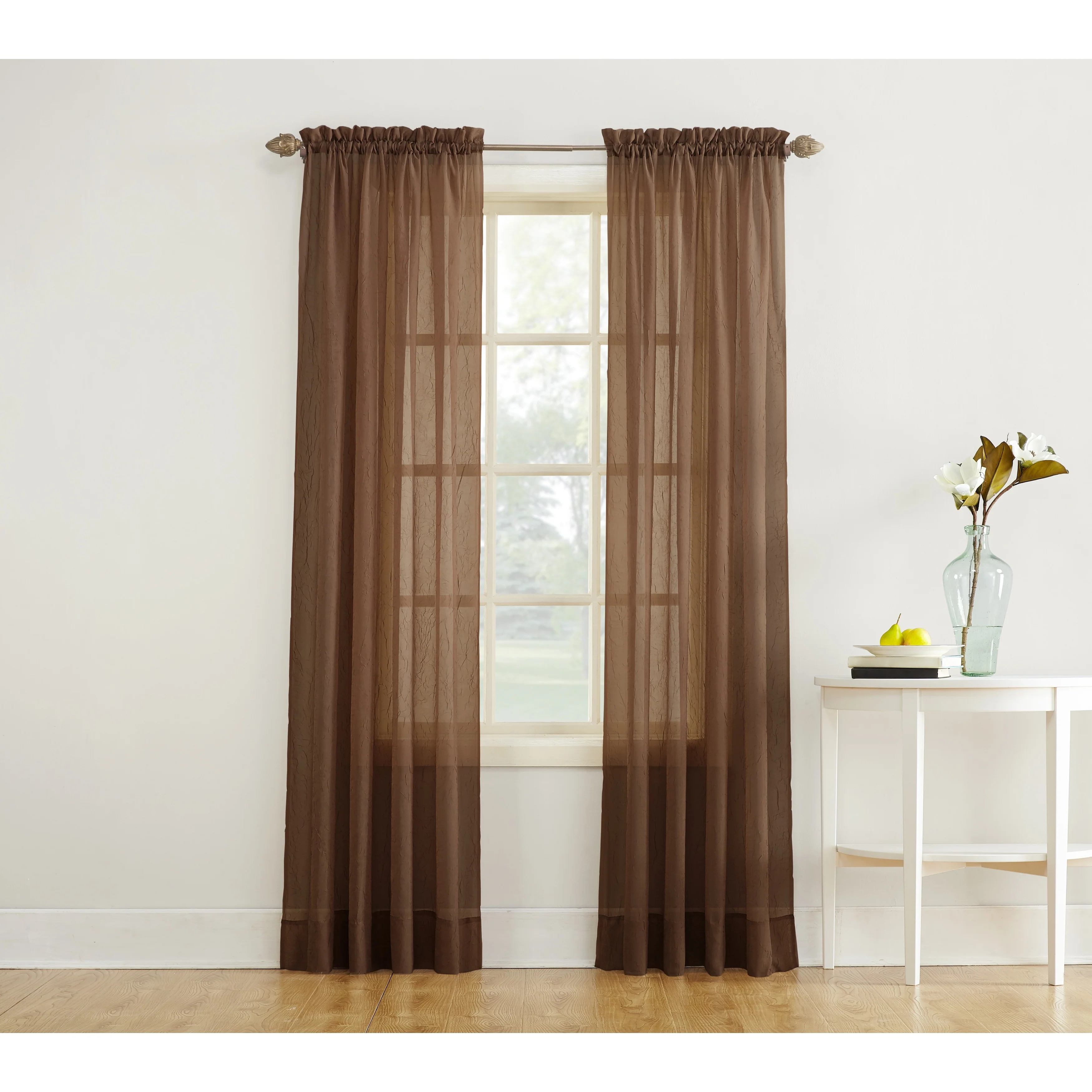 The delicately crushed crinkled texture of No. 918 Erica Curtain Panel adds a subtle touch of elegance to your windows. This lightweight textured sheer gently filters sunlight while providing privacy. Pair these curtains with other No. 918 curtains or valances on a double rod to complete a stylish layered look. Equipped with a built-in rod pocket for easy hanging on standard curtain rods up to ¾' in diameter.