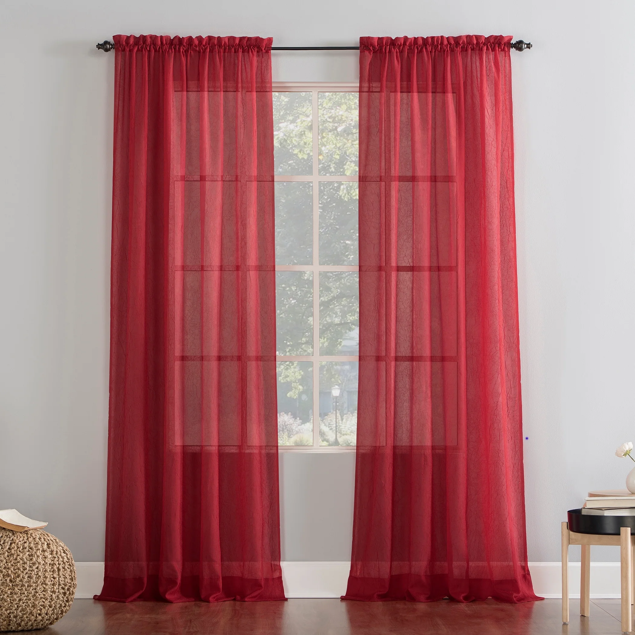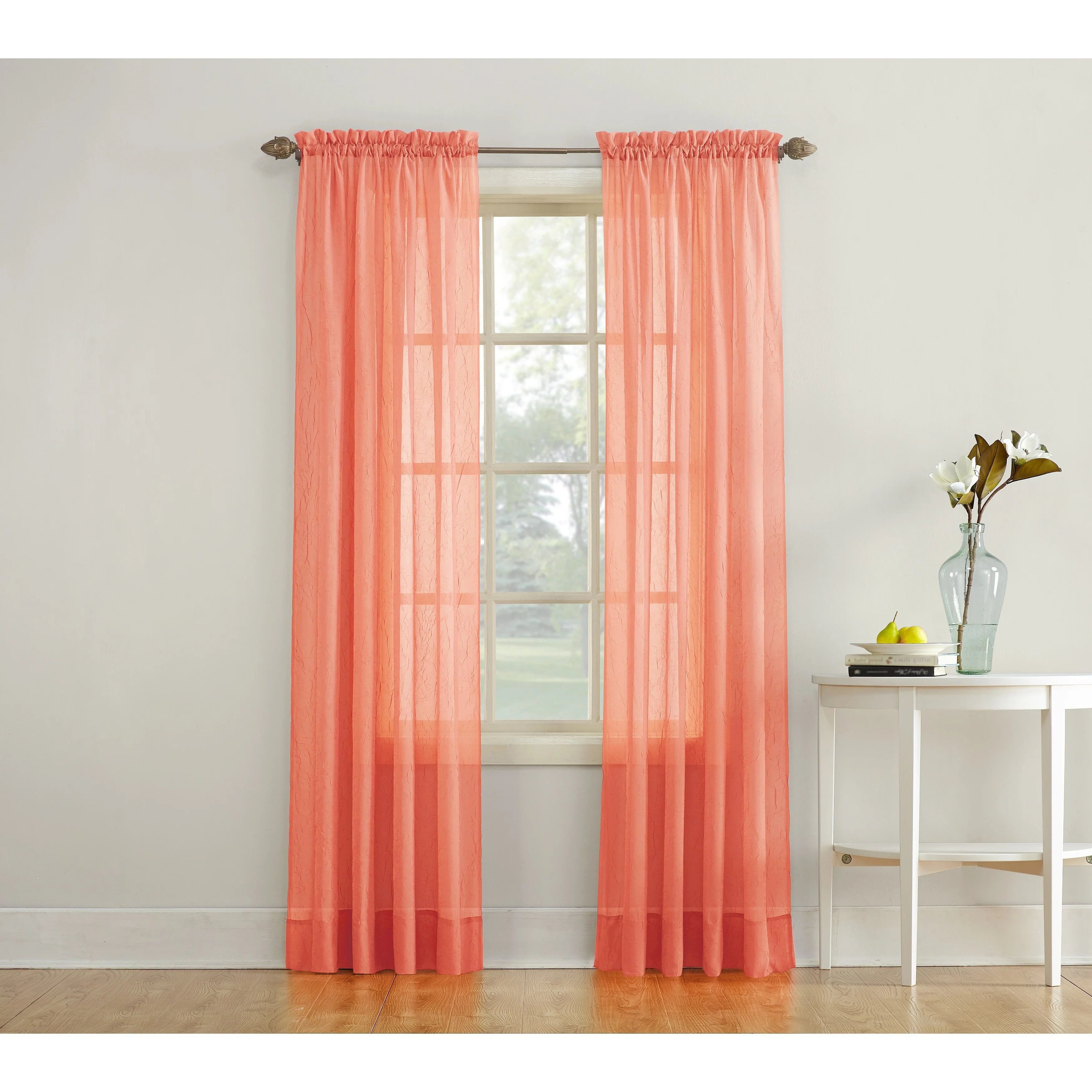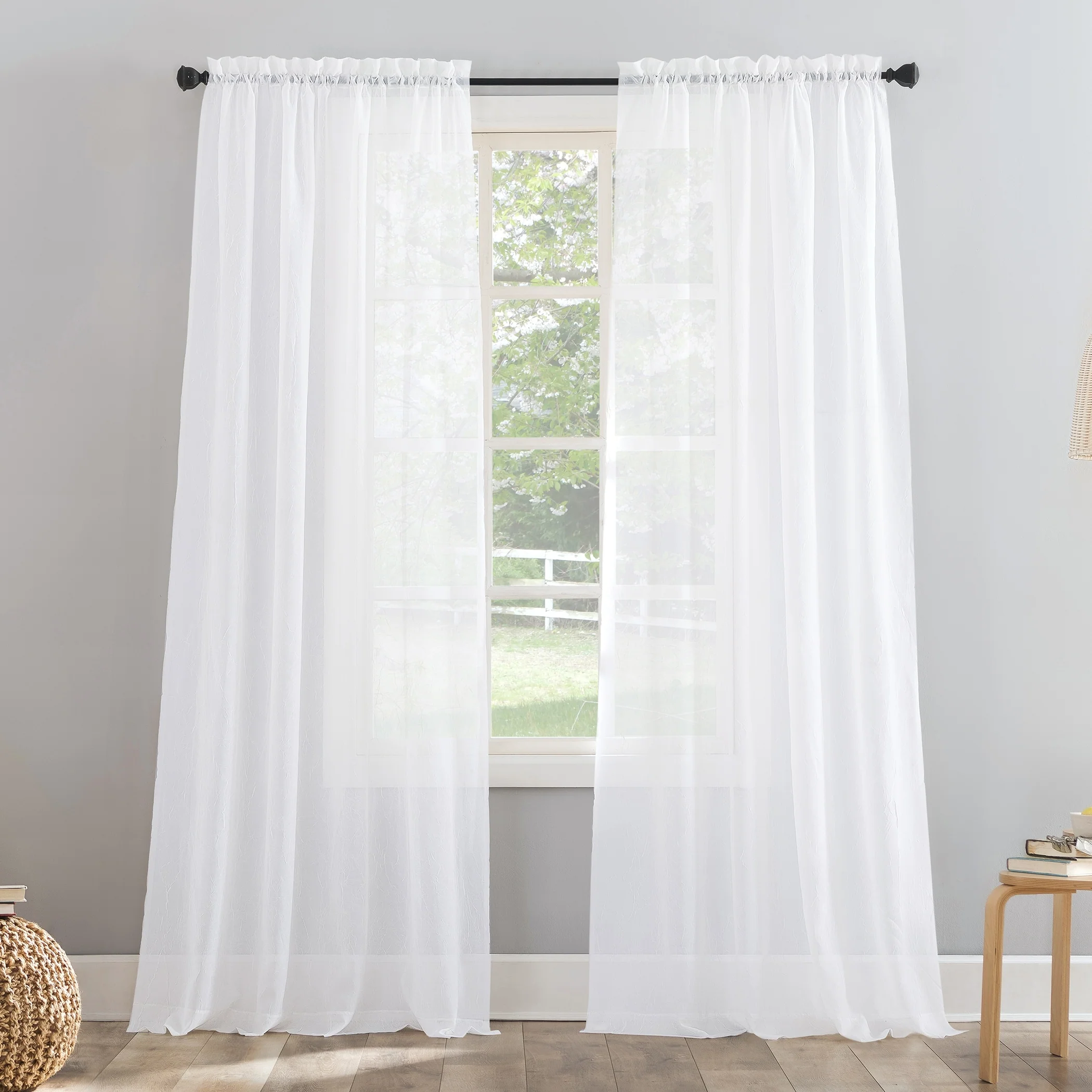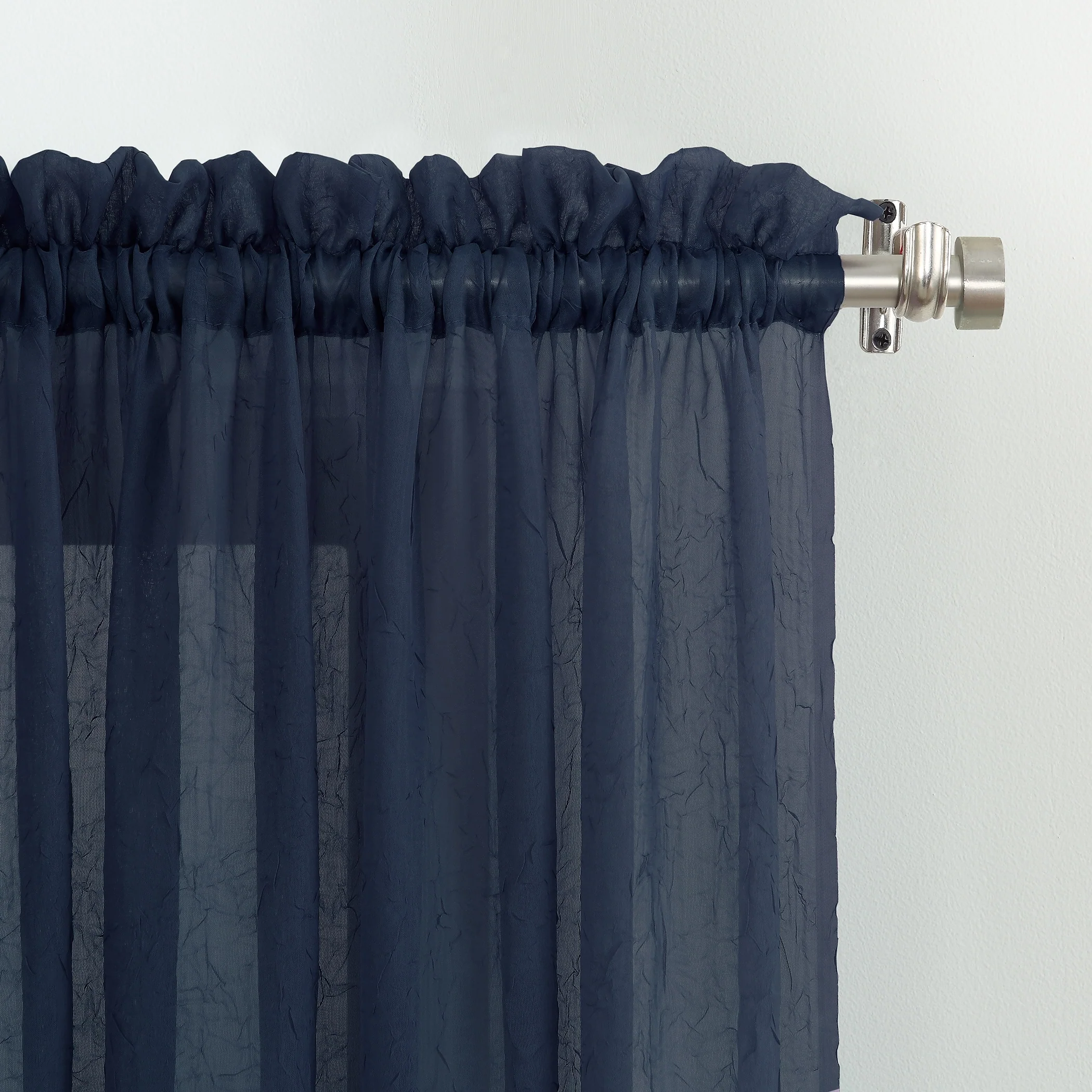 The delicately crushed crinkled texture of No. 918 Erica Curtain Panel adds a subtle touch of elegance to your windows. This lightweight textured sheer gently filters sunlight while providing privacy. Pair these curtains with other No. 918 curtains or valances on a double rod to complete a stylish layered look. Equipped with a built-in rod pocket for easy hanging on standard curtain rods up to ¾' in diameter.