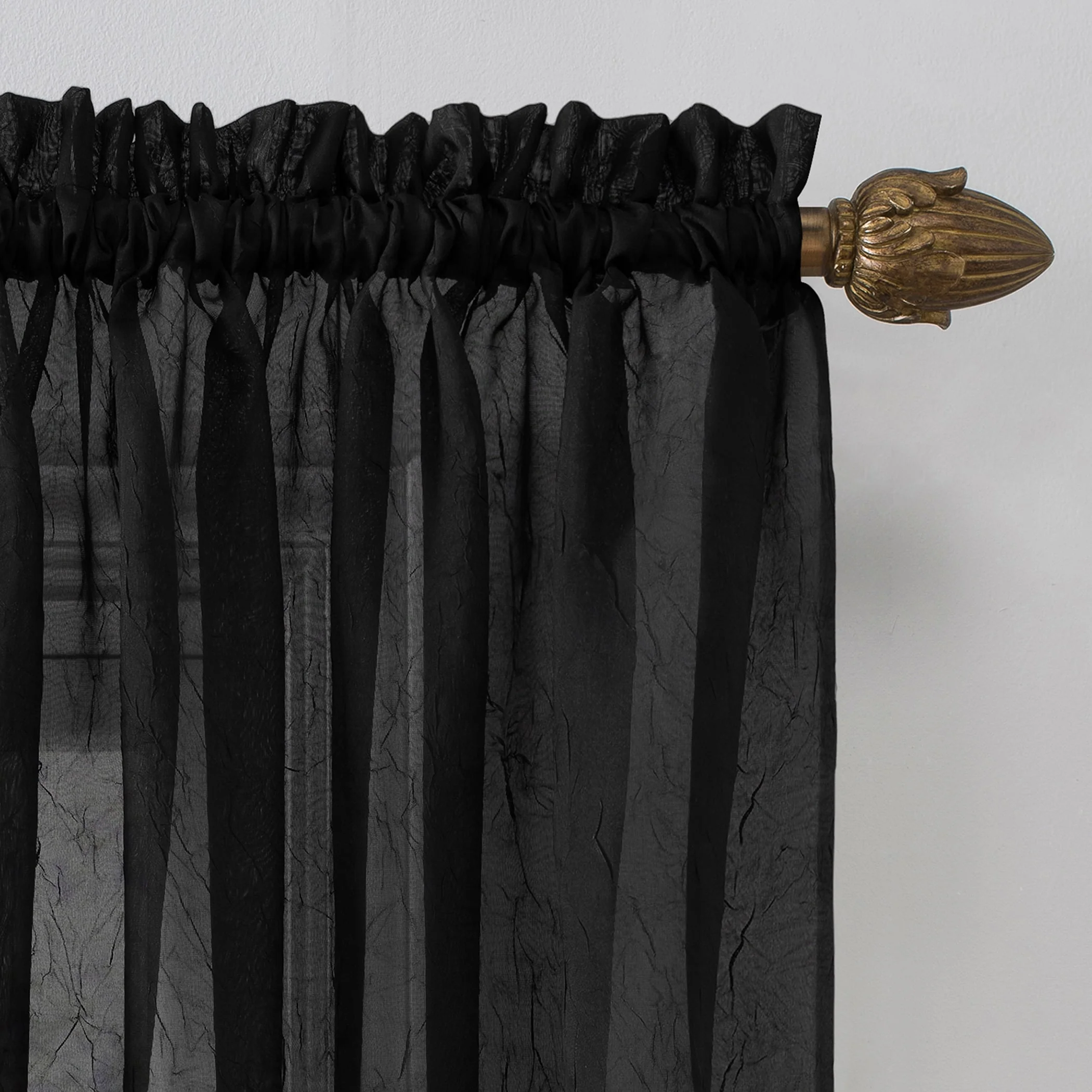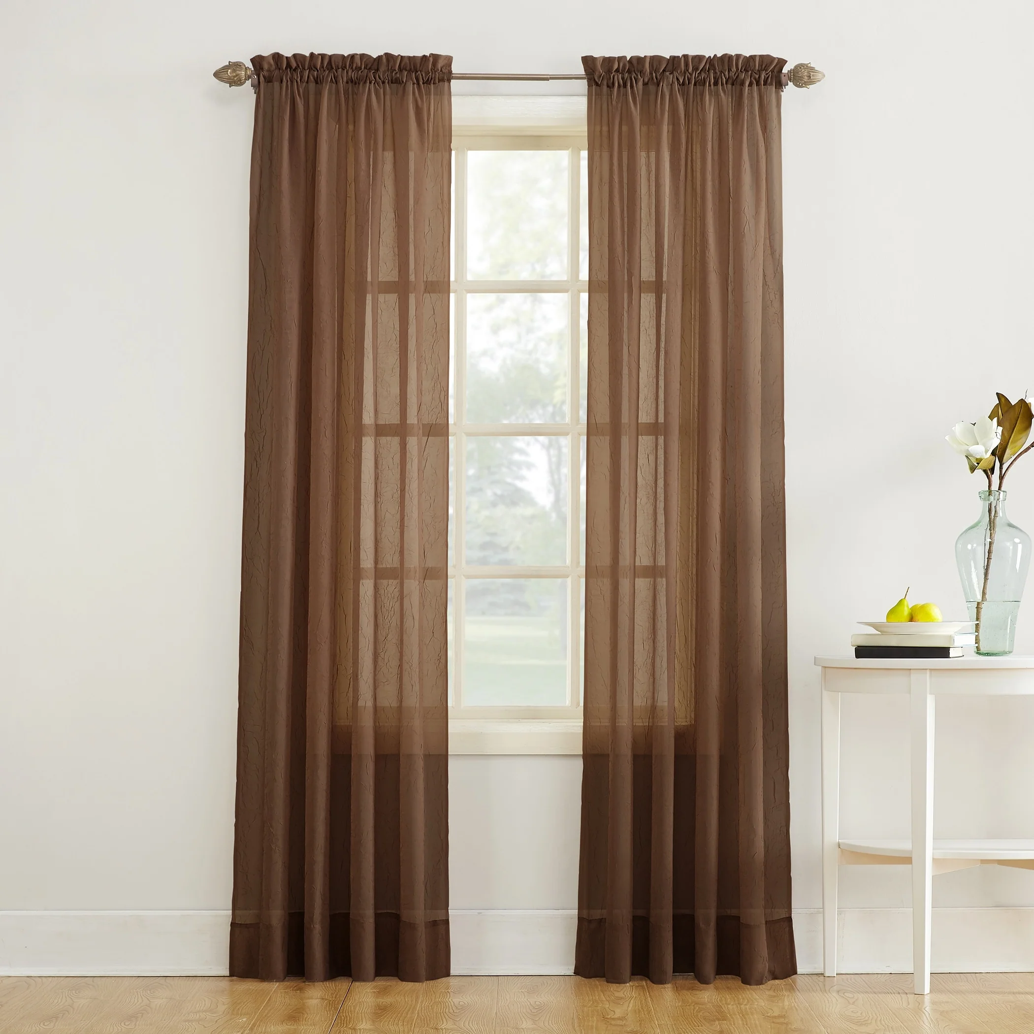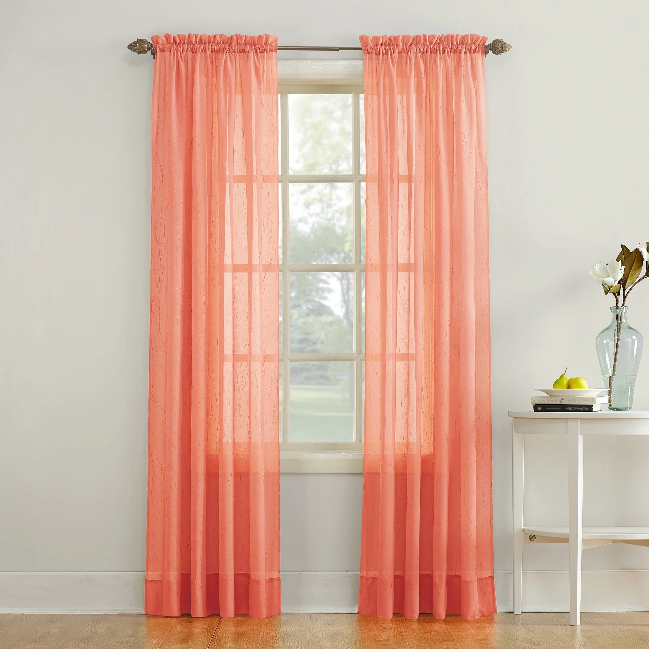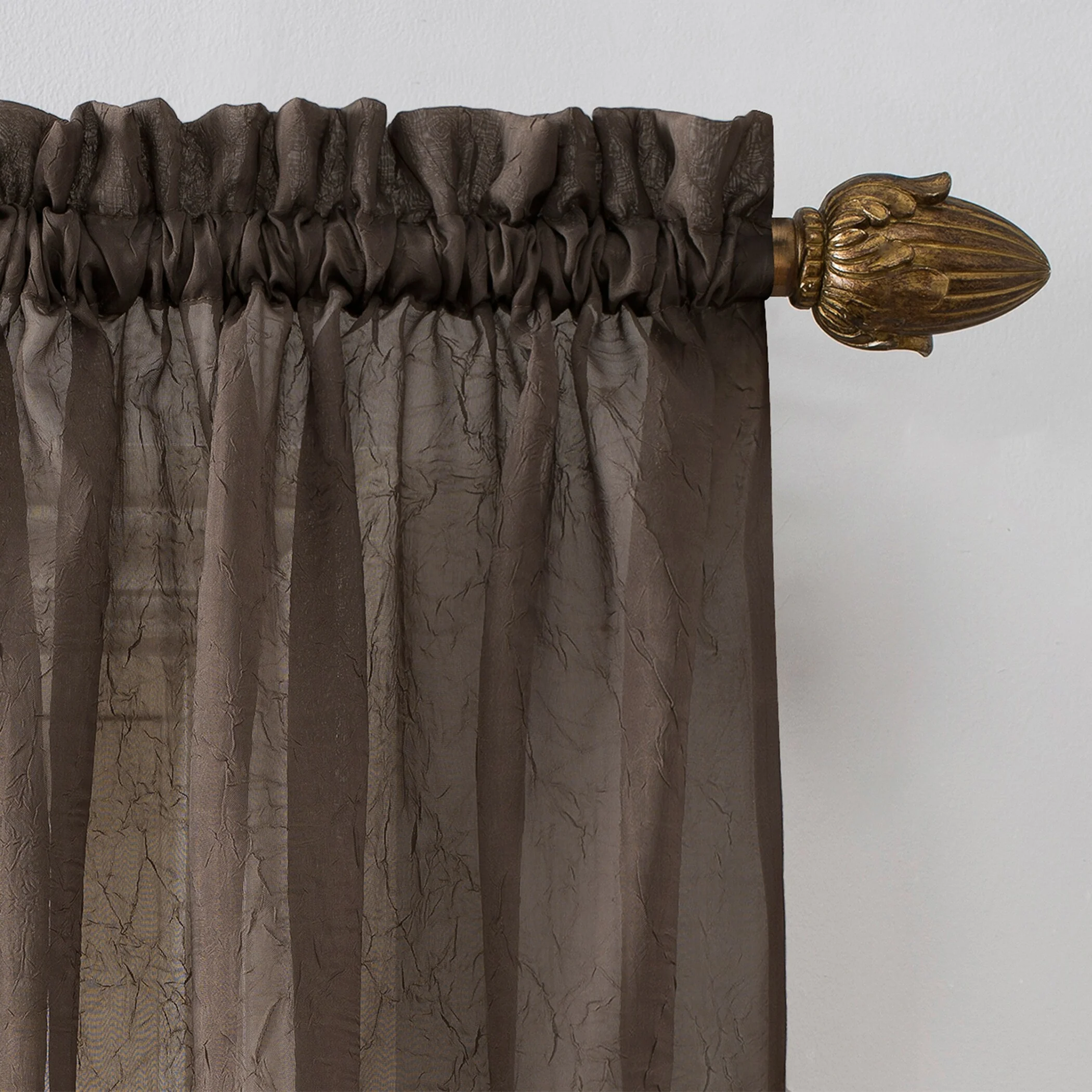 The delicately crushed crinkled texture of No. 918 Erica Curtain Panel adds a subtle touch of elegance to your windows. This lightweight textured sheer gently filters sunlight while providing privacy. Pair these curtains with other No. 918 curtains or valances on a double rod to complete a stylish layered look. Equipped with a built-in rod pocket for easy hanging on standard curtain rods up to ¾' in diameter.