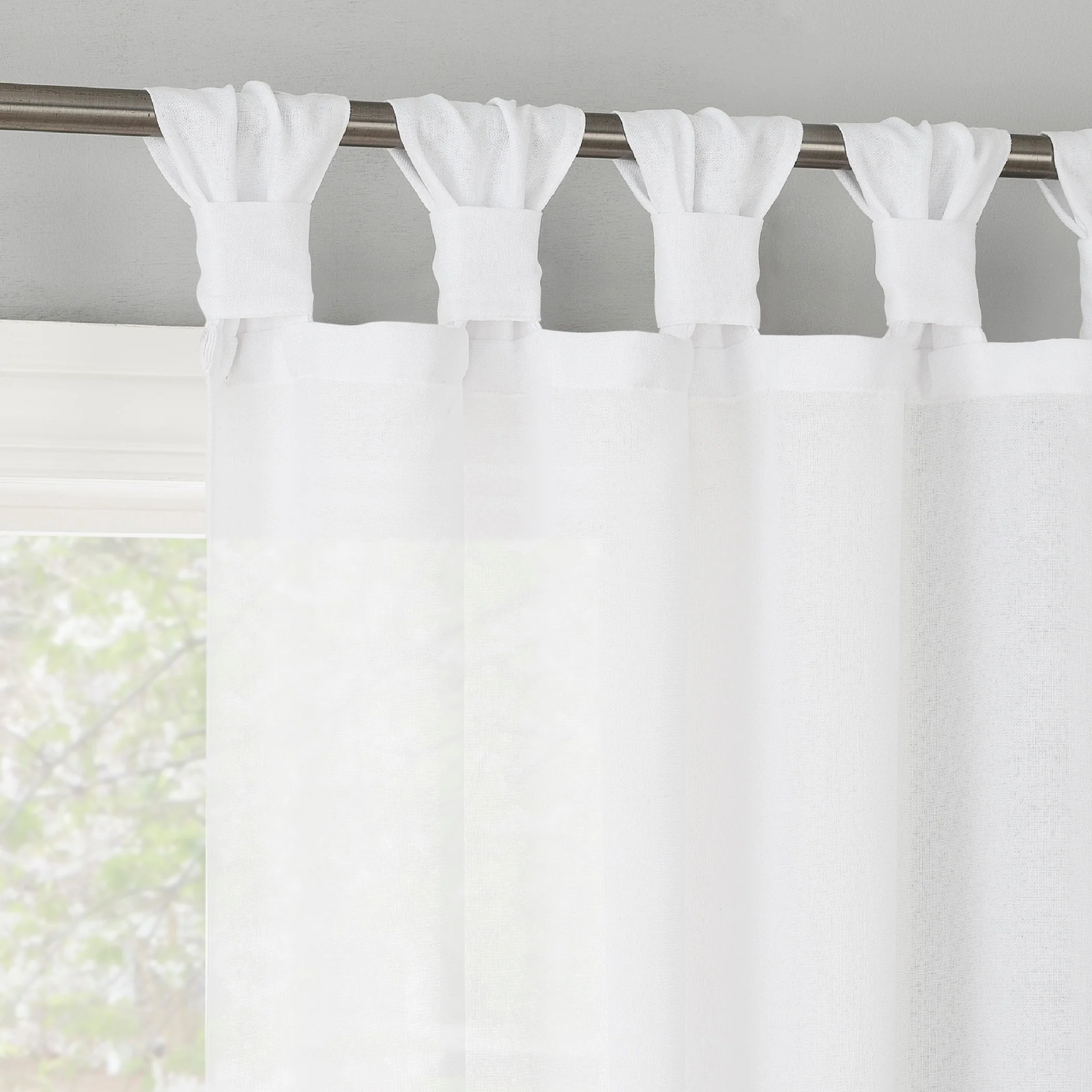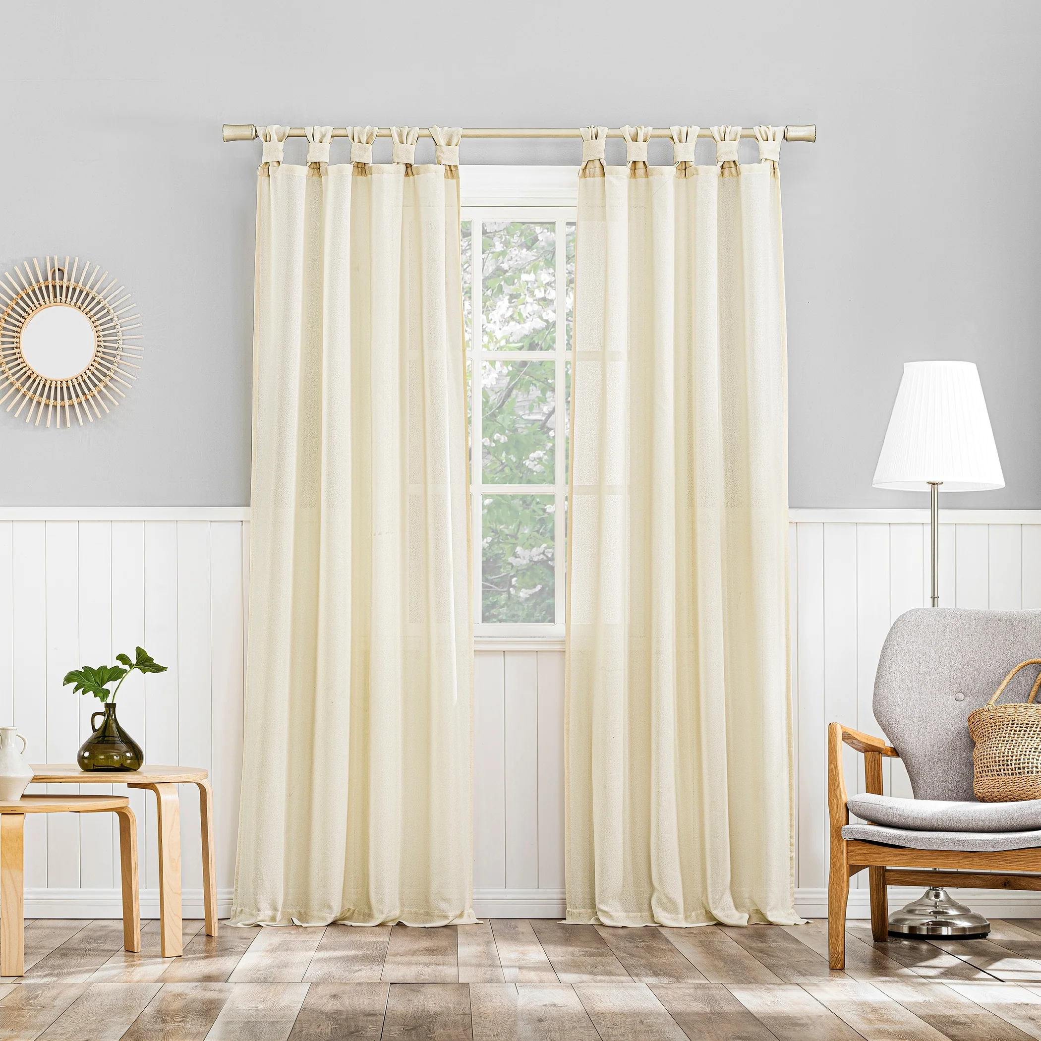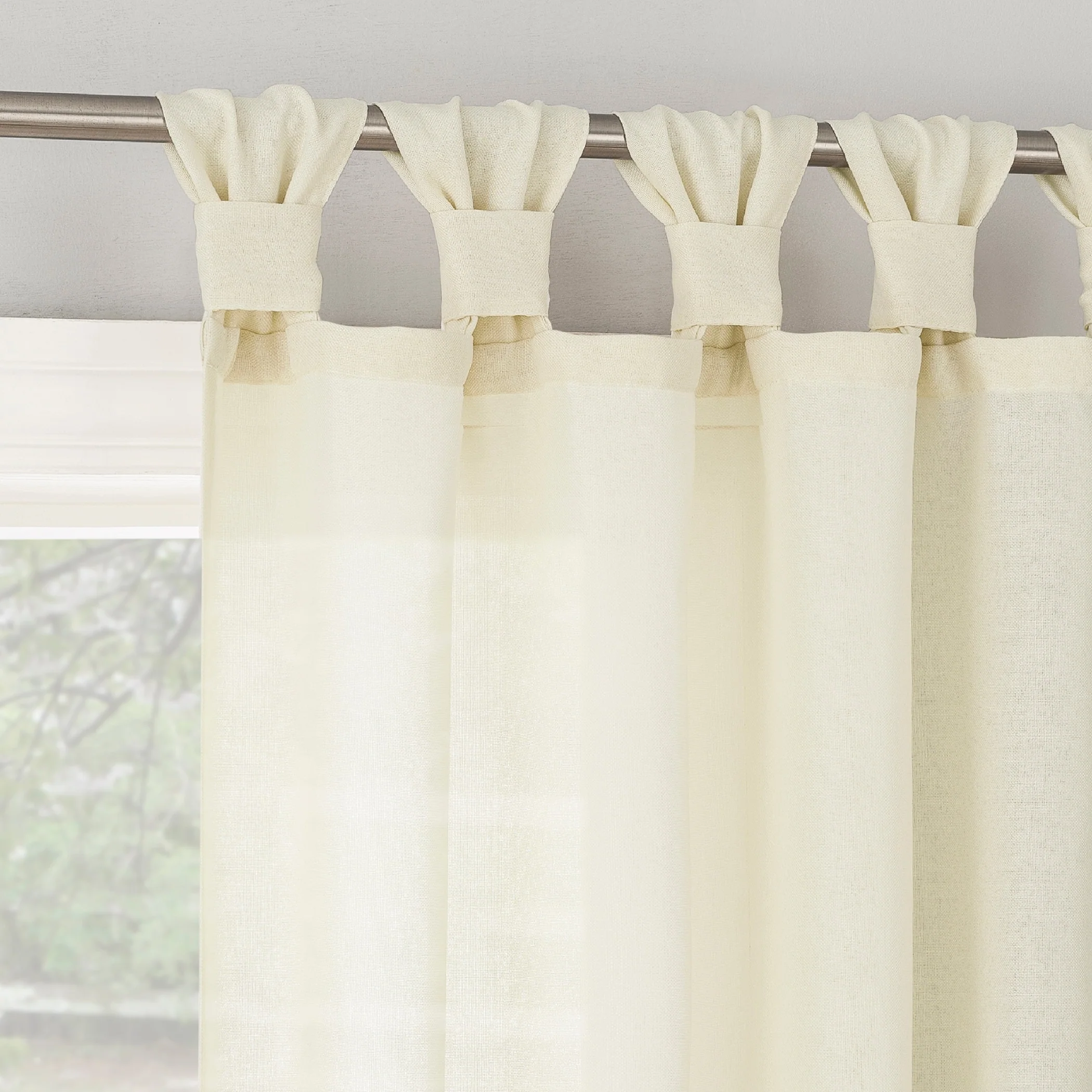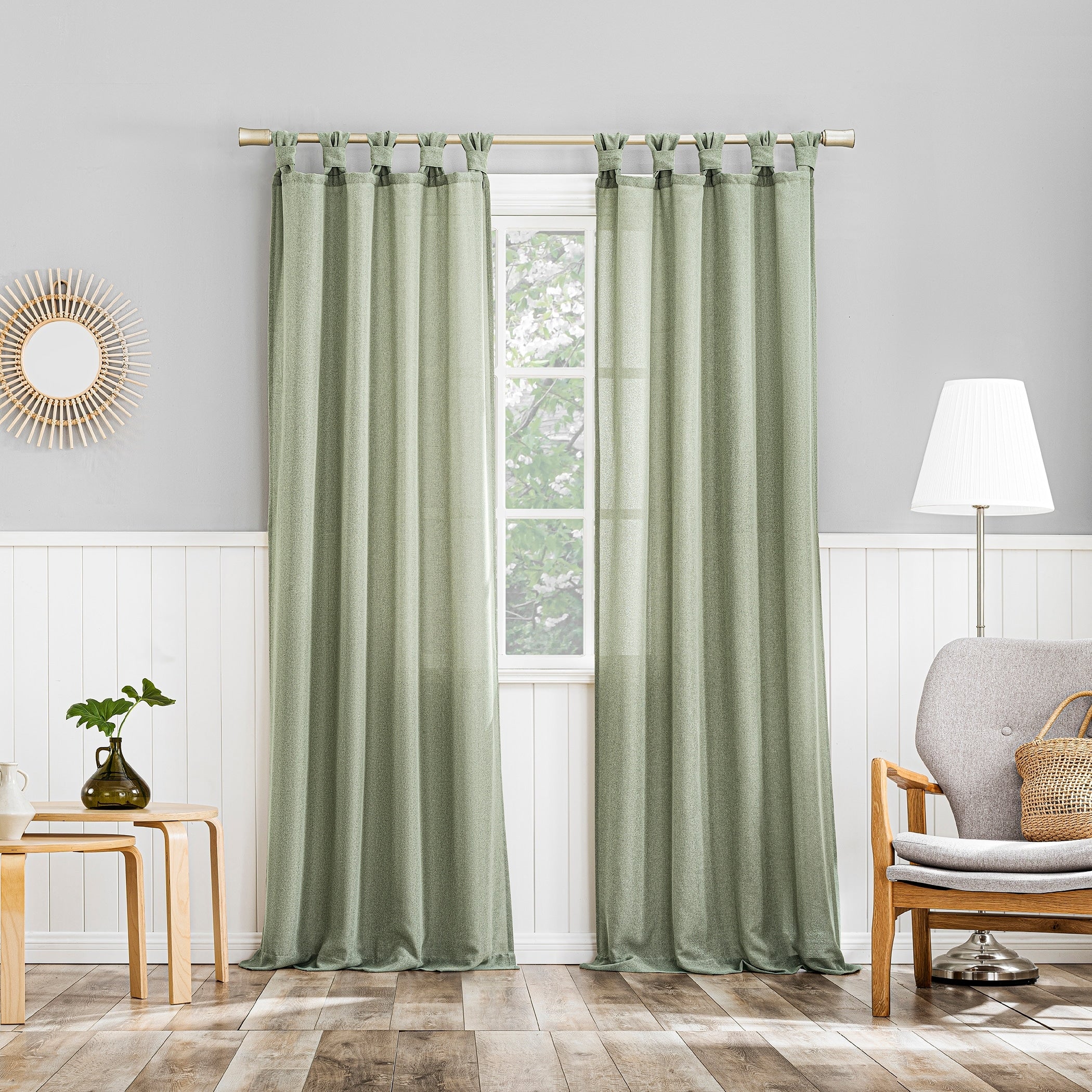 This handsome curtain is classic good looks with a twist. Hathaway Twist Tabs from No. 918 add personality with a unique twist tab top design reminiscent of the beloved bow tie. The textured semi-sheer fabric gently filters light while enhancing privacy. Tab top design allows for simple slide-through installation on curtain rods up to 1 ½' in diameter.