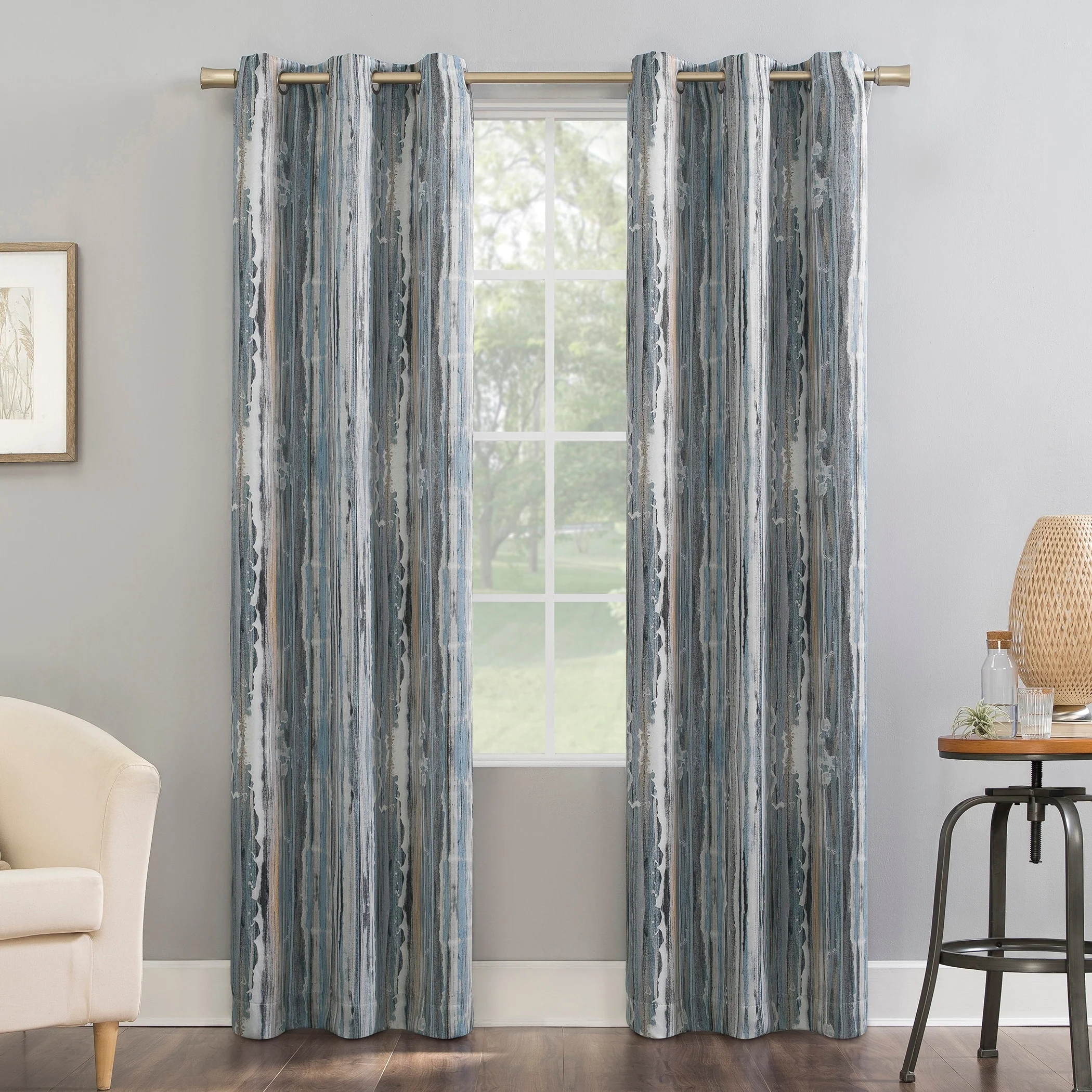 Transform your living space with Sun Zero Allegory Abstract Blackout Grommet Curtain Panel that features an energy-efficient and noise-reducing design. The curtain panel is adorned with an abstract paint stroke print that will become a perfect conversation starter. Enjoy a peaceful evening with this light-blocking and privacy-enhancing window treatment that regulates temperature to keep your house comfortable.