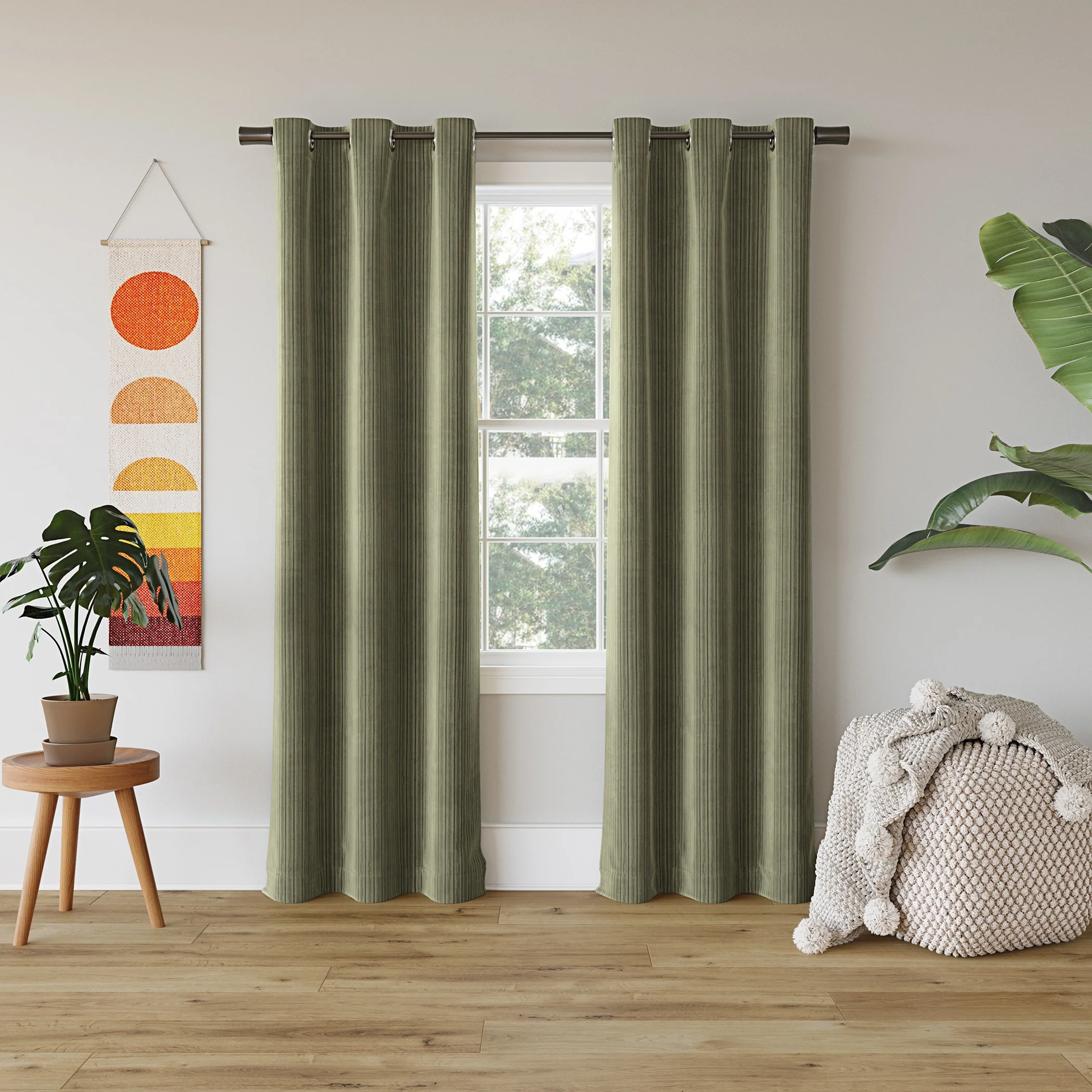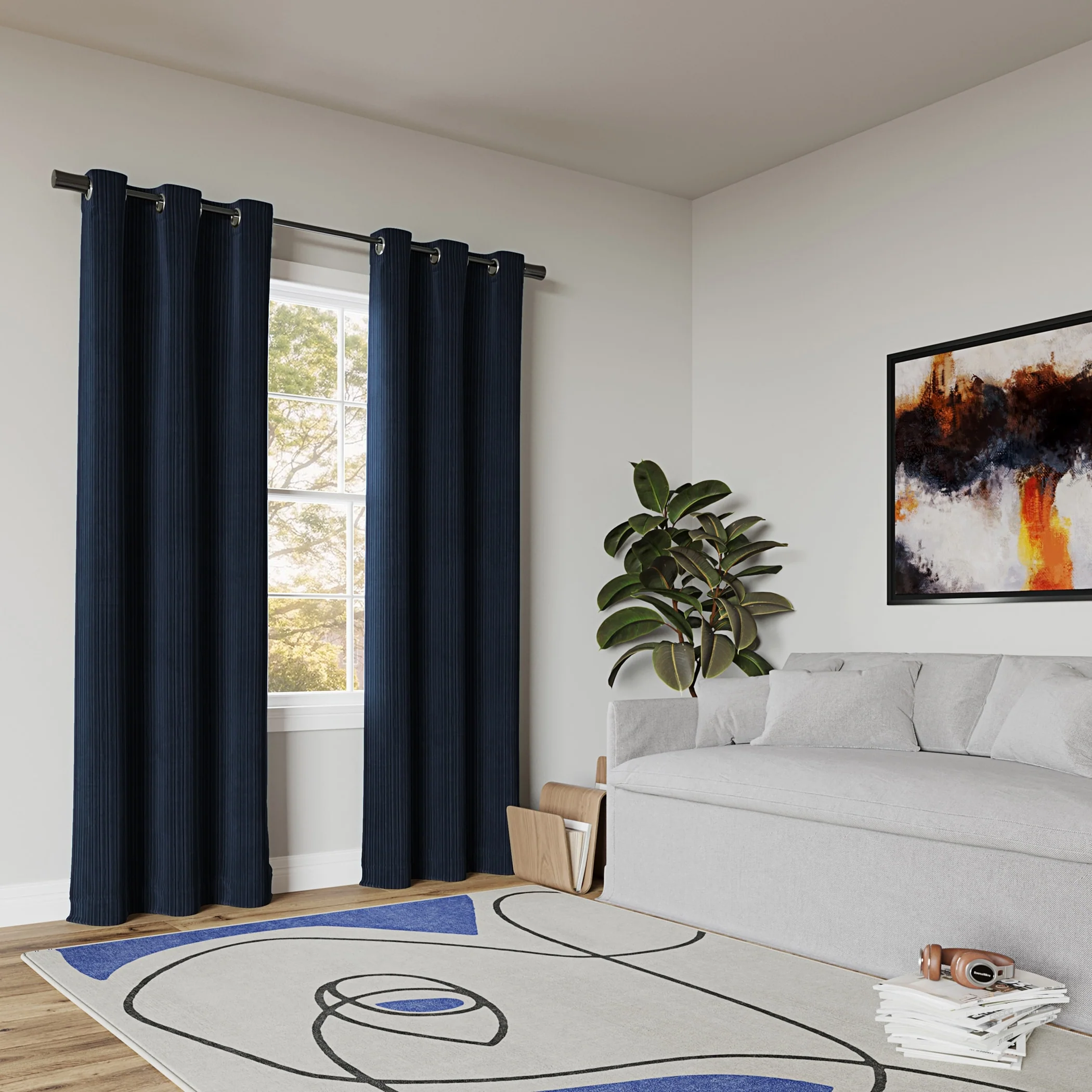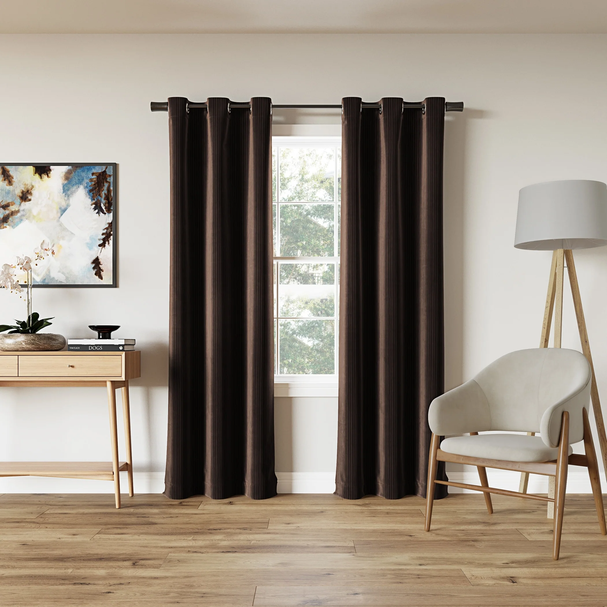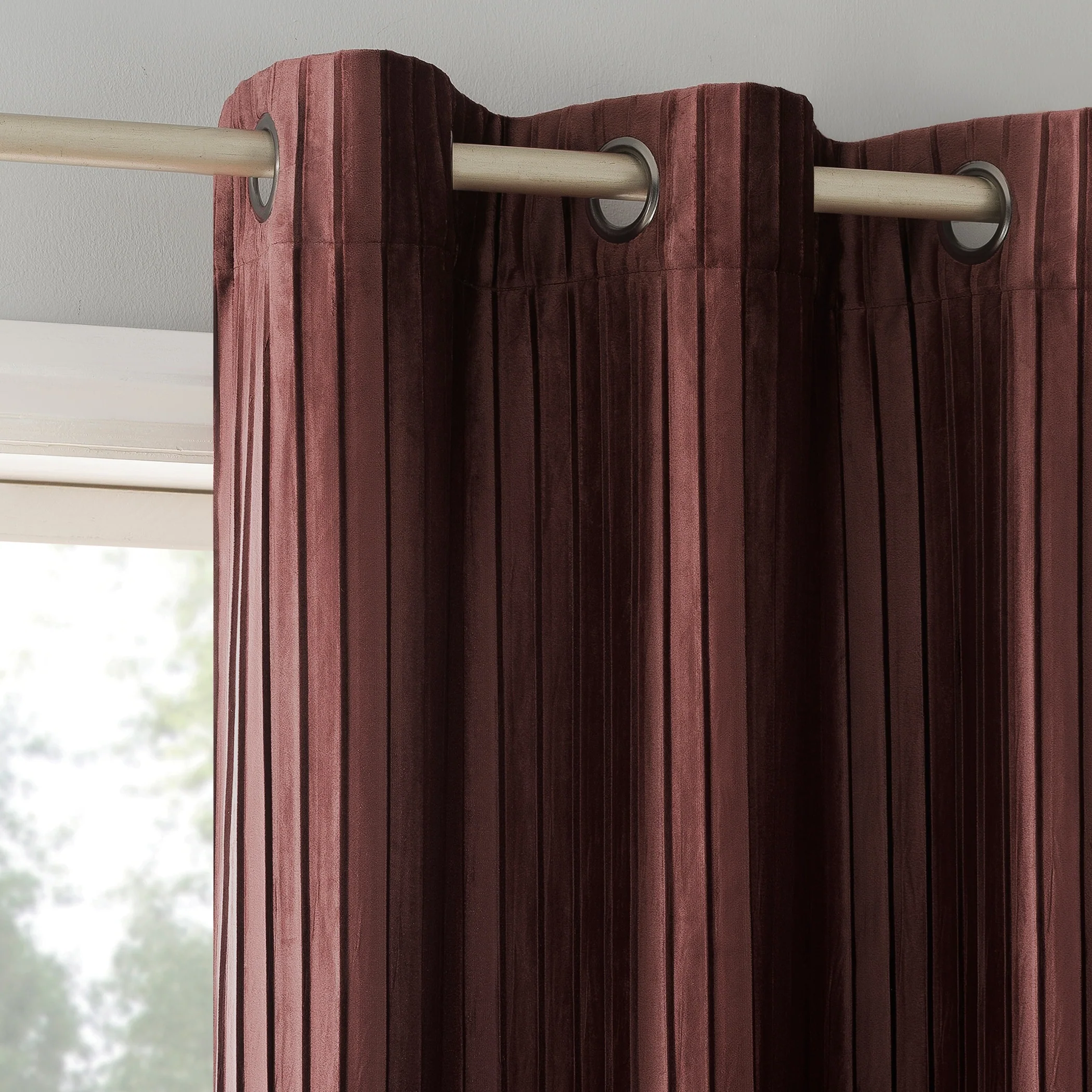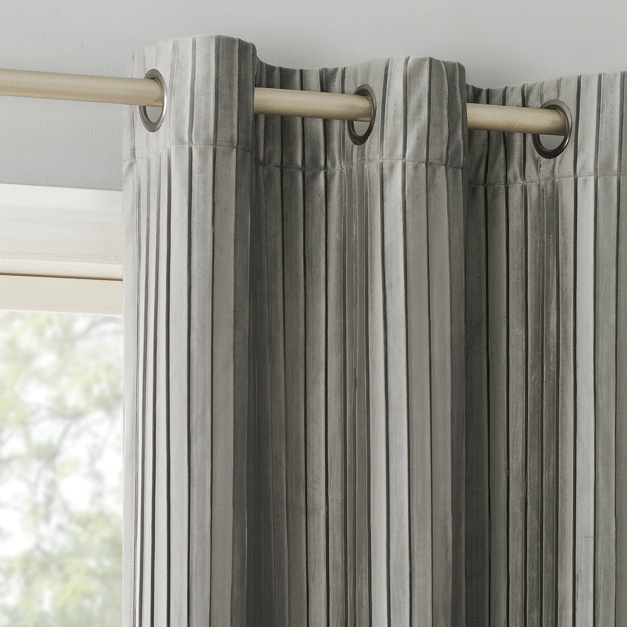 Featuring a decadent pleated velvet, Sun Zero Cascade Curtain Panels infuse luxe appeal into any living space. Equipped with built-in metal grommets for easy hanging on standard curtain rods up to 1.5' in diameter. Sun Zero Blackout technology blocks out most outside light, offers outside noise reduction by up to 30%, and decreases energy lost through your windows by up to 40%. Comfort is optimized with thermal properties that help keep summer heat and winter chill out of your home. Hang in your living room for enhanced privacy, or in your bedroom for a sounder, more uninterrupted sleep.