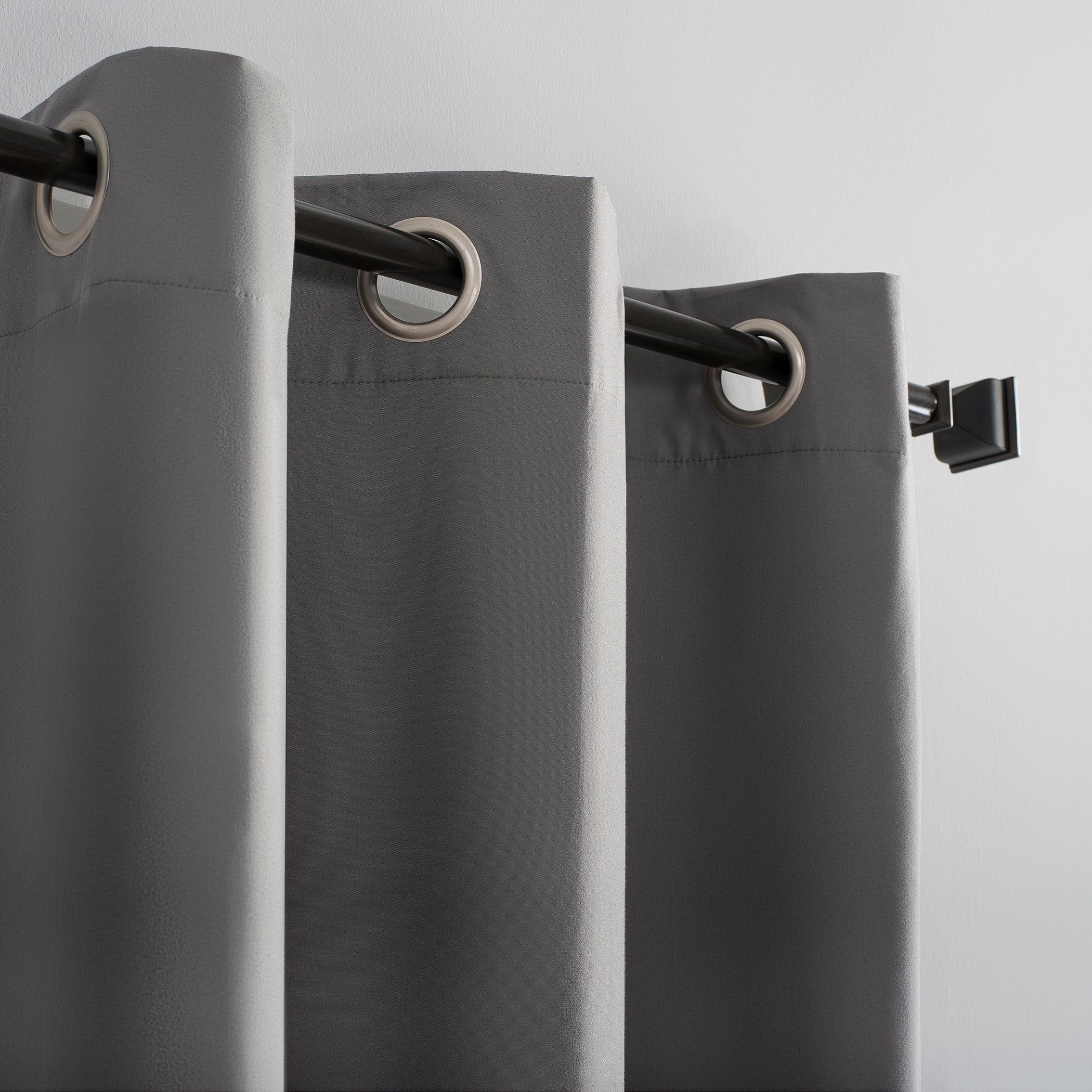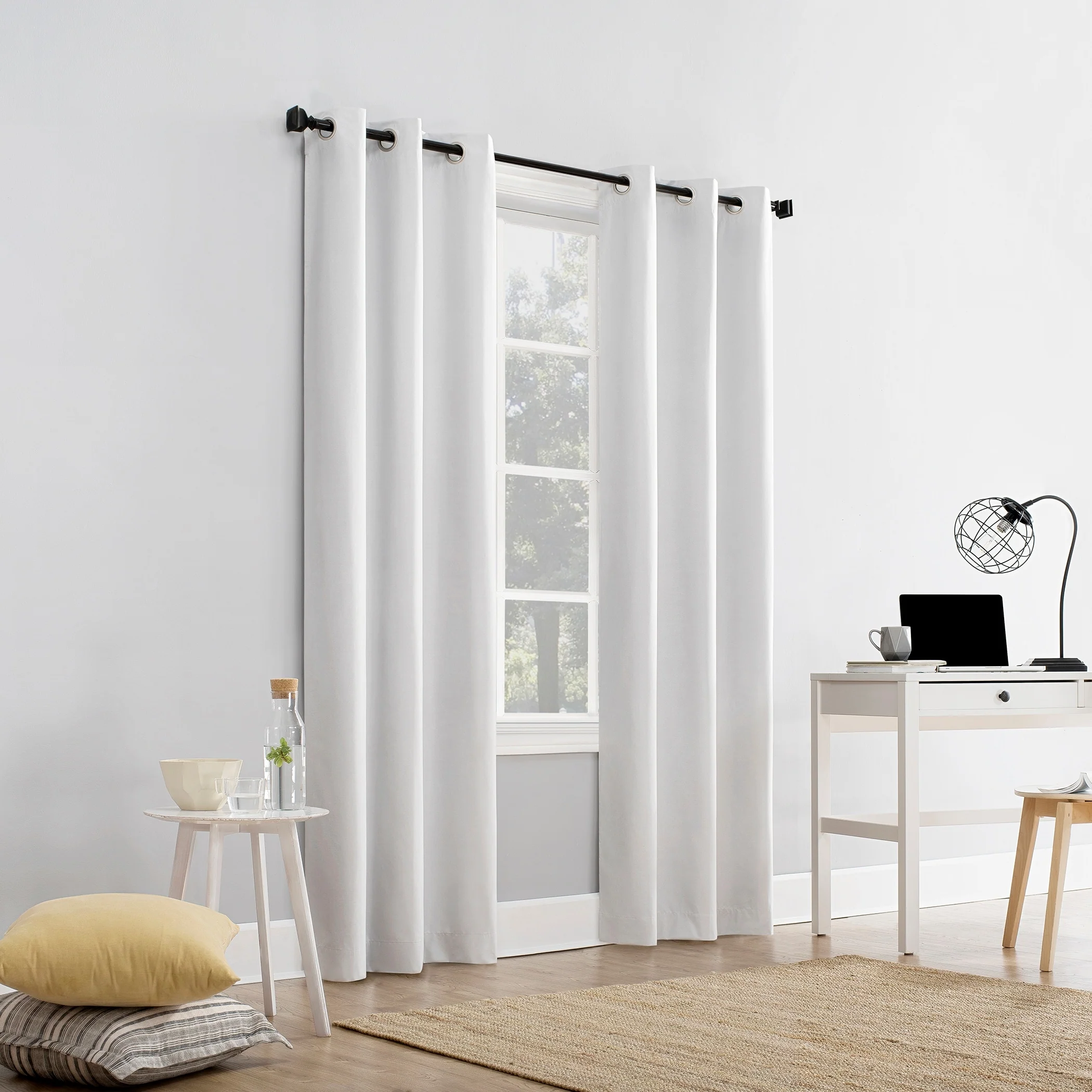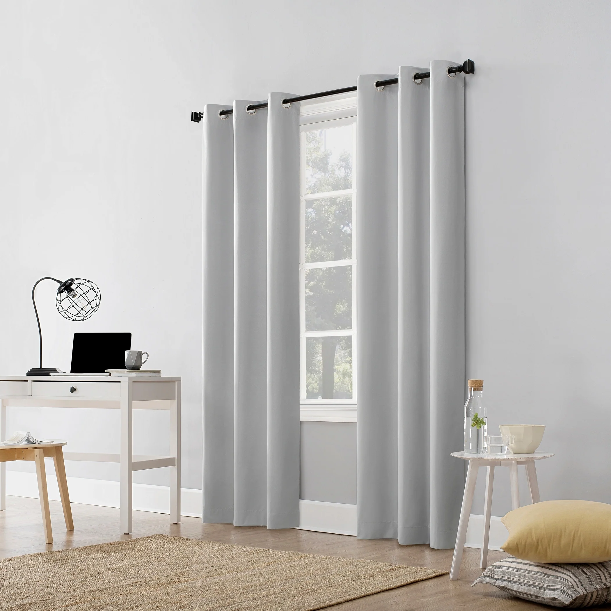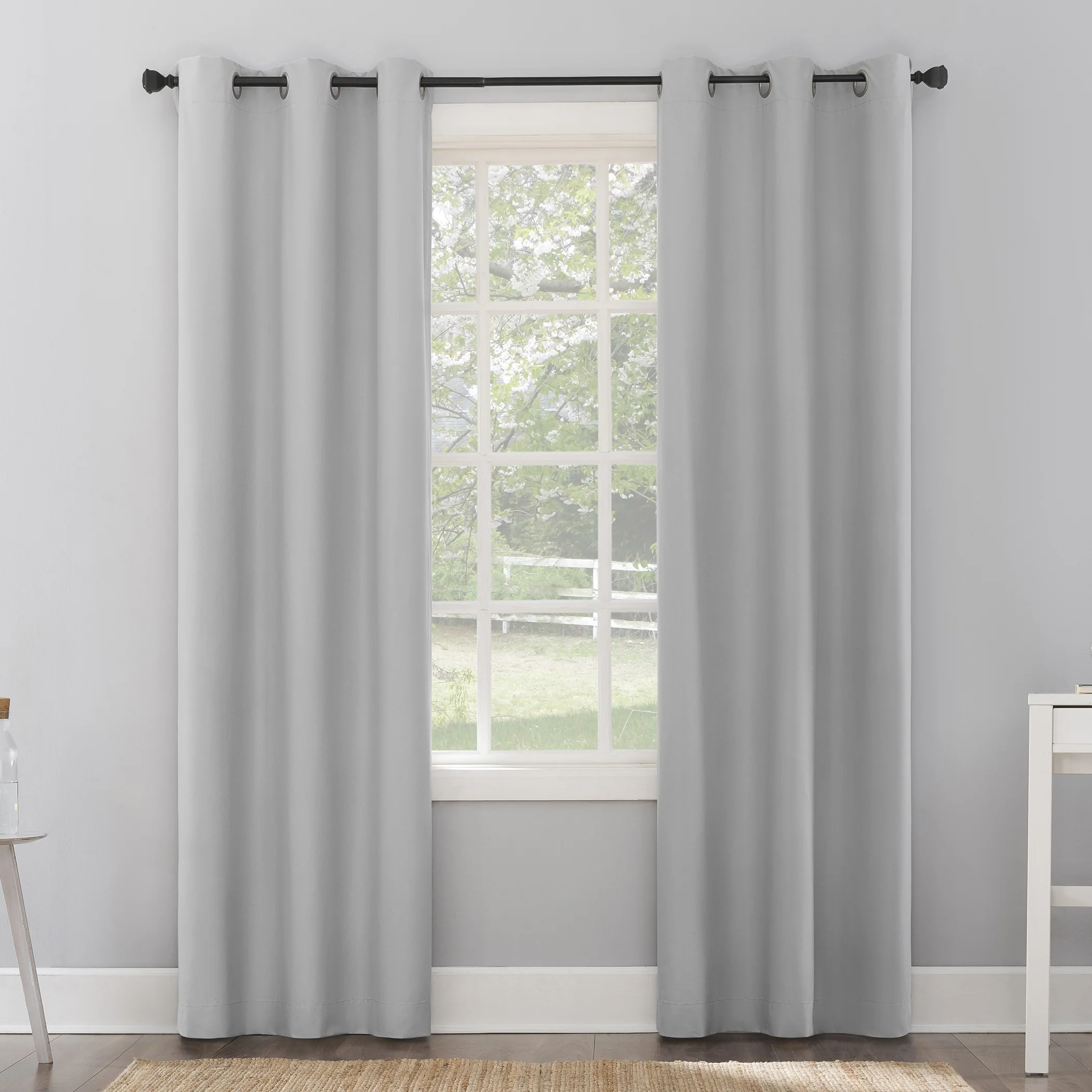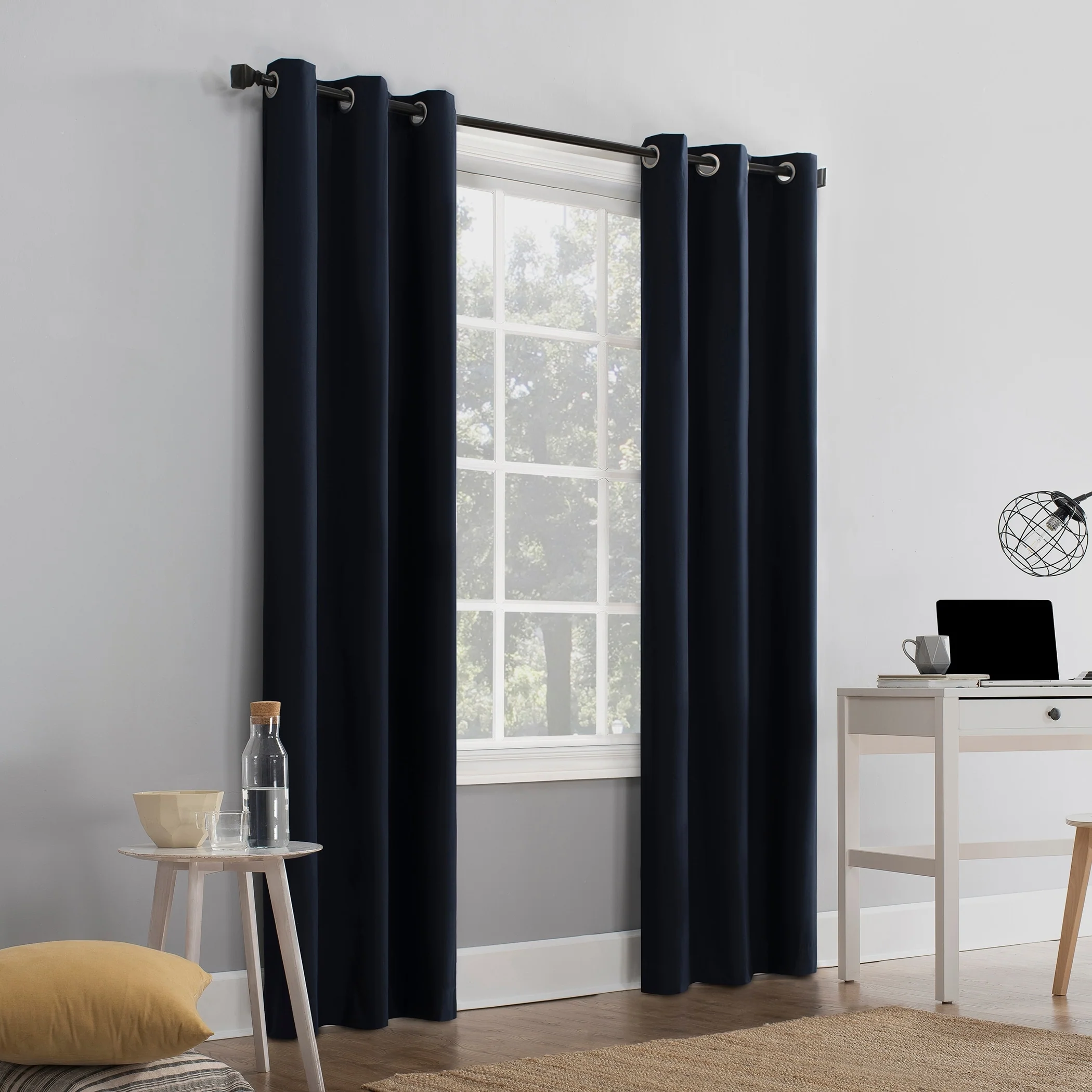 Experience the ultimate in light blocking technology with Sun Zero's Cyrus Thermal Total Blackout Grommet Curtain Panel. This single panel is designed to keep out even the harshest of light while adding energy efficiency to any room of your home. With Sun Zero's Total Blackout technology, this panel is laboratory tested to block out 100% of outside light, reduce noise by up to 35%, and decrease energy lost through your windows by up to 35%. Additionally, thermal insulation helps keep summer heat and winter chill out of your home, optimizing comfort. The built-in metal grommets fit curtain rods up to 1.5' in diameter, making for easy installation. Perfect for entertainment rooms, bedrooms, or any room in need of light control and privacy.