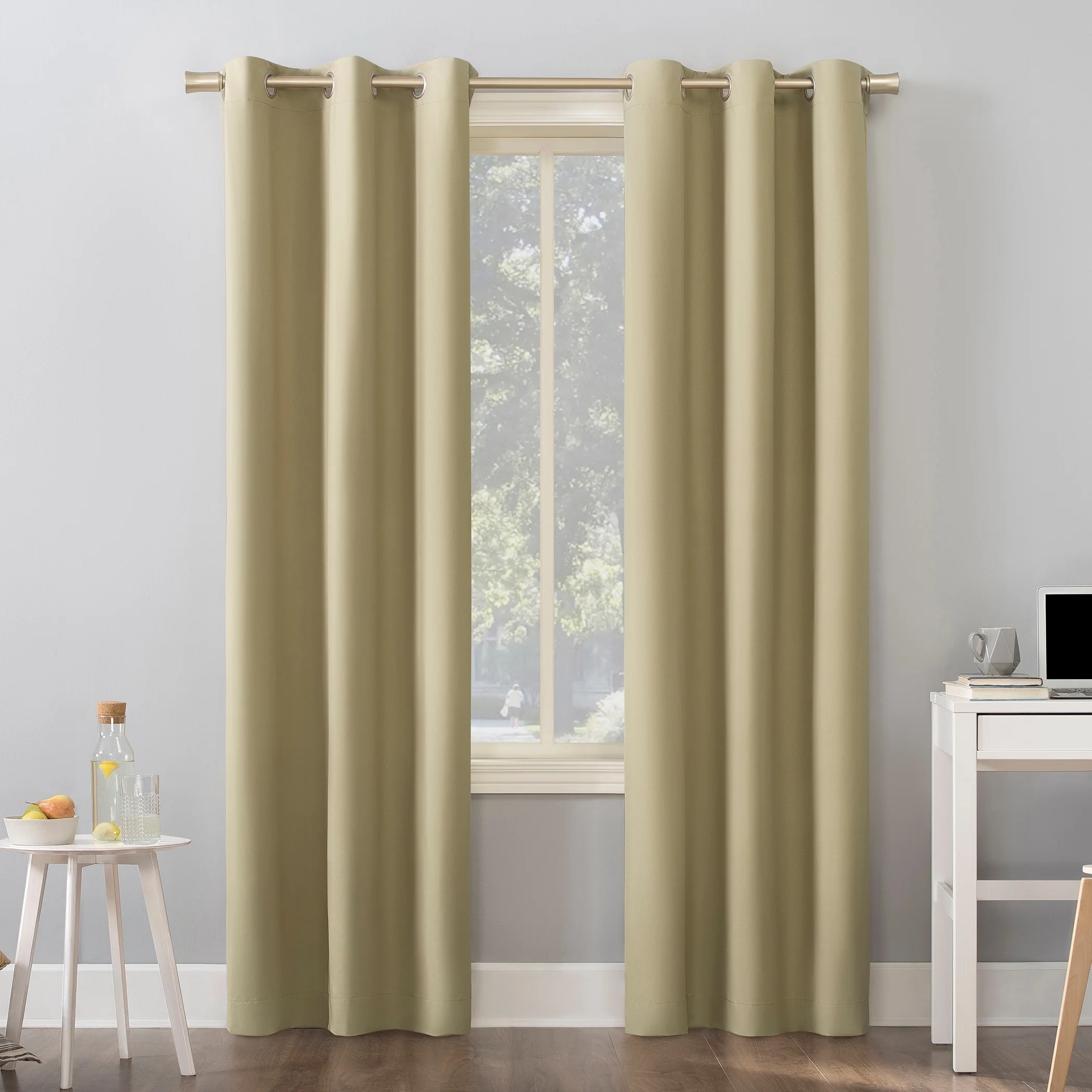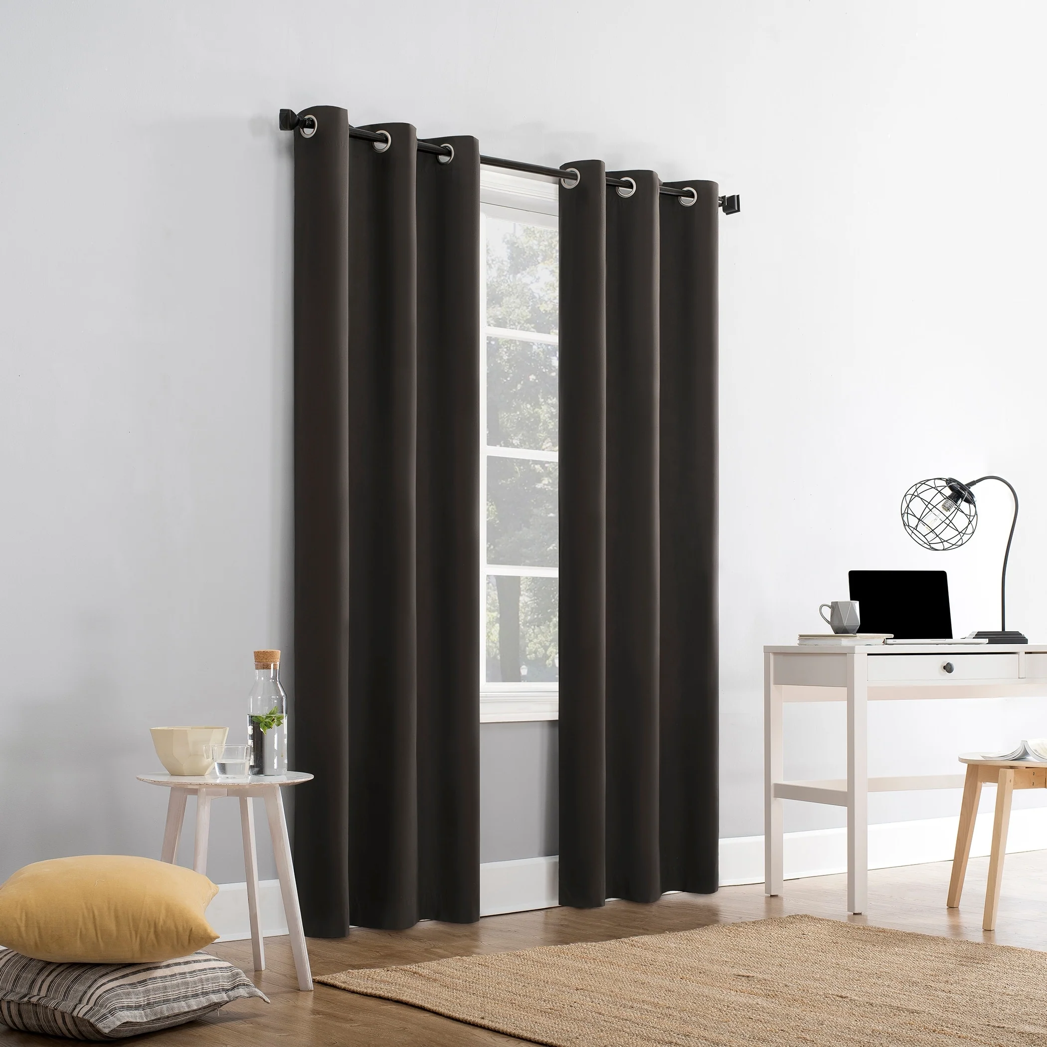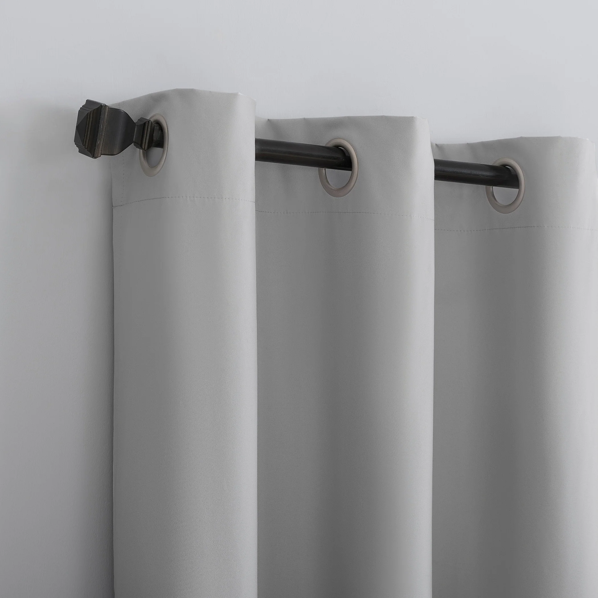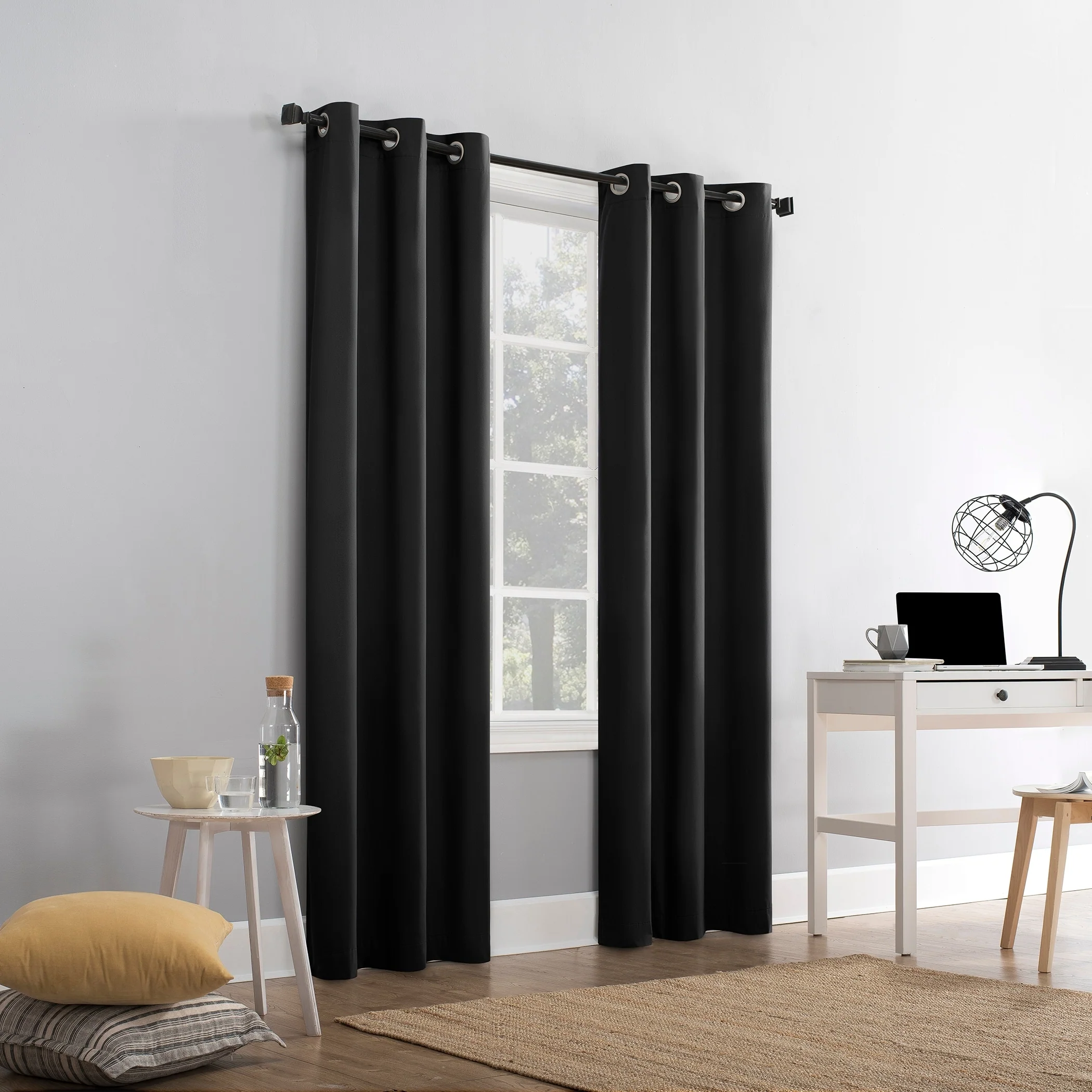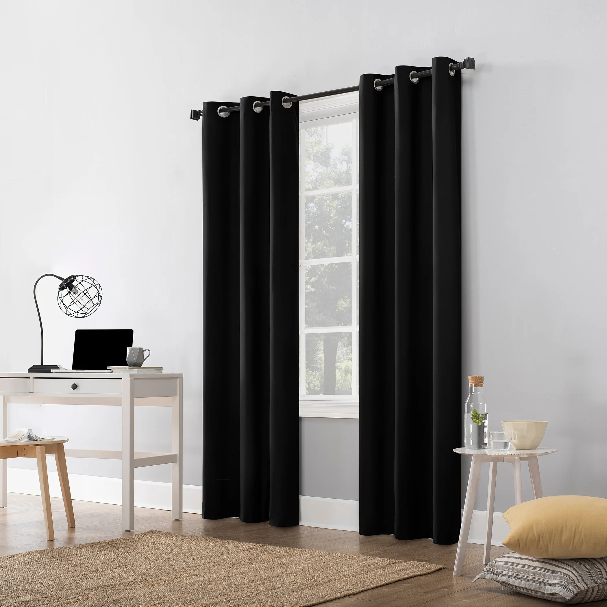 Experience the ultimate in light blocking technology with Sun Zero's Cyrus Thermal Total Blackout Grommet Curtain Panel. This single panel is designed to keep out even the harshest of light while adding energy efficiency to any room of your home. With Sun Zero's Total Blackout technology, this panel is laboratory tested to block out 100% of outside light, reduce noise by up to 35%, and decrease energy lost through your windows by up to 35%. Additionally, thermal insulation helps keep summer heat and winter chill out of your home, optimizing comfort. The built-in metal grommets fit curtain rods up to 1.5' in diameter, making for easy installation. Perfect for entertainment rooms, bedrooms, or any room in need of light control and privacy.