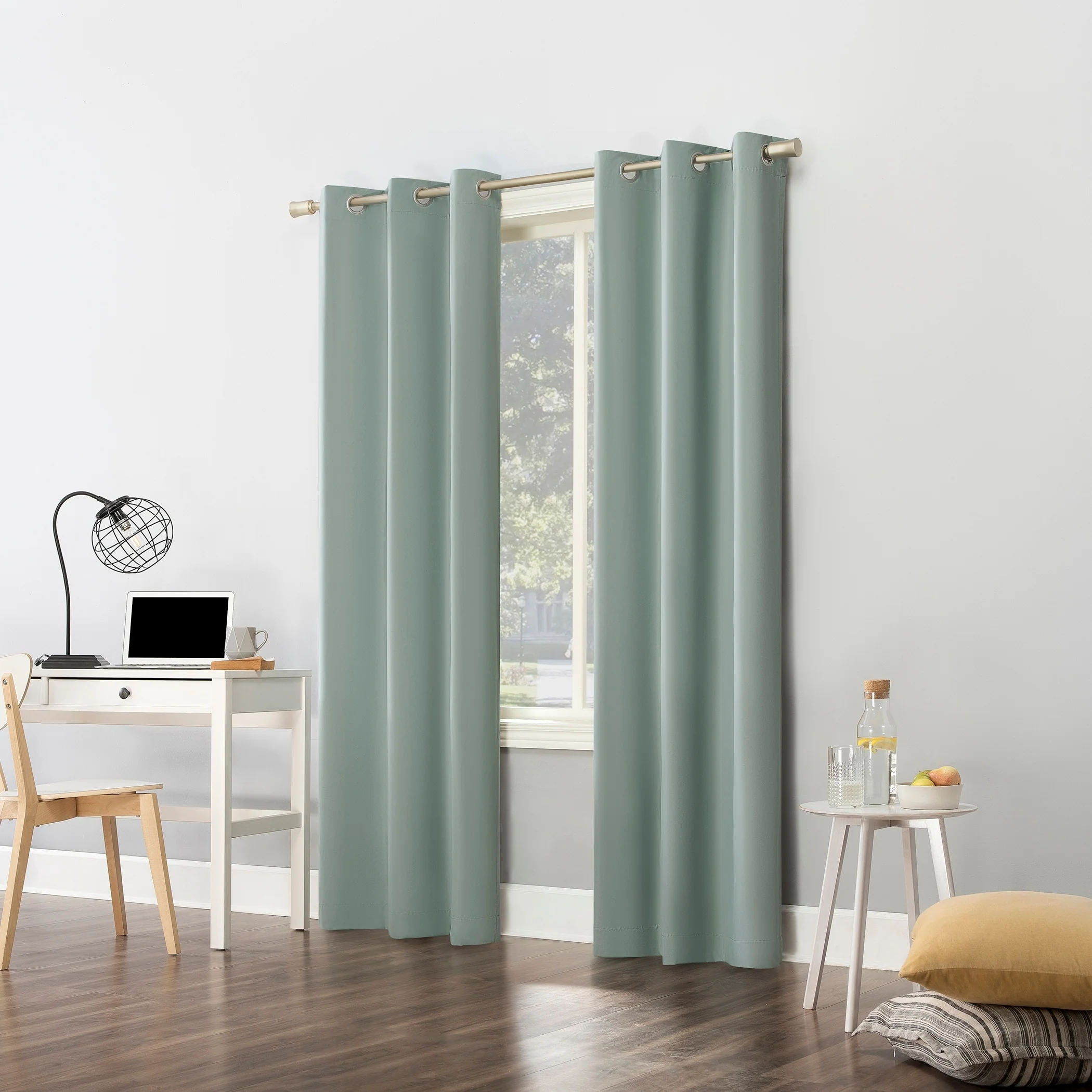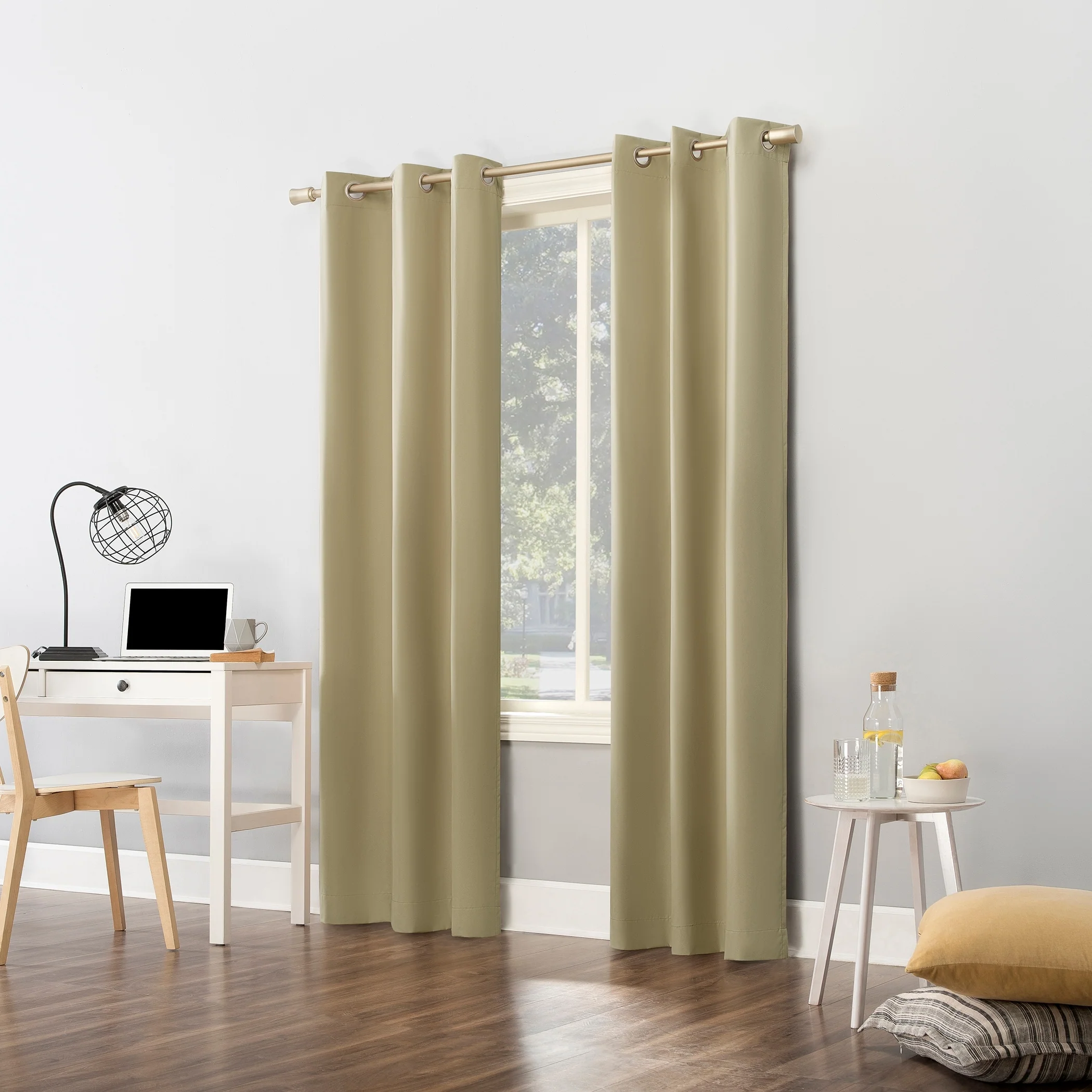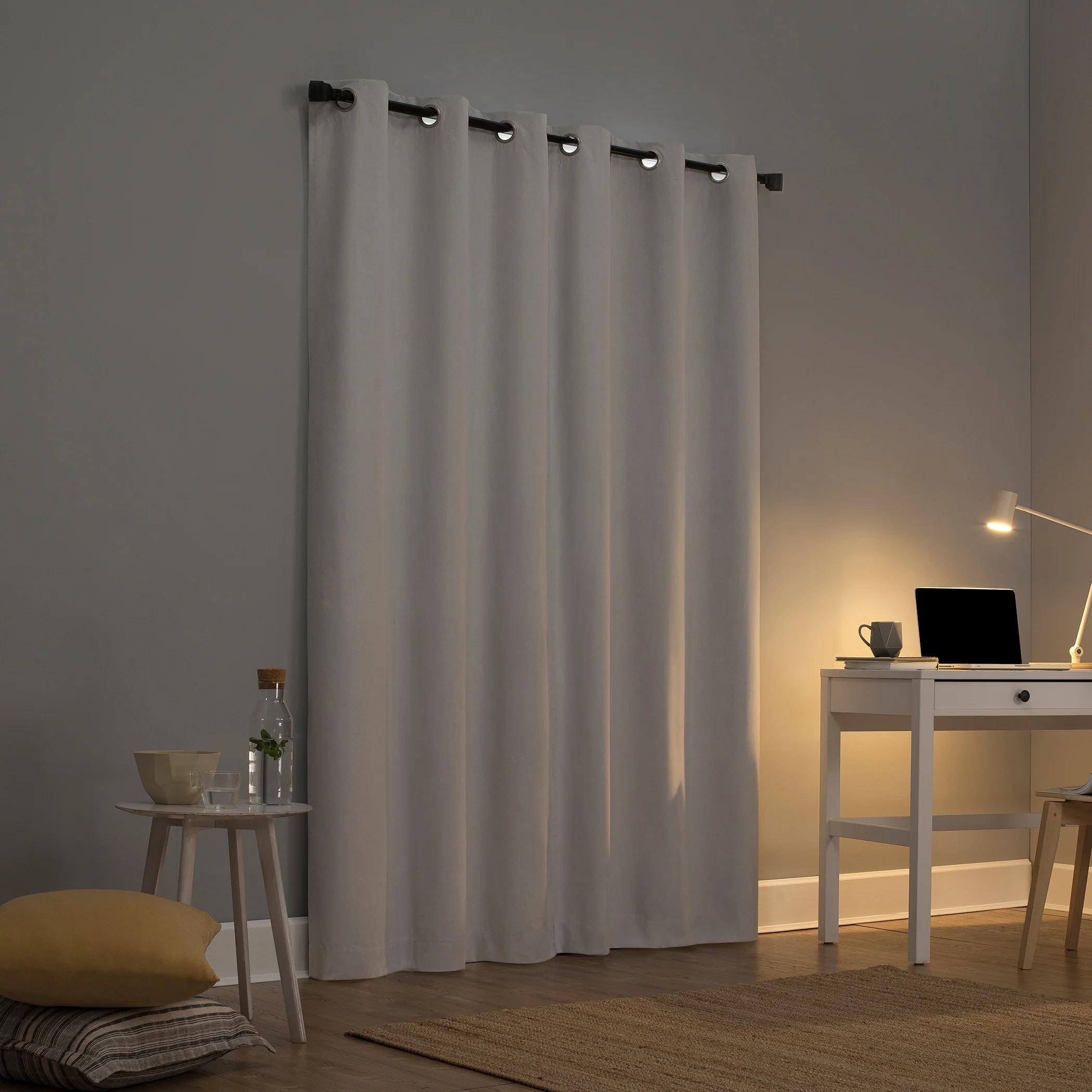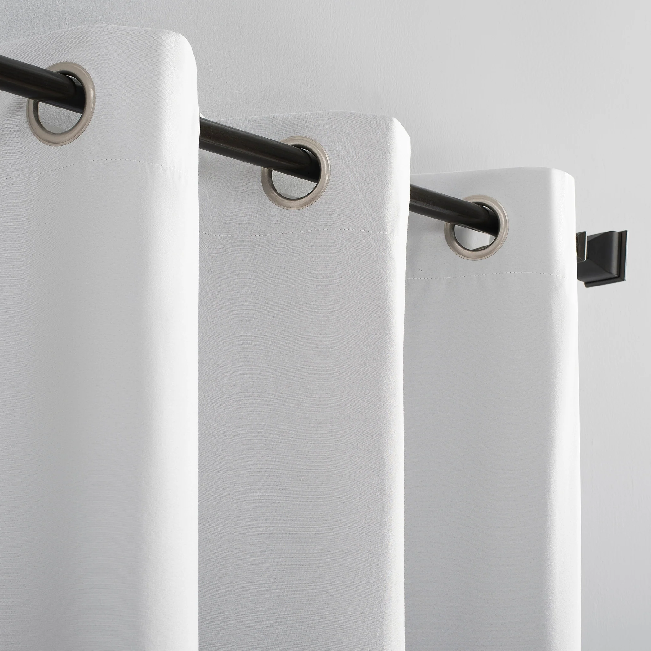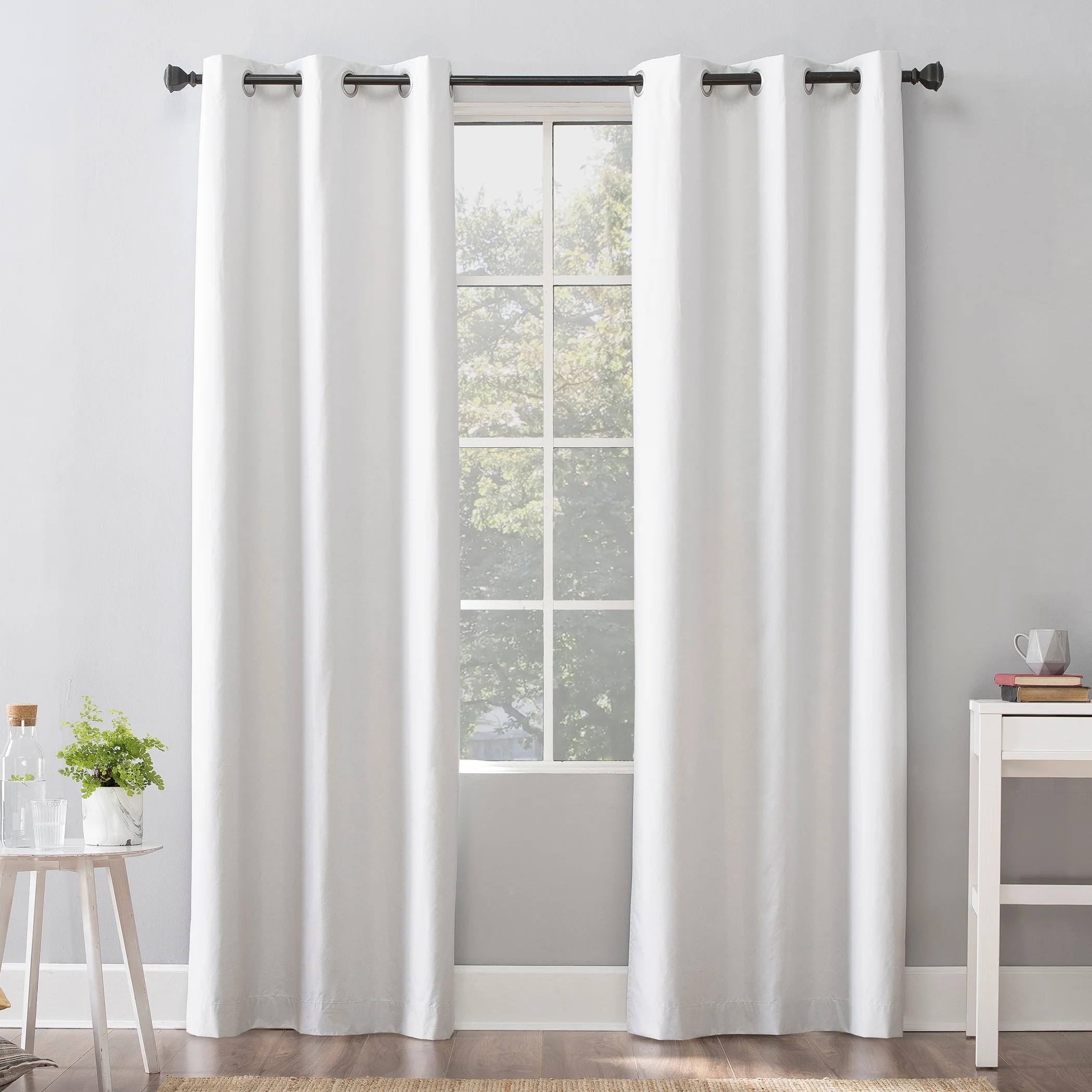 Experience the ultimate in light blocking technology with Sun Zero's Cyrus Thermal Total Blackout Grommet Curtain Panel. This single panel is designed to keep out even the harshest of light while adding energy efficiency to any room of your home. With Sun Zero's Total Blackout technology, this panel is laboratory tested to block out 100% of outside light, reduce noise by up to 35%, and decrease energy lost through your windows by up to 35%. Additionally, thermal insulation helps keep summer heat and winter chill out of your home, optimizing comfort. The built-in metal grommets fit curtain rods up to 1.5' in diameter, making for easy installation. Perfect for entertainment rooms, bedrooms, or any room in need of light control and privacy.
