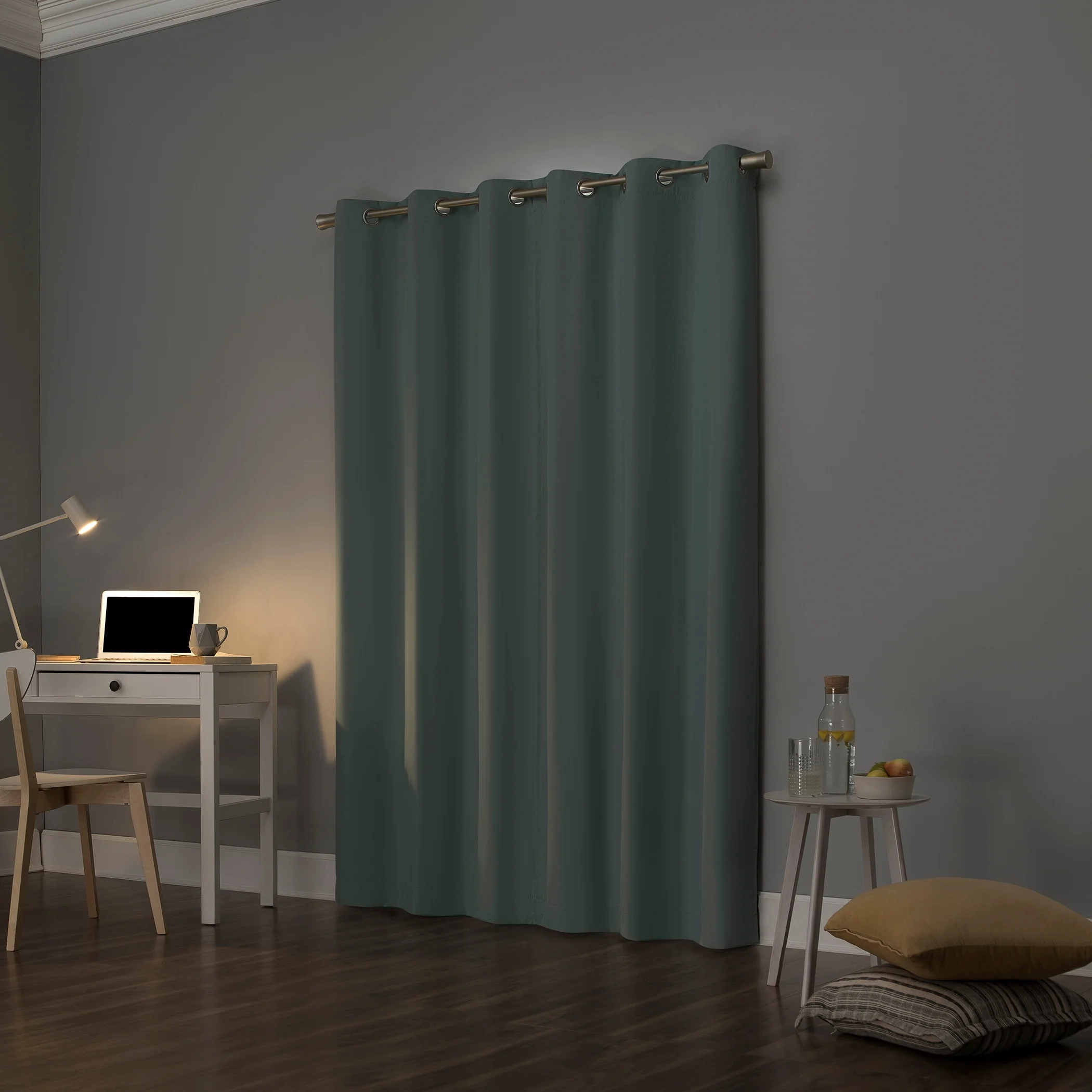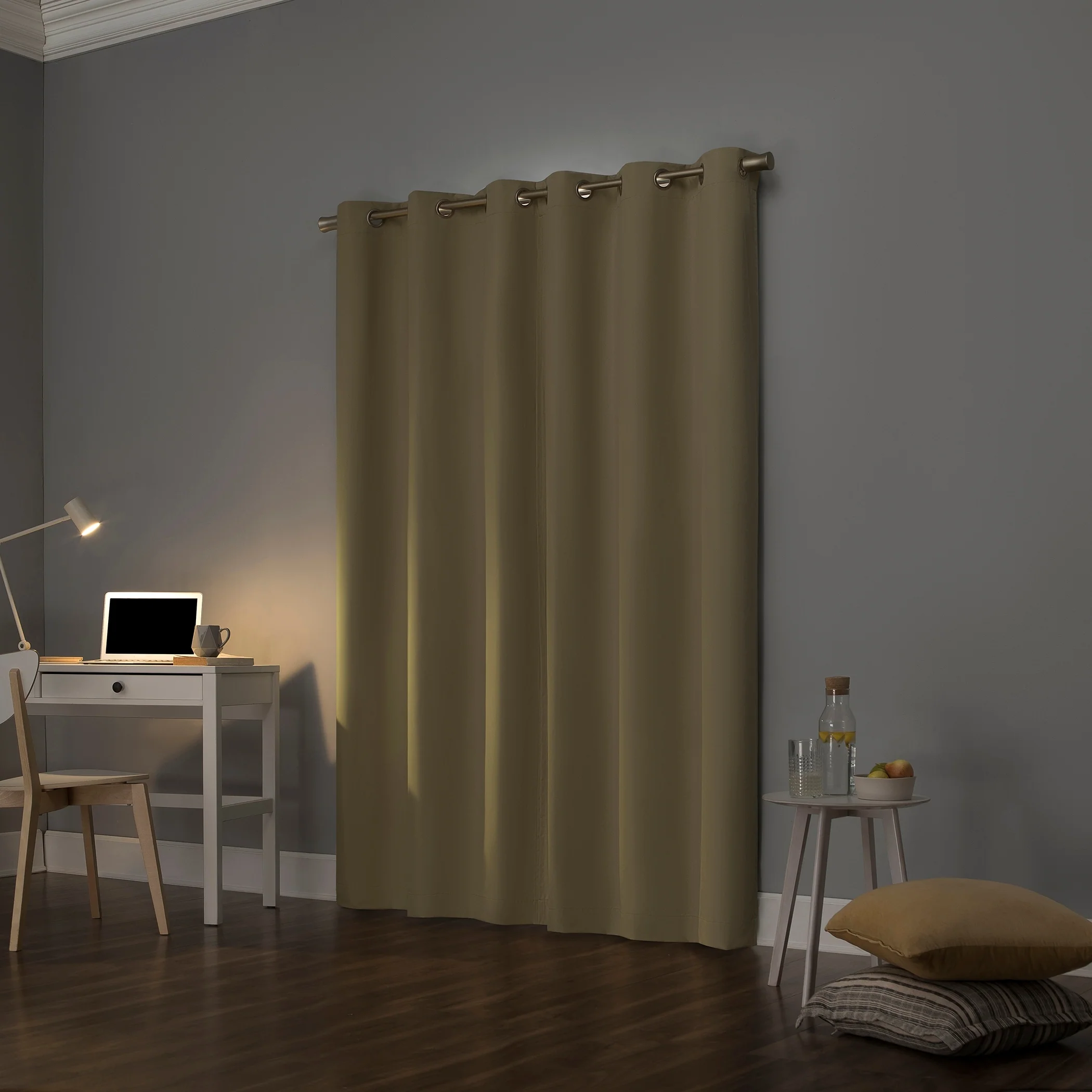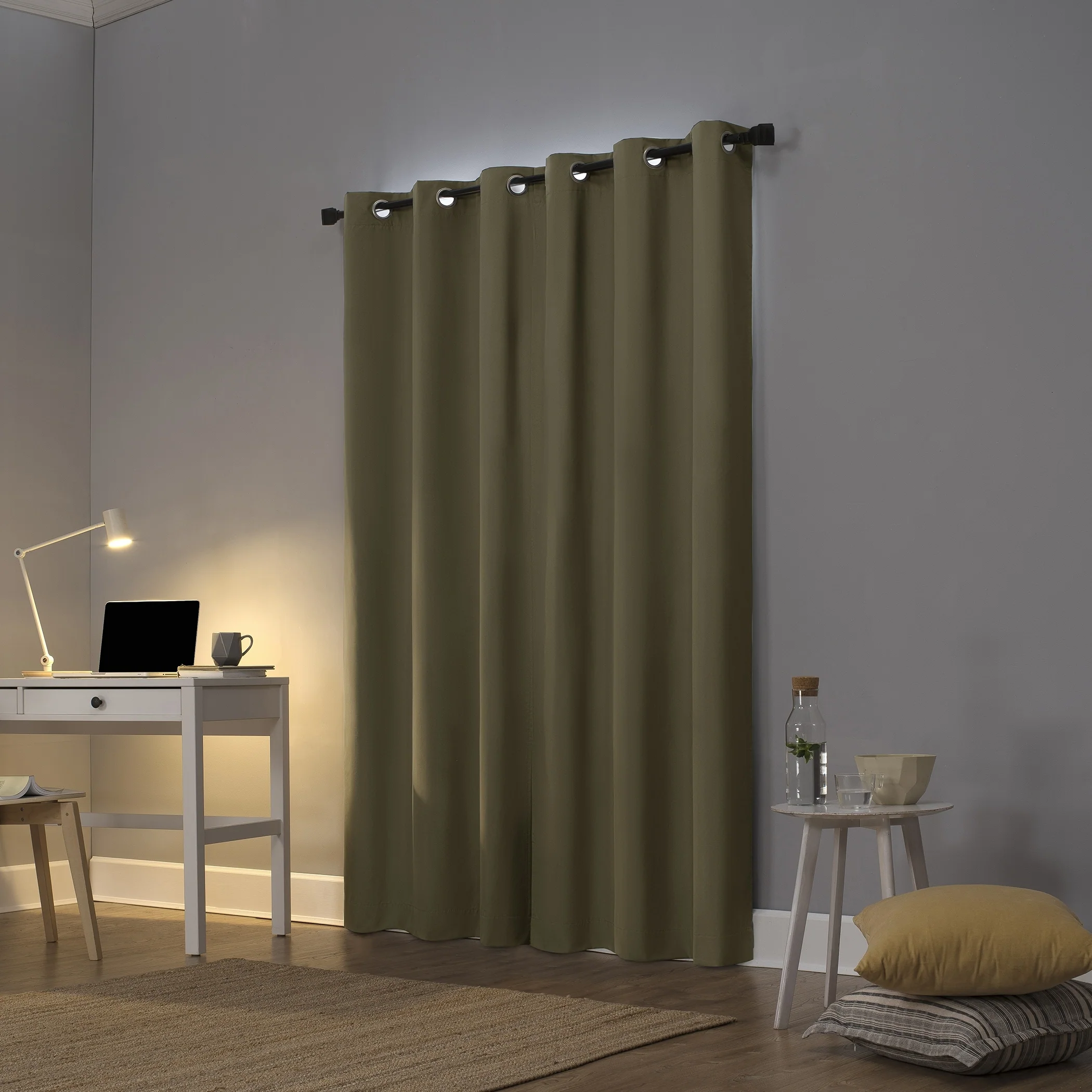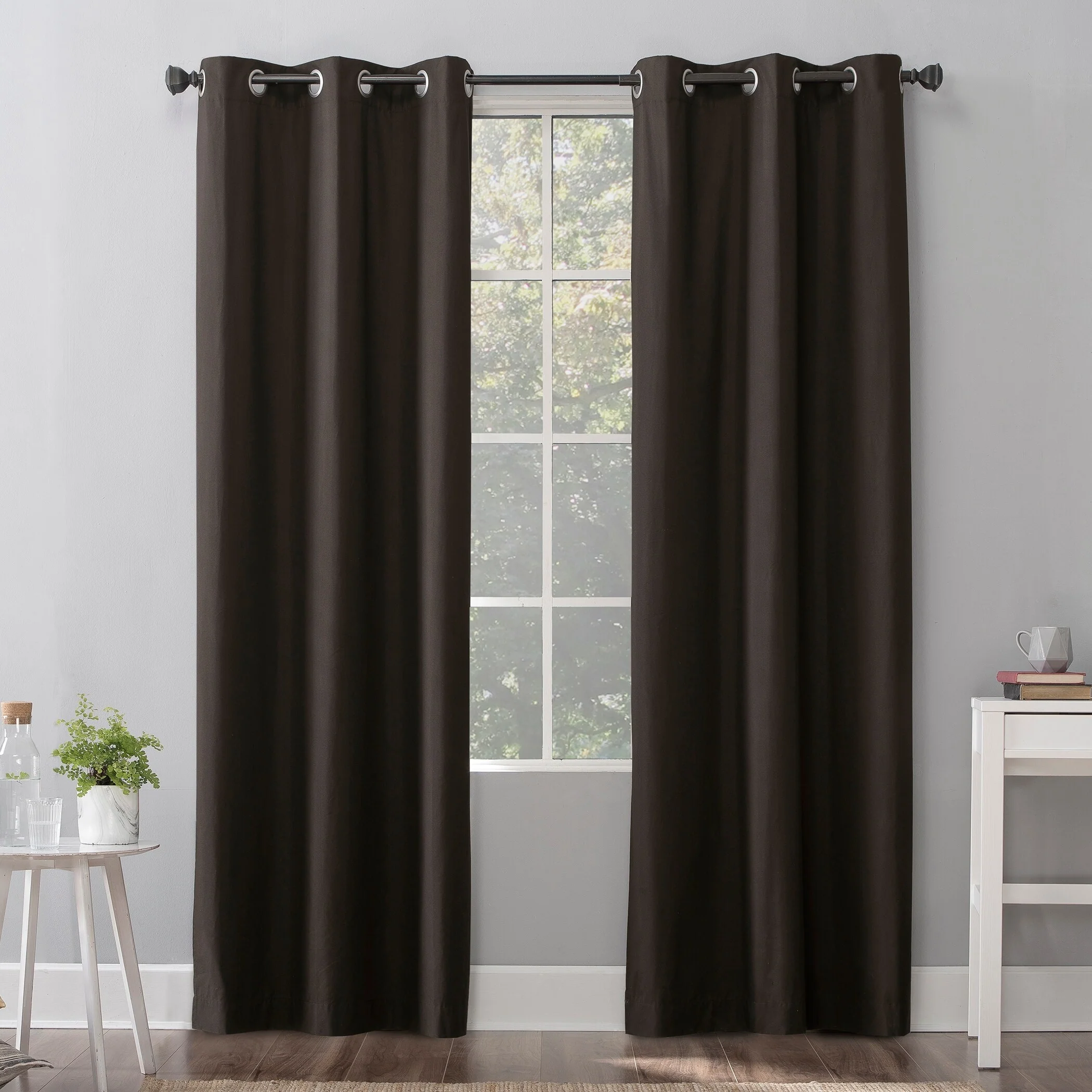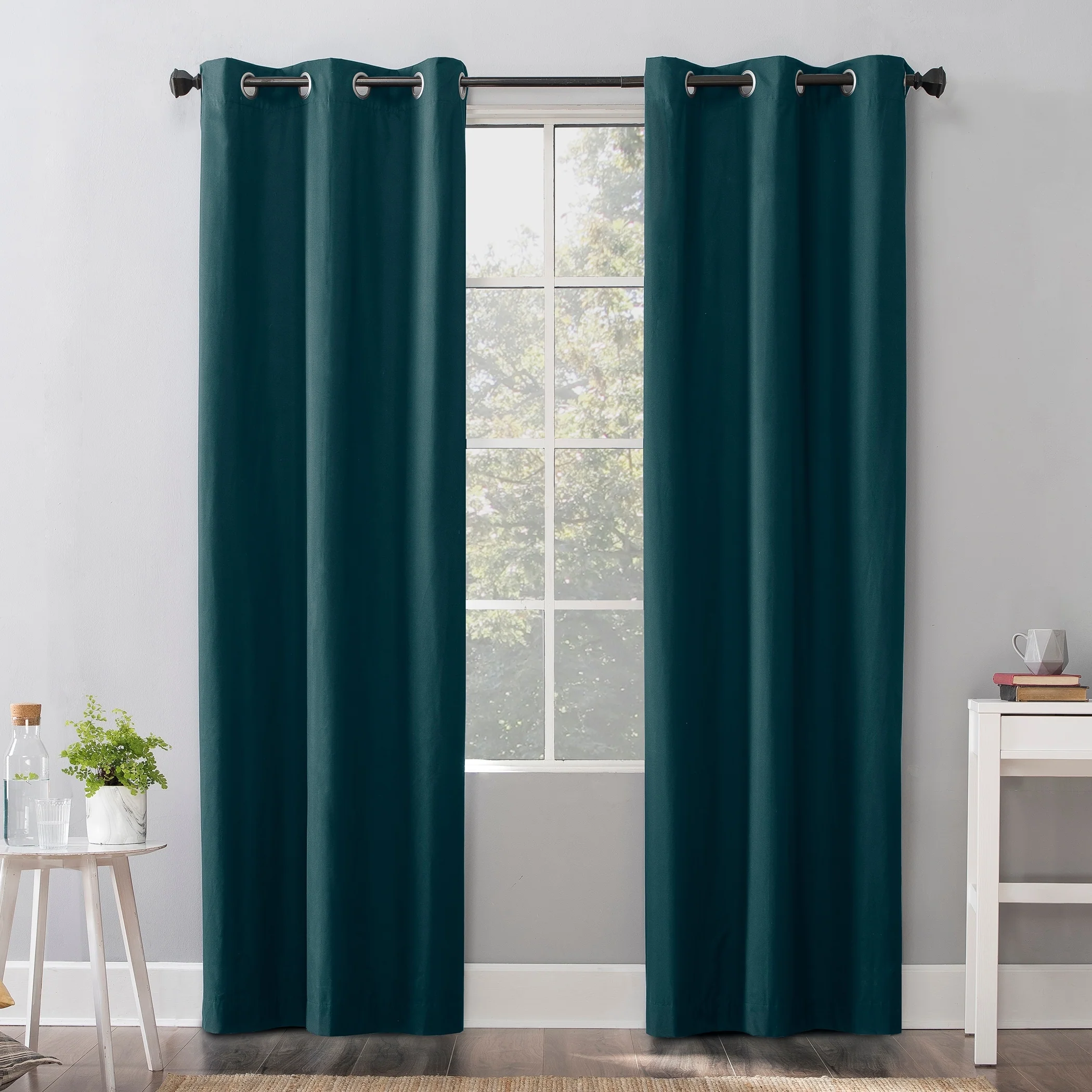 Experience the ultimate in light blocking technology with Sun Zero's Cyrus Thermal Total Blackout Grommet Curtain Panel. This single panel is designed to keep out even the harshest of light while adding energy efficiency to any room of your home. With Sun Zero's Total Blackout technology, this panel is laboratory tested to block out 100% of outside light, reduce noise by up to 35%, and decrease energy lost through your windows by up to 35%. Additionally, thermal insulation helps keep summer heat and winter chill out of your home, optimizing comfort. The built-in metal grommets fit curtain rods up to 1.5' in diameter, making for easy installation. Perfect for entertainment rooms, bedrooms, or any room in need of light control and privacy.