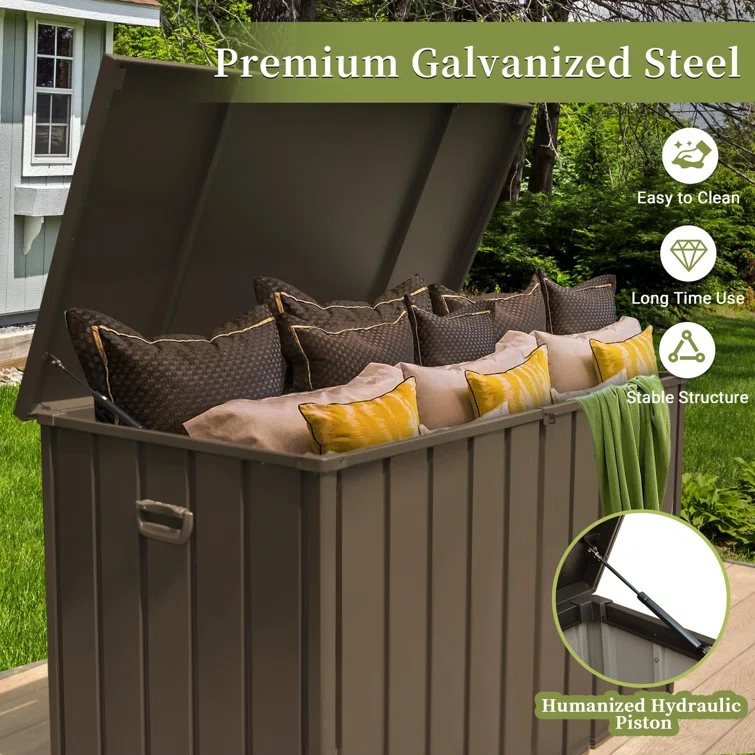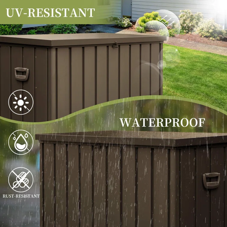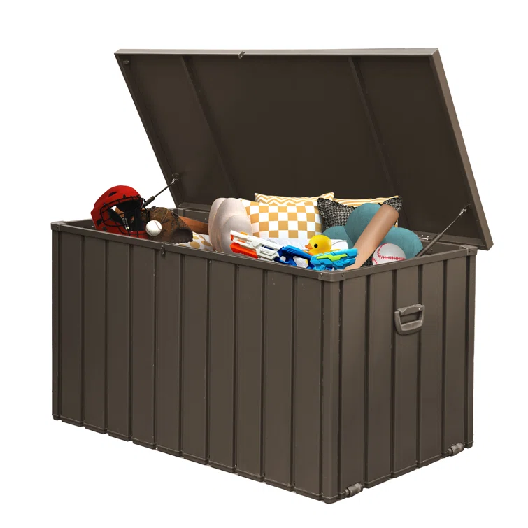 Domi Louvered 49.41'' W 100 Gallons Water Resistant Lockable Deck Box with Wheels in Brown