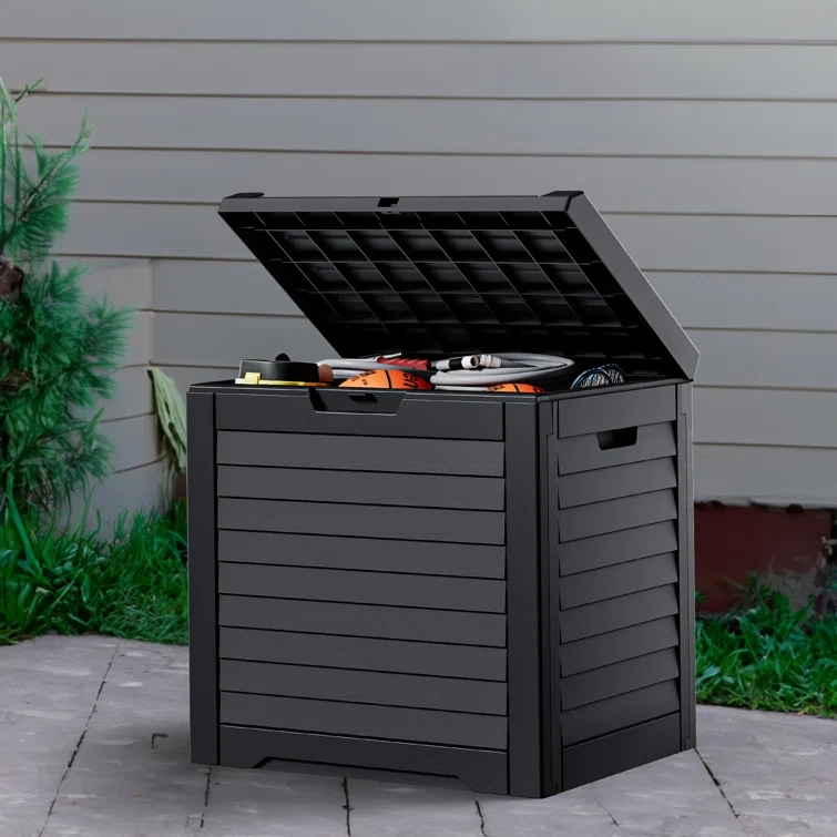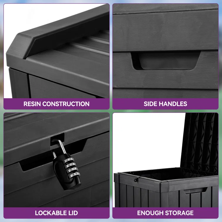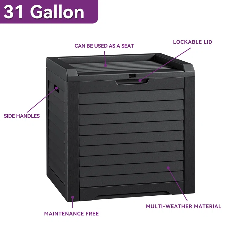 Edrosie Inc Gallon 22'' W 31 Gallons Water Resistant Resin Lockable Deck Box in Black