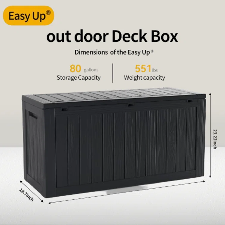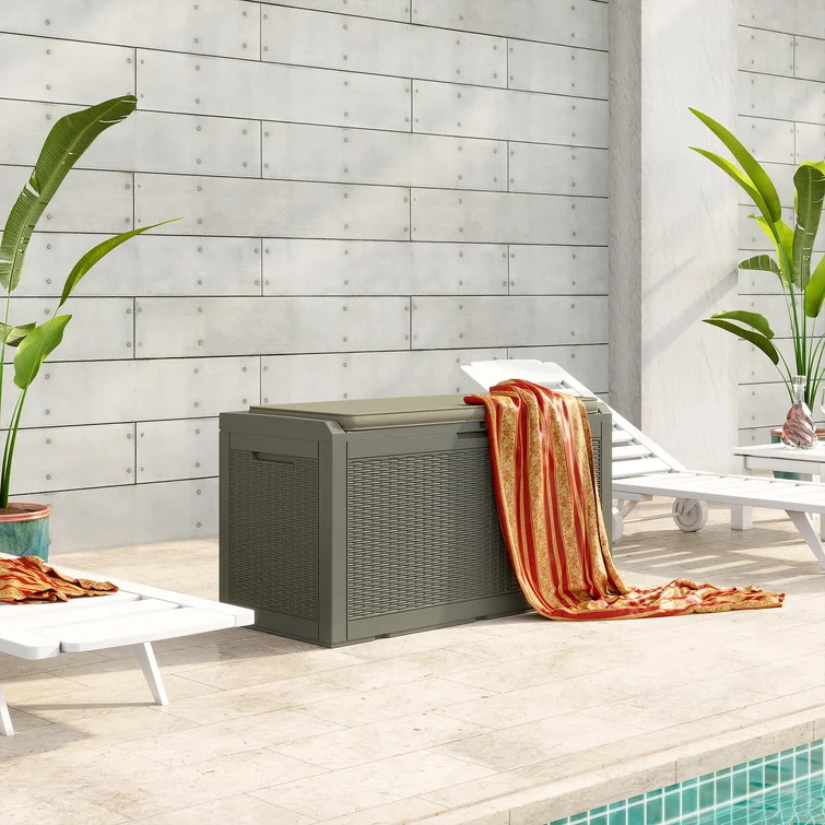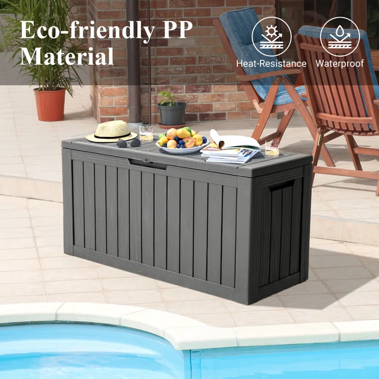 Resin Deck box, Outdoor Storage Container, Large Waterproof Storage Bench