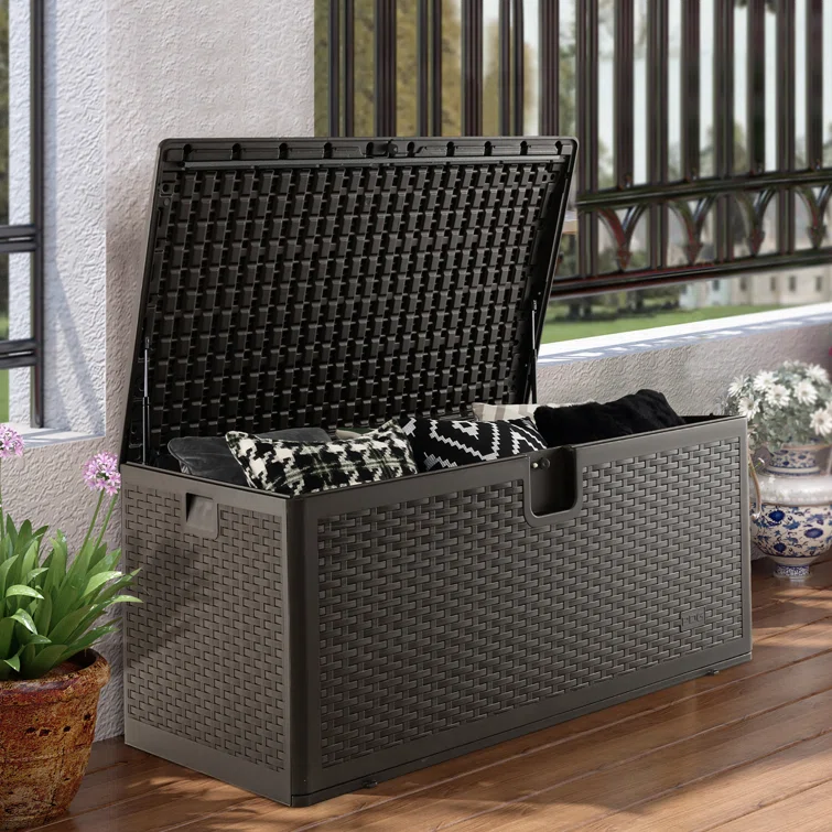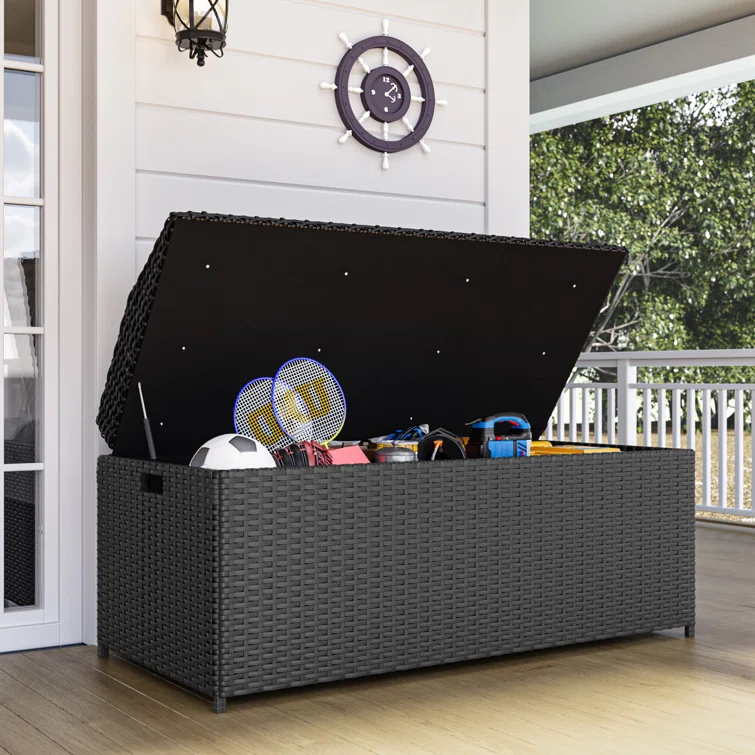 GUNJI 45.2'' W 65 Gallons Water Resistant Rattan Deck Box in Black