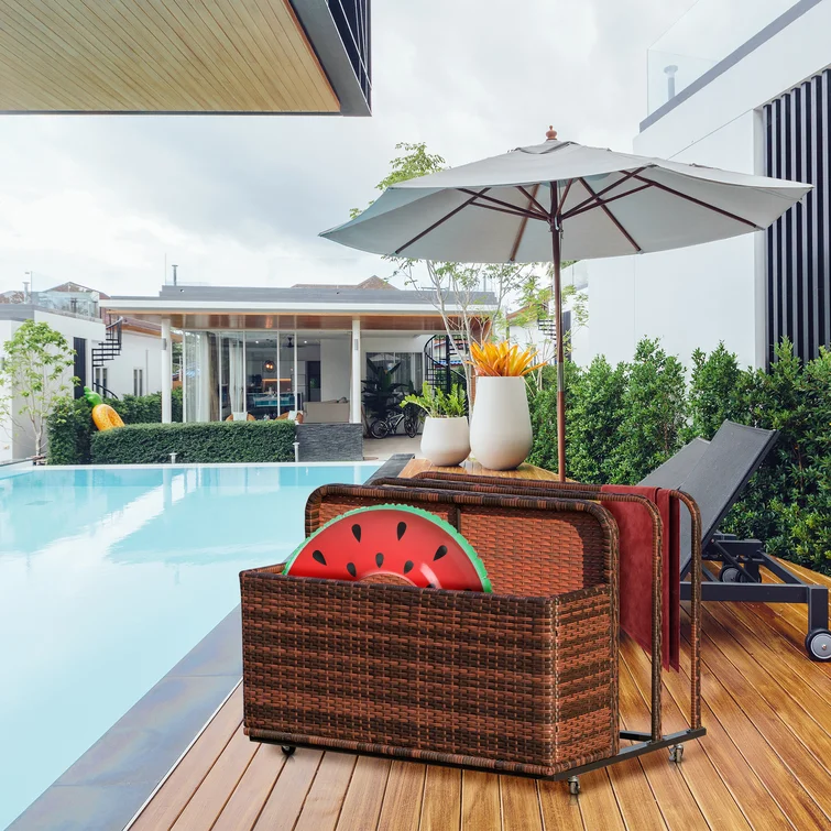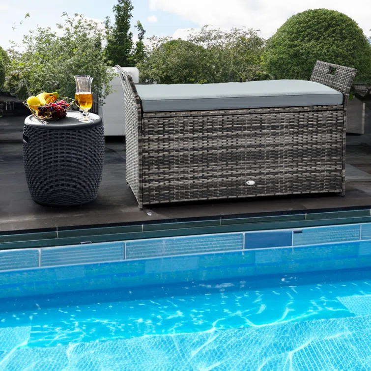 Outsunny 43.25'' W 110 Gallons Water Resistant Wicker Cabinet Deck Box with Wheels