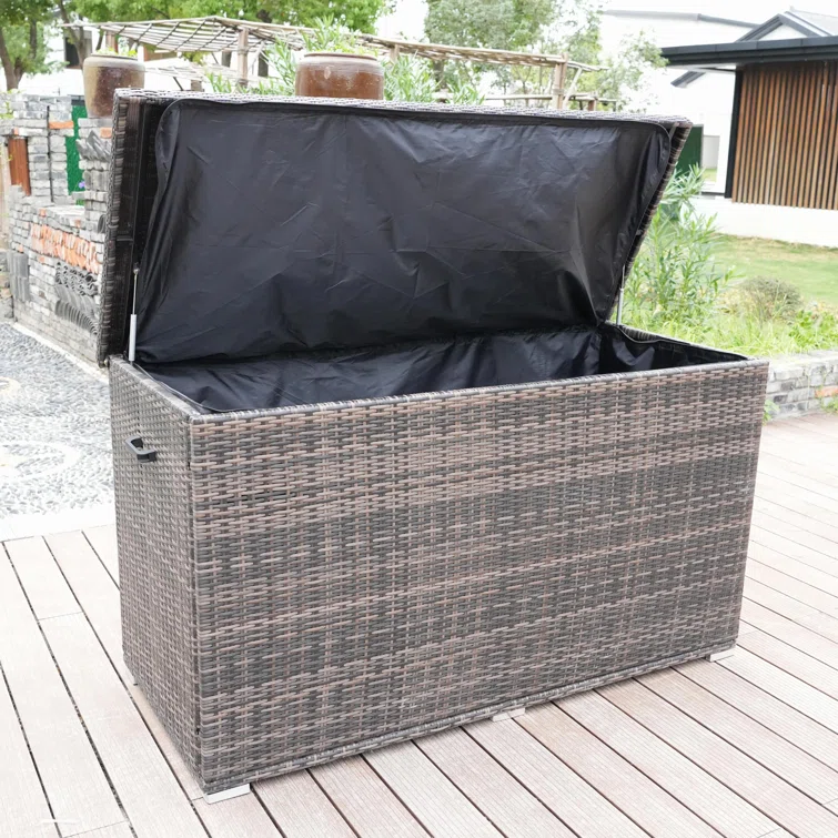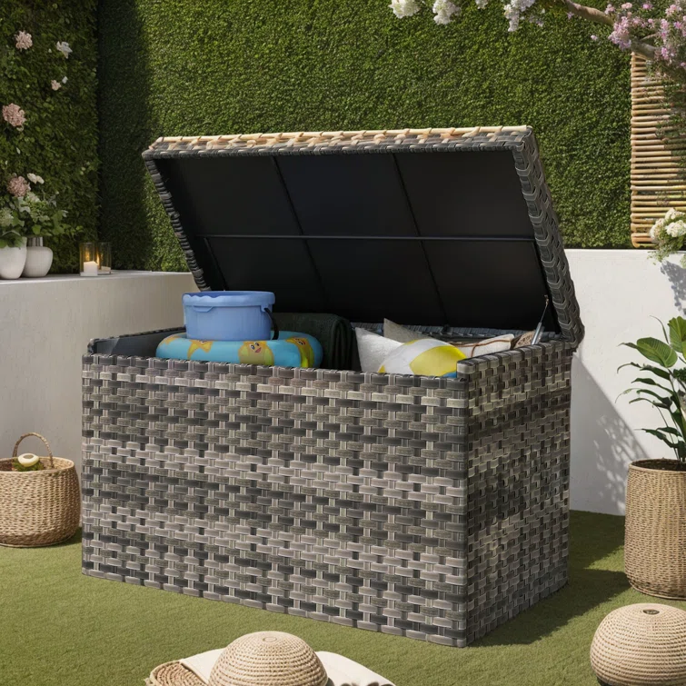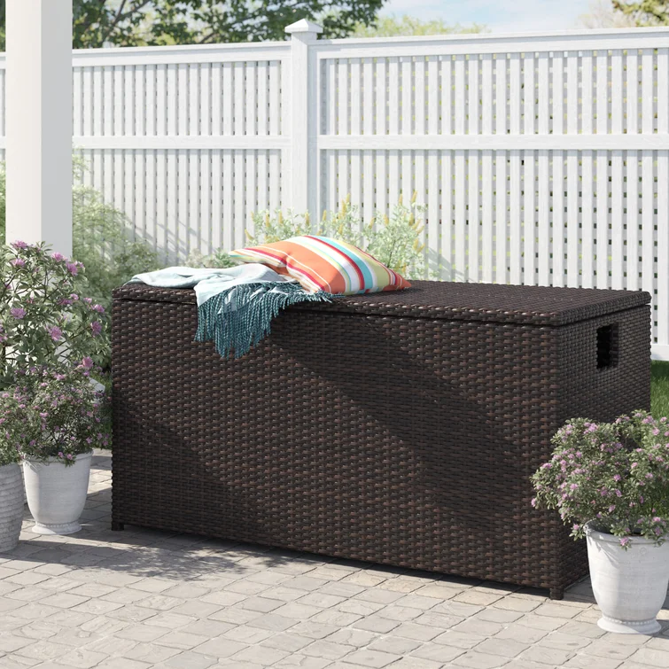 Azie Ladbrooke 196 Gallon Water Resistant Wicker / Rattan Outdoor Deck Box with Inner Aluminum Frame