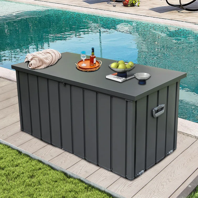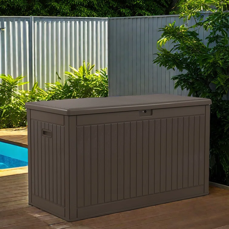 FRUITEAM 100 Gallons Gallon Water Resistant Resin Lockable Deck Box in Dark Gray