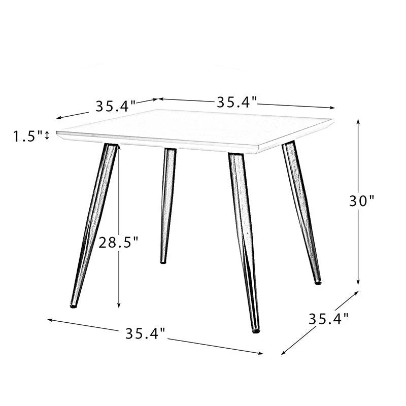 Looking to add a dining table to your dining room or kitchen? This one is just what you have been looking for, with your glam sensibilities, adding an eye-catching touch to your space. With its flared metal legs and clean-lined appearance, this wood dining table is a handsome addition to your furniture collection. Add this piece to the dining room to complement a contemporary arrangement or use it to round out a cozy cottage look. Crafted from MDF, it boasts a geometric shape awash in a neutral finish, blending effortlessly with your color scheme, this stylish dining table will complete the look of your dining room. This table comfortably seats four, you can host a dinner party for friends or cook a meal for the family using this reliable and sturdy table.