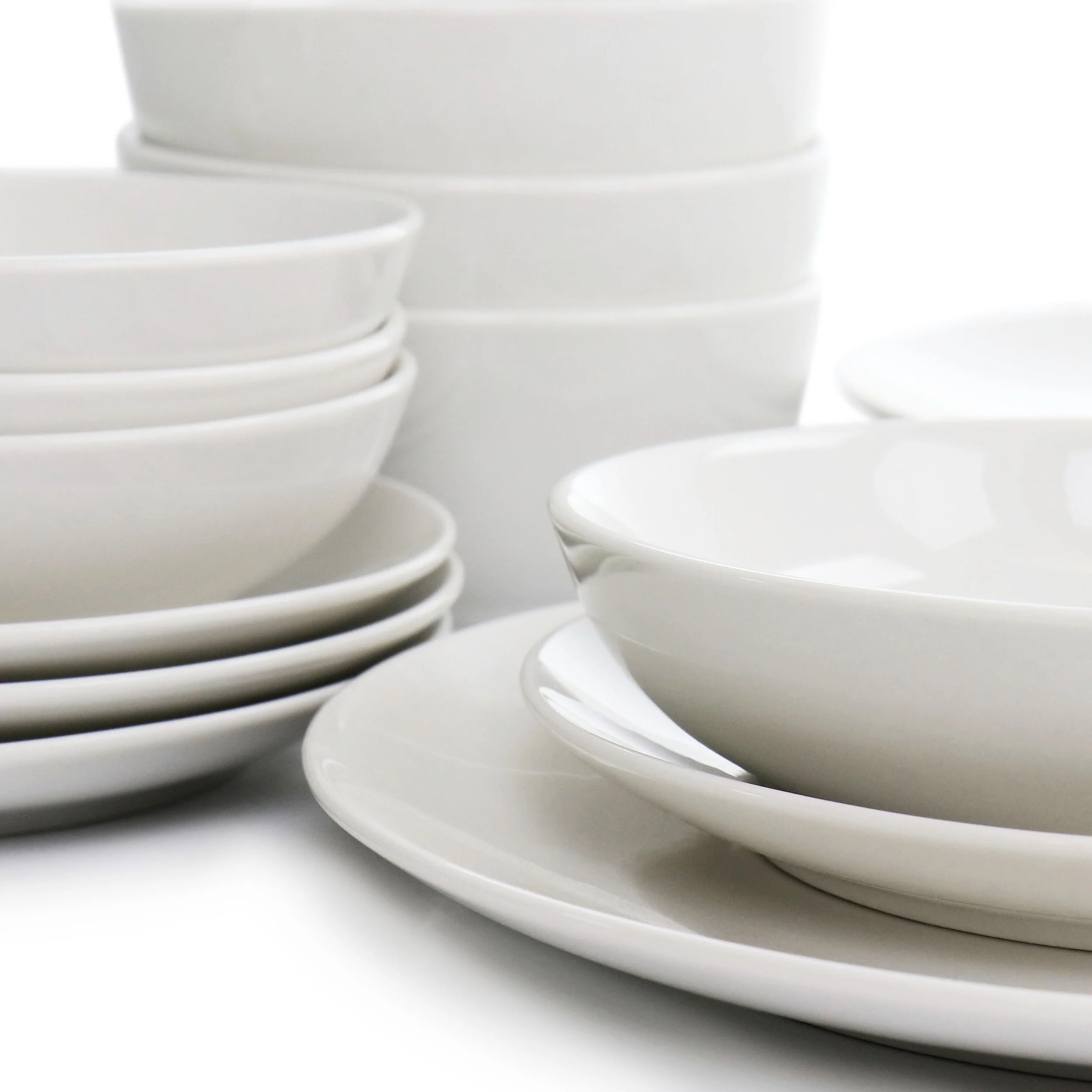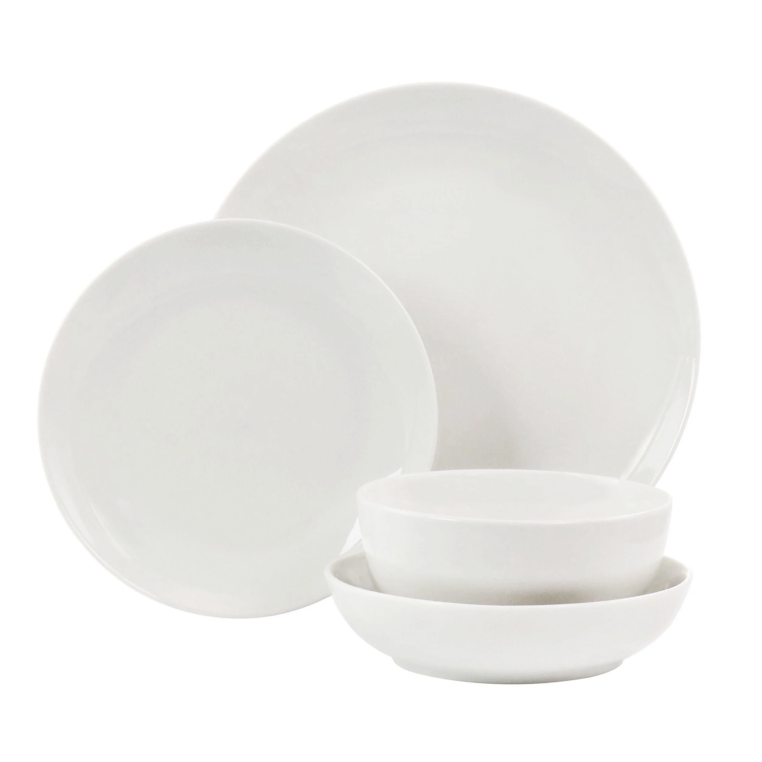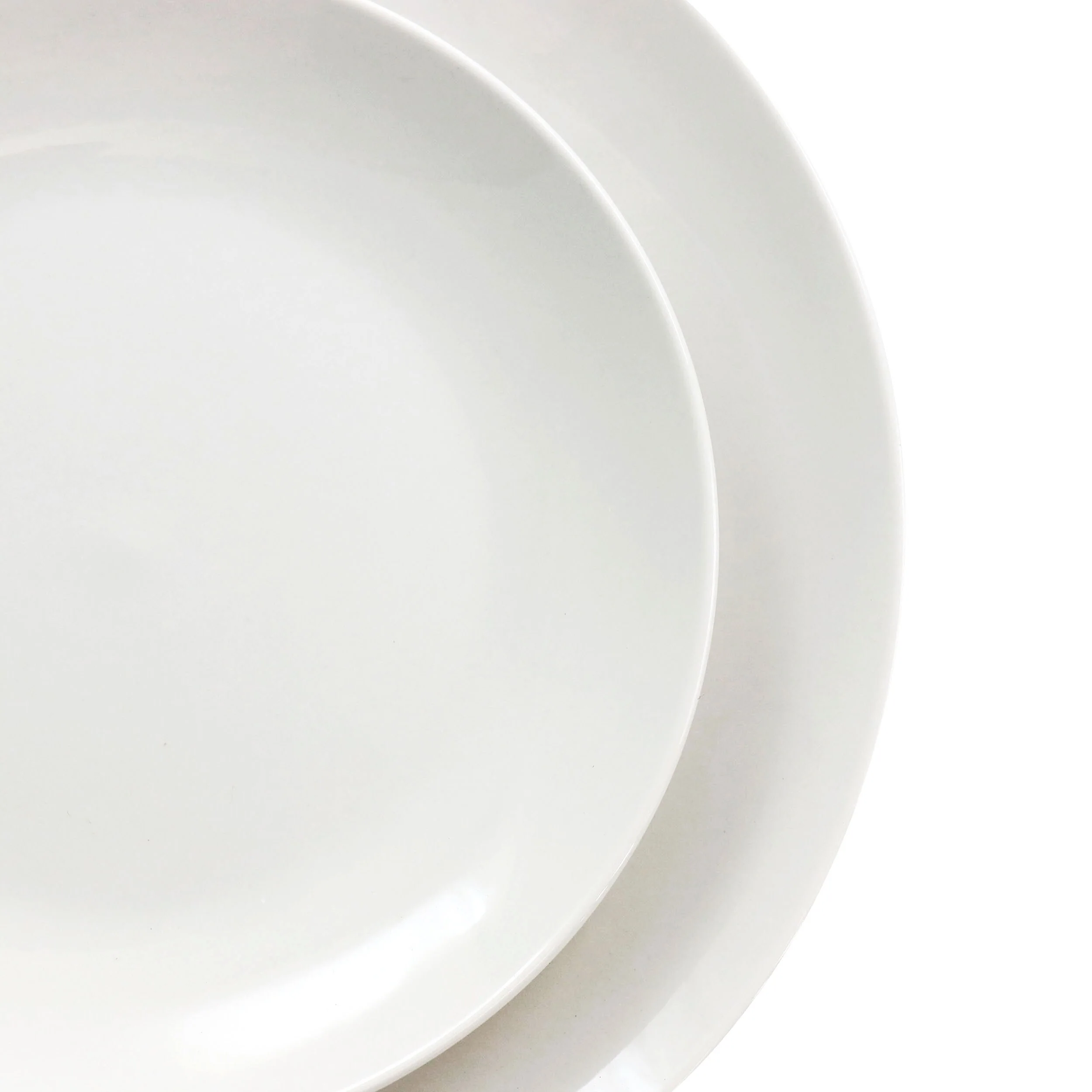 Add a touch of elegance and class with 16 Piece Porcelain Double Bowl Dinnerware Set. This beautiful timeless fresh plate set goes great with any setting for every occasion. Allowing for you to display your meal effortlessly, this service set for four includes two large serving bowls ideal for rice, salad, pasta and stews, show off your culinary greatness. Constructed of Porcelain, this durable tableware set is sure to last through your most memorable meals. Dishwasher and microwave safe for easy reheating and easy cleaning.
