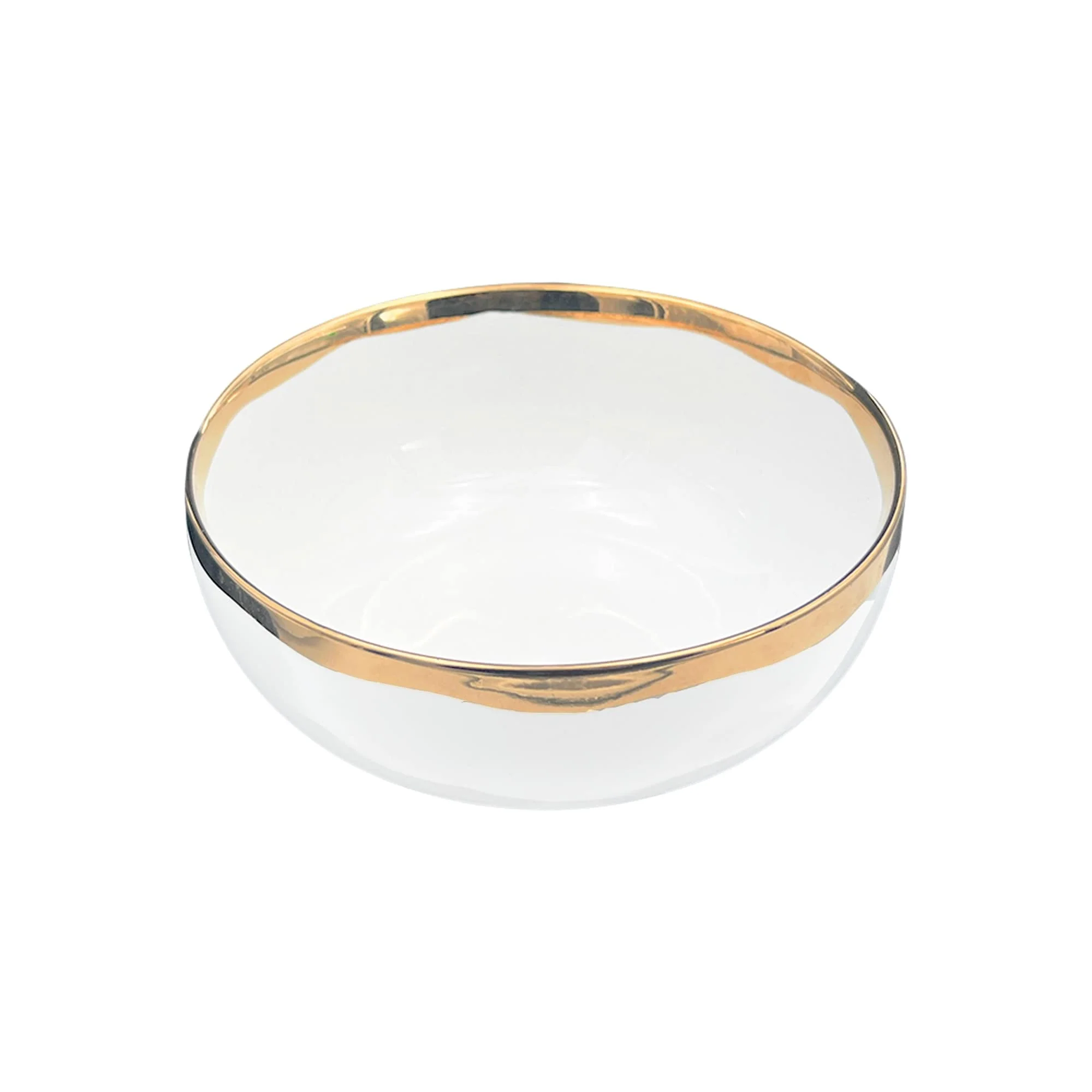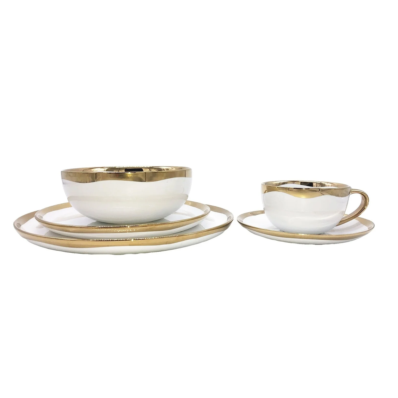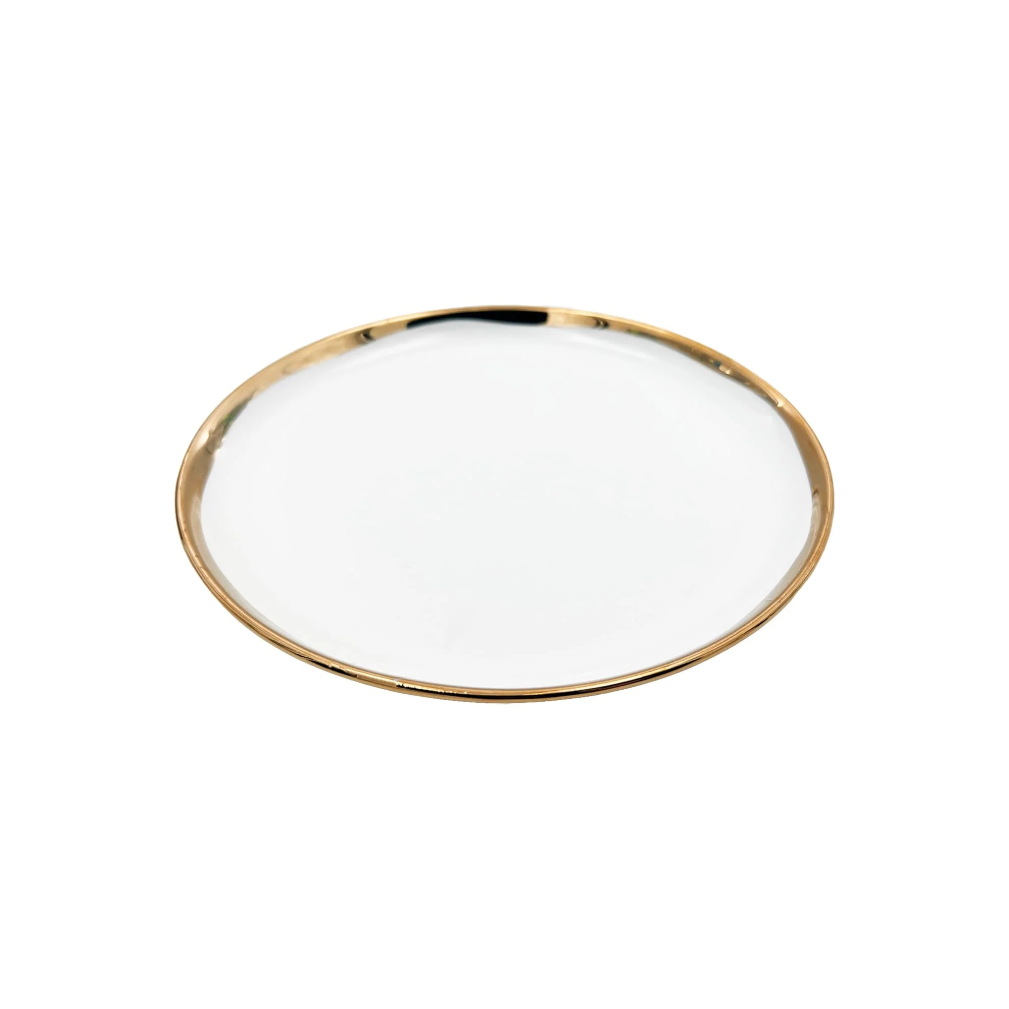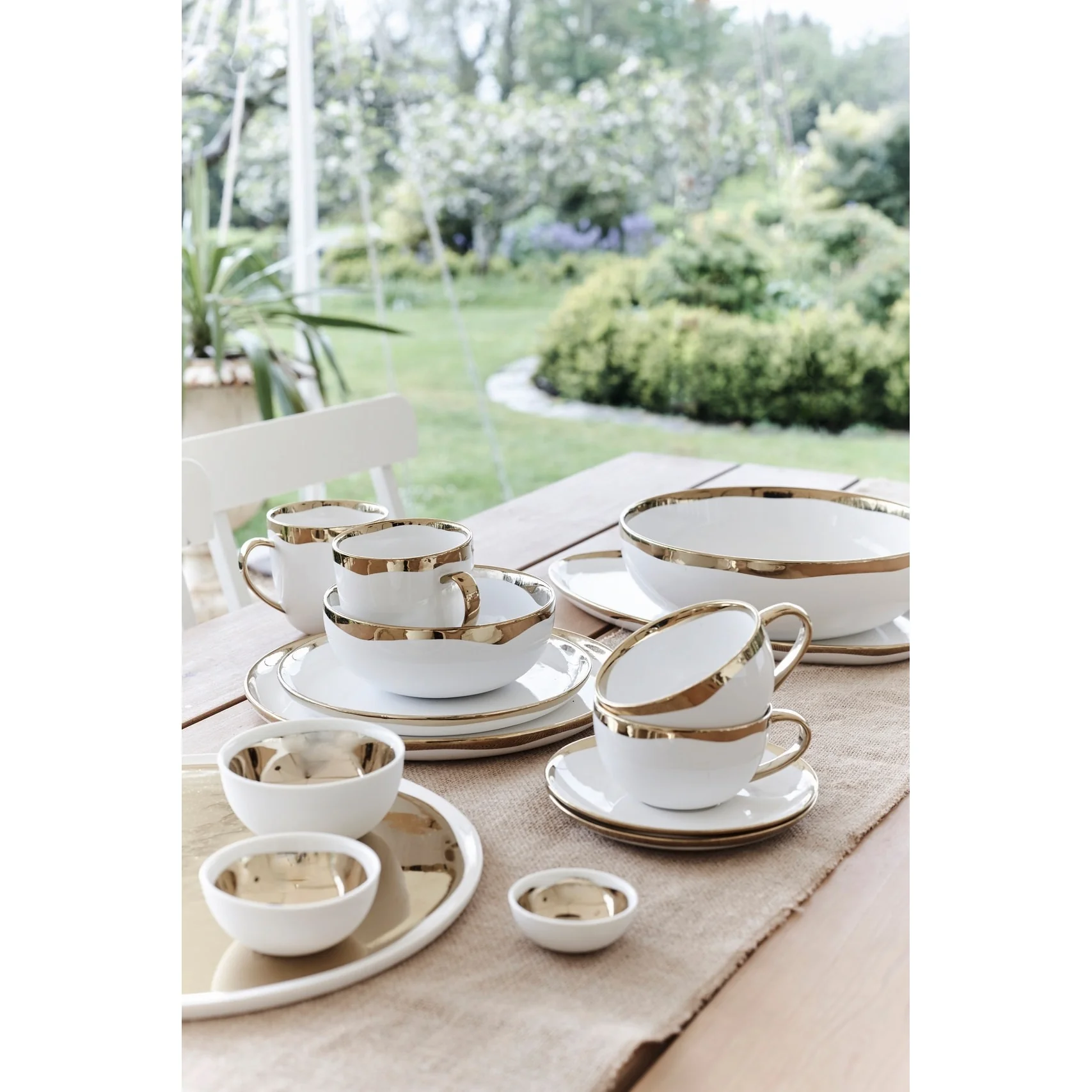 Canvas Home's Dauville Collection exhibits a contrast between the creamy textured finish and bold metallic glaze, which in turn yields a unique harmony of glamour and subtlety. Each piece features a contemporary shape and distinctive free-form glazing along the rim. Perfect for entertaining your guests with artisan sophistication and poise.